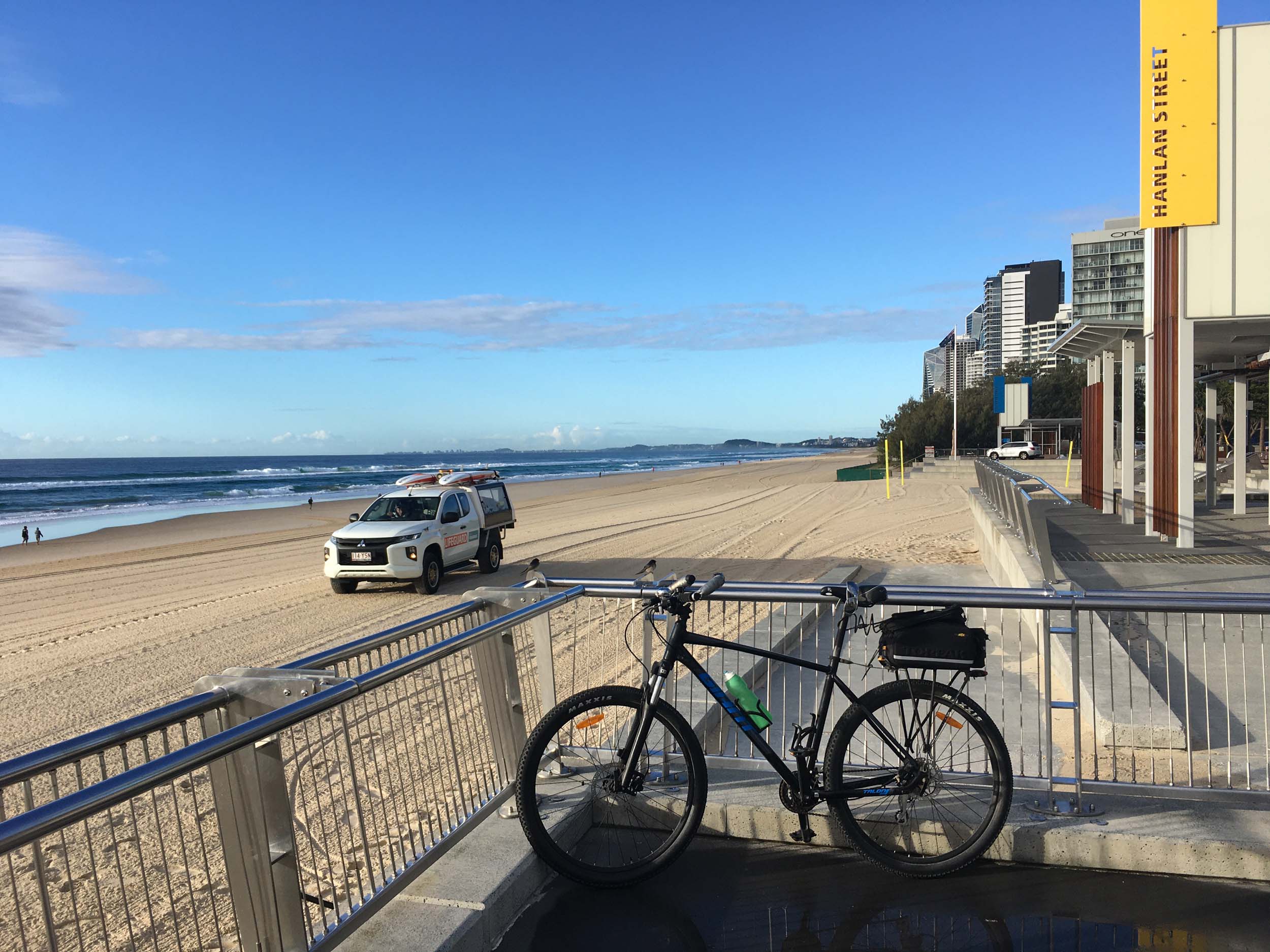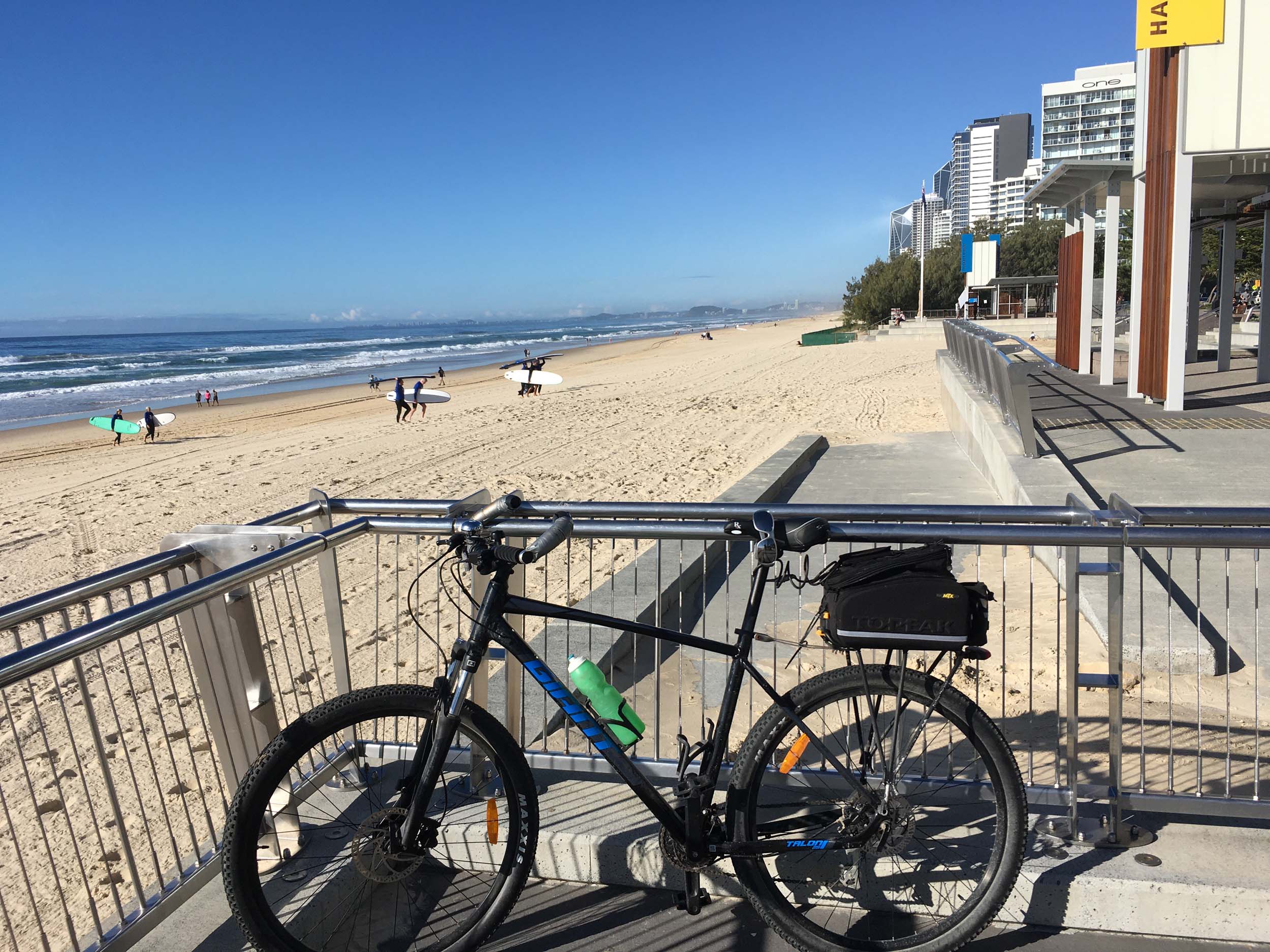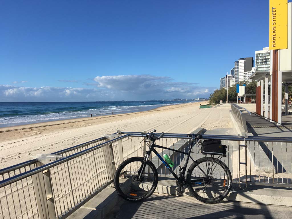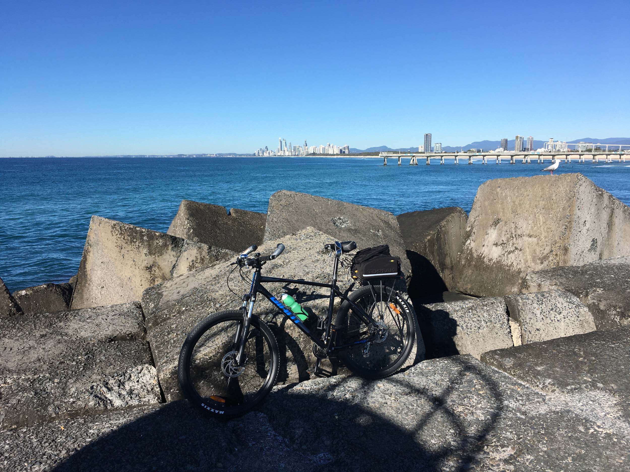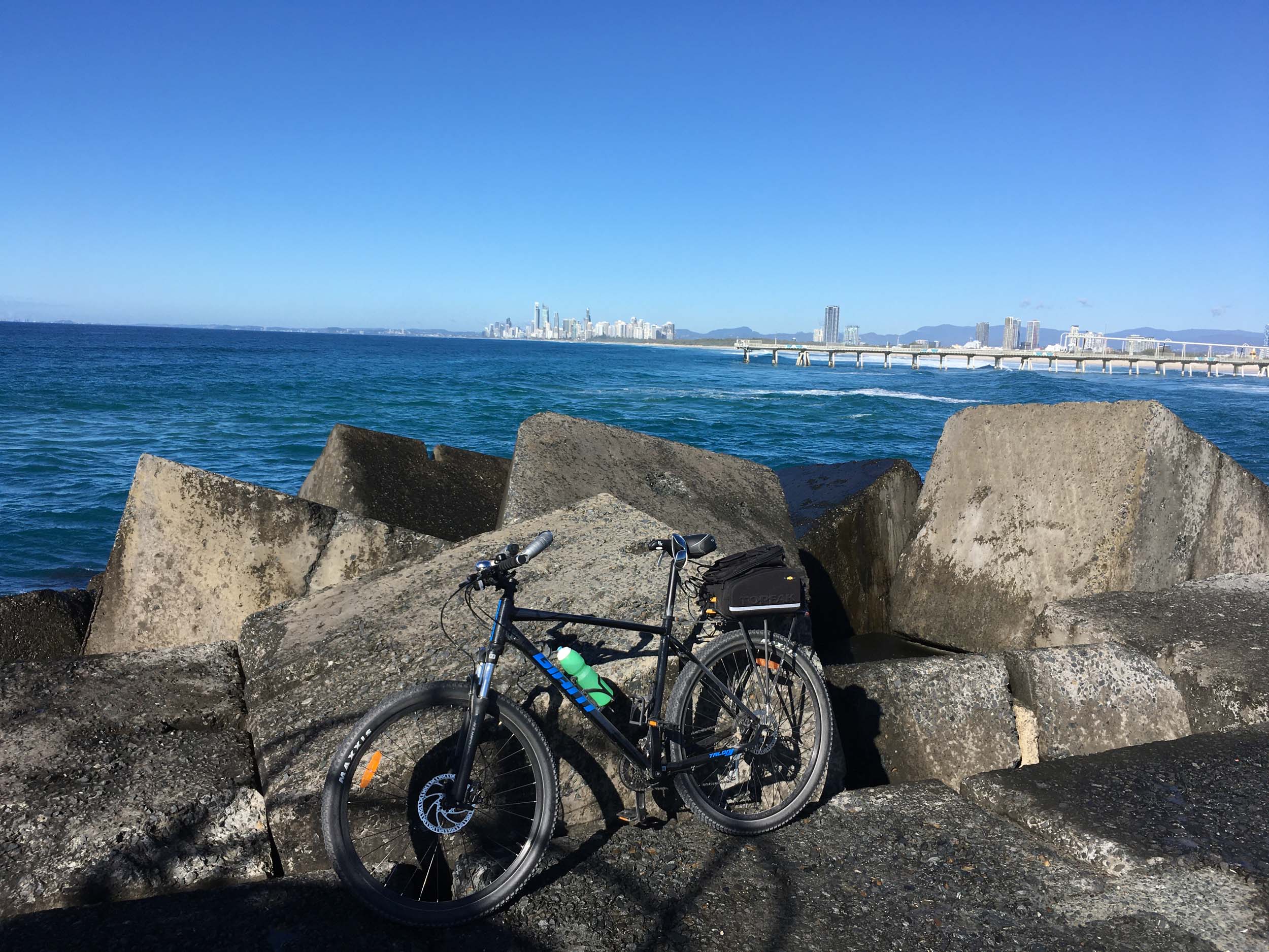 Home to Turnaround Pt down to Surfers via GC600 Park to Robbies Cafe to The Spit (both ends) then back through GC600 Park back to the Turnaround Pt and finally back Home about 60kms.
