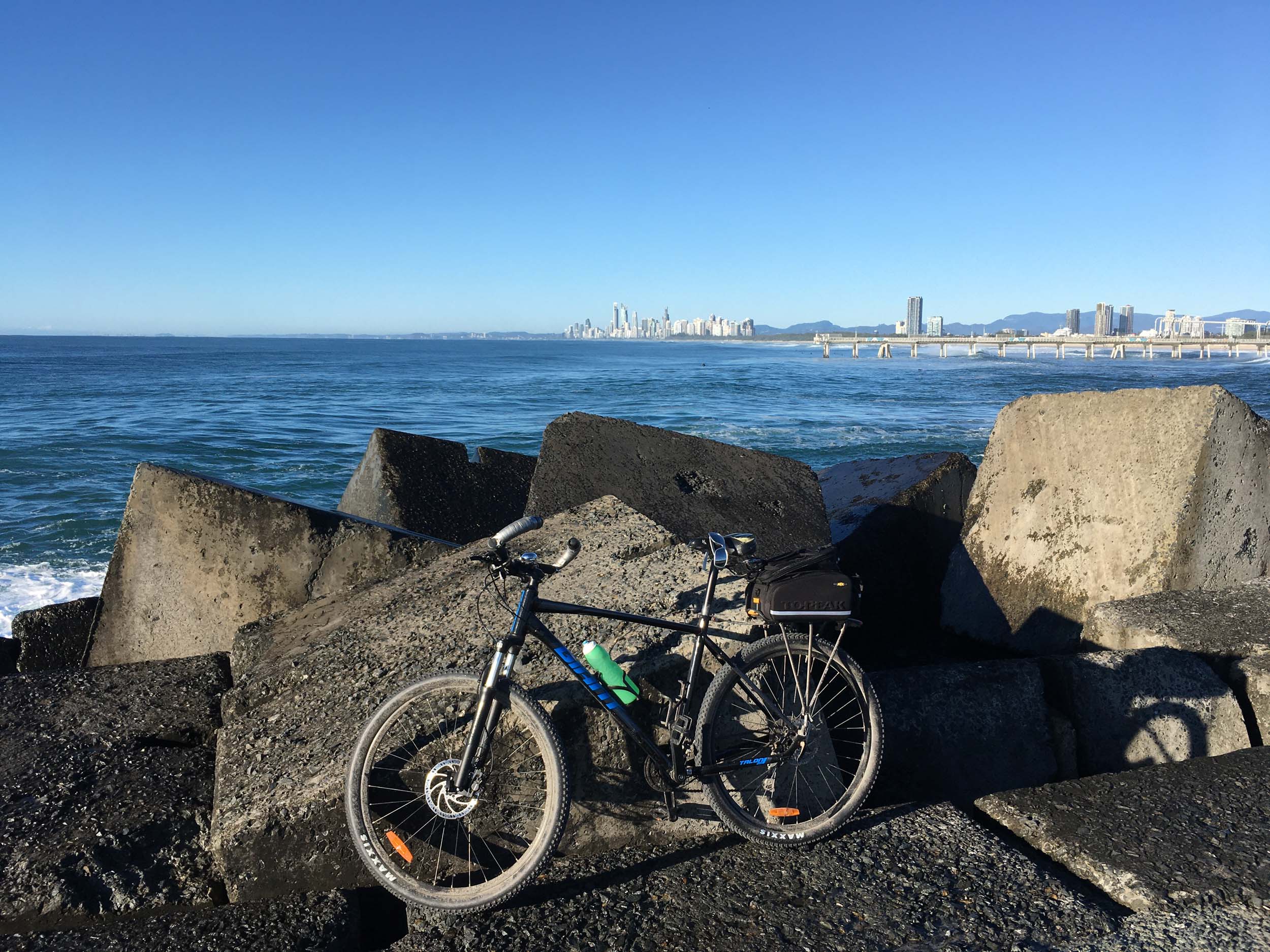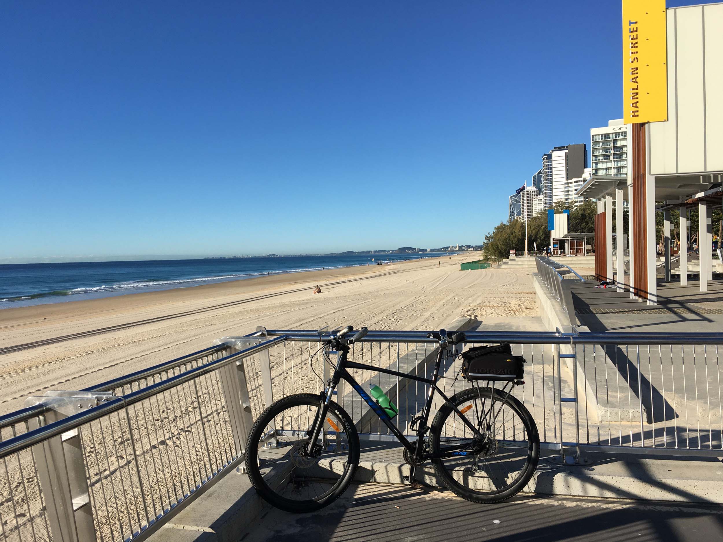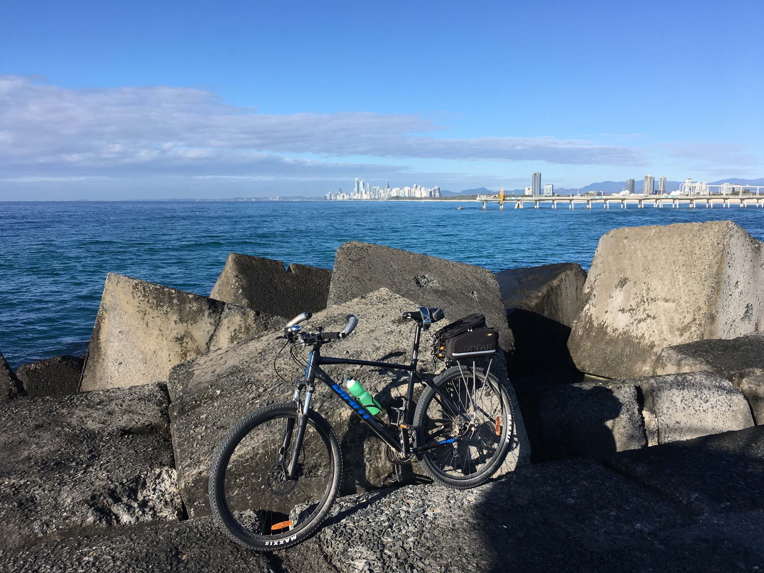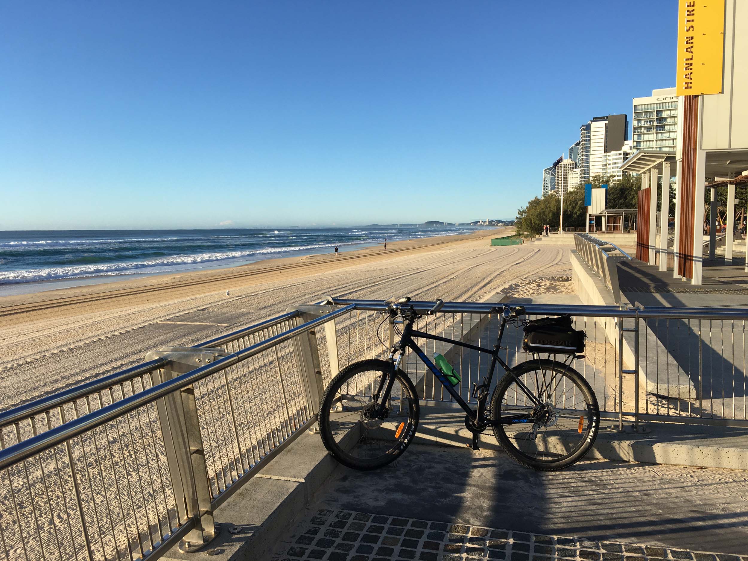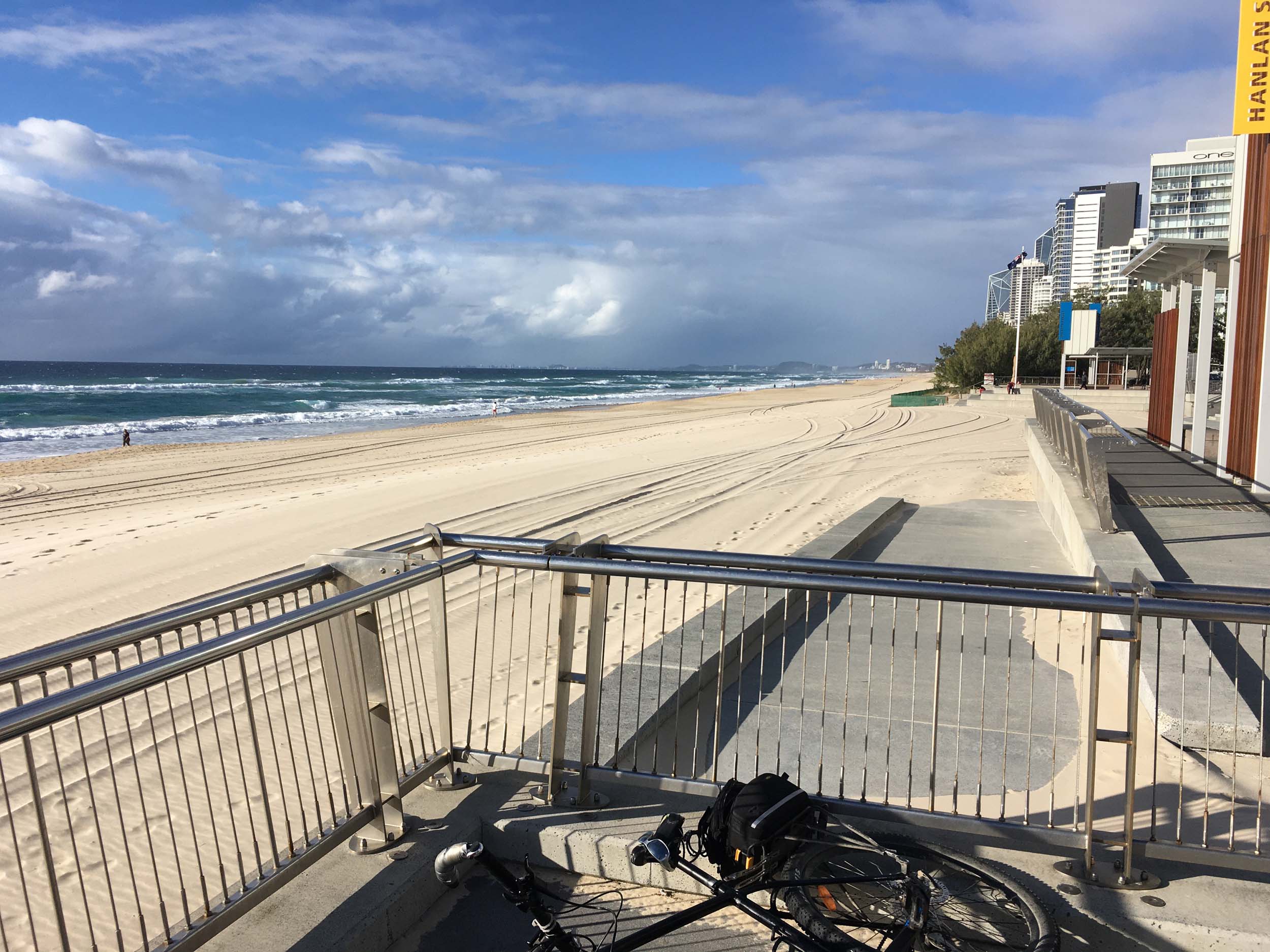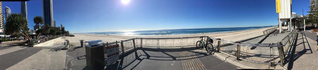 Home to Turnaround Pt down to Surfers via GC600 Park to Robbies Cafe to The Spit (both ends) then back through GC600 Park back to the Turnaround Pt and finally back Home about 60kms.