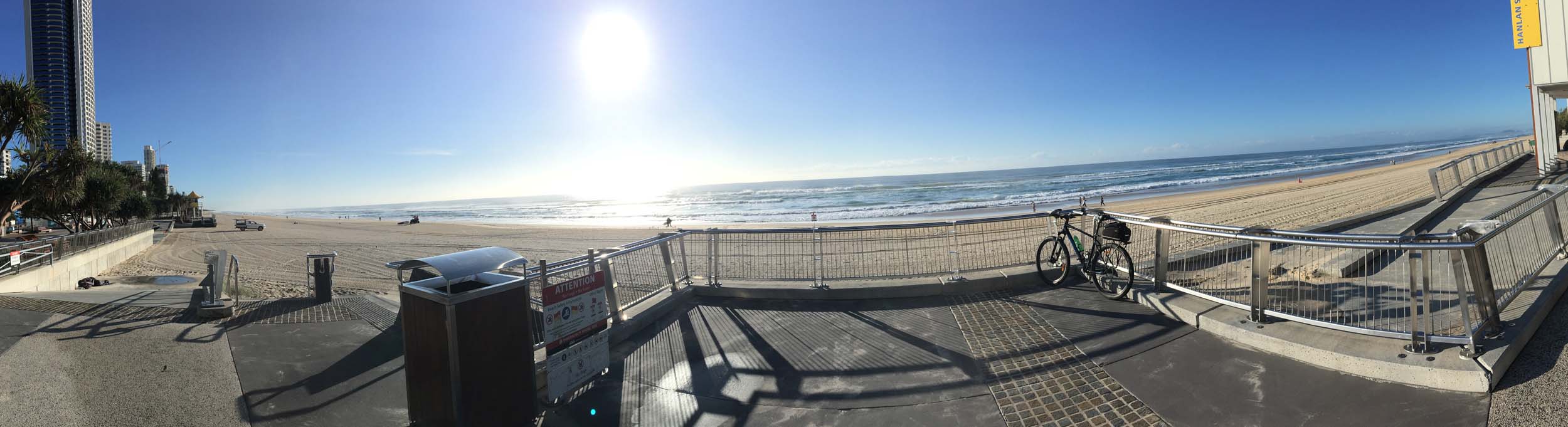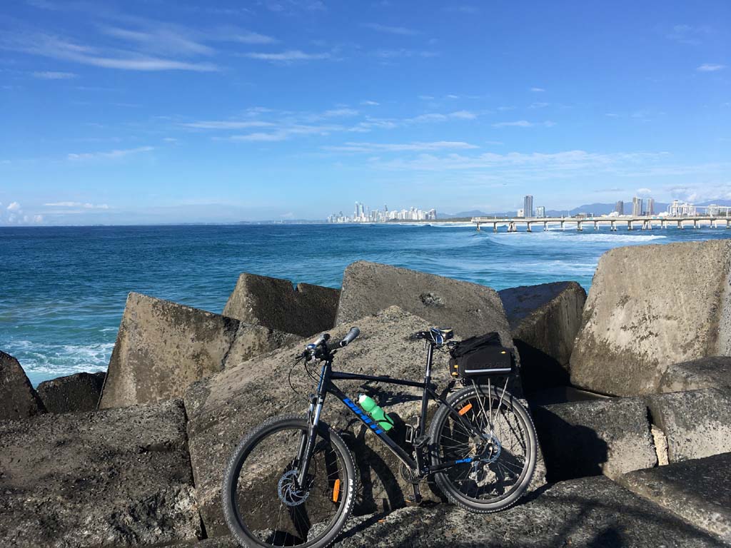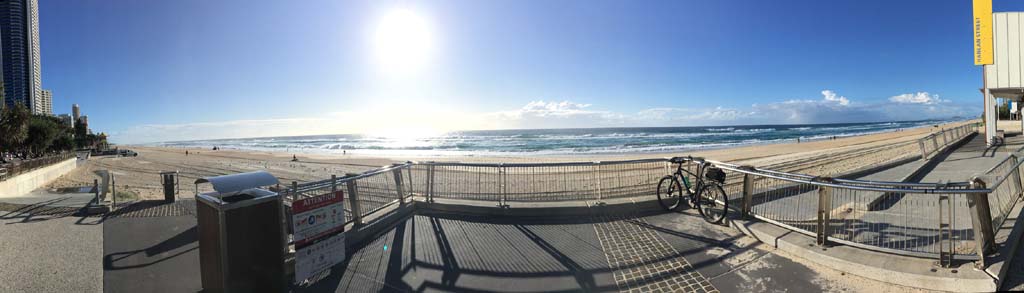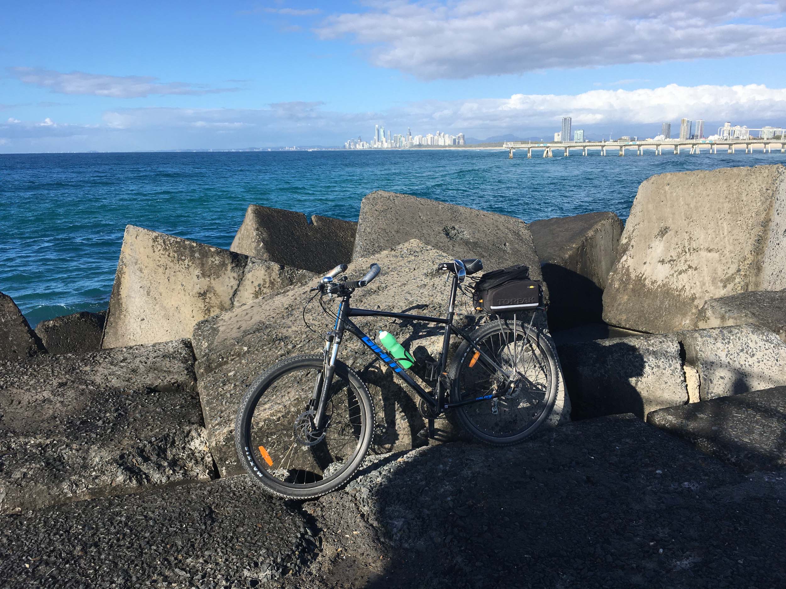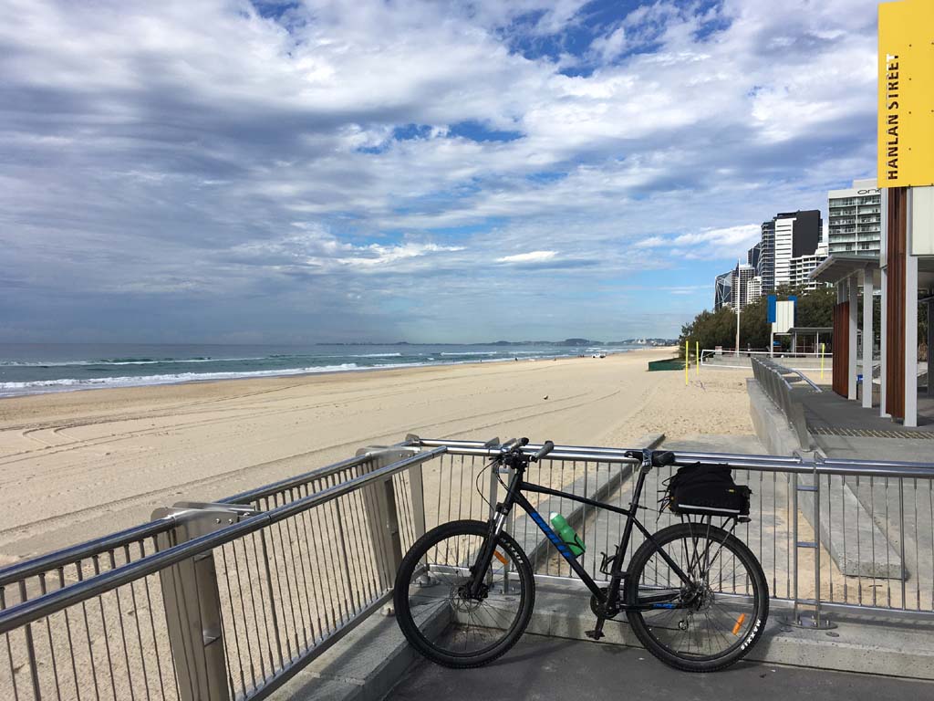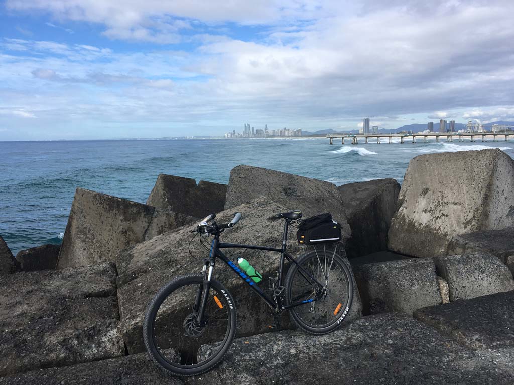 Home to Turnaround Pt down to Surfers via GC600 Park to Robbies Cafe to The Spit (both ends) then back through GC600 Park back to the Turnaround Pt and finally back Home about 60kms.