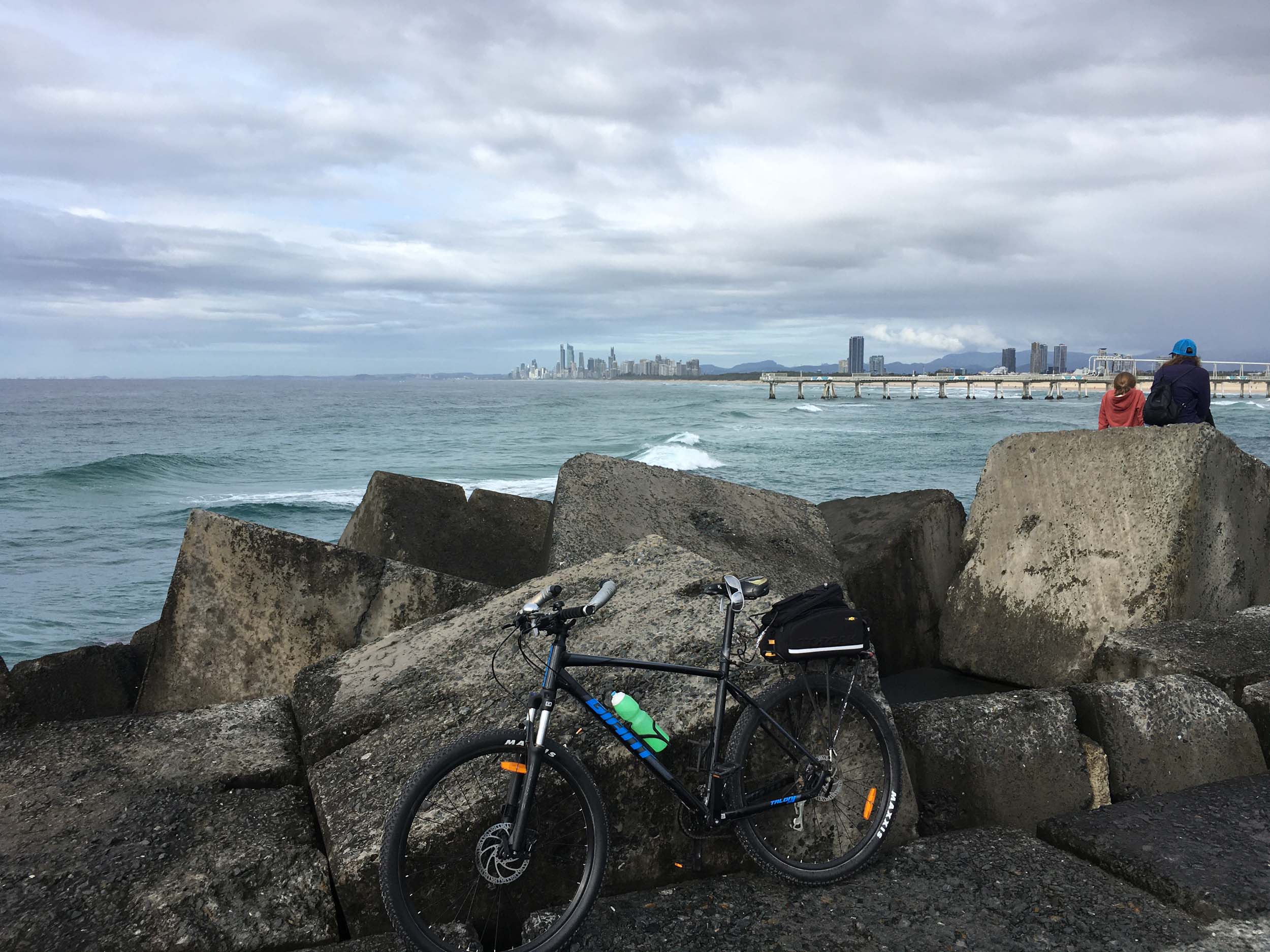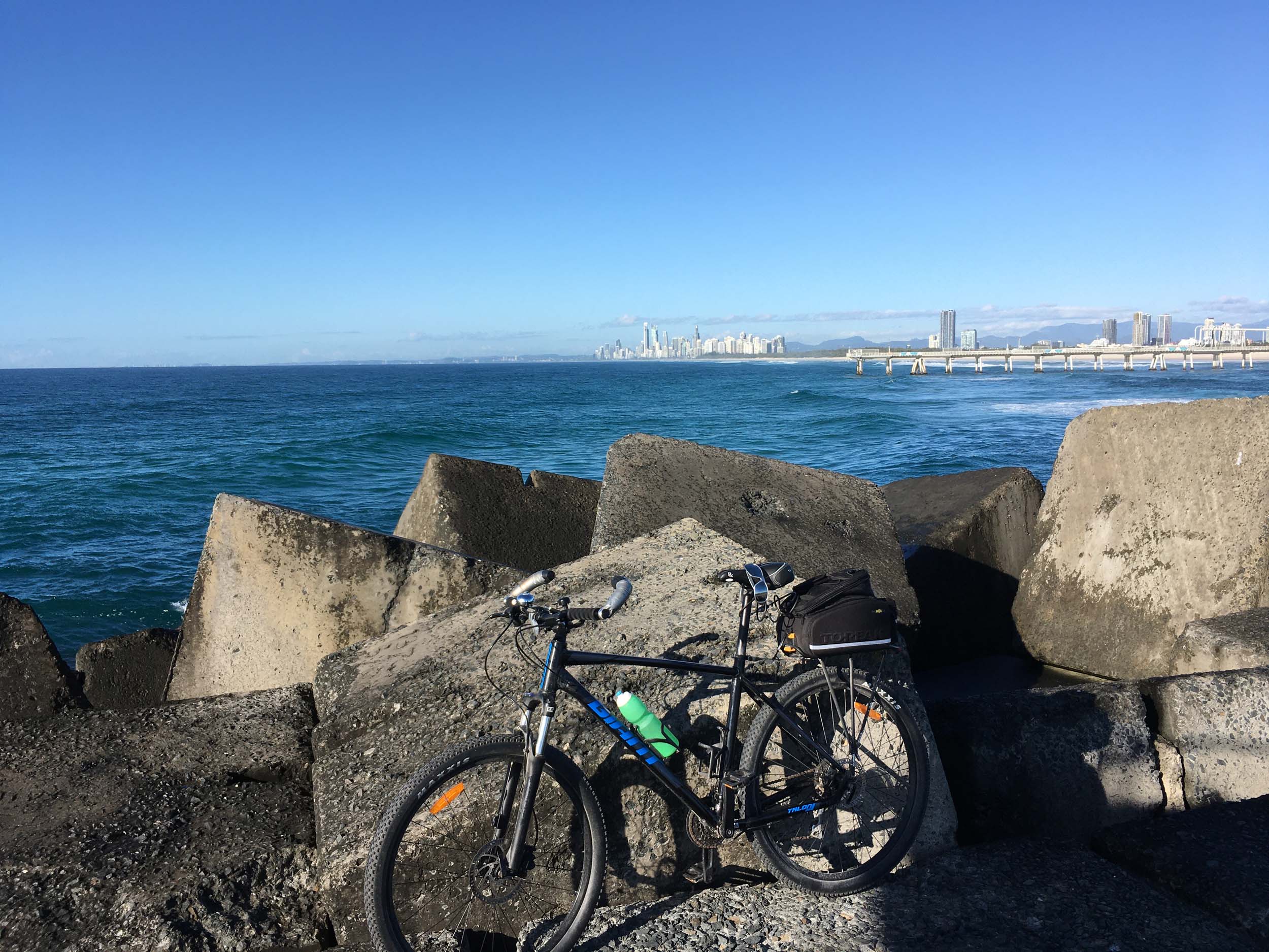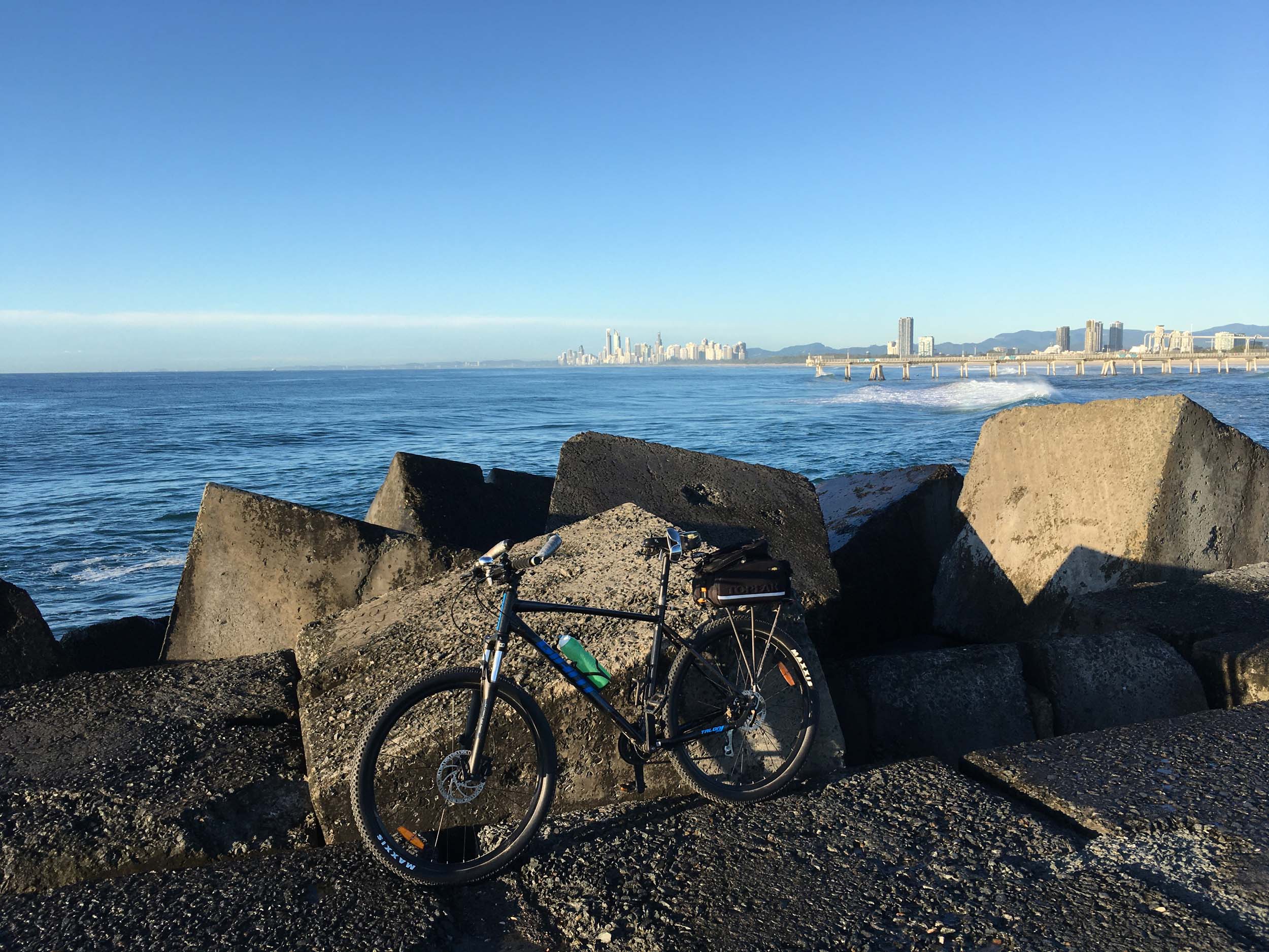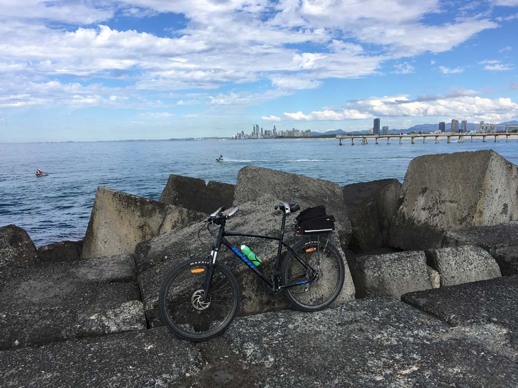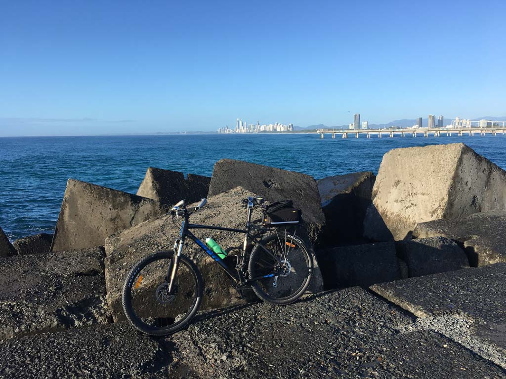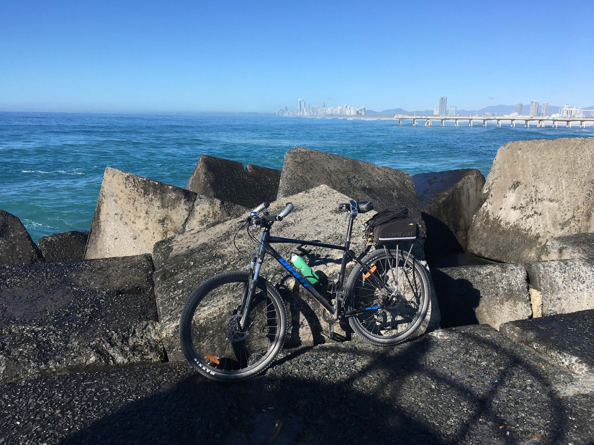 Home to Turnaround Pt down to Surfers via GC600 Park to Robbies Cafe to The Spit (both ends) then back through GC600 Park back to the Turnaround Pt and finally back Home about 60kms.