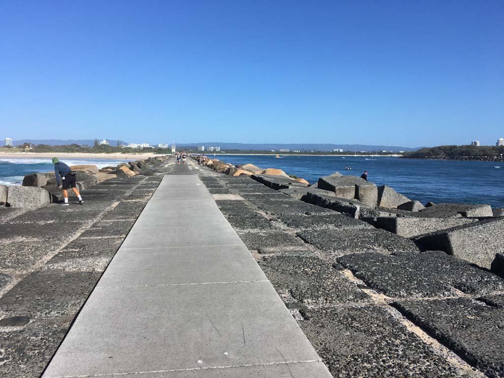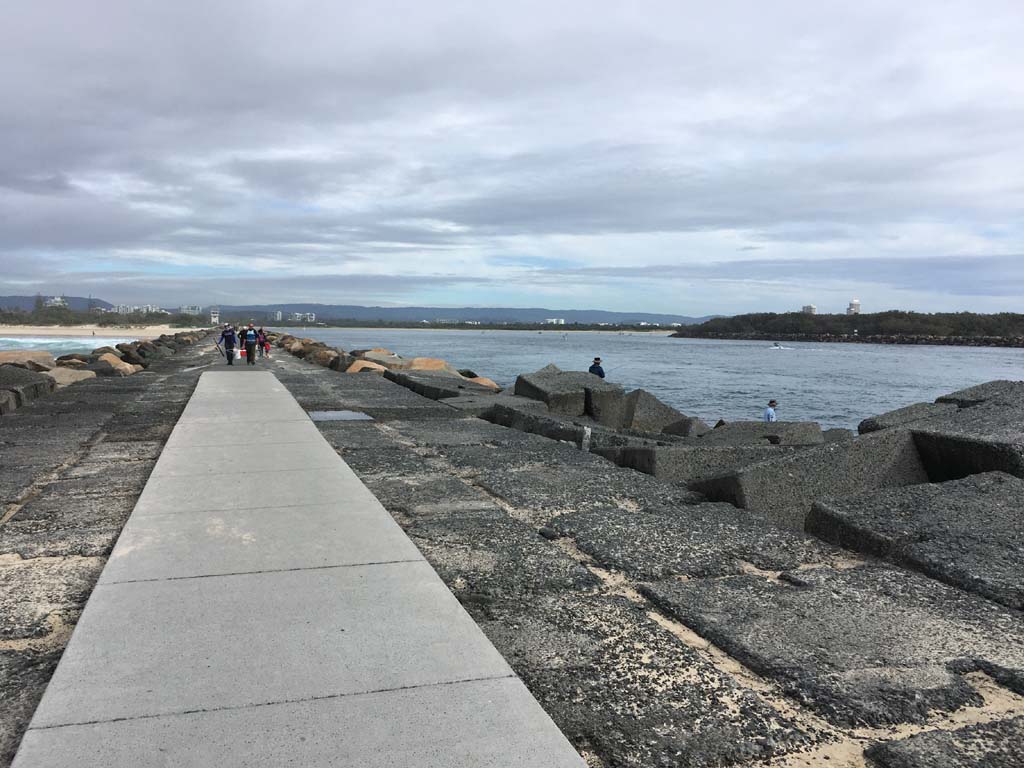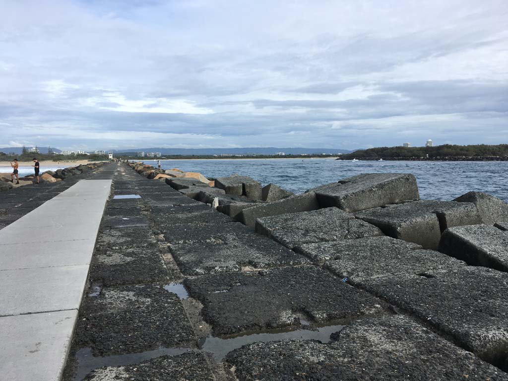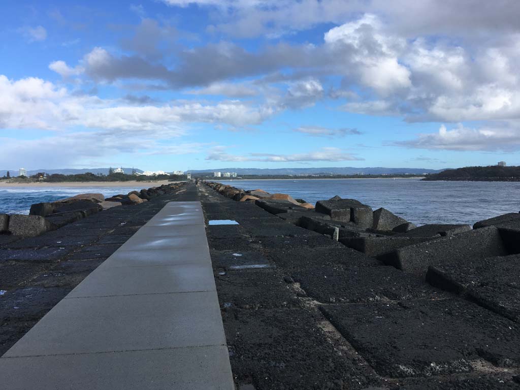 I rode along the road as it is easier. At the Southport YC roundabout and Seaworld Drive, there are major roundabout reconstructions going on. I continued along Seaworld Drive, then rode out to the end of Moondarewa Spit (inland spit). Then a lap of the Doug Jennings Park, then out to the end of The Spit (seaward spit). Dodged all the walkers and sat at the end and ate my banana. Took a photo of the waves breaking over the Spit. Rode another lap of Moondarewa Spit and another lap of the shared path of the Doug Jennings Park. Then rode back along the seaway path to the start of the Federation Walk.