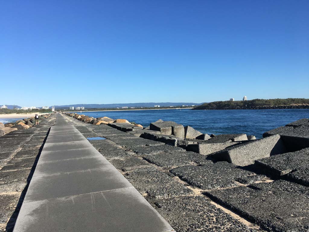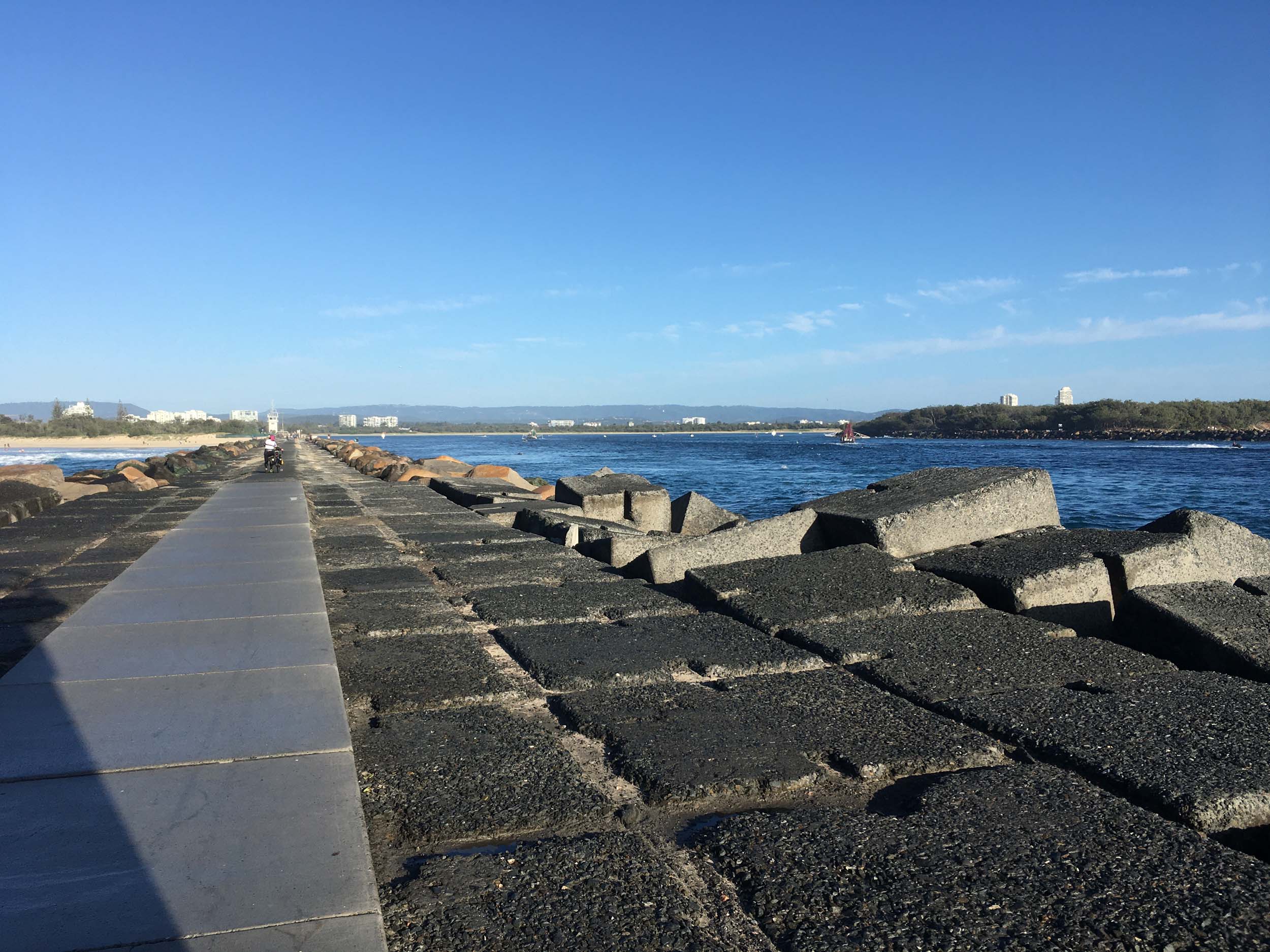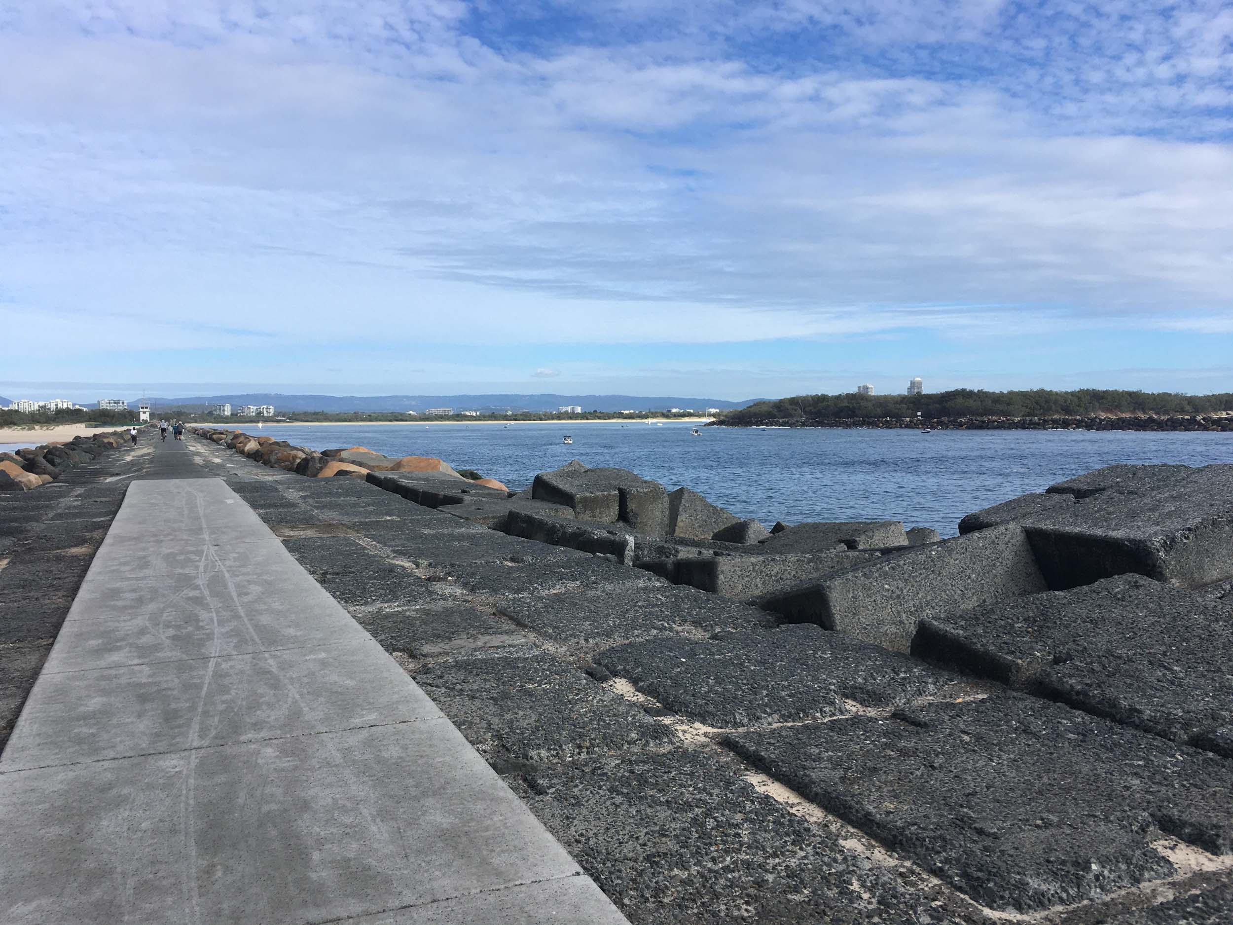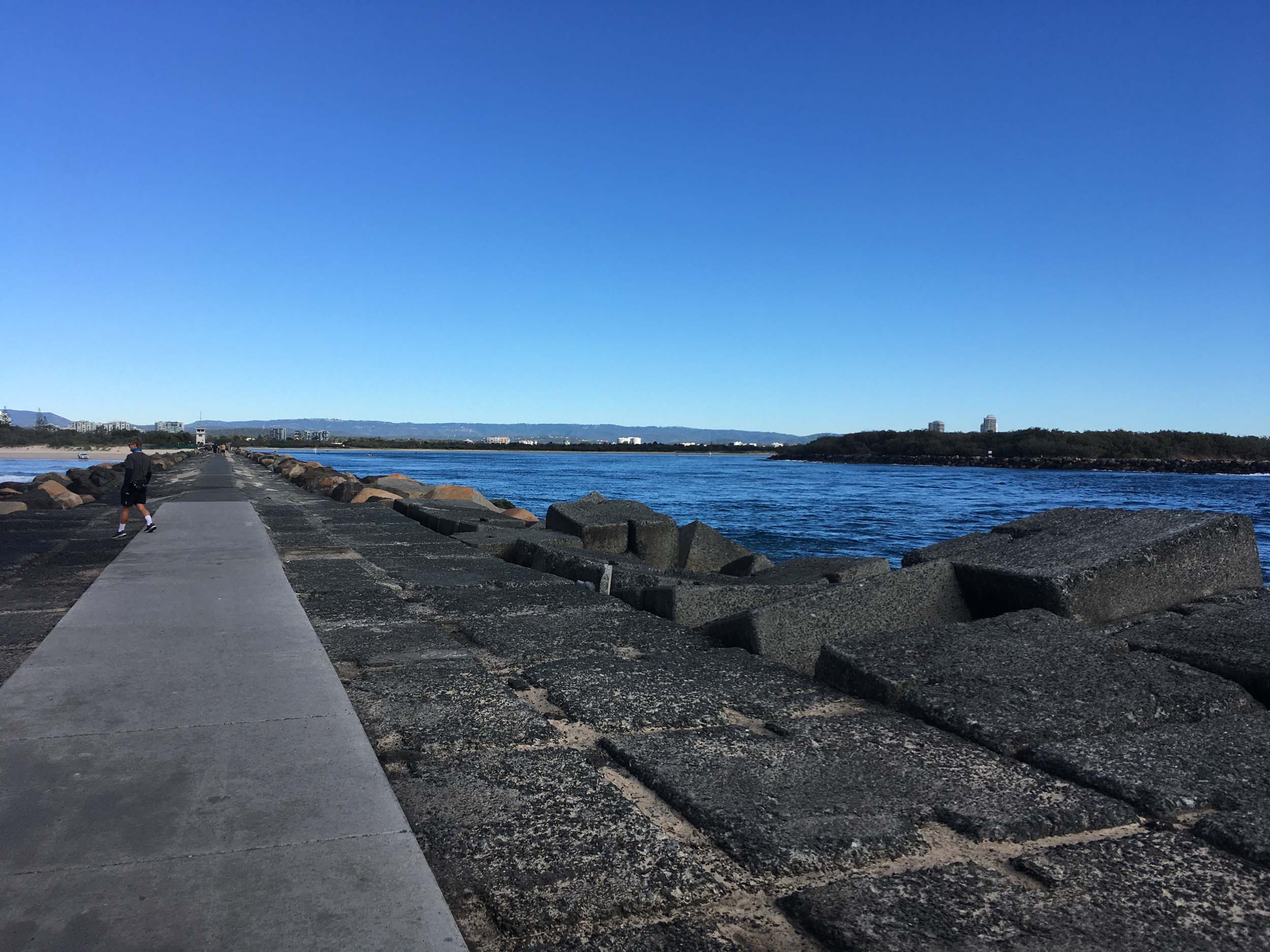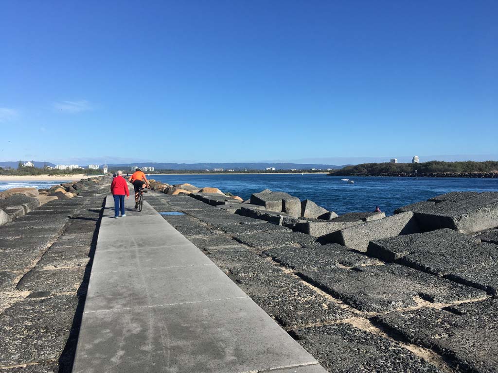 I rode along Federation Walk to the Seaway then rode a lap of Doug Jennings Park (1.5km), then another lap extending to the end of Moondarewa Spit (inland spit) (3.5km). Then another lap of the Doug Jennings Park, then out to the end of The Spit (seaward spit). Sat on my rock, and ate my banana. Then repeated my ride back to Moondarewa Spit and another lap of the shared path of the Doug Jennings Park. Then rode back along the gravel path again. Past the Southport SLSC. Arriving back at MacIntosh island, rode 1 lap, stopped for some water and took off my tights before heading homeward.