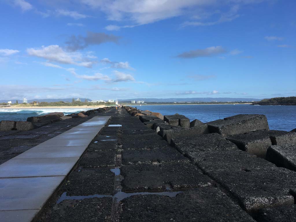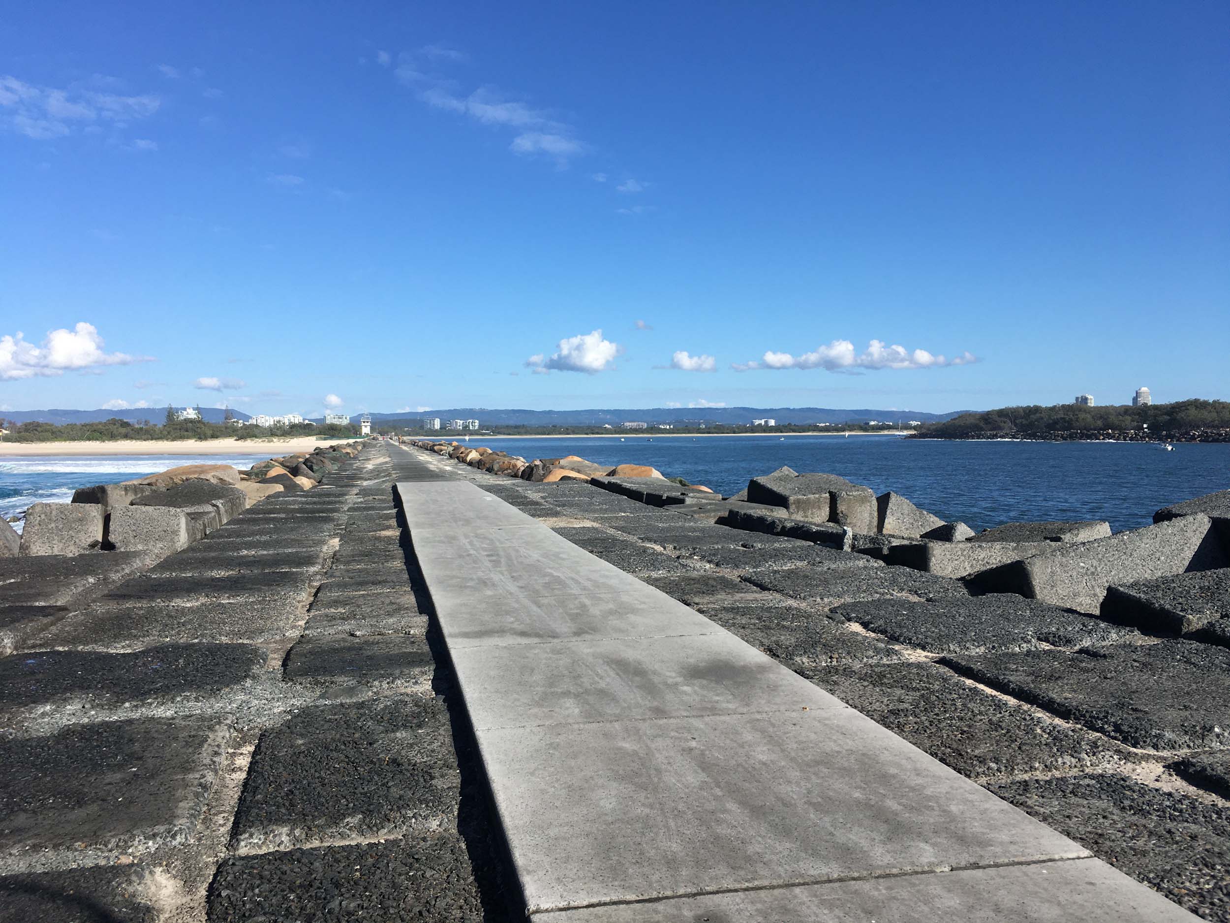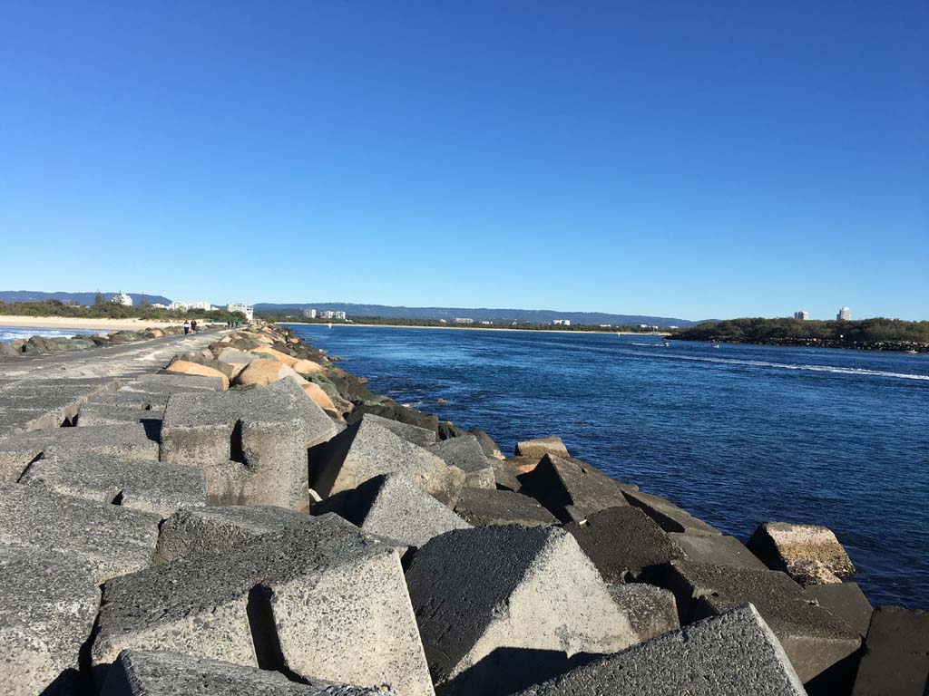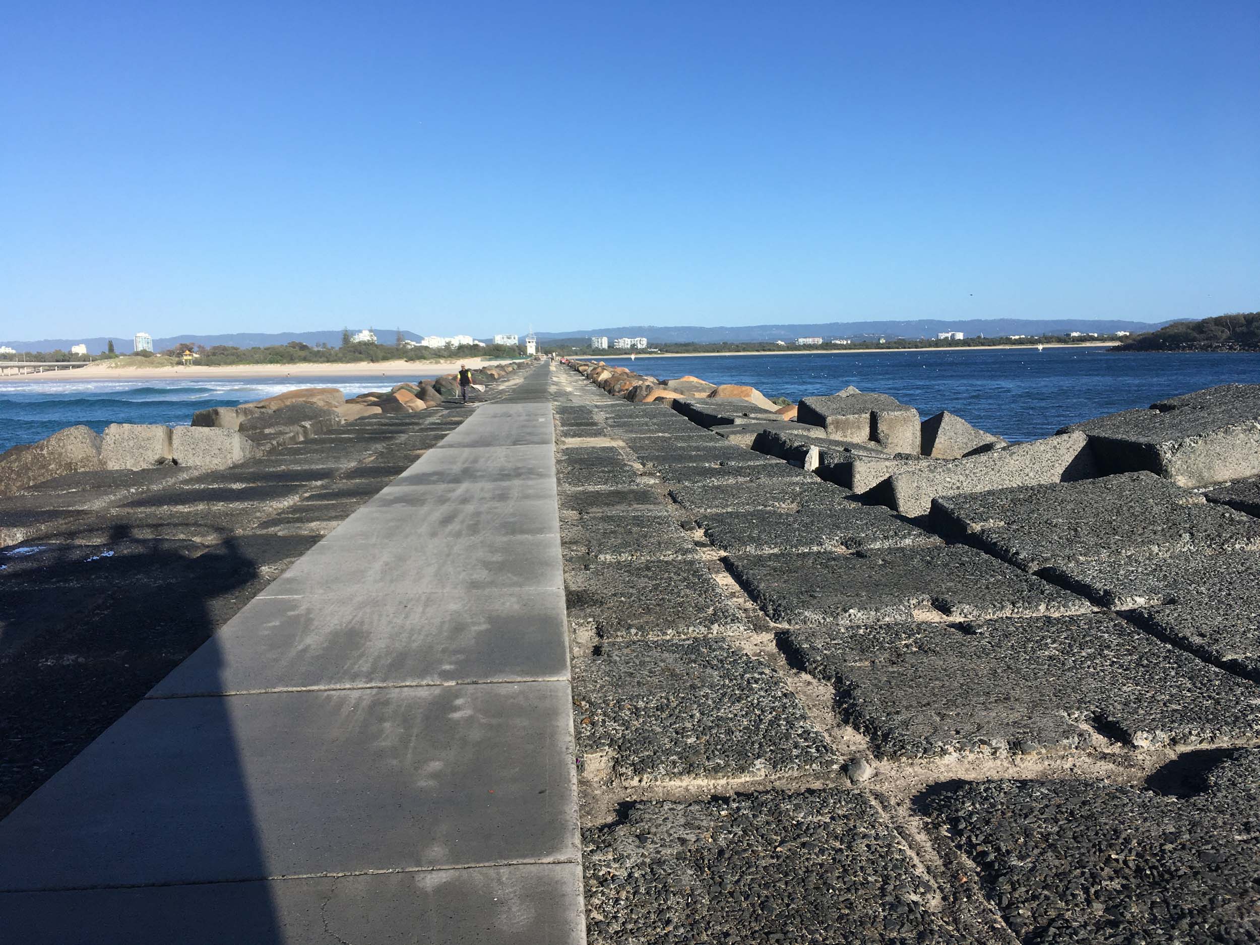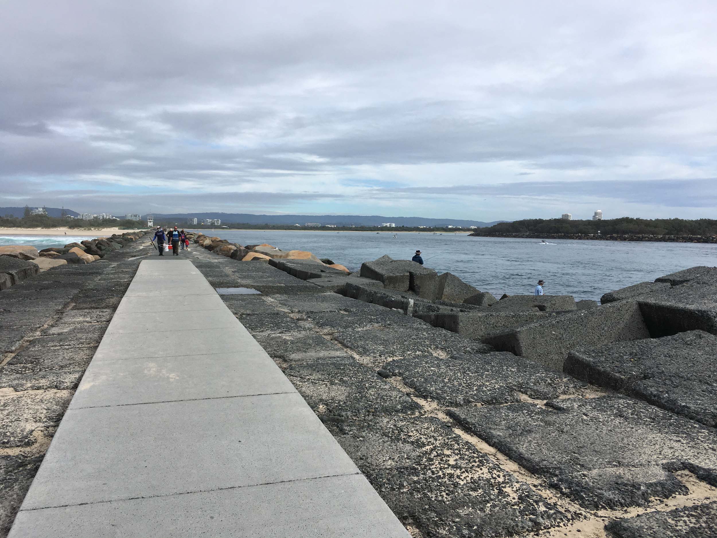 I rode along Federation Walk to the Seaway then rode a lap of Doug Jennings Park (1.5km), then another lap extending to the end of Moondarewa Spit (inland spit) (3.5km). Then another lap of the Doug Jennings Park, then out to the end of The Spit (seaward spit). Sat on my rock, and ate my banana. Then repeated my ride back to Moondarewa Spit and another lap of the shared path of the Doug Jennings Park. Then rode back along the gravel path again. Past the Southport SLSC. Arriving back at MacIntosh island, rode 1 lap, stopped for some water and took off my tights before heading homeward.