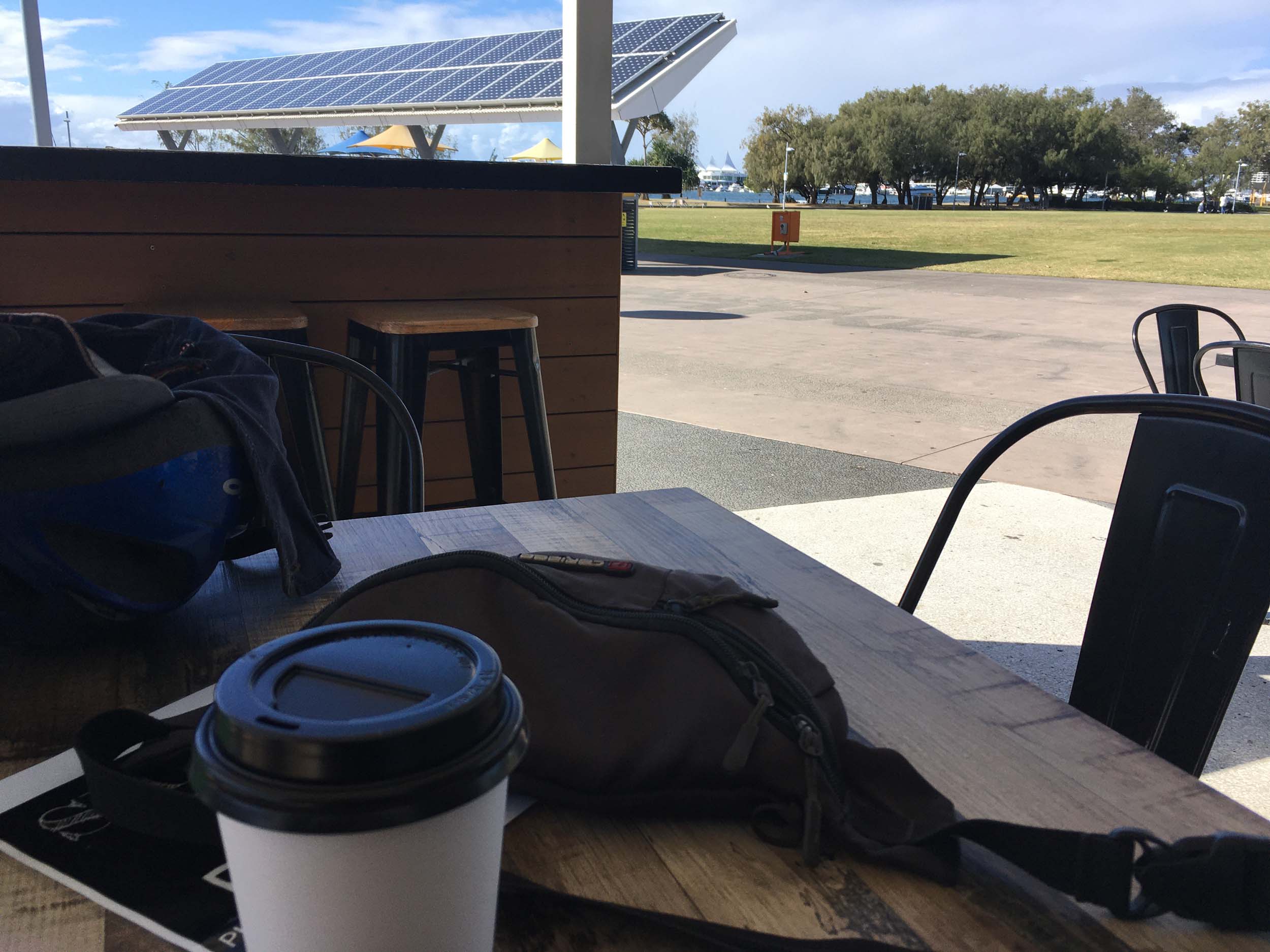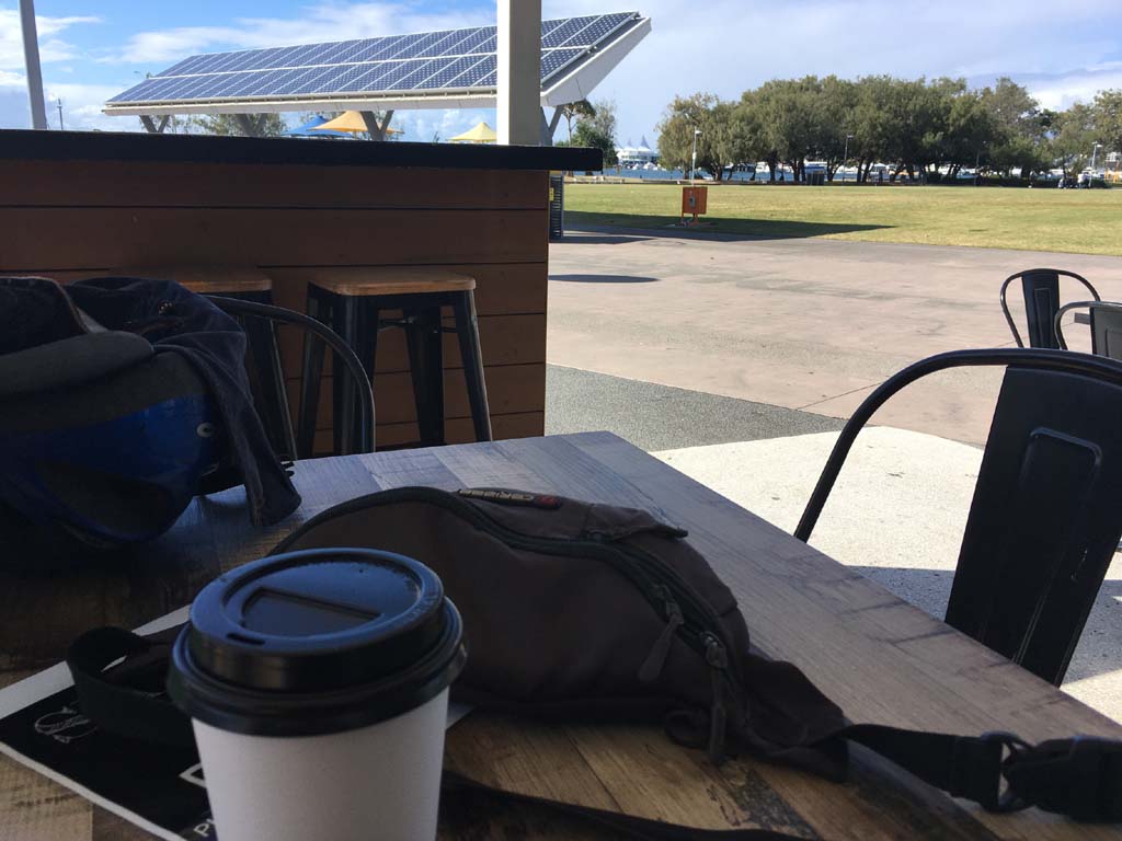 As I approached cafe Rockpool, there were 3 tables and chairs out the front with nobody there, SO I stopped for a coffee. It was great.