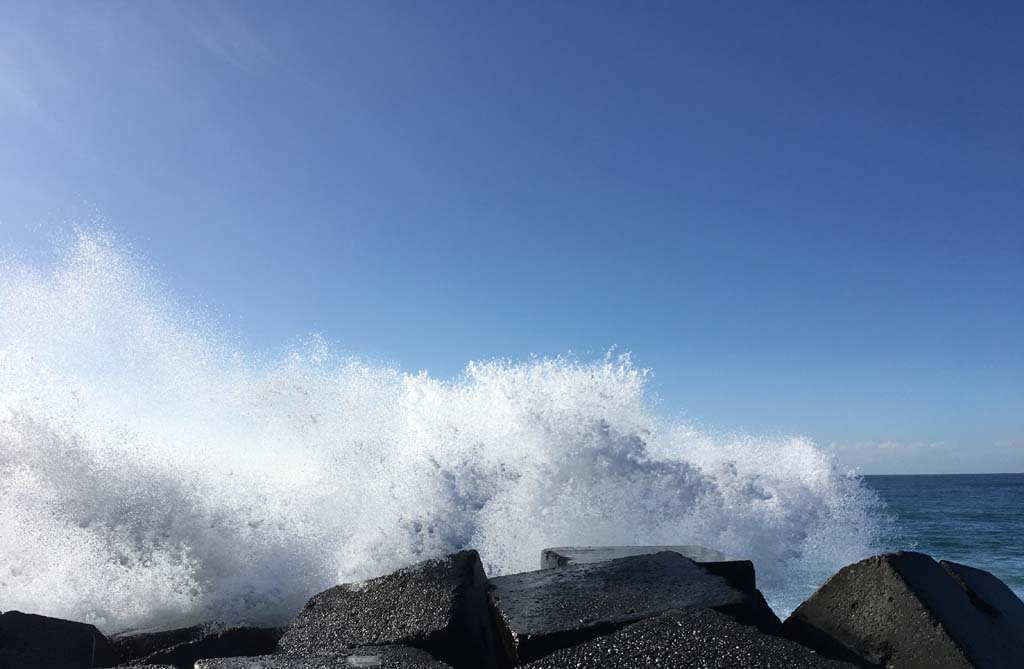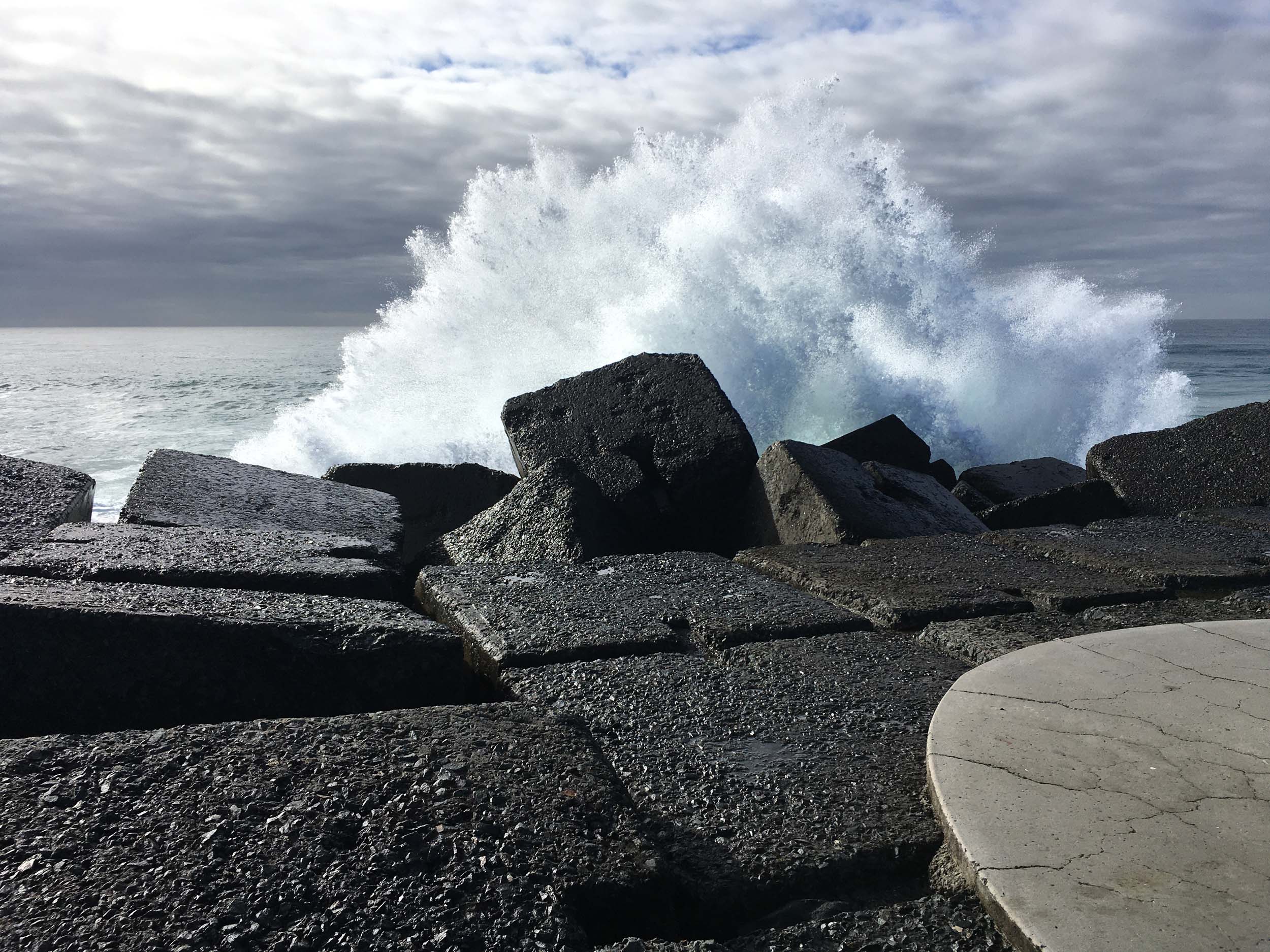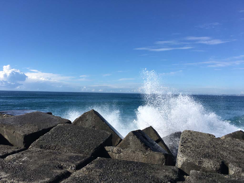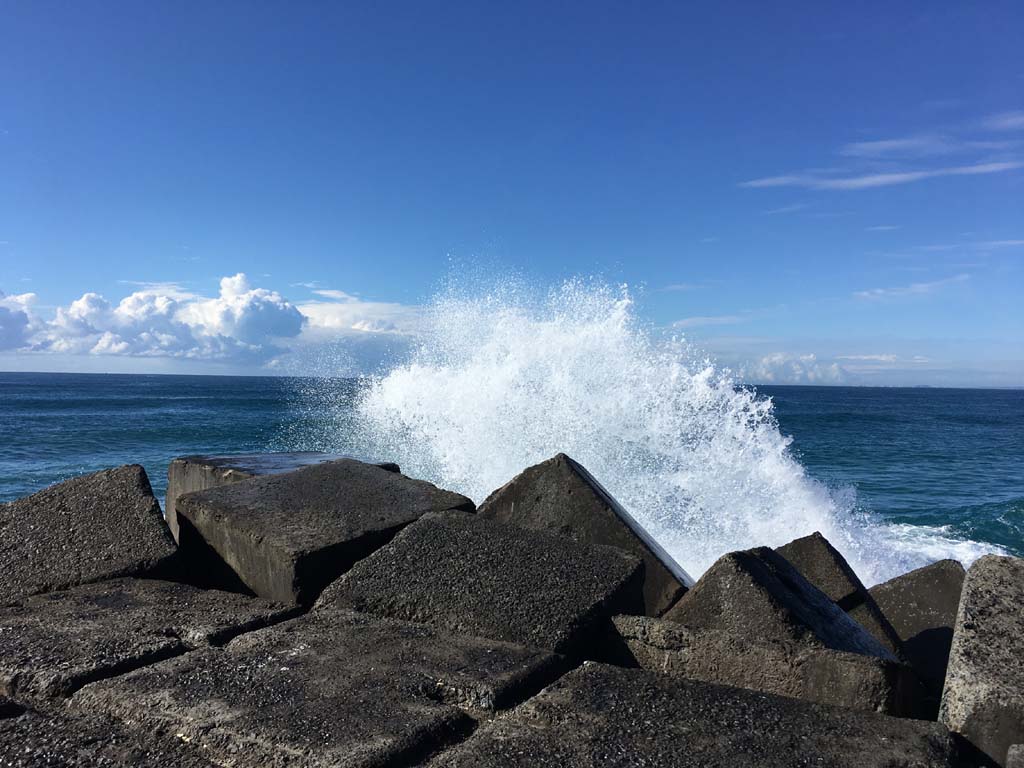 I rode along Federation Walk (the gravel track) The surf was large, so there were heaps of surfers to be seen. Rode to the end of the Spit and got damp from the spray caused by the waves crashing against the Seawall. I could still sit on my rock and ate my banana.
