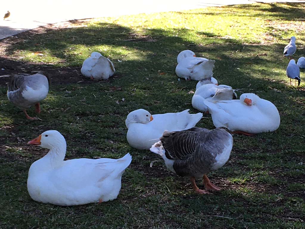 I rode back along Seaworld Drive, then along the gravel path back to Southport SLSC and then along the road to MacIntosh island. Stopped for some water and watched Goosey Lucy and mates just lazing in the sun, just off the shared path. I then headed homeward, with a beautiful tailwind the whole way. Very, very pleasant.