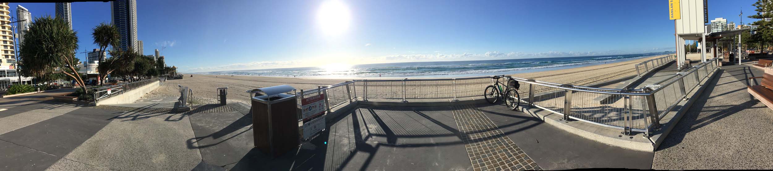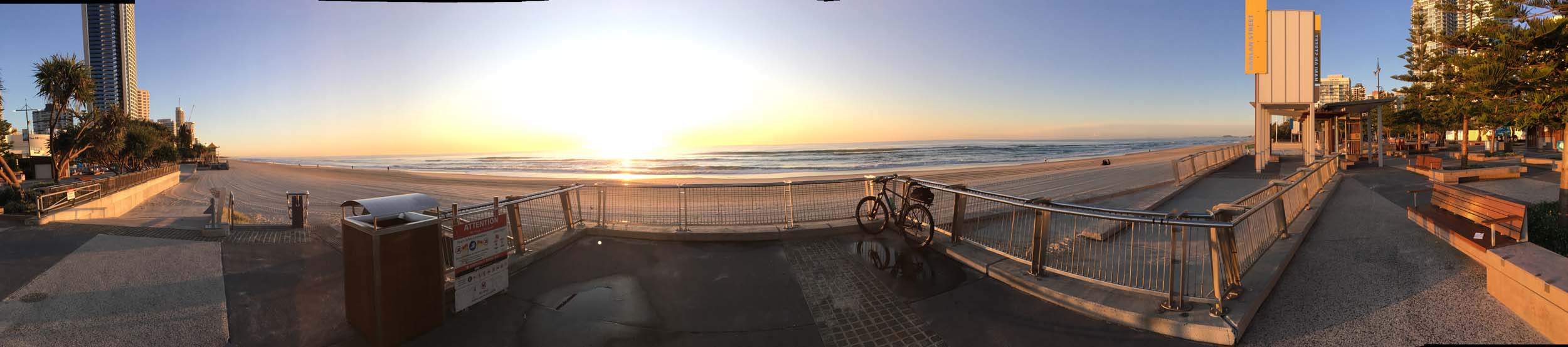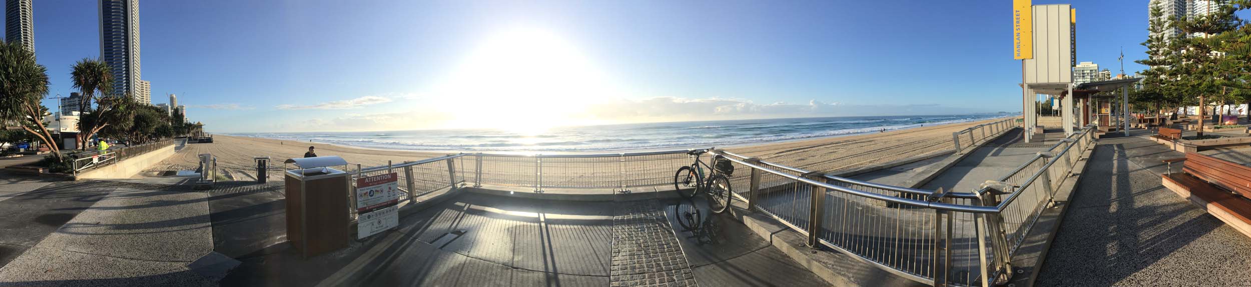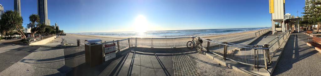 I left at 6:16am and the breeze was light for the whole ride. Due to the number of walkers on the shared path, I rode on the road from MacIntosh island to Surfers to Southport SLSC, the rest of my ride is on less populated shared paths.