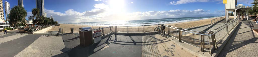 I headed to Surfers along the Esplanade into an awful headwind, and stopped at my usual spot near Hanlan St and took my weather photos. I headed off to the Spit along the Shared path until Narrowneck when I crossed onto the road, with a lovely tailwind. Very nice.