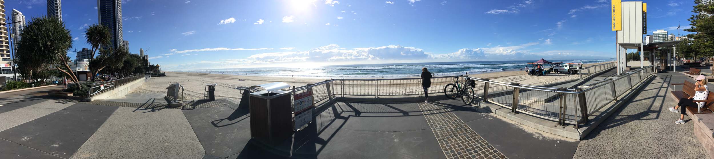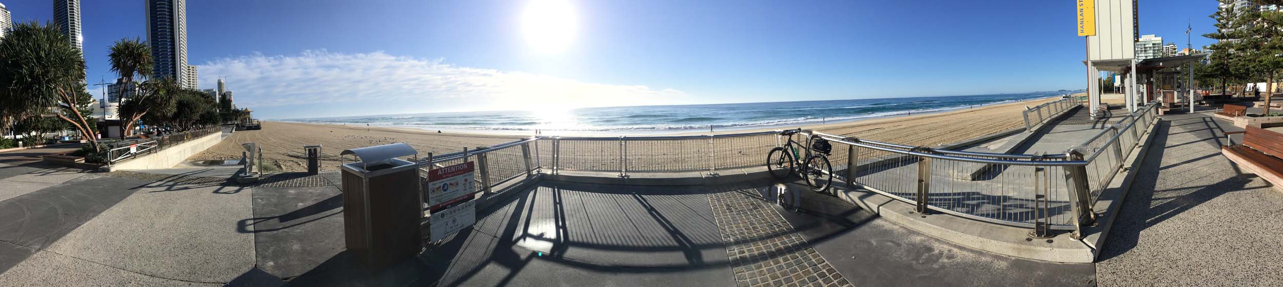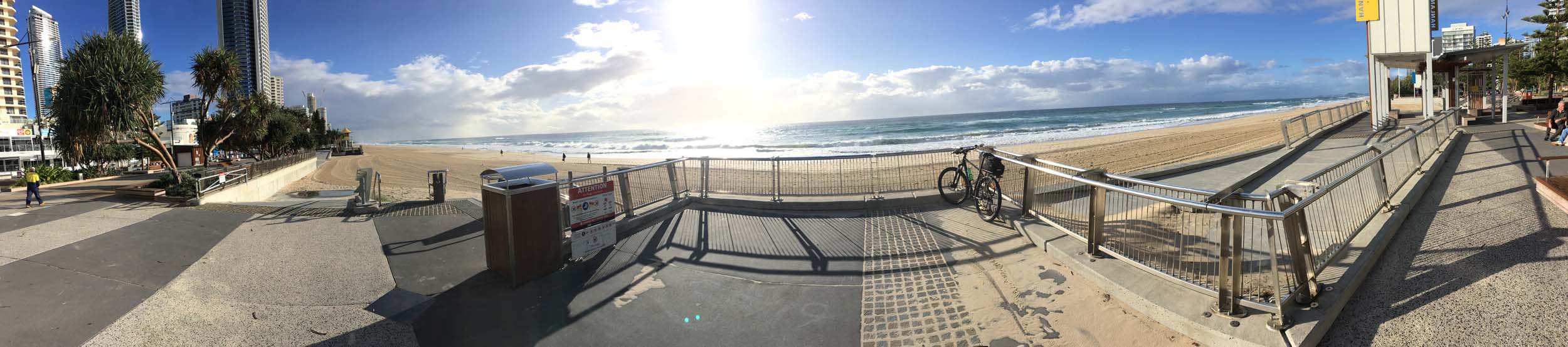 I headed to Surfers along the Esplanade, and stopped at my usual spot near Hanlan St and took my weather photos. I headed off to the Spit along the various shared paths, and weaved between the walkers.