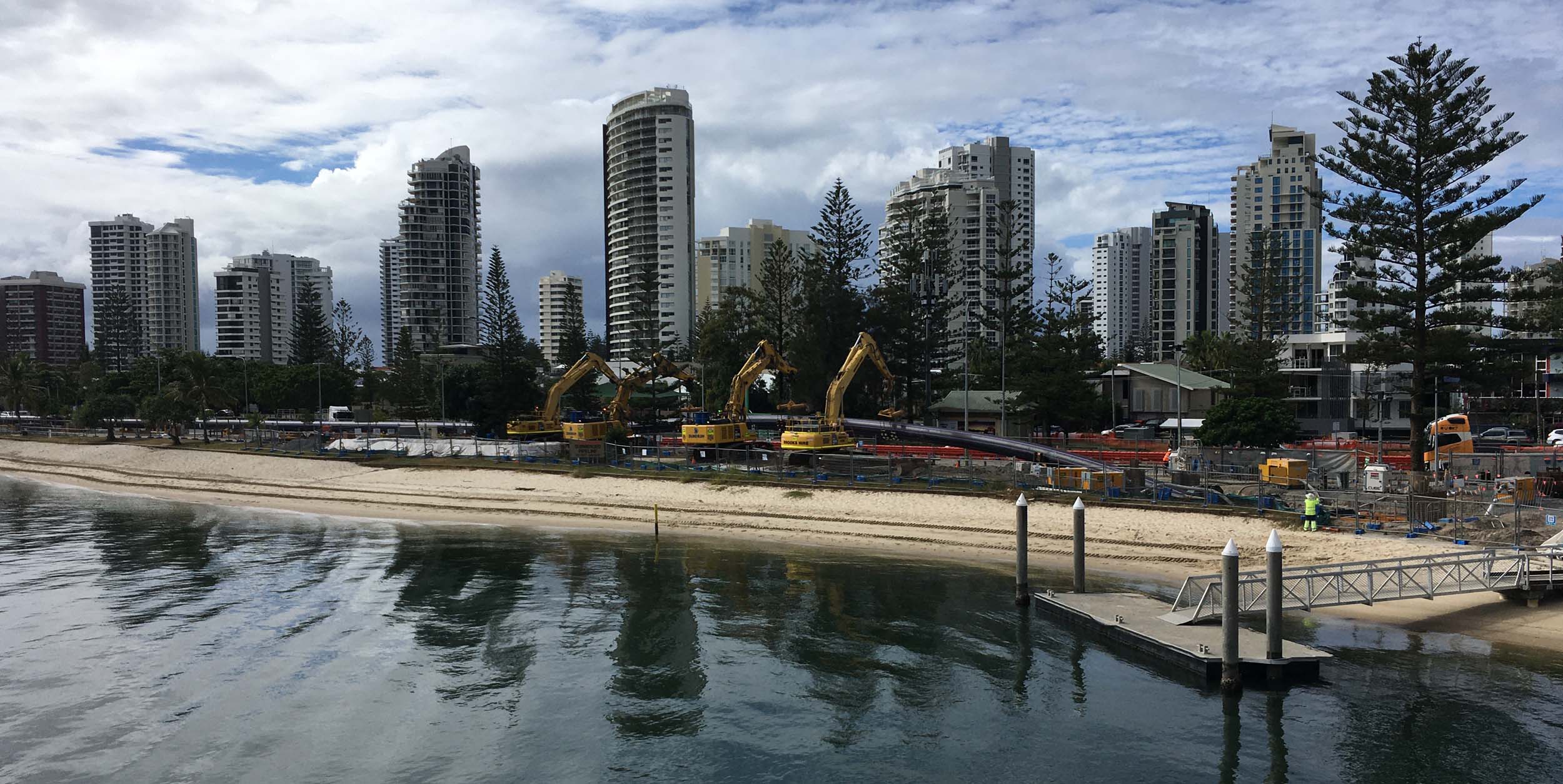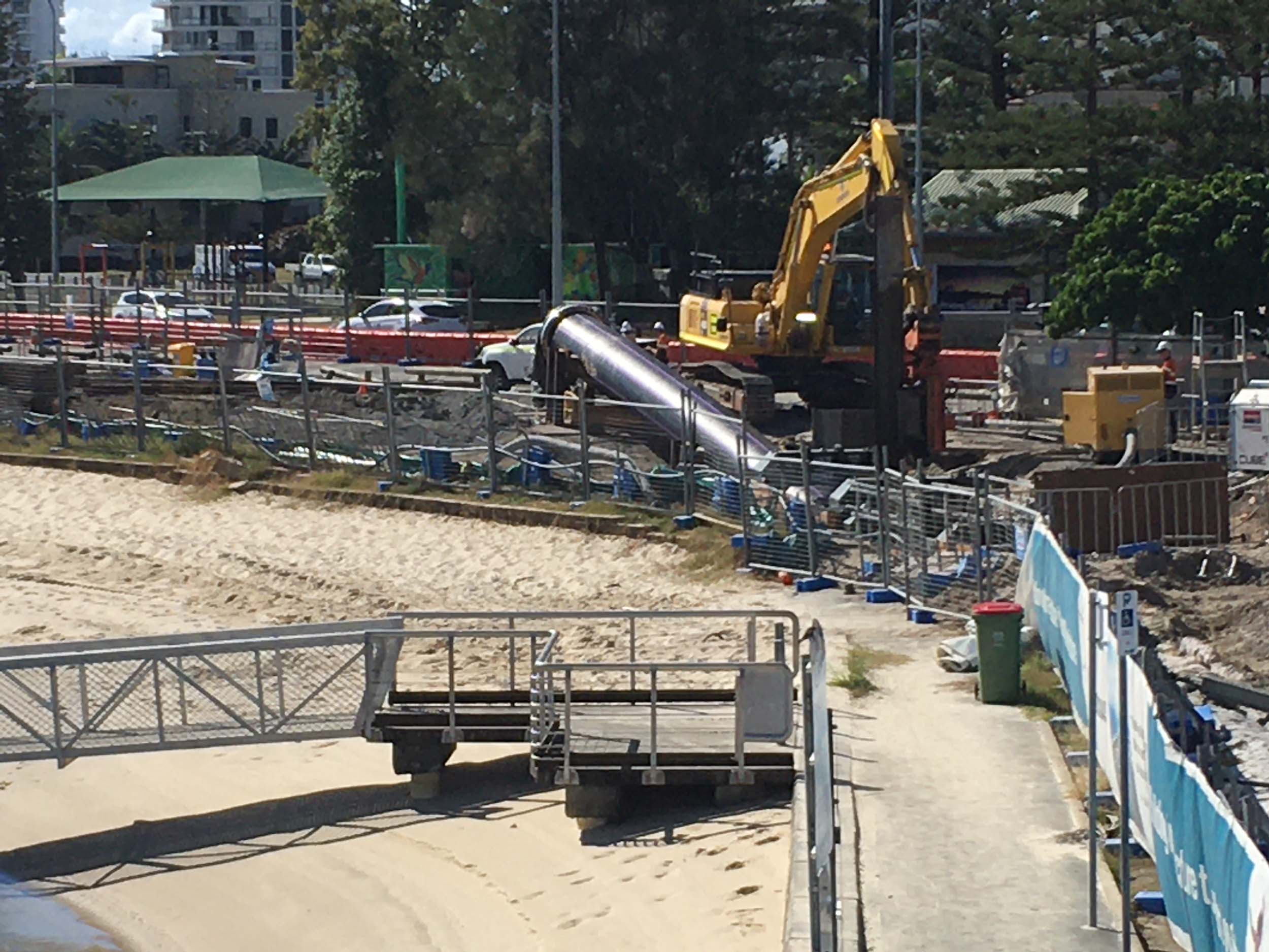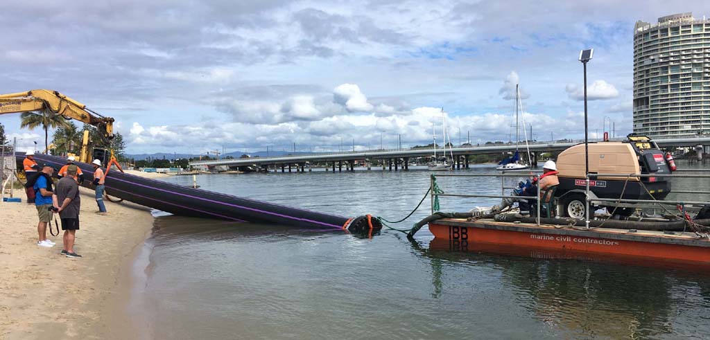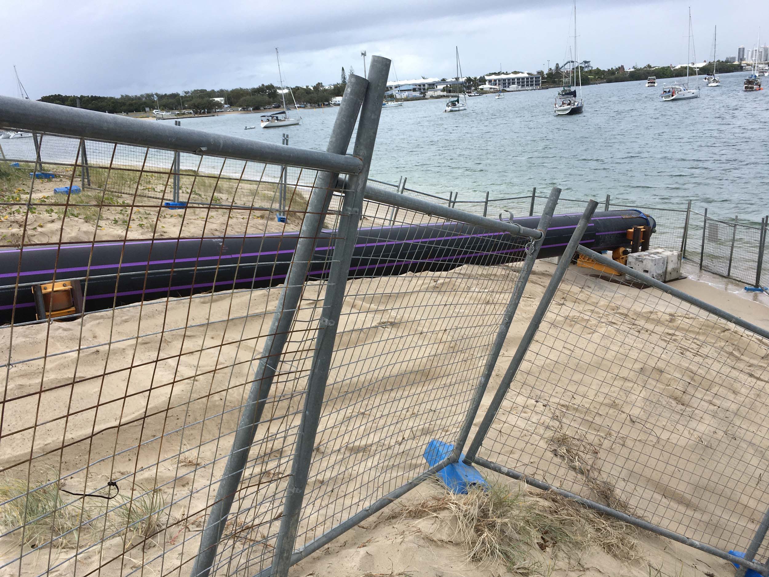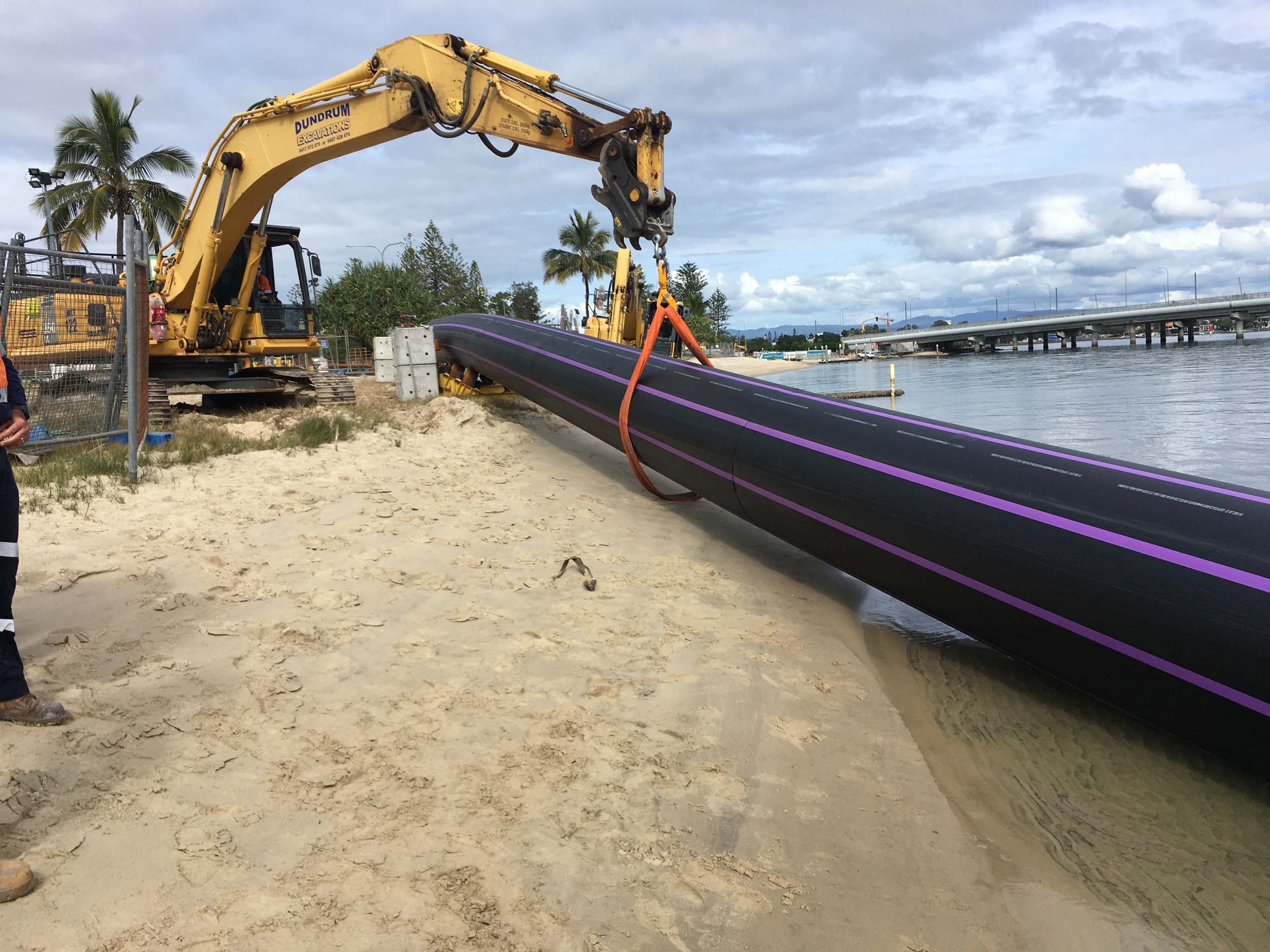 Today's highlight was: watching the 920m long black plastic pipe slowing being dragged under the Nerang River.