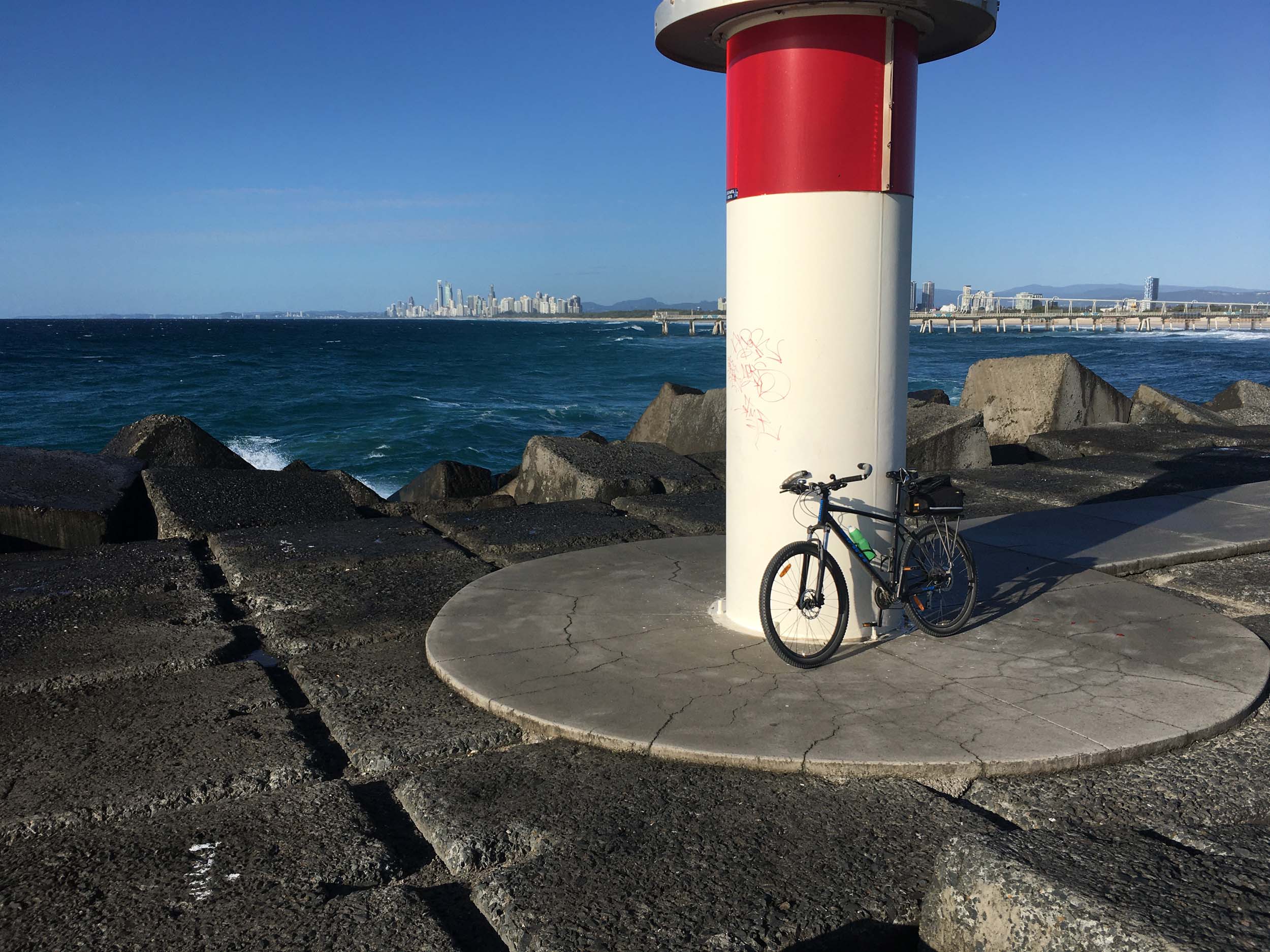 Then rode back along the gravel path again. Past the Southport SLSC. Arriving back at MacIntosh island, rode 1 lap, stopped for some water before heading homeward.