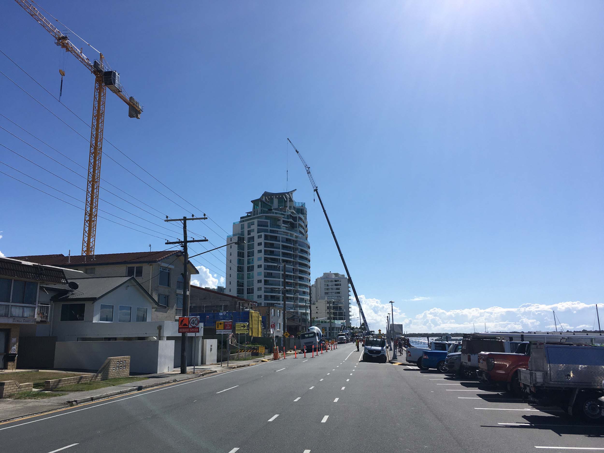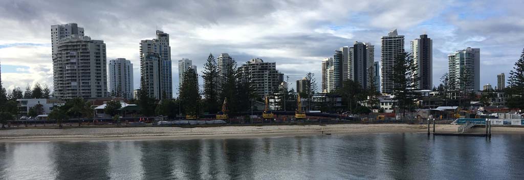 I headed to Surfers along the Esplanade into a light headwind, and continued to Robbie McEwens' Piccolo Espresso cafe. I passed the $1B Jewel 3 towers, it still isn't finished. Rode along the road through Broadbeach, along Hedges Ave and continued down to Robbies. All his tables were occupied, so did a U turn and retraced my route back to Surfers, where I stopped at my usual spot near Hanlan St and took my weather photos. I headed off to the Spit along the Esplanade, with a light tailwind.