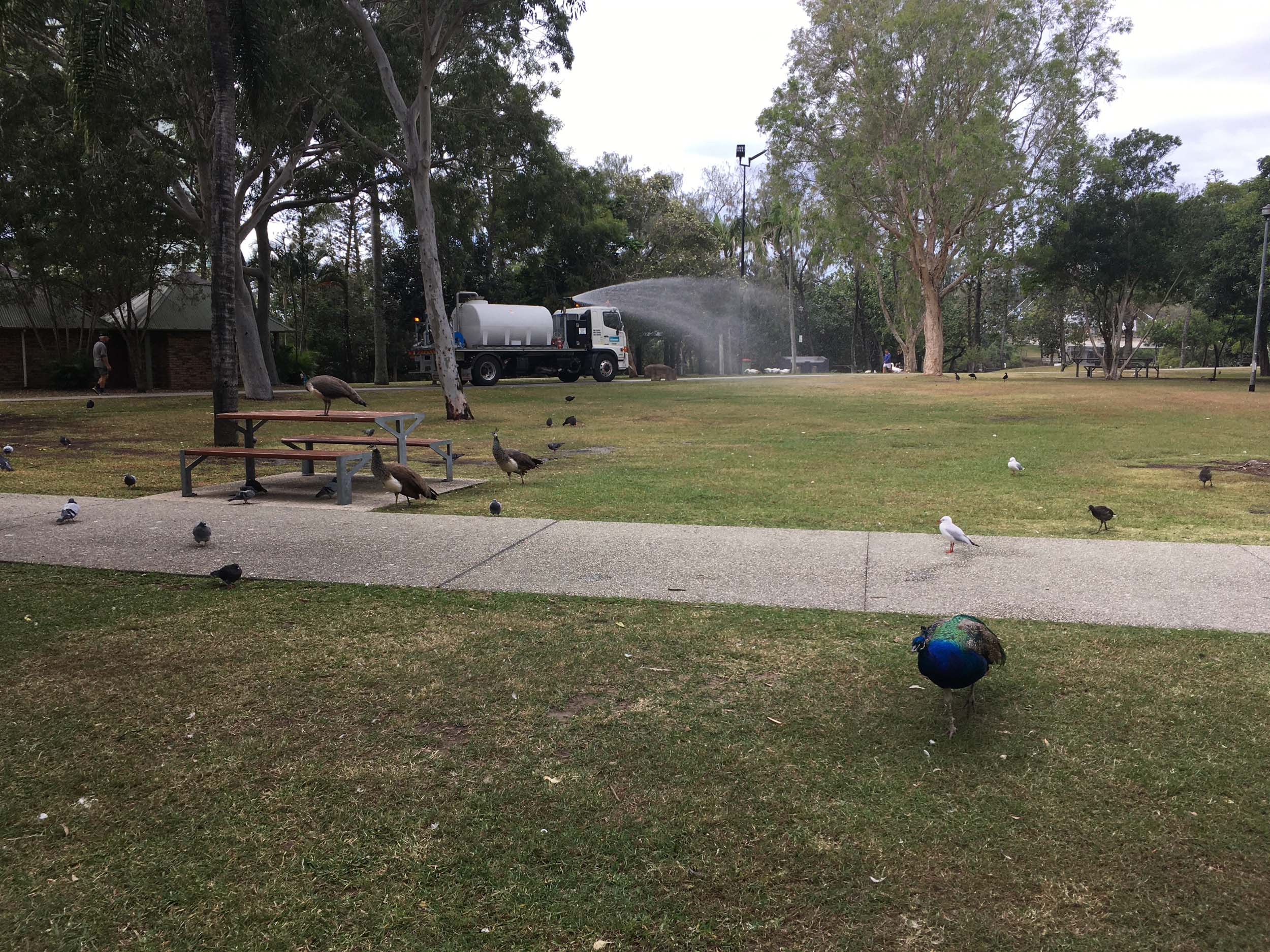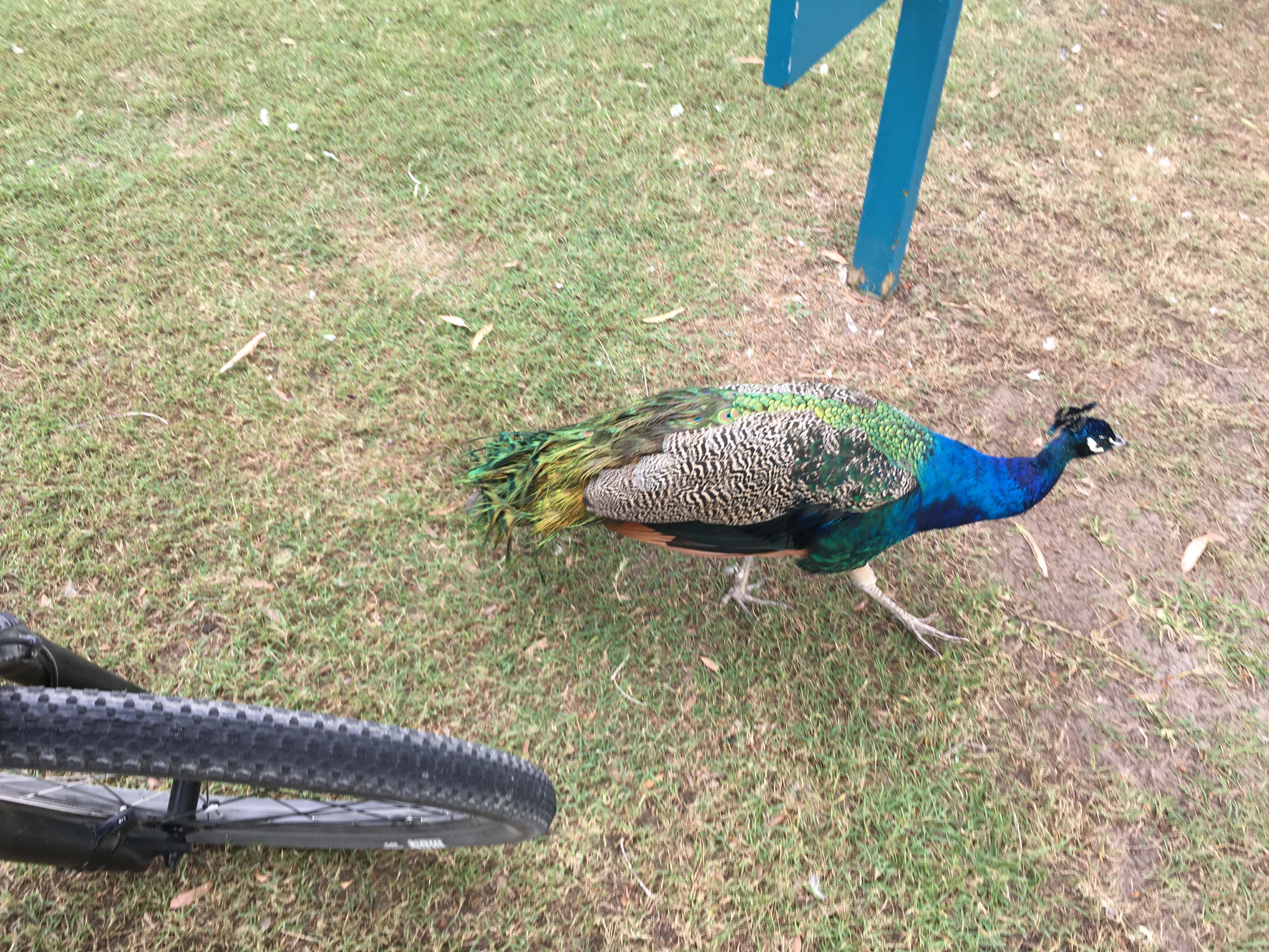 I rode back along the gravel path back to Southport SLSC and then along the road to MacIntosh island. Nige had just locked up Goosey Lucy and mates on thier island and was feeding Peter Peacock and mates before he finished his shift. Stopped for some water before heading homeward, with a slight tailwind the whole way. Quite pleasant.