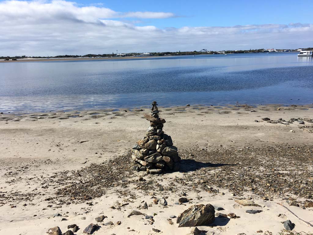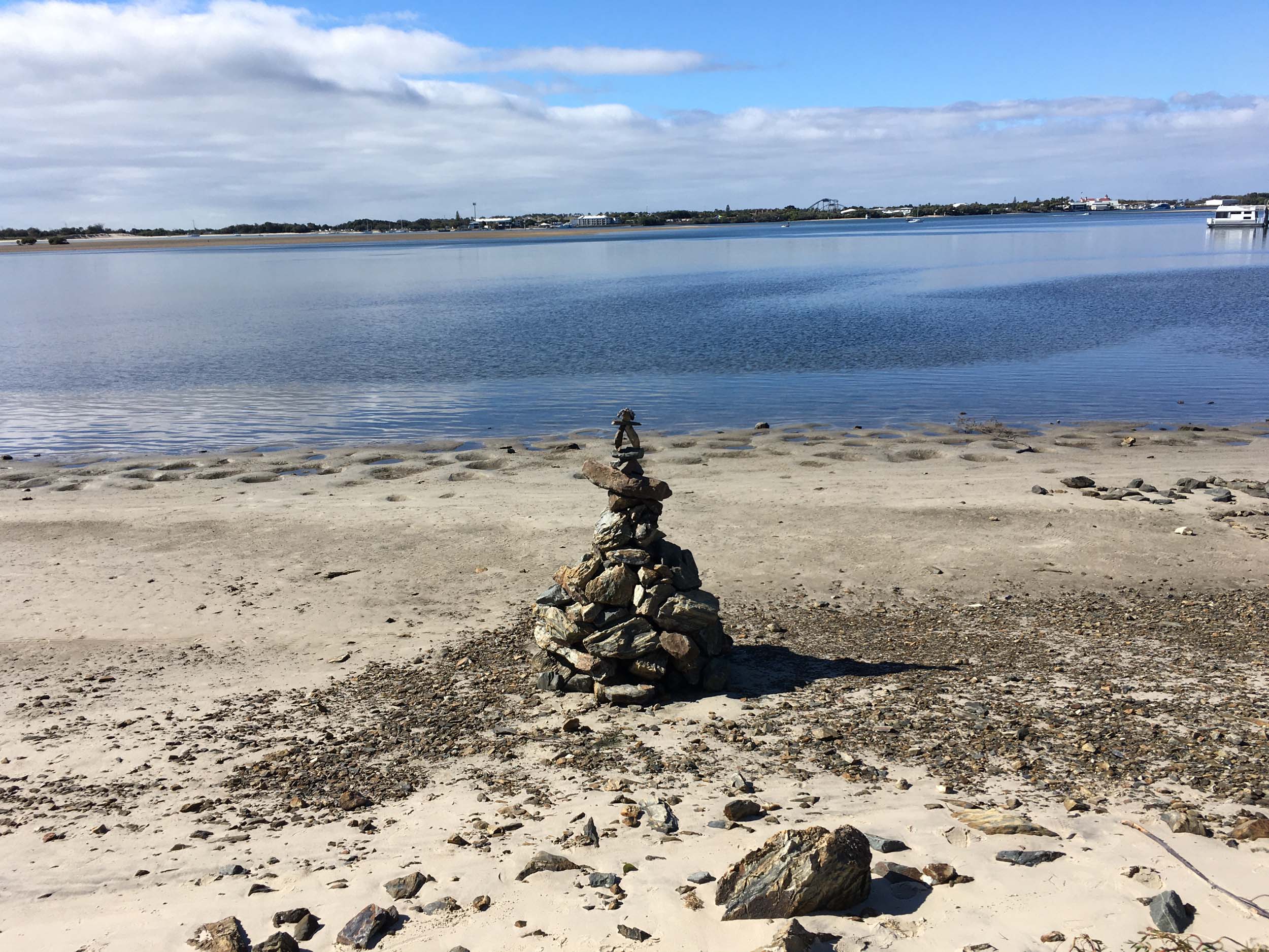 I rode along Federation Walk to the Seaway then rode a lap of Doug Jennings Park (1.5km), then another lap extending to the end of Moondarewa Spit (inland spit) (3.5km). Then another lap of the Doug Jennings Park, then out to the end of The Spit (seaward spit). Sat on my rock, and ate my banana. Then repeated my ride back to Moondarewa Spit and another lap of the shared path of the Doug Jennings Park.