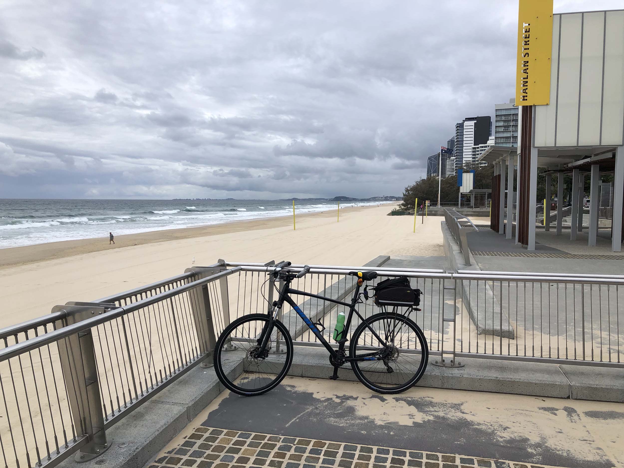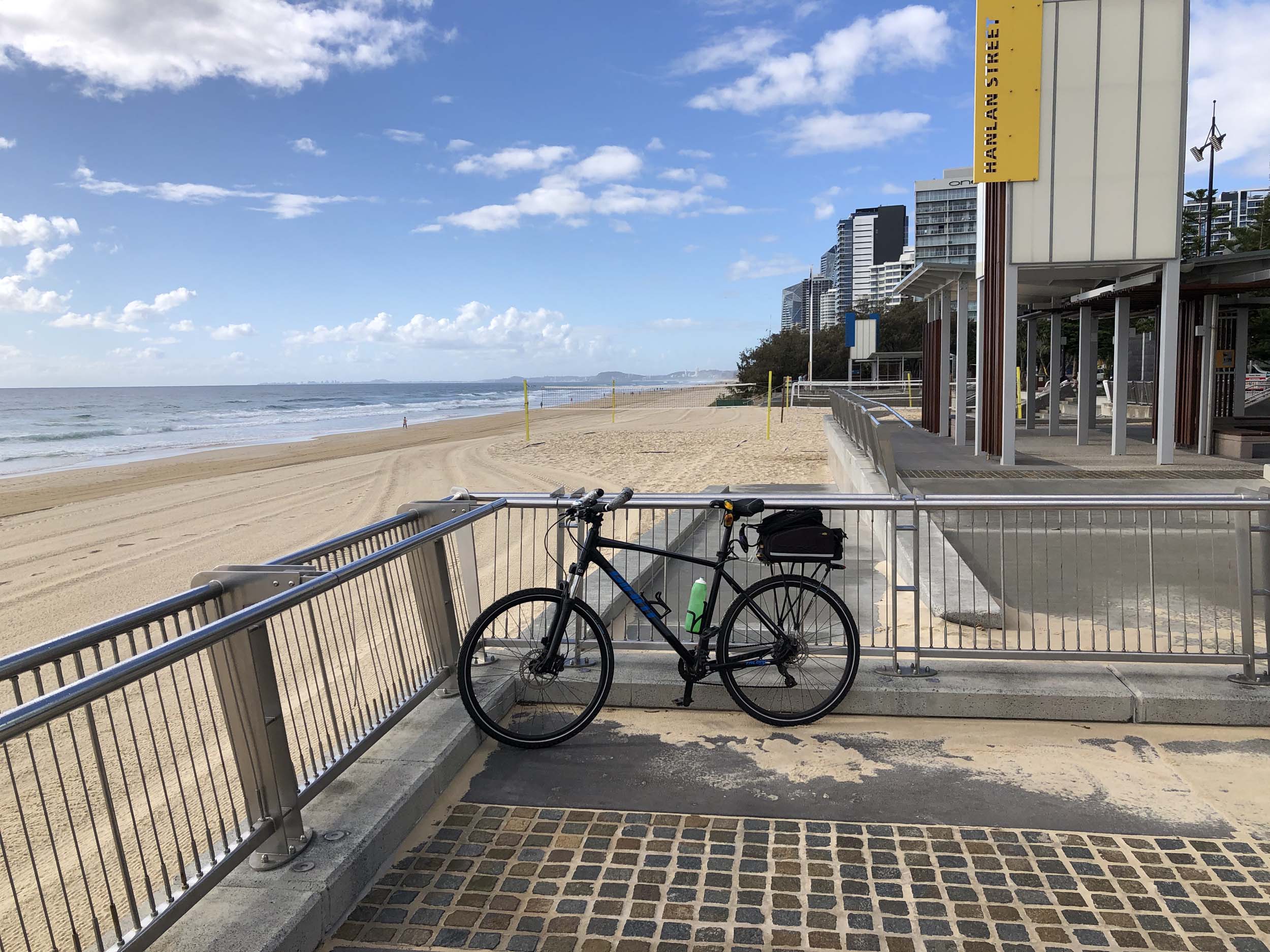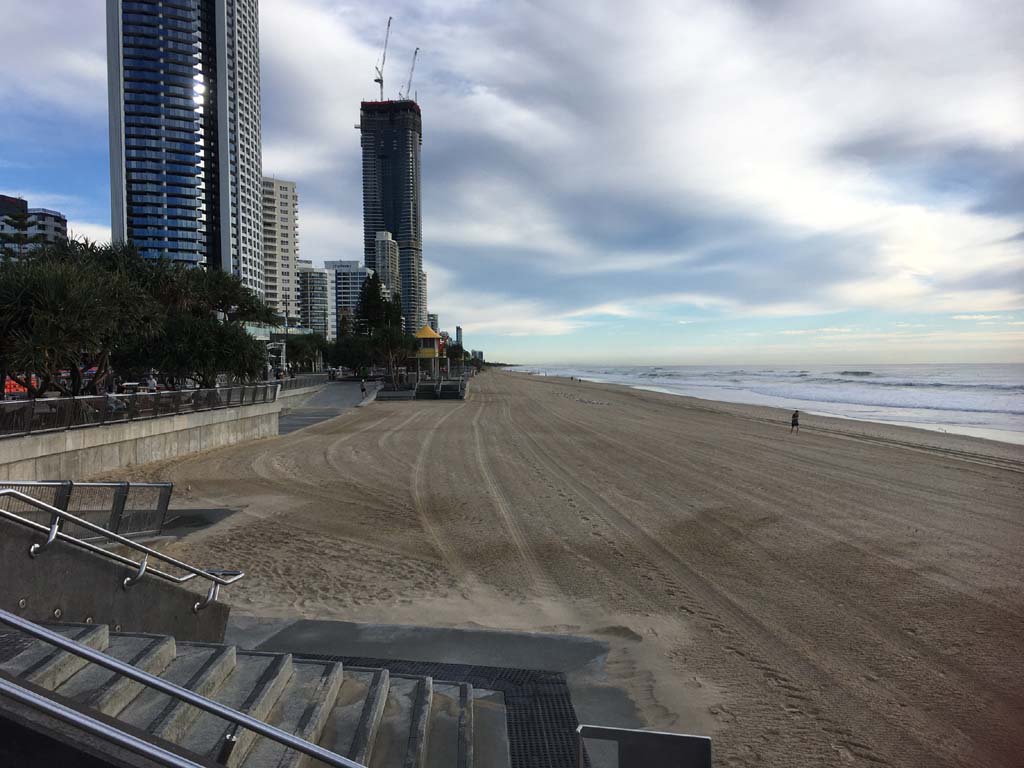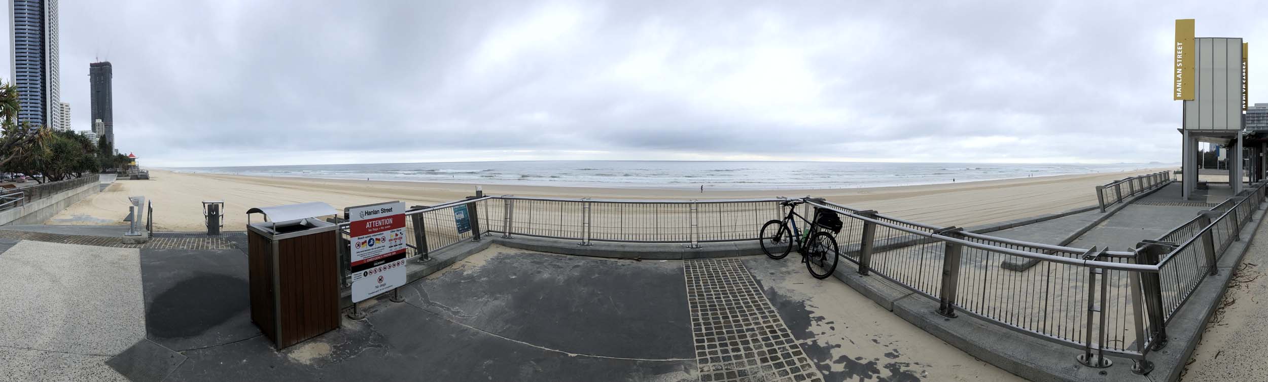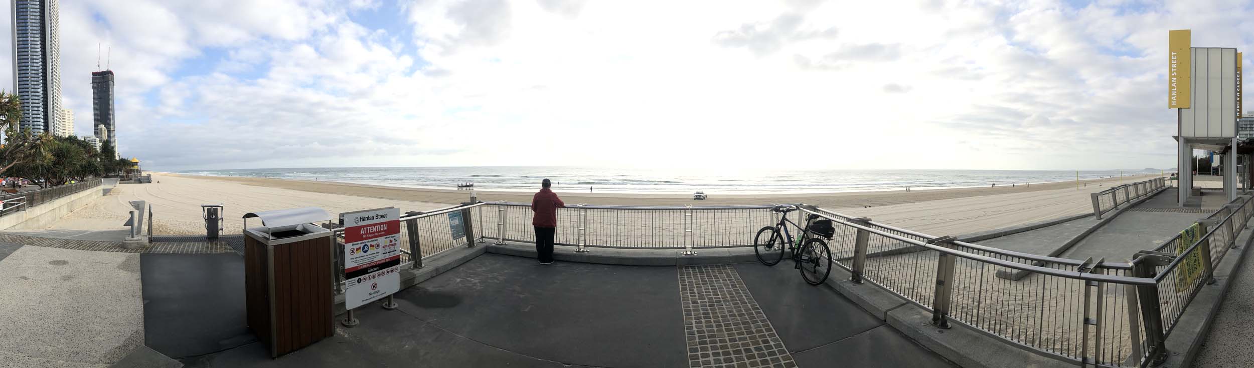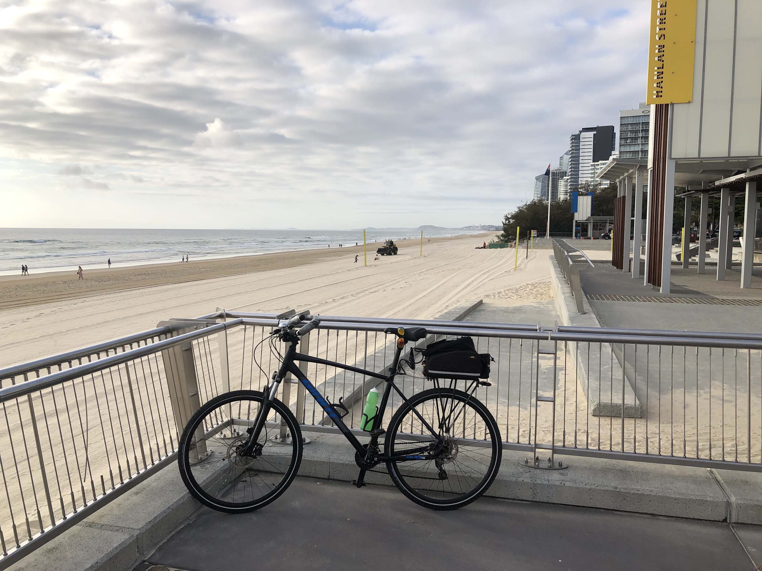 As usual, I rode Northward, to my Lands End turnaround point. Continuing through the Broadwater Parklands. I continued down to MacIntosh Is, did a lap. Over the Bridge at Narrowneck then along the Shared Path, to my normal spot at Surfers, to take my weather photos. Except all the shared path at Surfers is fenced off while they setup for Schoollies week. I headed off to the Spit along the various shared paths. Being early, the shared paths were nearly empty and the Schoollies must have still been in bed.