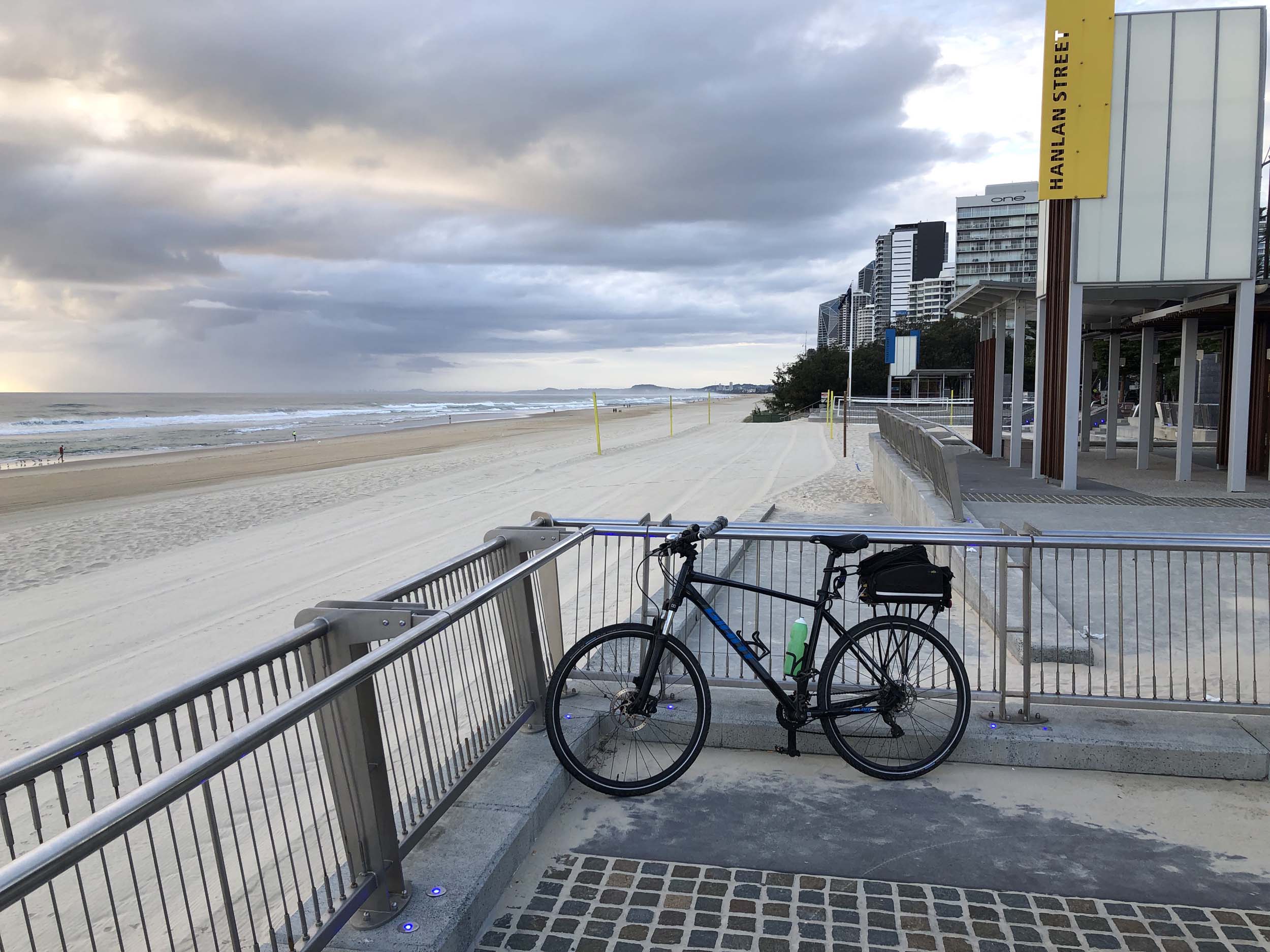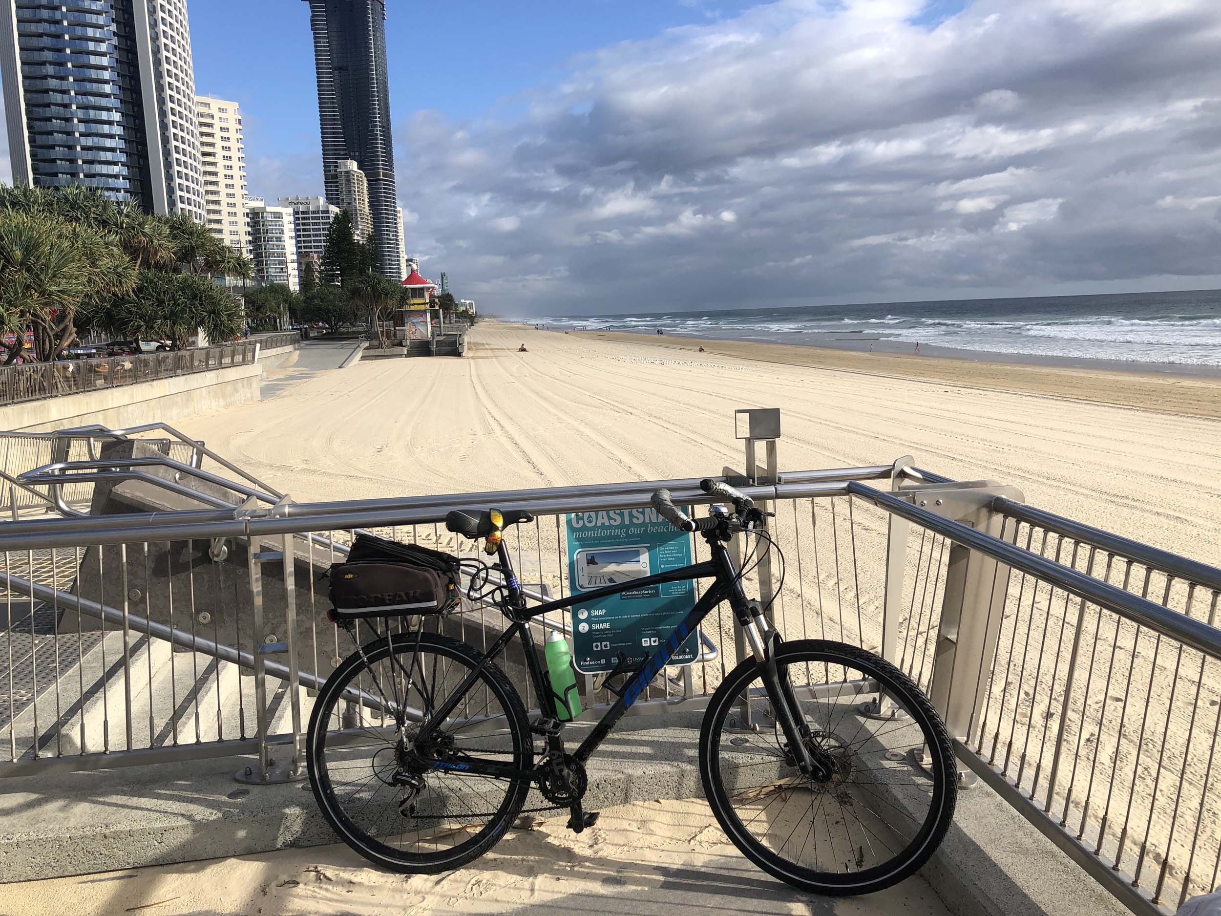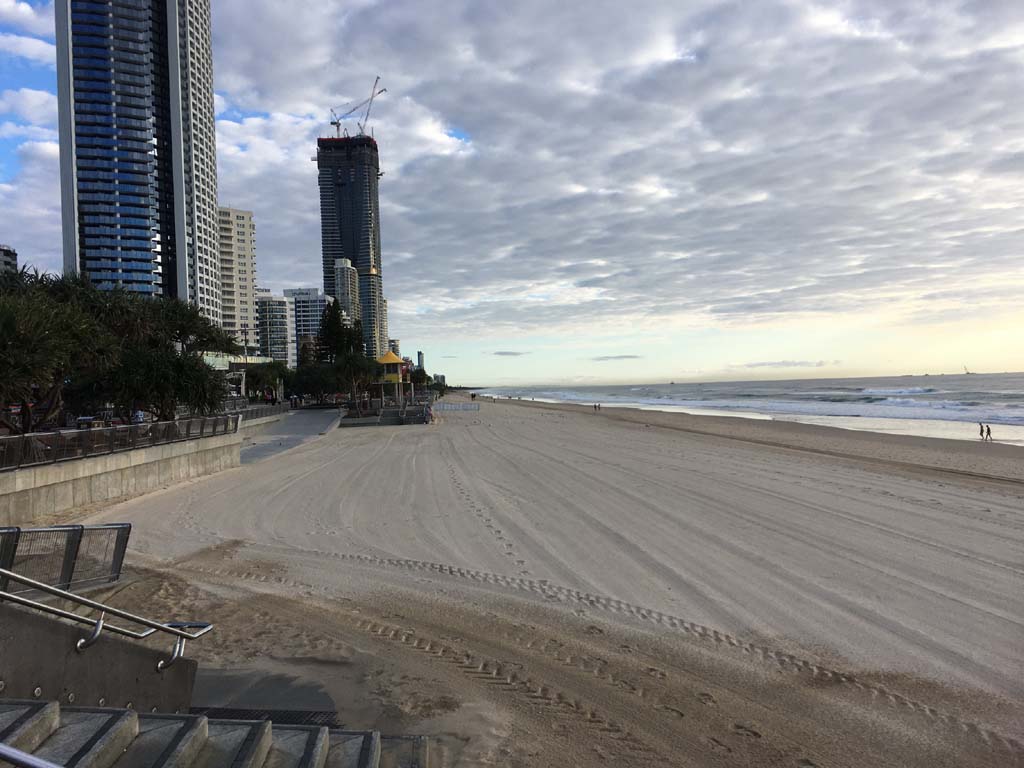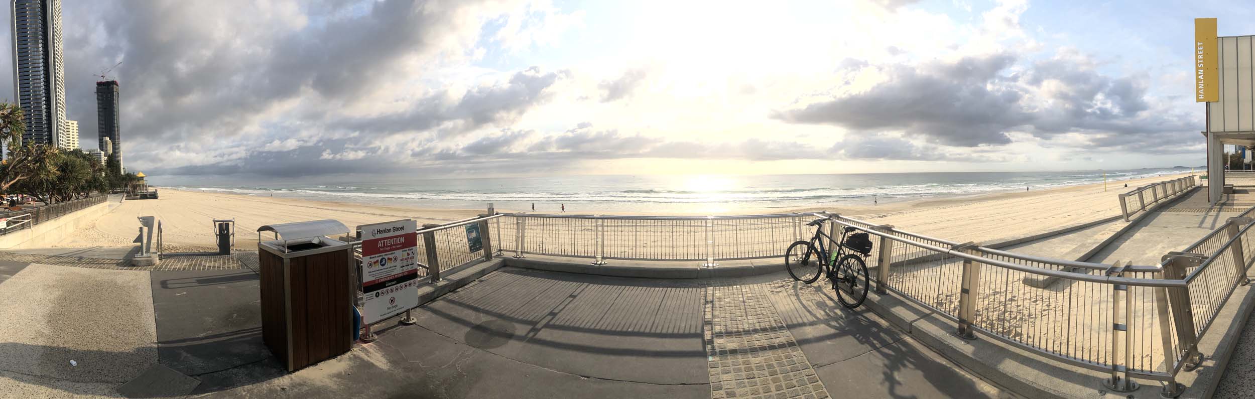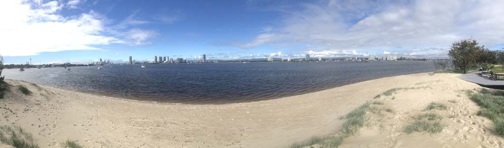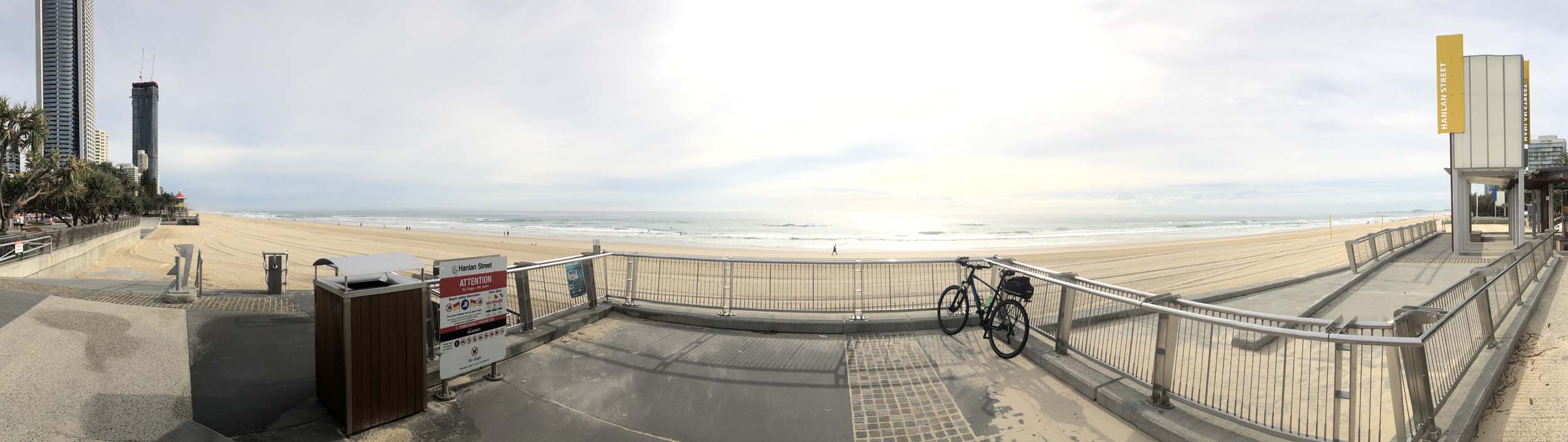 As usual, I rode Northward, to my Lands End turnaround point. Continuing through the Broadwater Parklands. I continued down to MacIntosh Is, did a lap. Over the Bridge at Narrowneck then along the Shared Path, to my normal spot at Surfers, to take my weather photos. Except all the shared path at Surfers is fenced off while they setup for Schoollies week. I headed off to the Spit along the various shared paths. Being early, the shared paths were nearly empty and the Schoollies must have still been in bed.