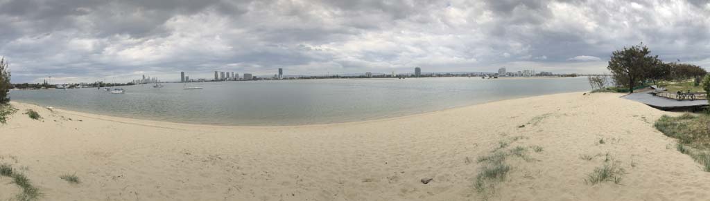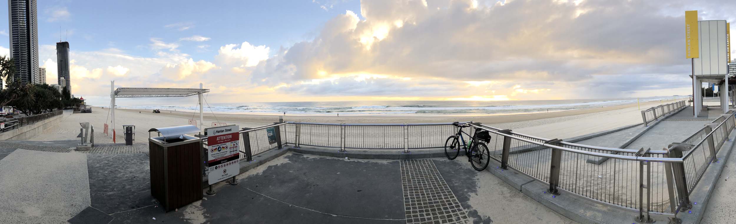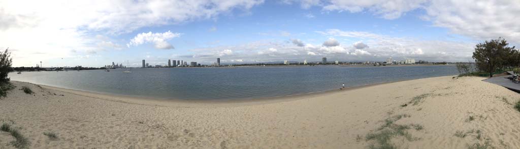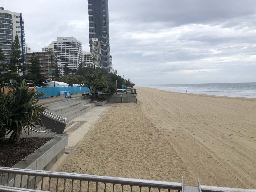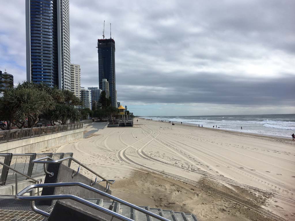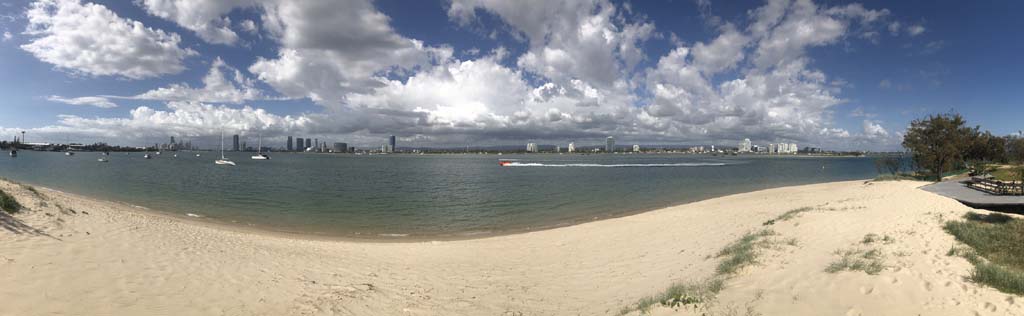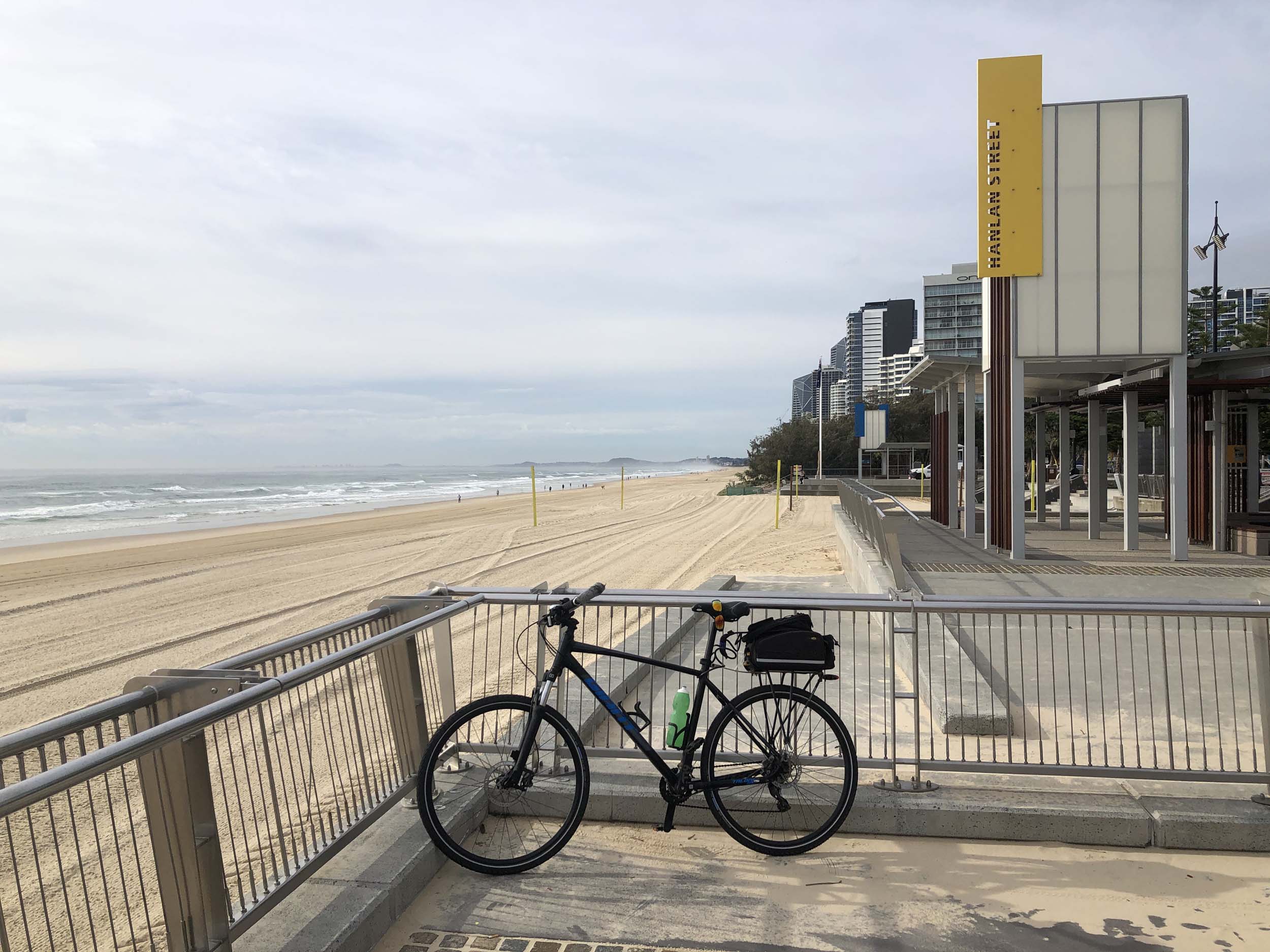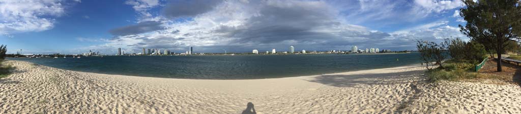 As usual, I rode Northward, to my Lands End turnaround point. Continuing through the Broadwater Parklands. I continued down to MacIntosh Is, did a lap. Over the Bridge at Narrowneck then along the Shared Path, to my normal spot at Surfers, to take my weather photos. Except all the shared path at Surfers is fenced off while they setup for Schoollies week. I headed off to the Spit along the various shared paths. Being early, the shared paths were nearly empty and the Schoollies must have still been in bed.