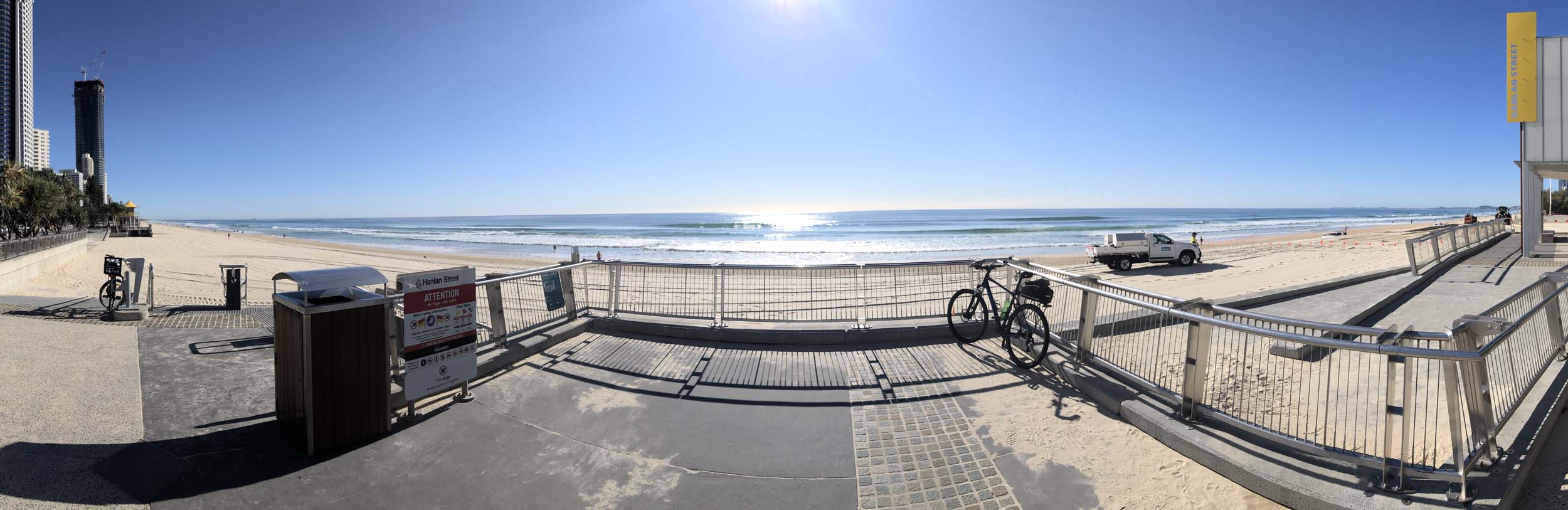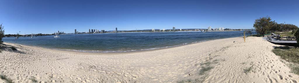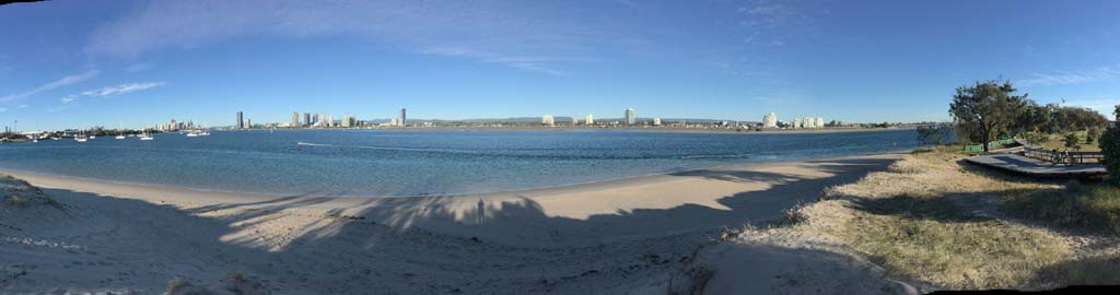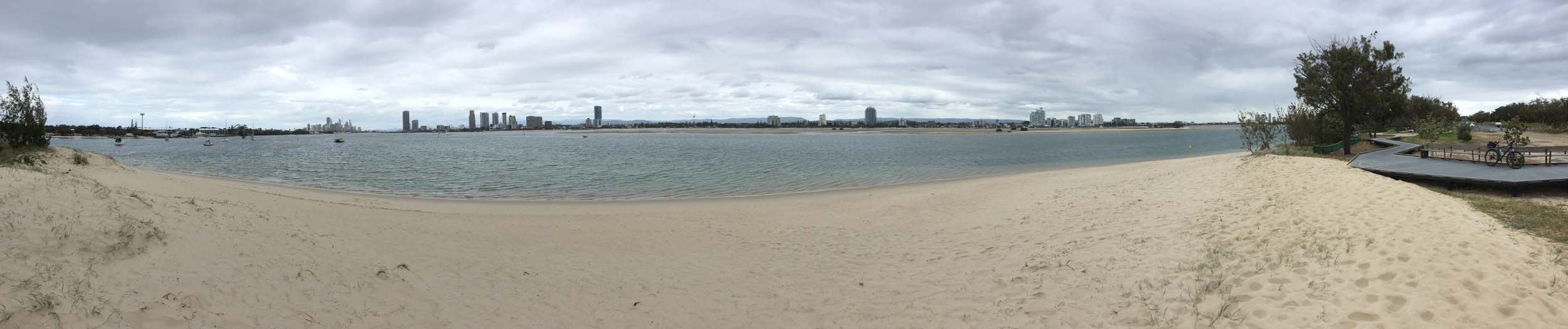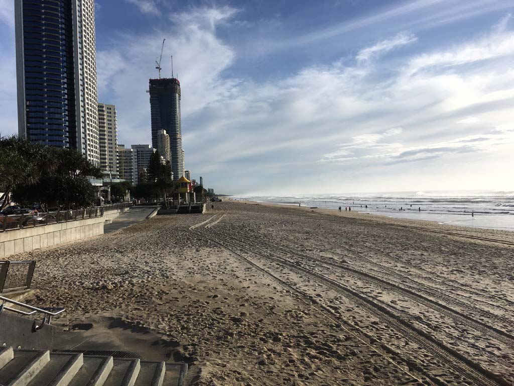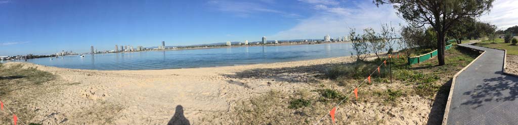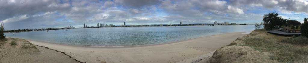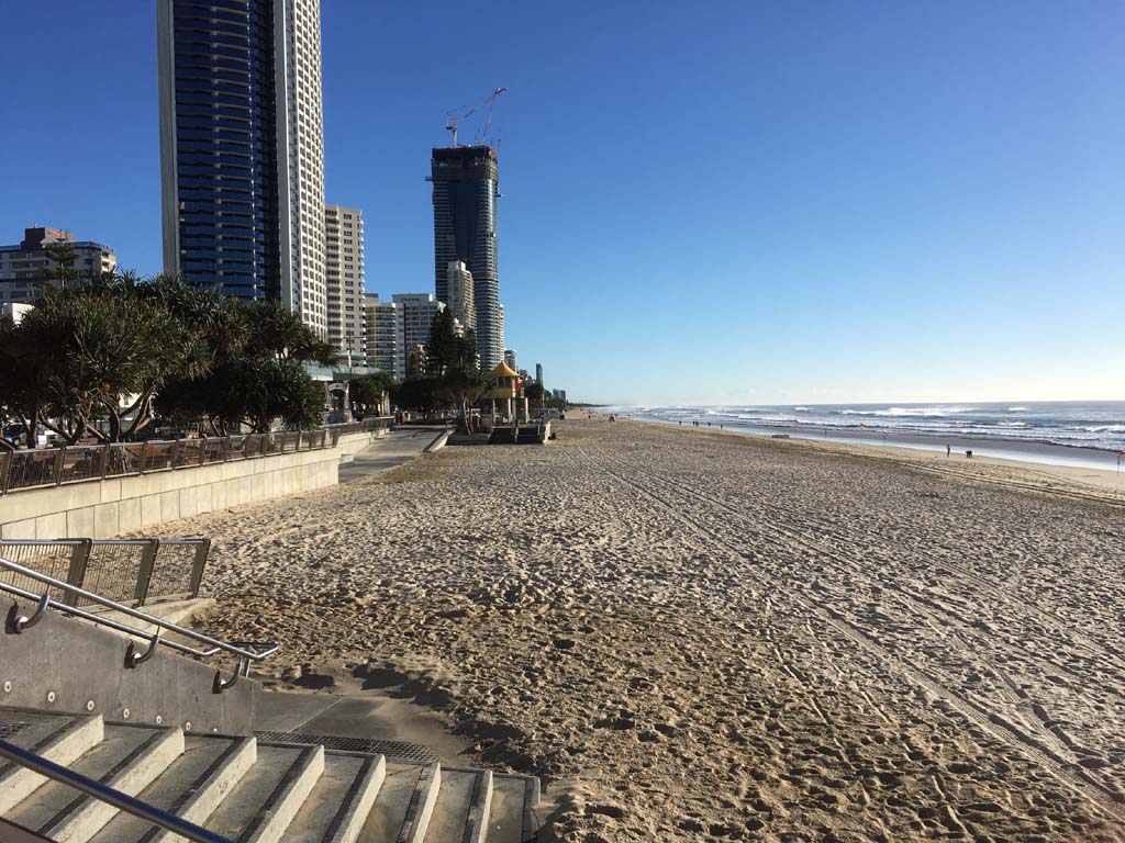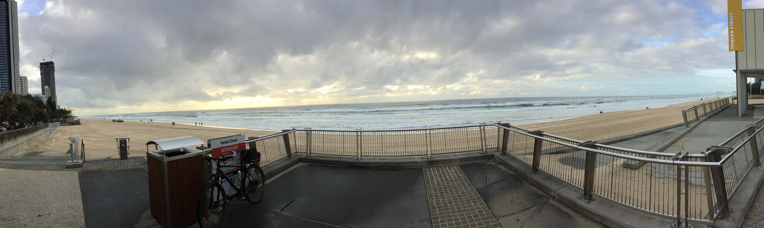 As usual, I rode Northward, to my Lands End turnaround point. Continuing through the Broadwater Parklands. I continued down to MacIntosh Is, did a lap. Over the Bridge at Narrowneck then along the Shared Path, to my normal spot at Surfers, to take my weather photos. Except all the shared path at Surfers is fenced off while they setup for Schoollies week. I headed off to the Spit along the various shared paths. Being early, the shared paths were nearly empty and the Schoollies must have still been in bed.