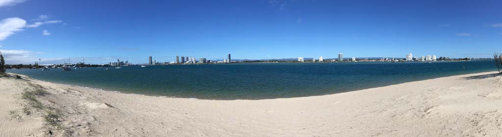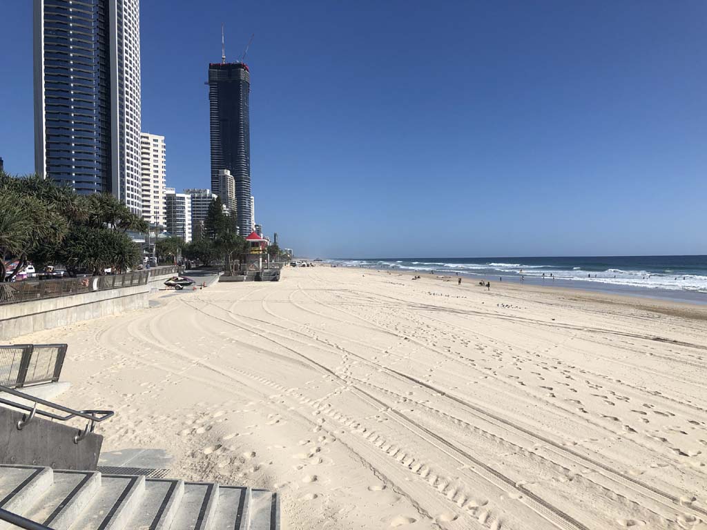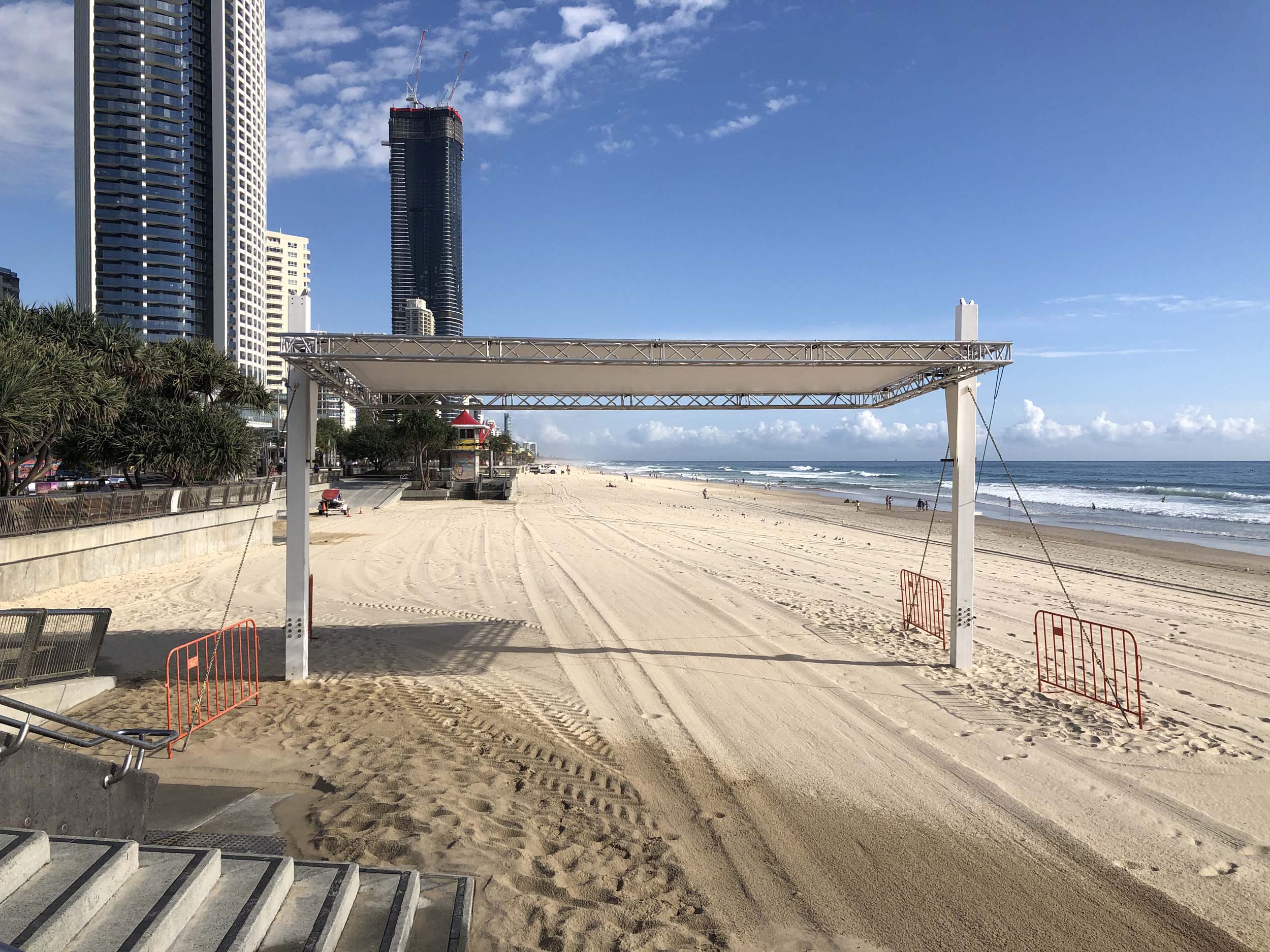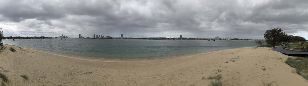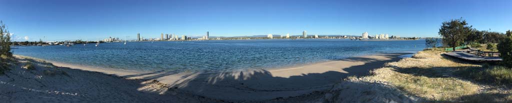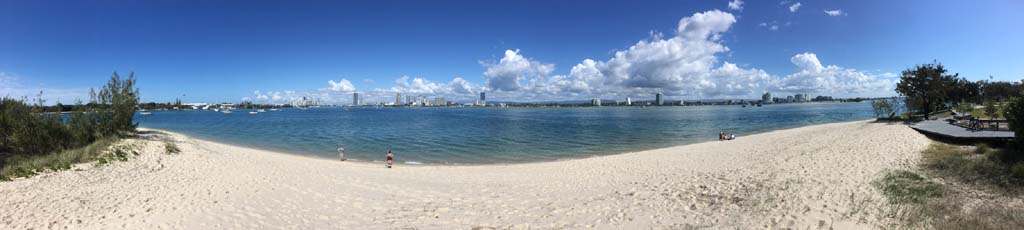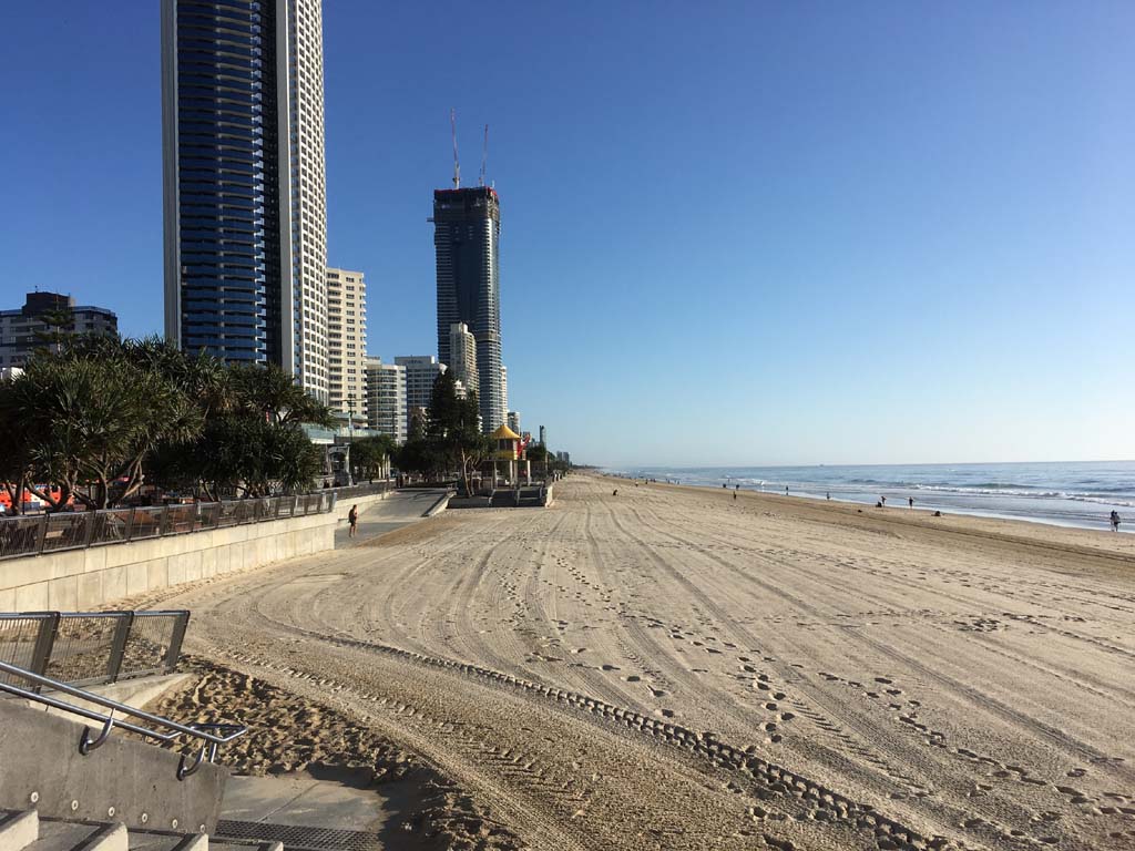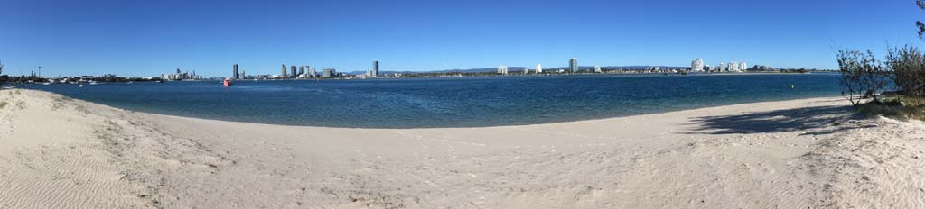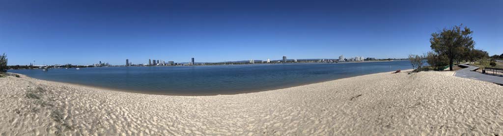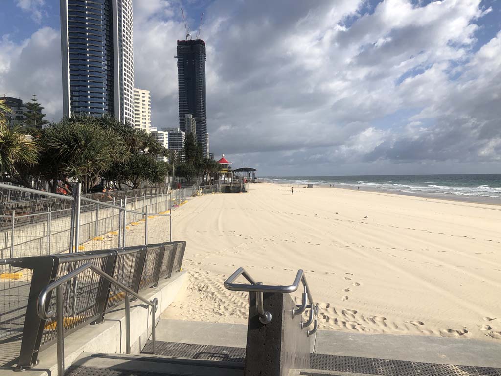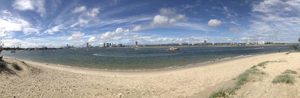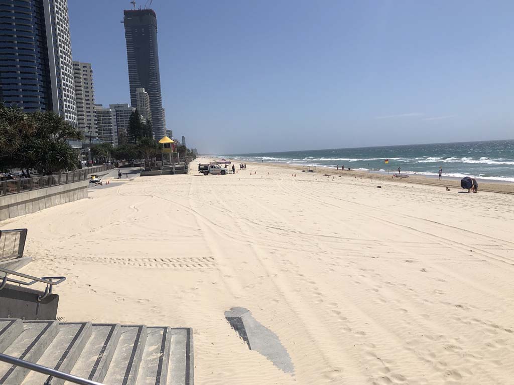 As usual, I rode Northward, to my Lands End turnaround point. Continuing through the Broadwater Parklands. I continued down to MacIntosh Is, did a lap. Over the Bridge at Narrowneck then along the Shared Path, to my normal spot at Surfers, to take my weather photos. Except all the shared path at Surfers is fenced off while they setup for Schoollies week. I headed off to the Spit along the various shared paths. Being early, the shared paths were nearly empty and the Schoollies must have still been in bed.