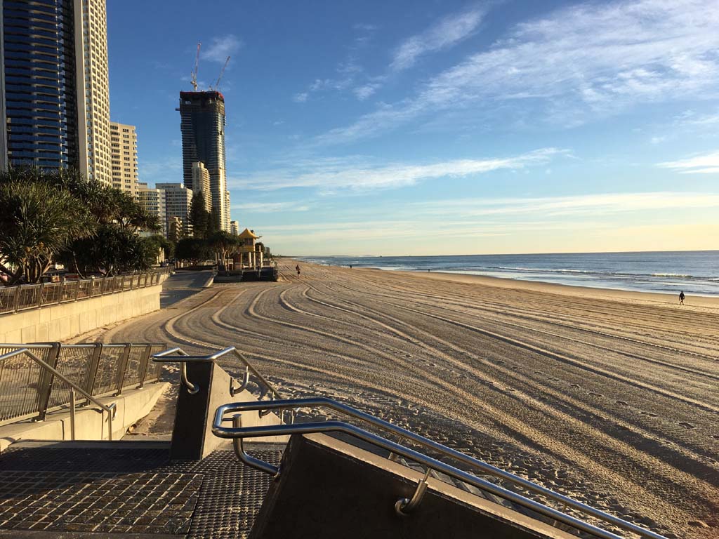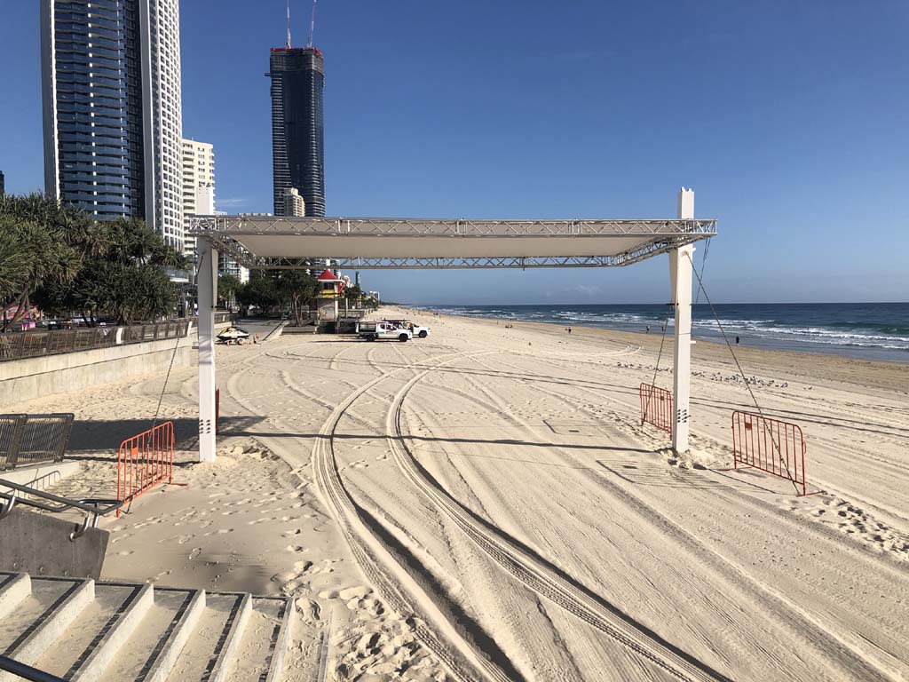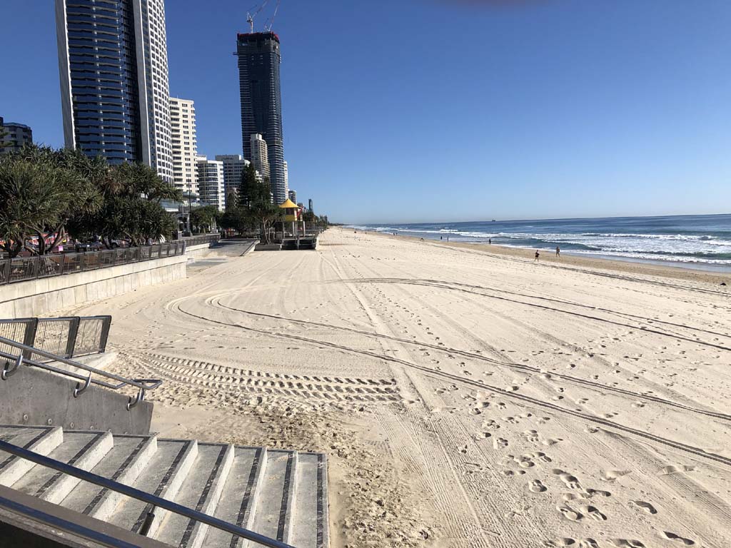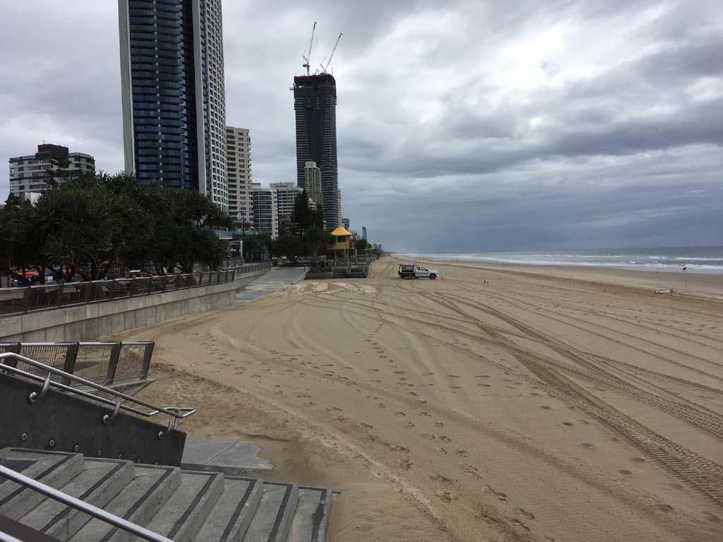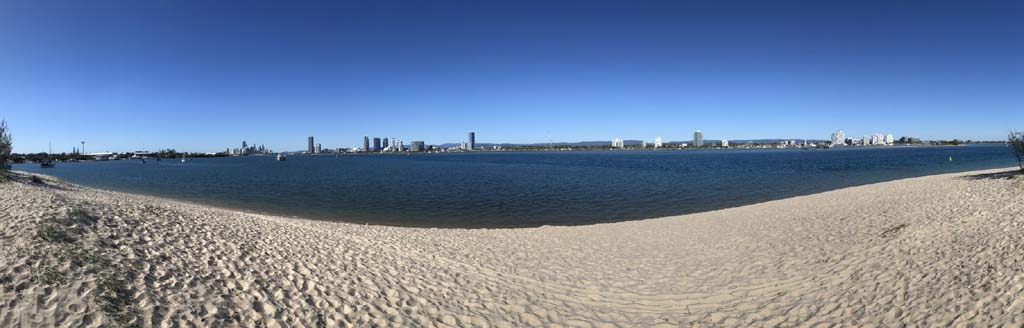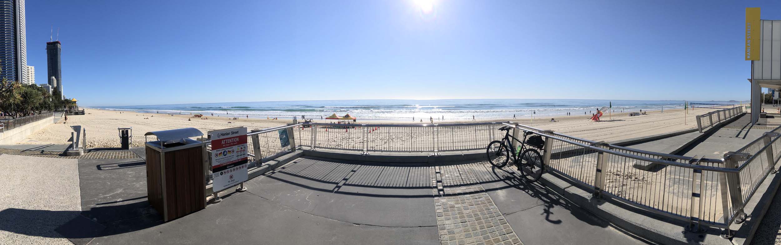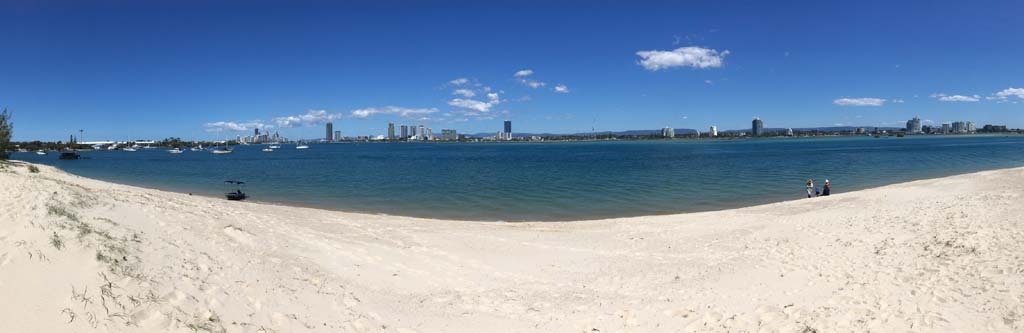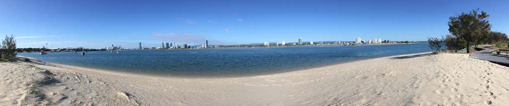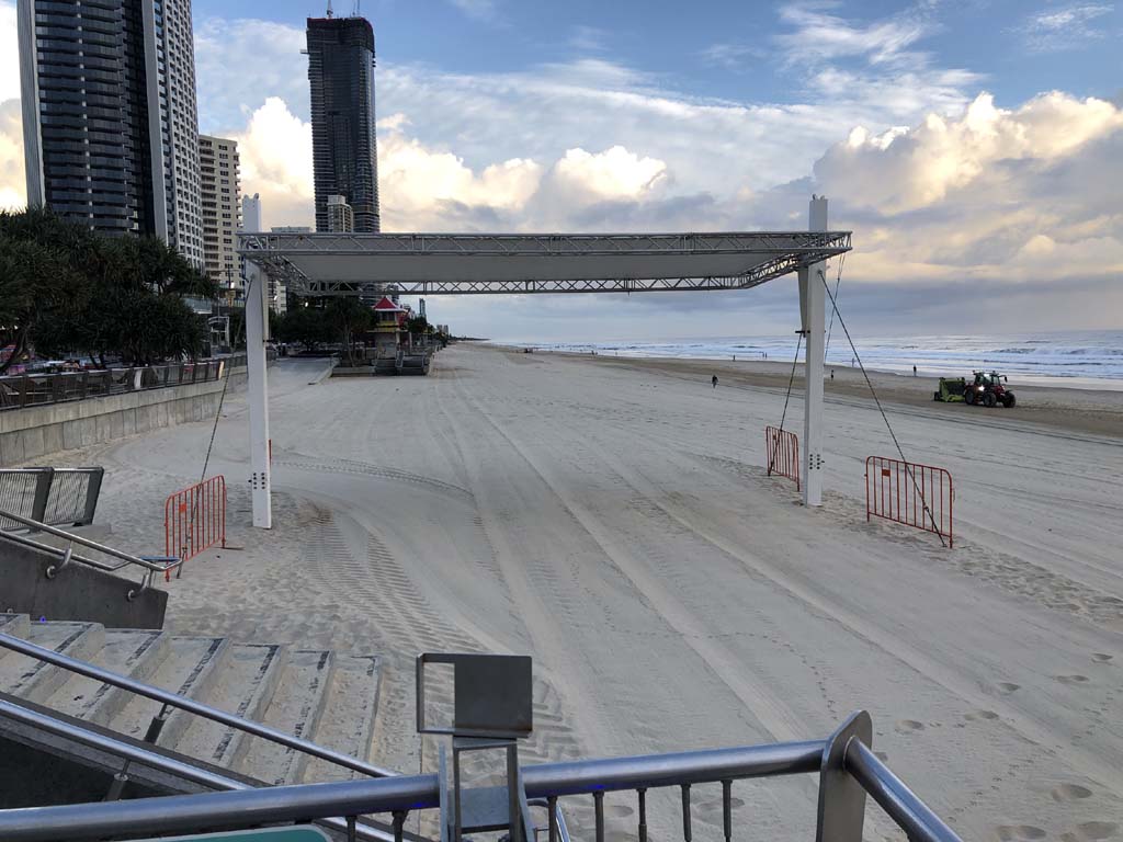 As usual, I rode Northward, to my Lands End turnaround point. Continuing through the Broadwater Parklands. I continued down to MacIntosh Is, did a lap. Over the Bridge at Narrowneck then along the Shared Path, to my normal spot at Surfers, to take my weather photos. Except all the shared path at Surfers is fenced off while they setup for Schoollies week. I headed off to the Spit along the various shared paths. Being early, the shared paths were nearly empty and the Schoollies must have still been in bed.
