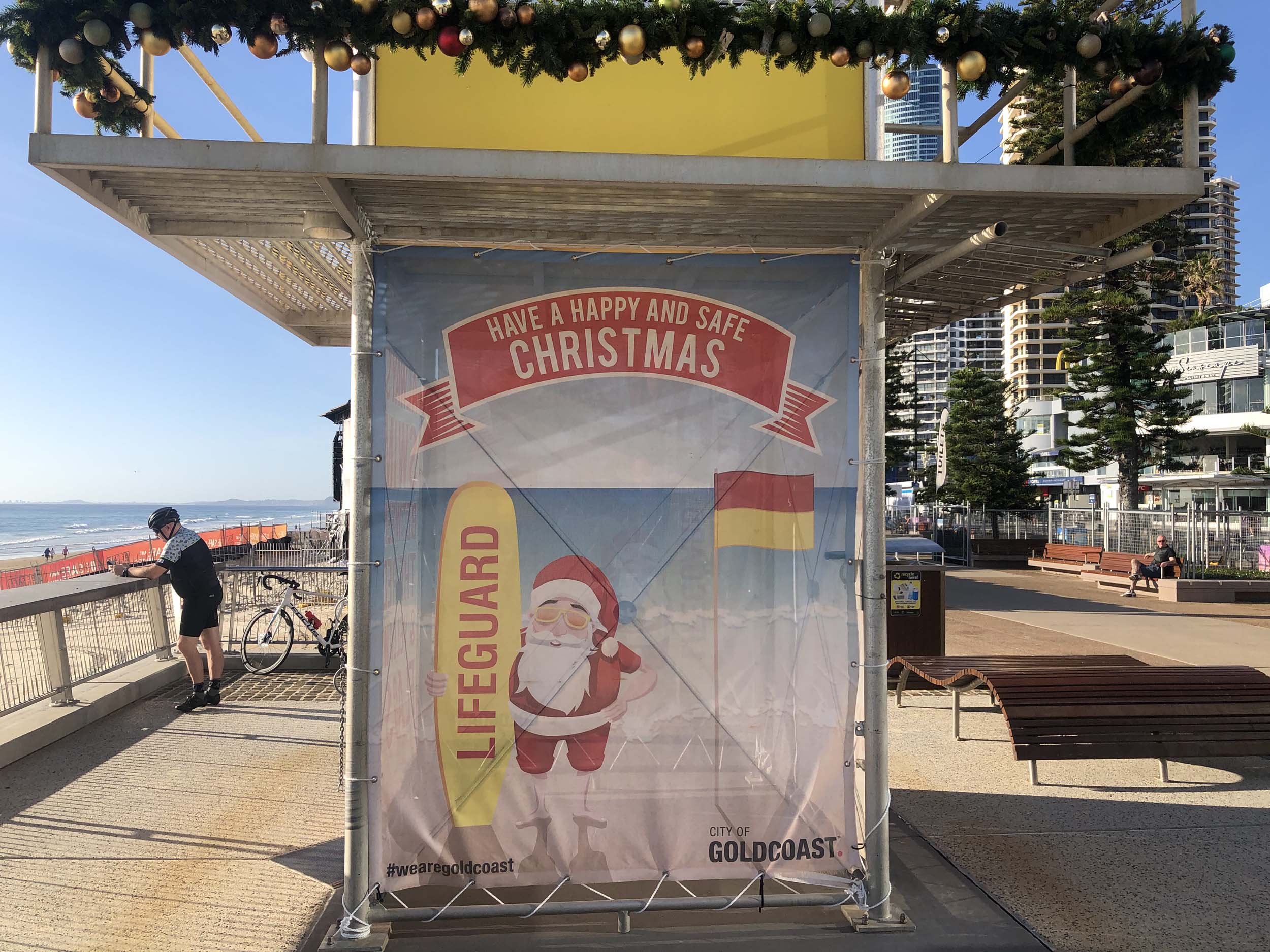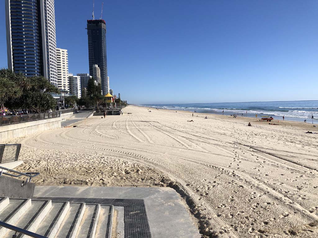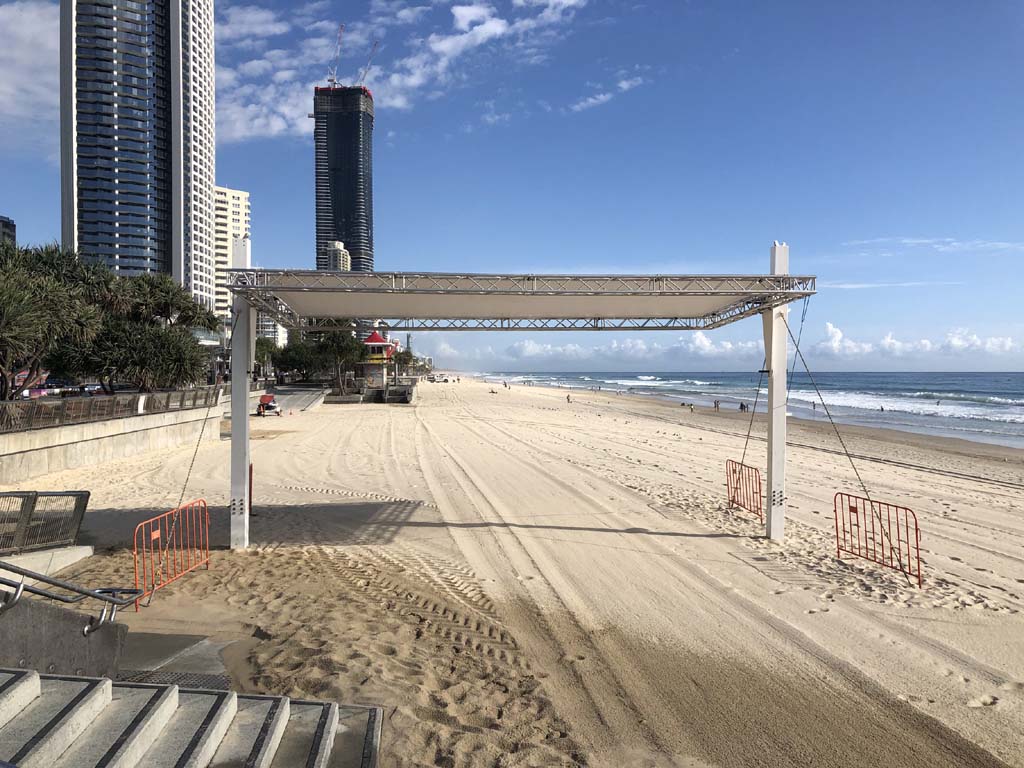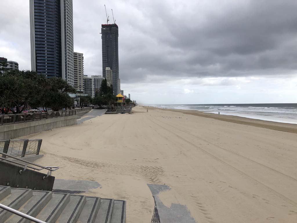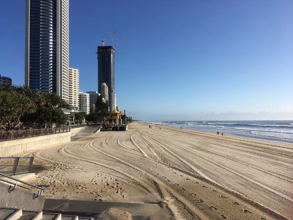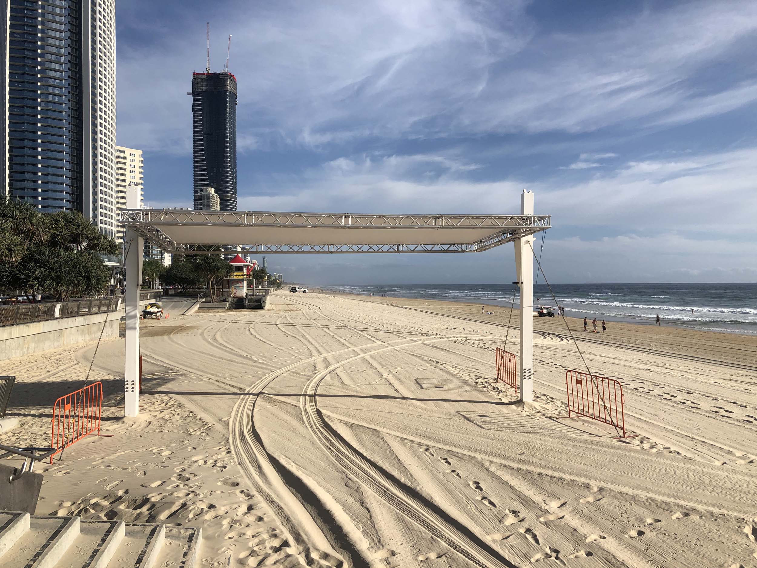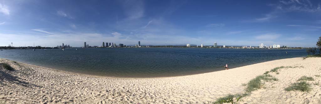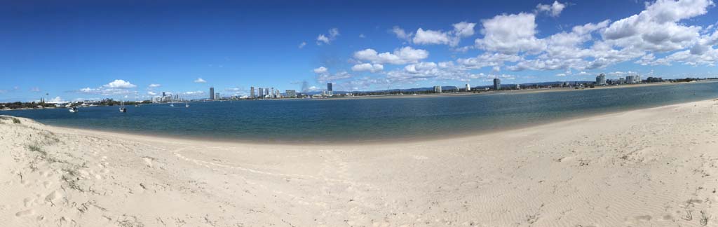 As usual, I rode Northward, to my Lands End turnaround point. Continuing through the Broadwater Parklands. I continued down to MacIntosh Is, did a lap. Over the Bridge at Narrowneck then along the Shared Path, to my normal spot at Surfers, to take my weather photos. Except all the shared path at Surfers is fenced off while they setup for Schoollies week. I headed off to the Spit along the various shared paths. Being early, the shared paths were nearly empty and the Schoollies must have still been in bed.