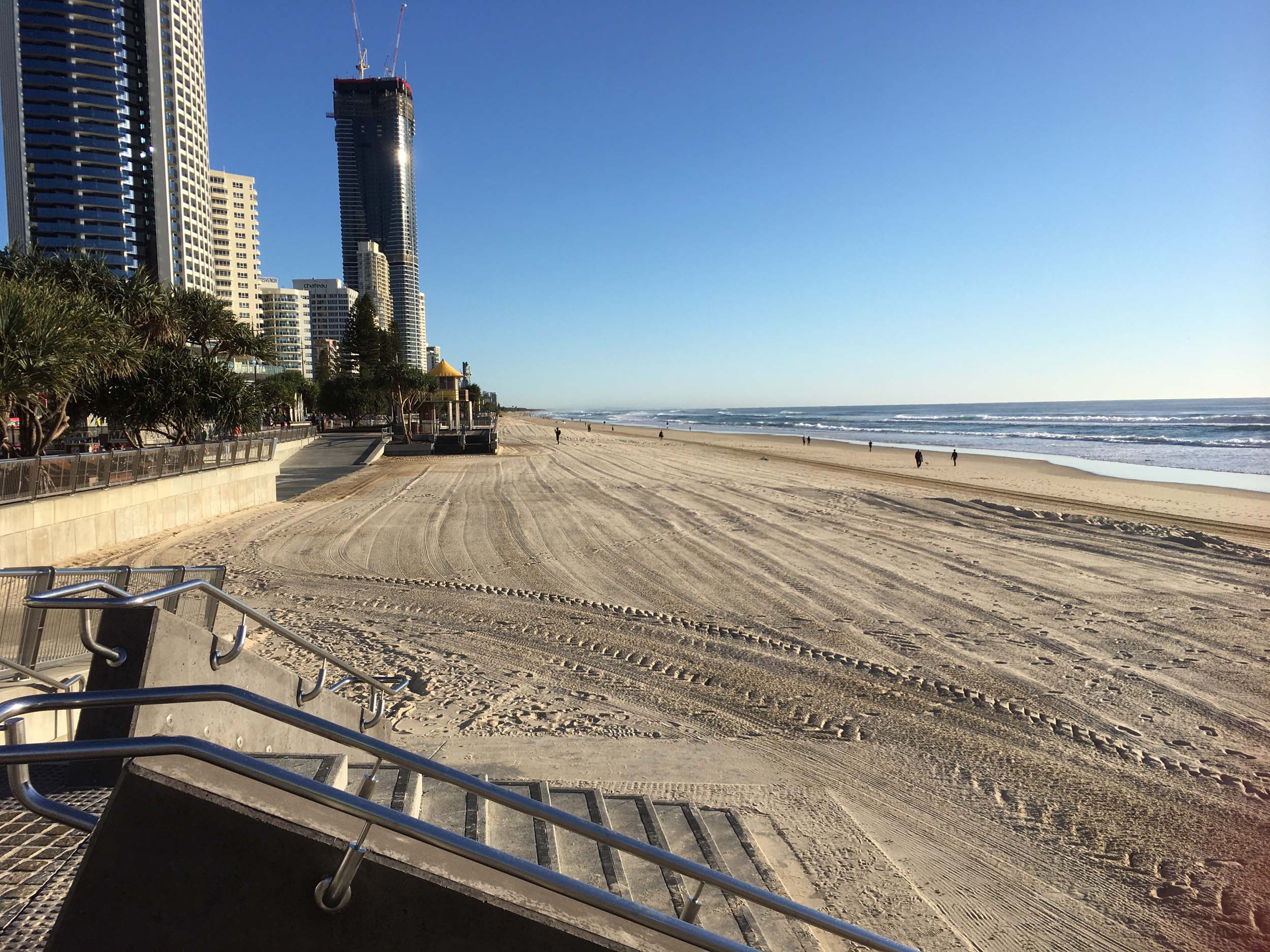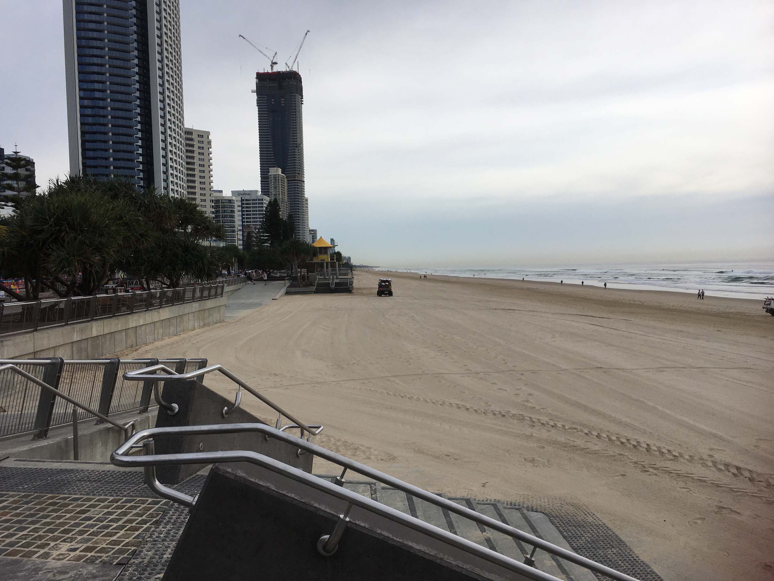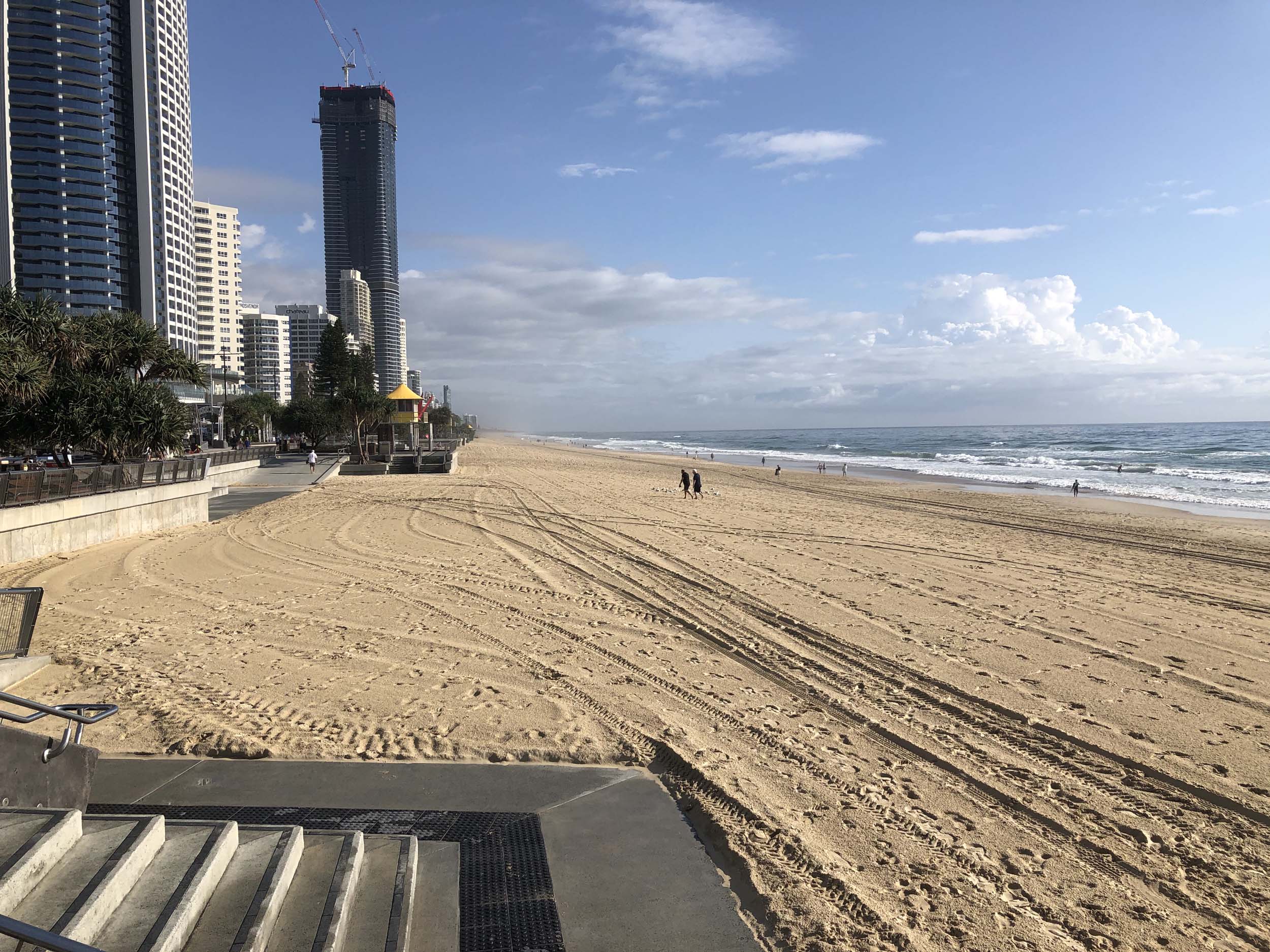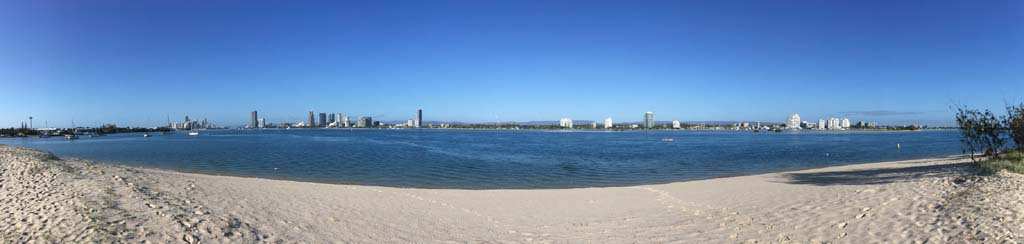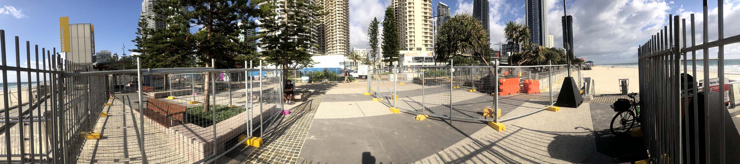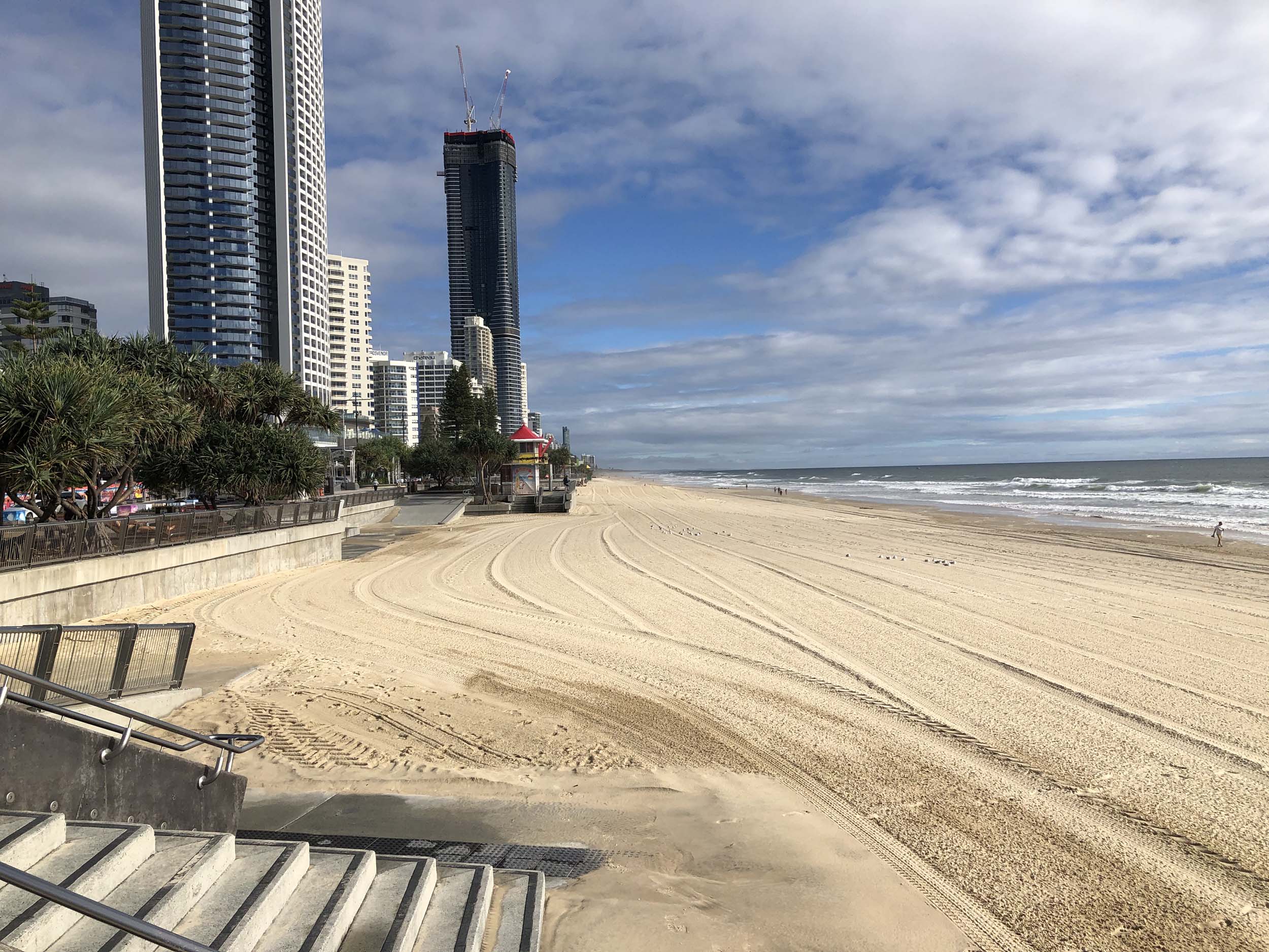 As usual, I rode Northward, to my Lands End turnaround point. Continuing through the Broadwater Parklands. I continued down to MacIntosh Is, did a lap. Over the Bridge at Narrowneck then along the Shared Path, to my normal spot at Surfers, to take my weather photos. Except all the shared path at Surfers is fenced off while they setup for Schoollies week. I headed off to the Spit along the various shared paths. Being early, the shared paths were nearly empty and the Schoollies must have still been in bed.