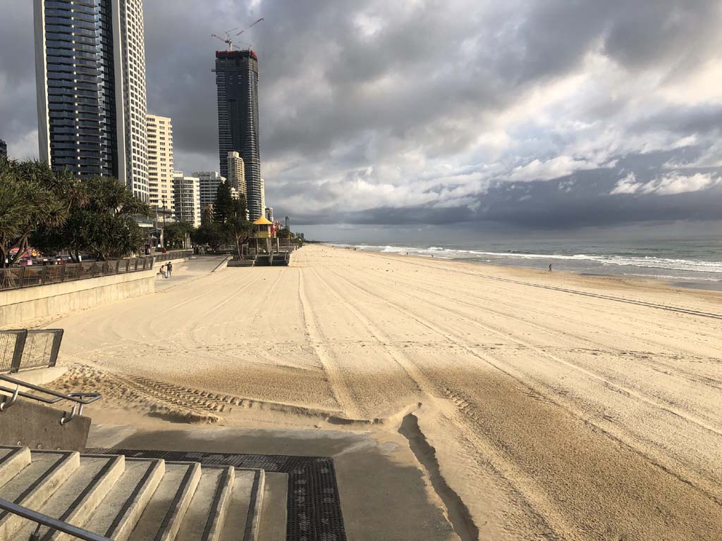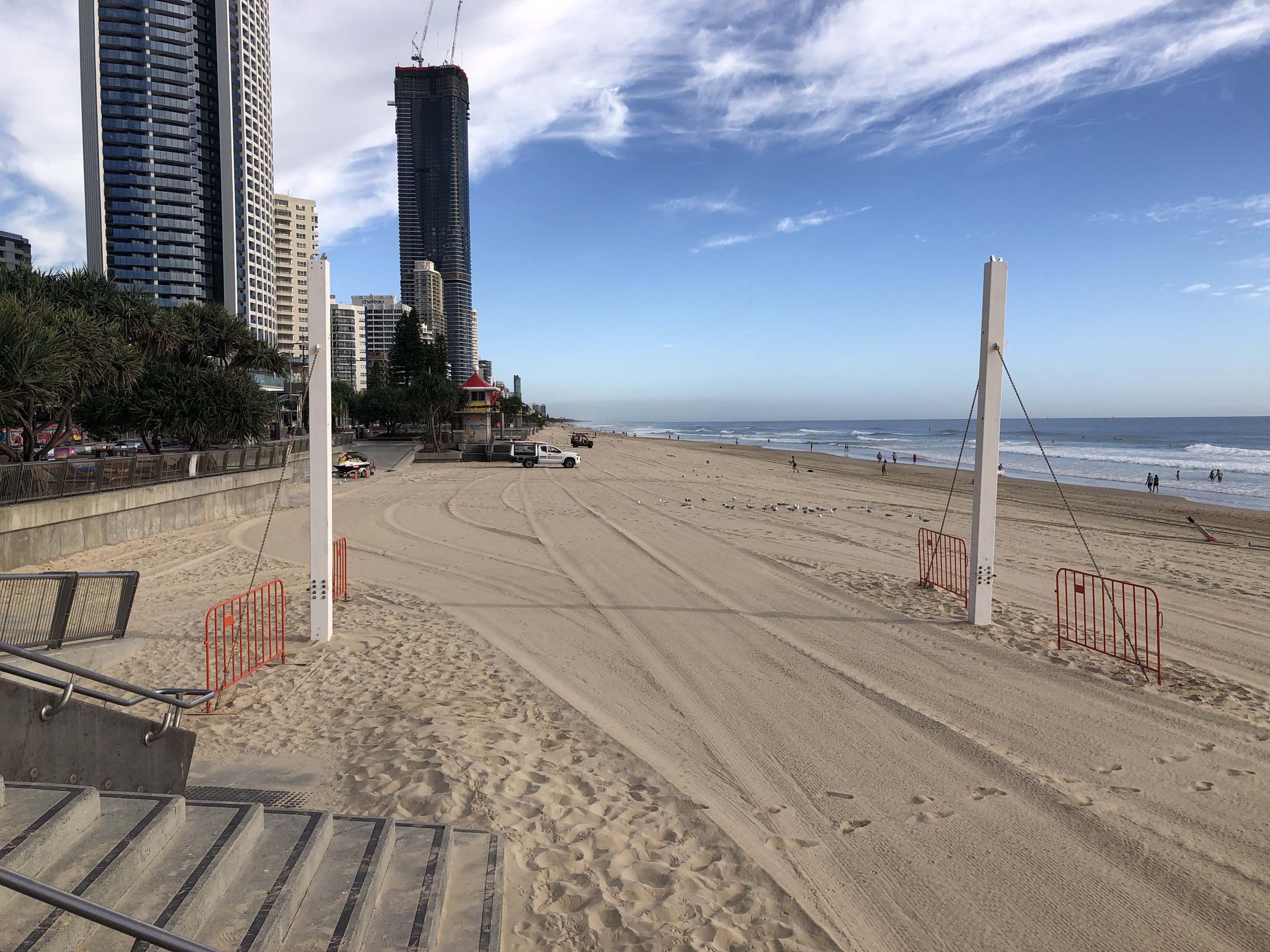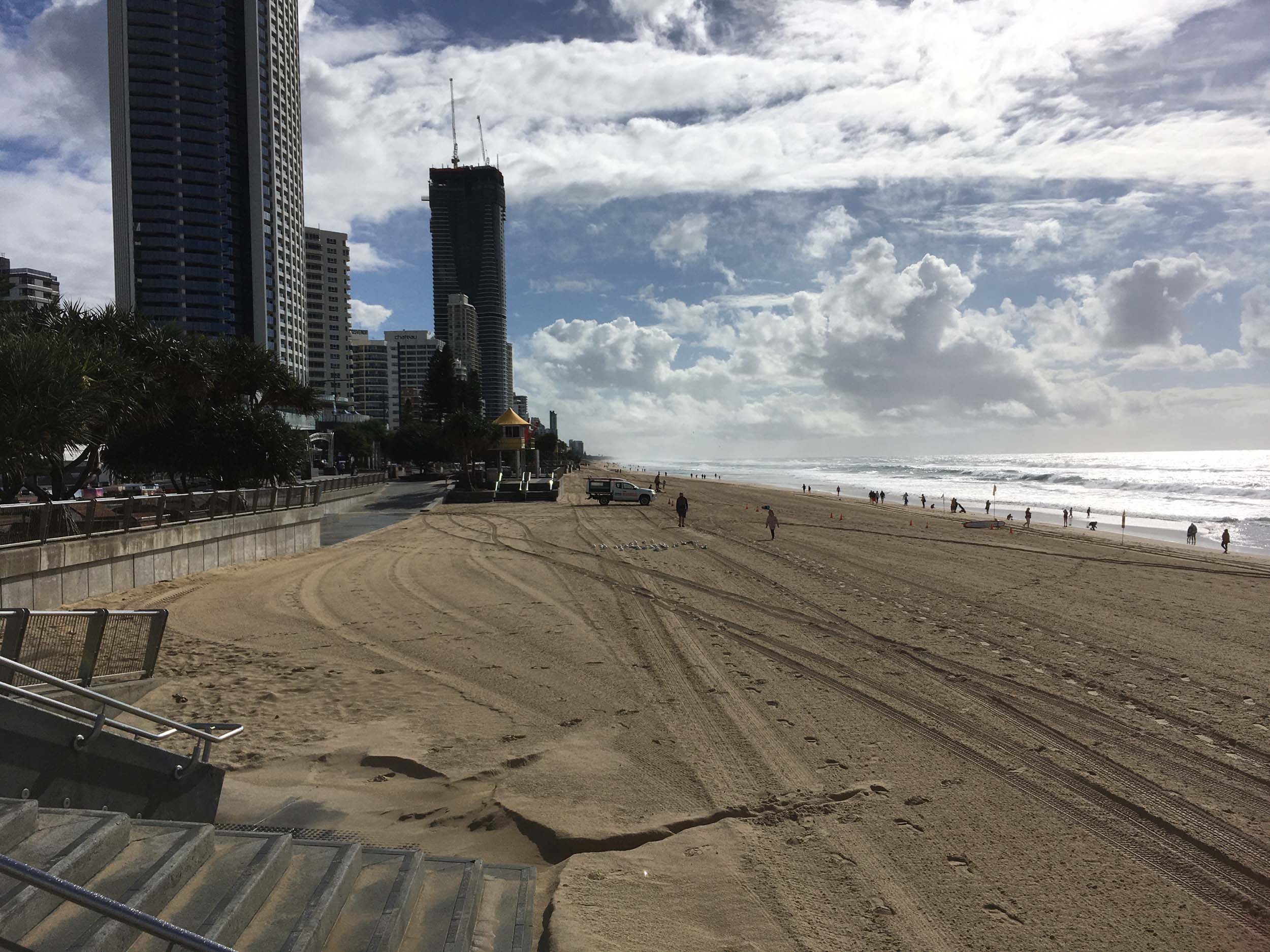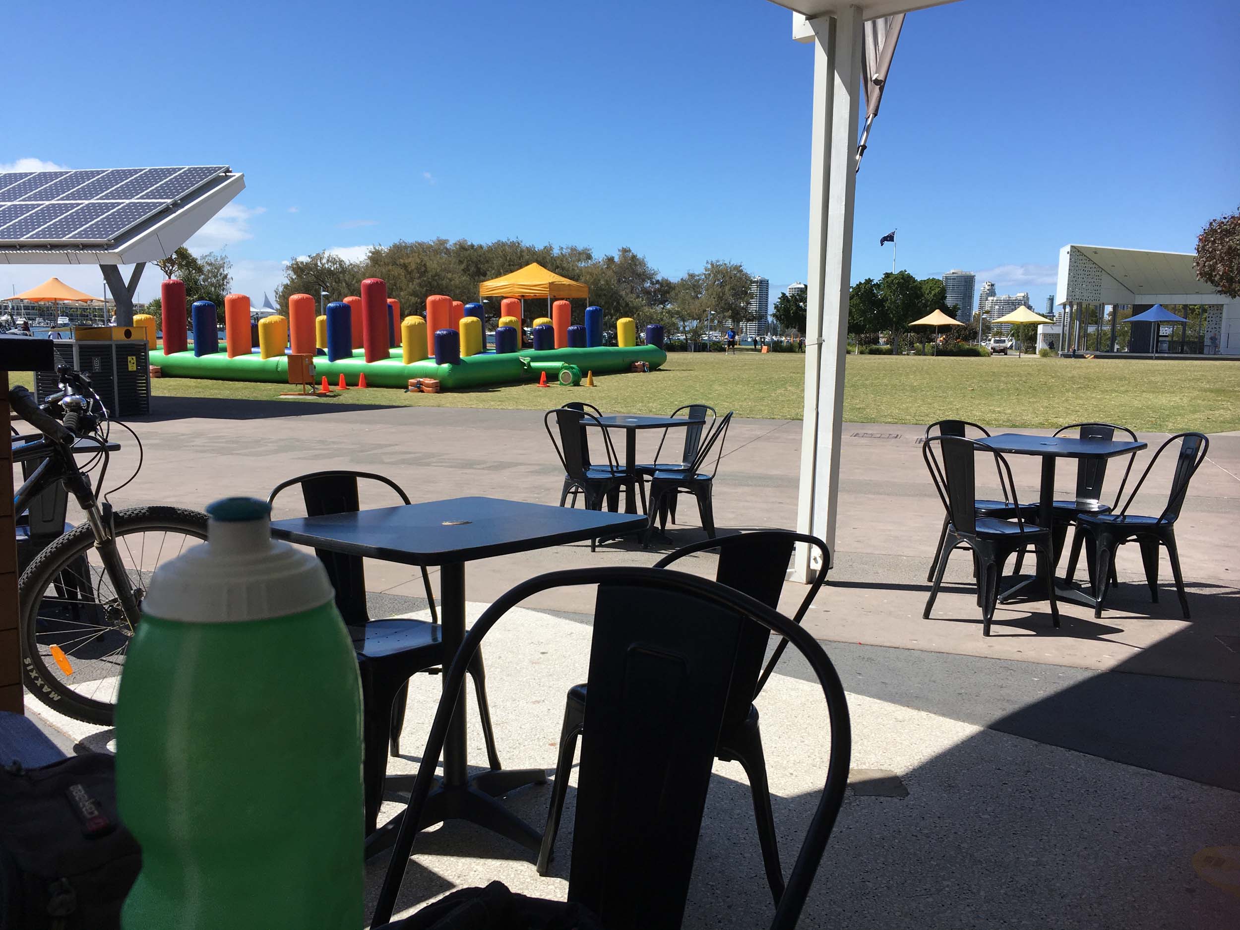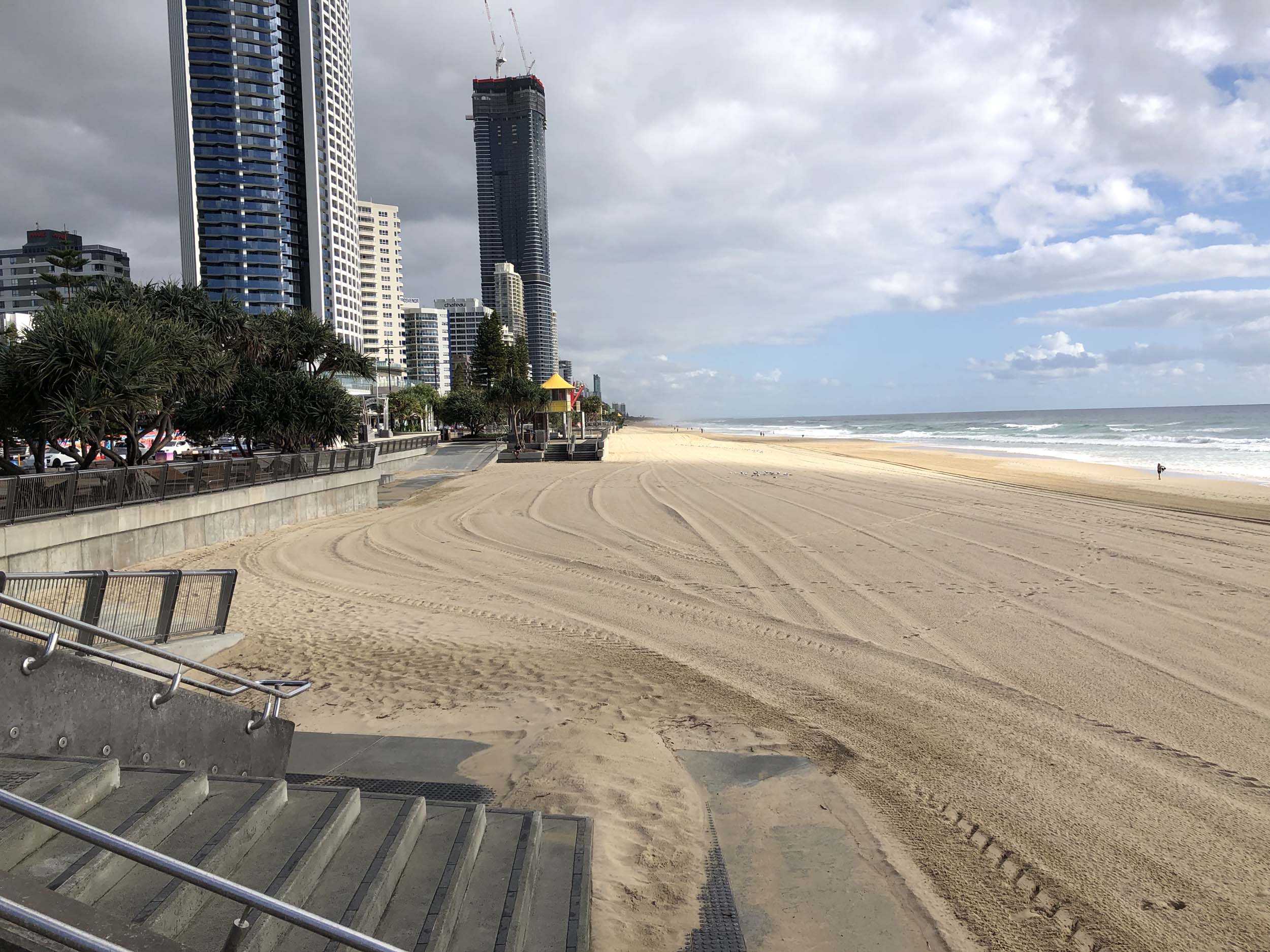 As usual, I rode Northward, to my Lands End turnaround point. Continuing through the Broadwater Parklands. I continued down to MacIntosh Is, did a lap. Over the Bridge at Narrowneck then along the Shared Path, to my normal spot at Surfers, to take my weather photos. Except all the shared path at Surfers is fenced off while they setup for Schoollies week. I headed off to the Spit along the various shared paths. Being early, the shared paths were nearly empty and the Schoollies must have still been in bed.