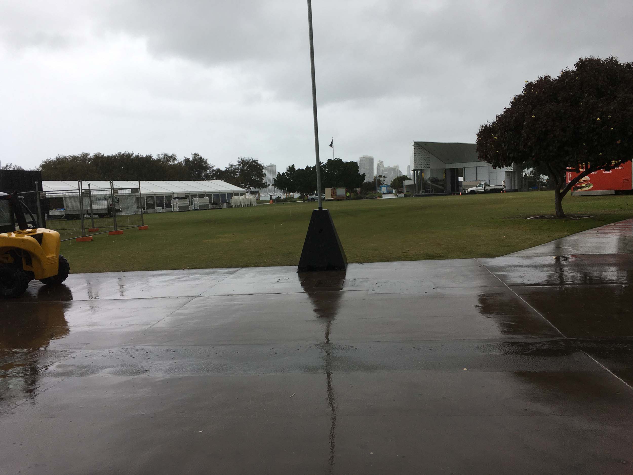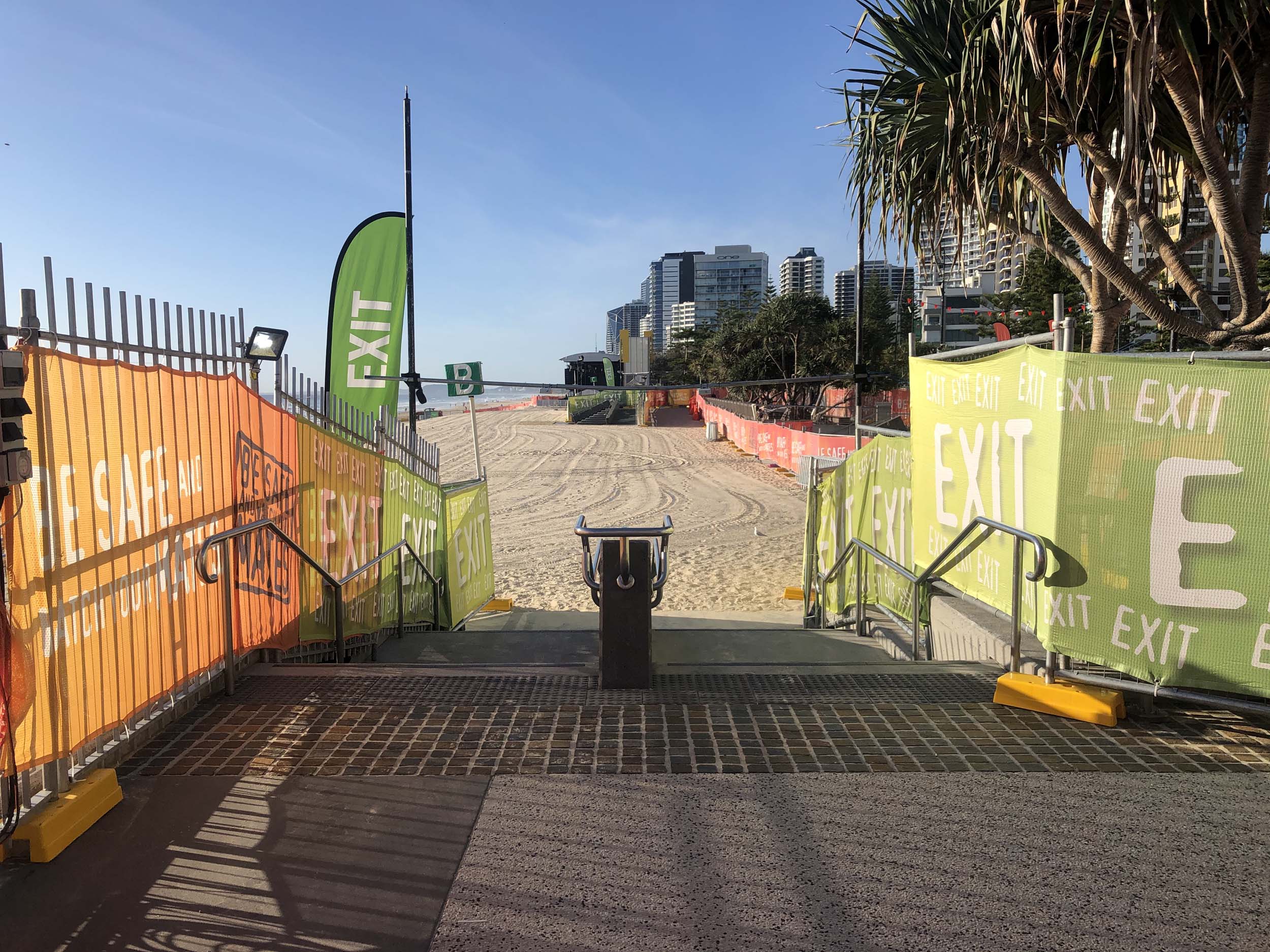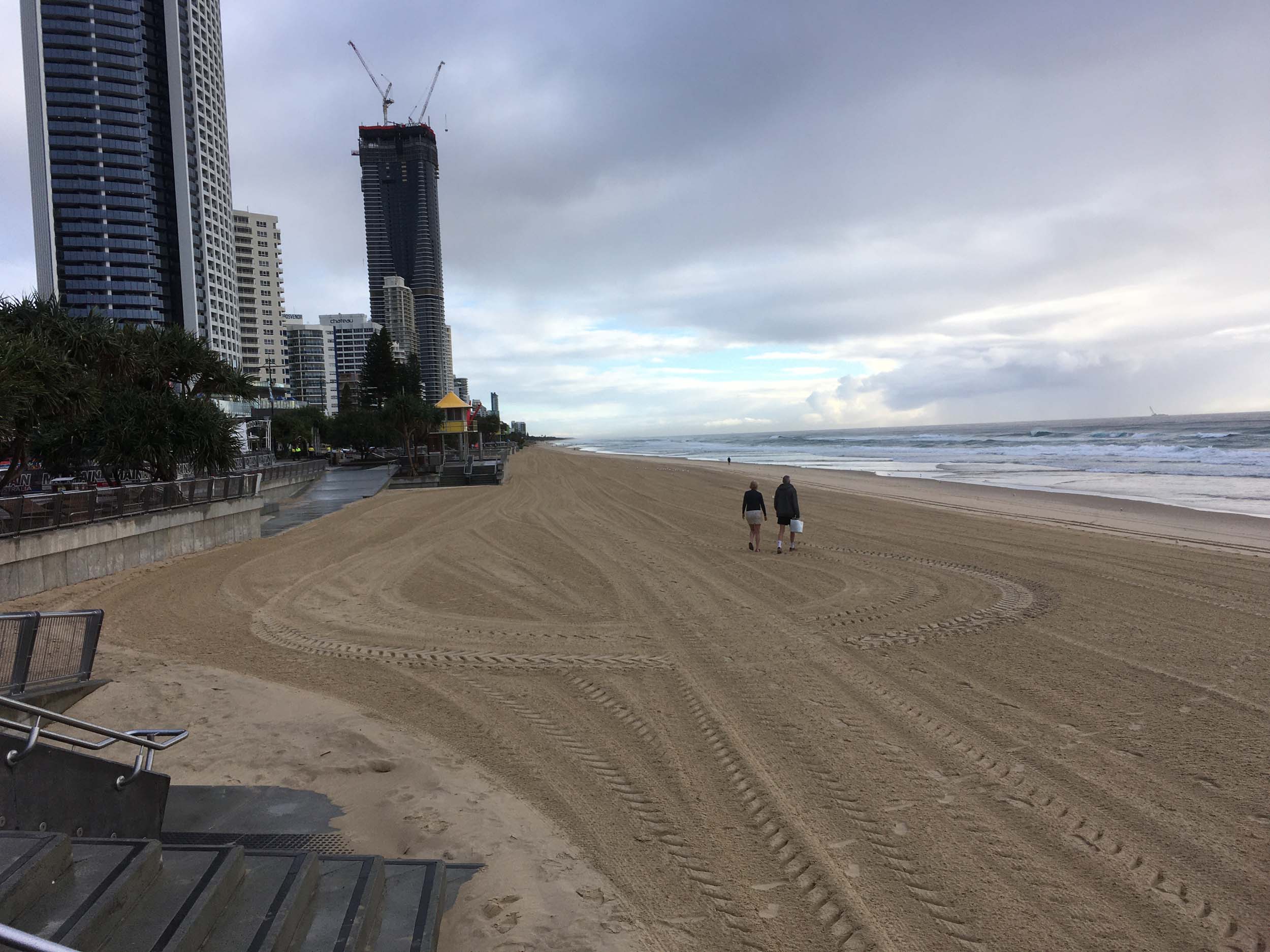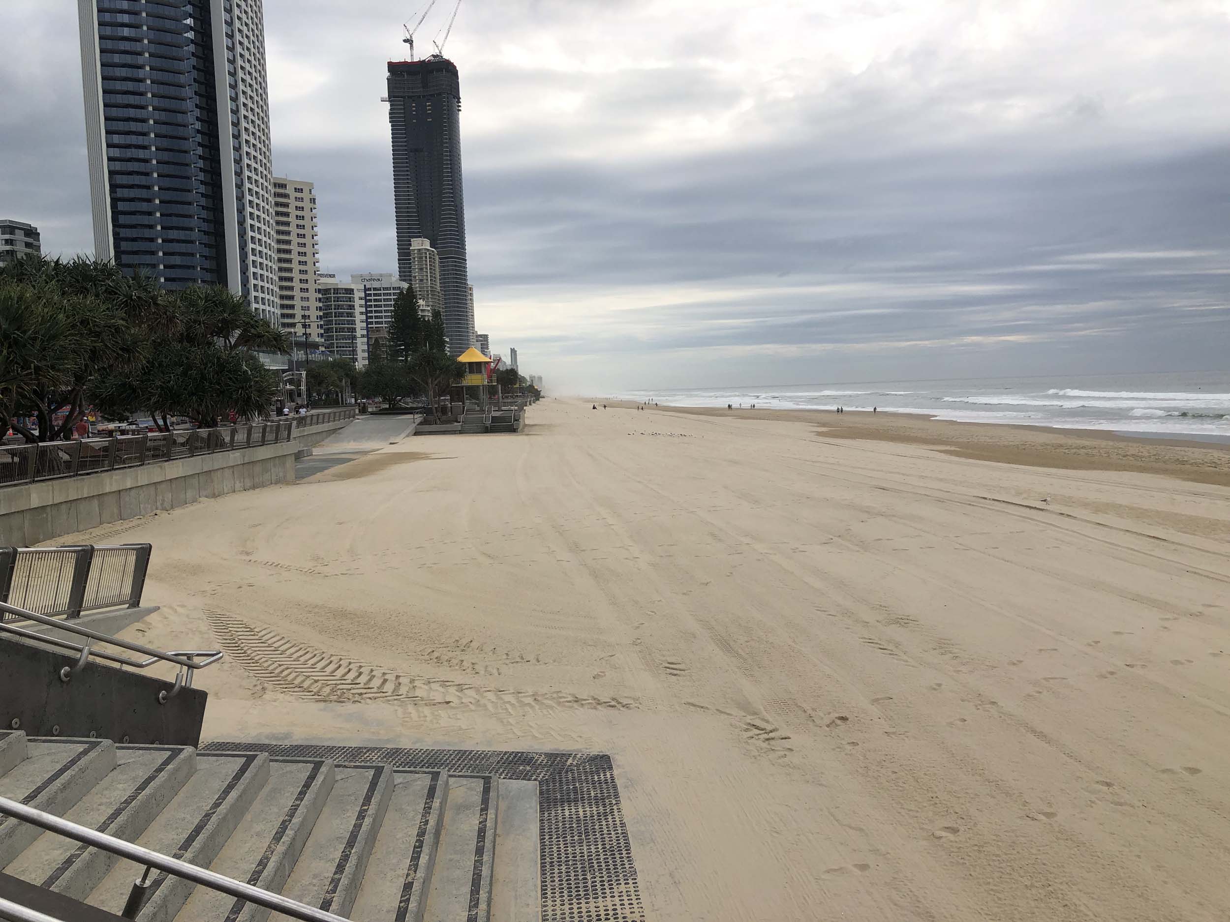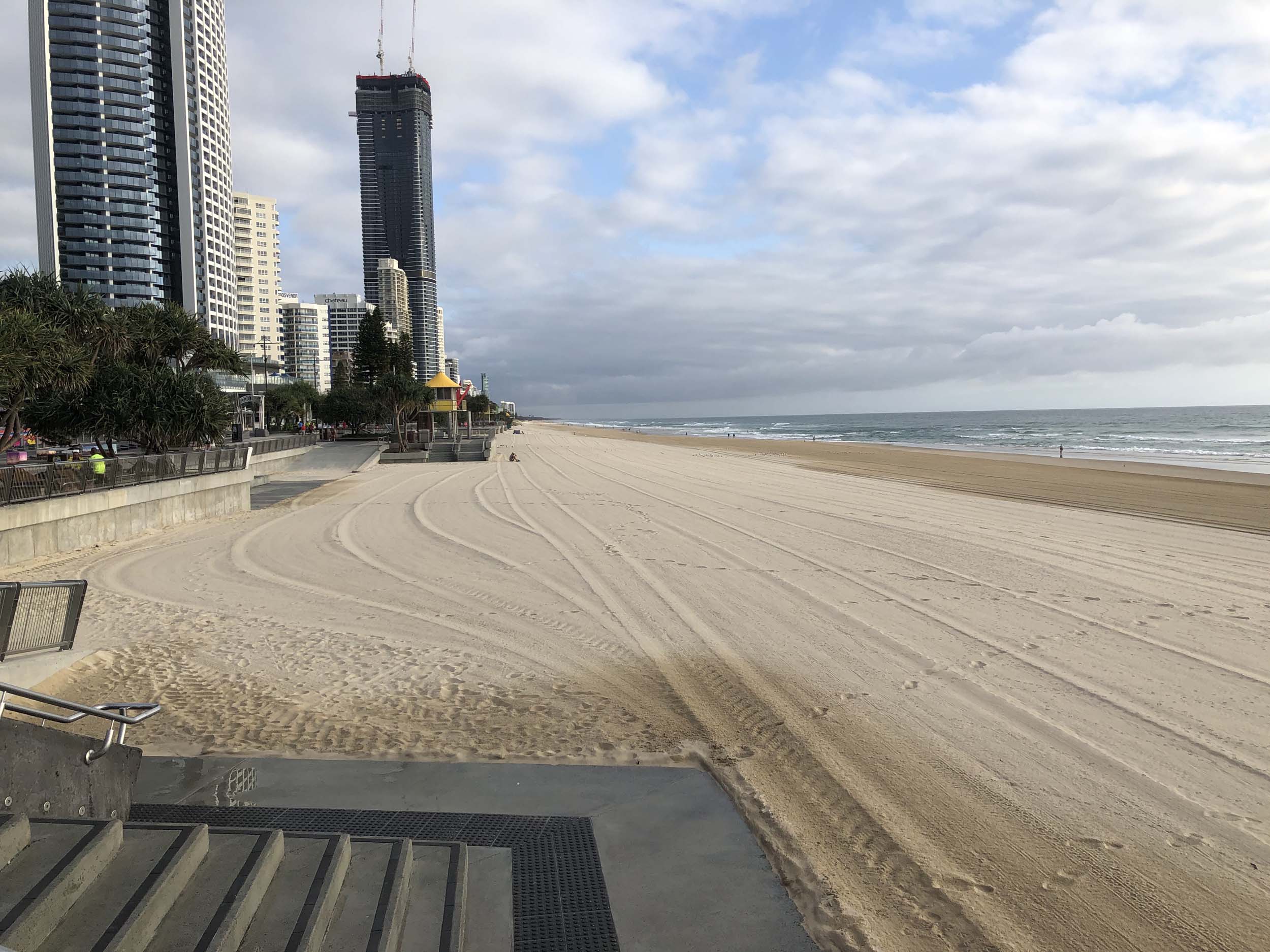 As usual, I rode Northward, to my Lands End turnaround point. Continuing through the Broadwater Parklands. I continued down to MacIntosh Is, did a lap. Over the Bridge at Narrowneck then along the Shared Path, to my normal spot at Surfers, to take my weather photos. Except all the shared path at Surfers is fenced off while they setup for Schoollies week. I headed off to the Spit along the various shared paths. Being early, the shared paths were nearly empty and the Schoollies must have still been in bed.