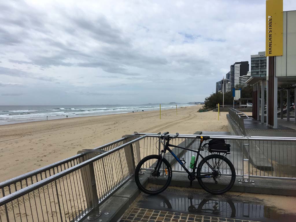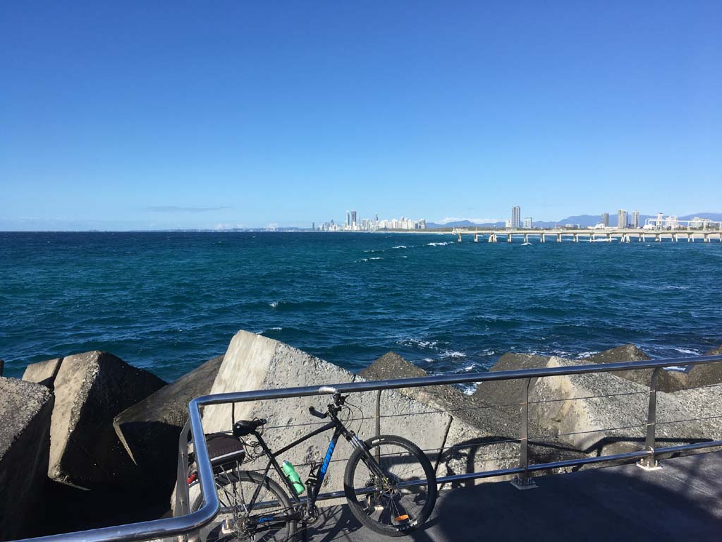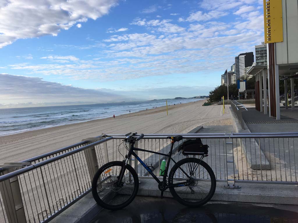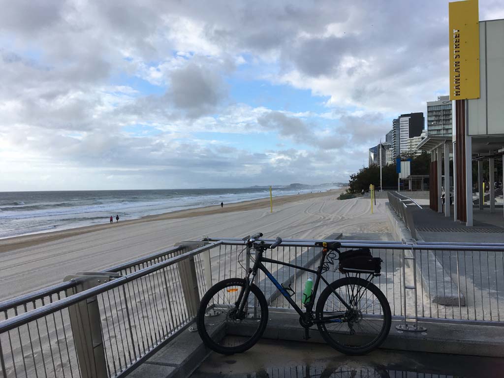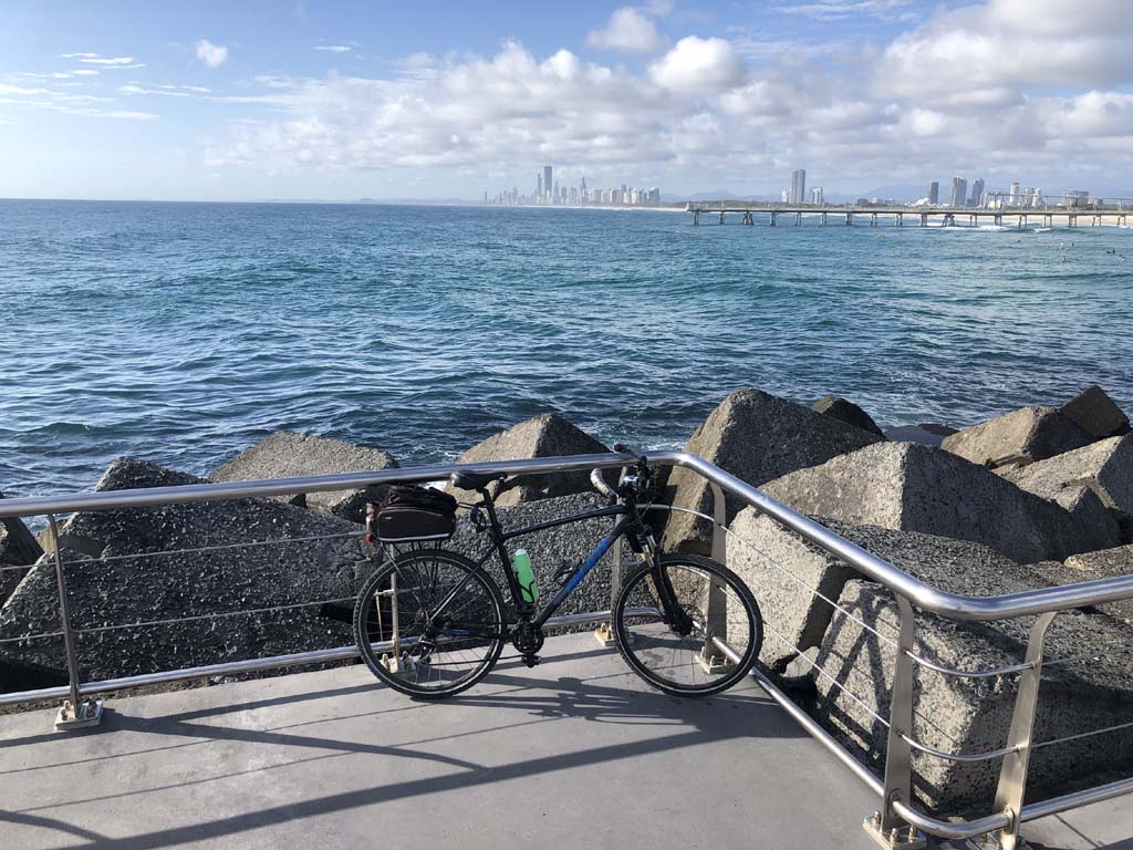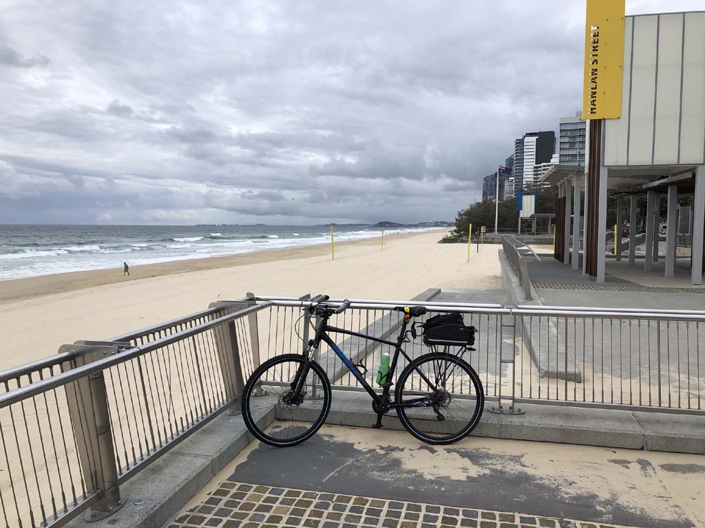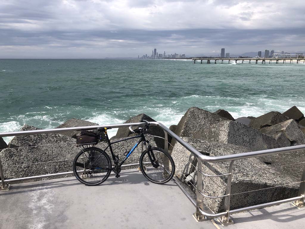 Home to Turnaround Pt down to Surfers via GC600 Park to Surfers to The Spit (both ends - twice) then back through GC600 Park back to Cafe Rockpool and finally back Home about 50+kms.