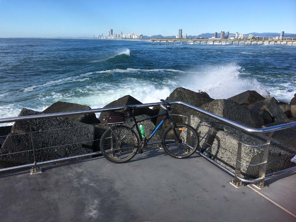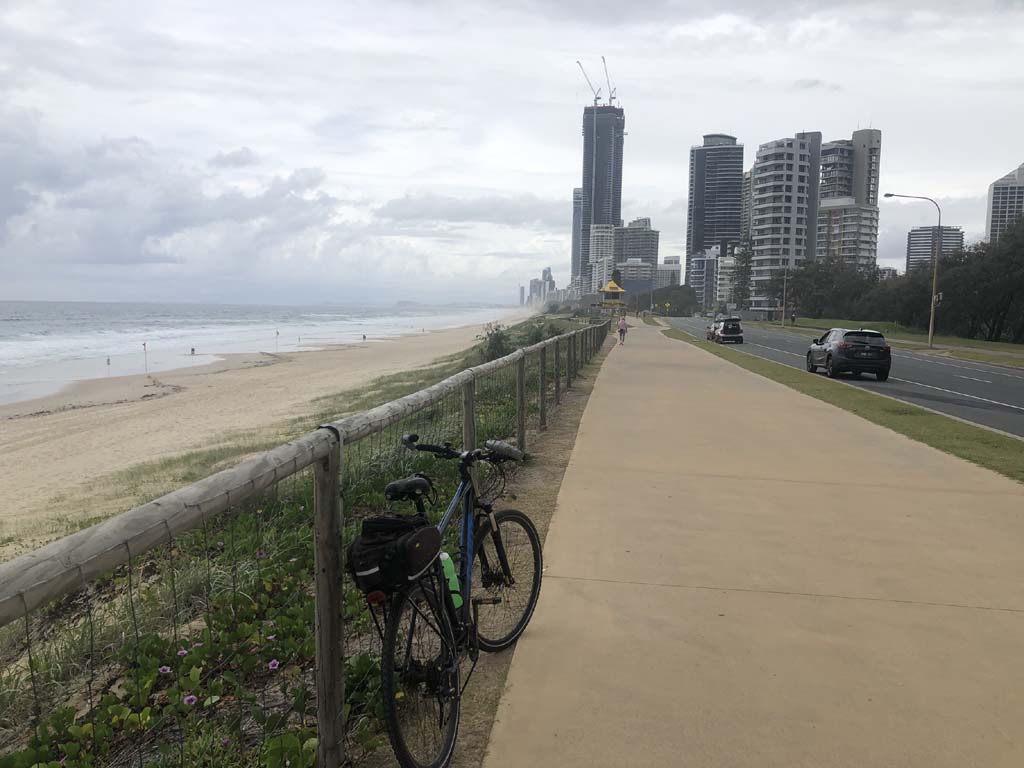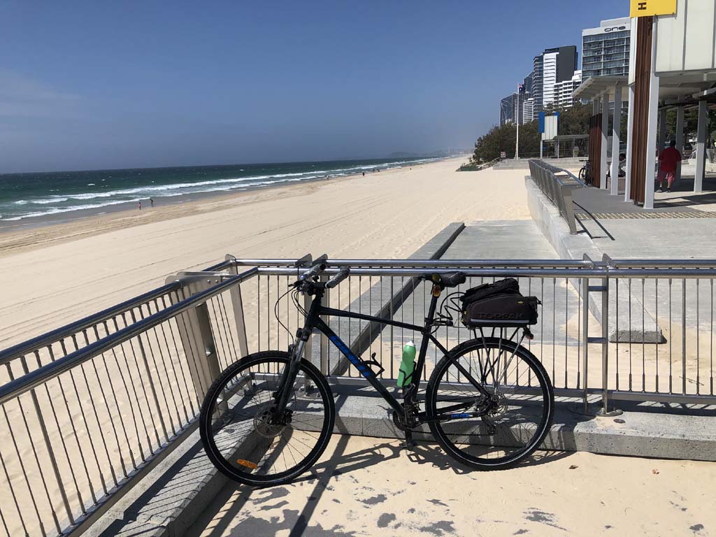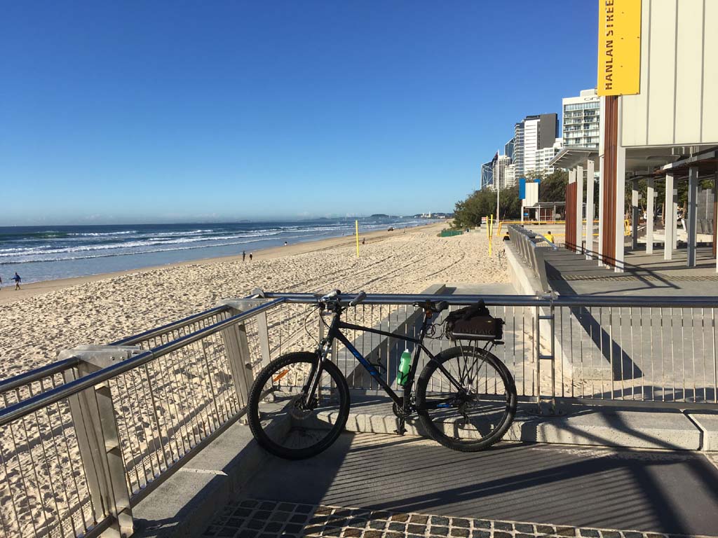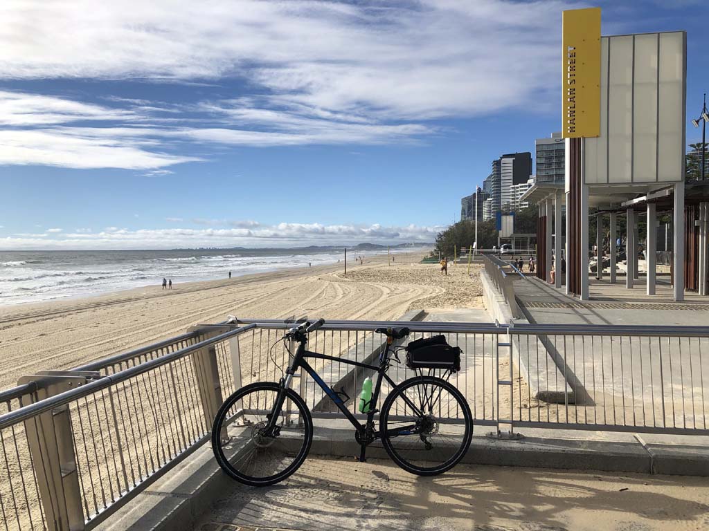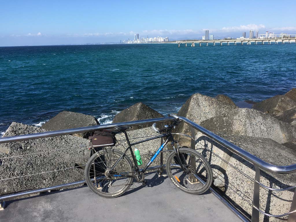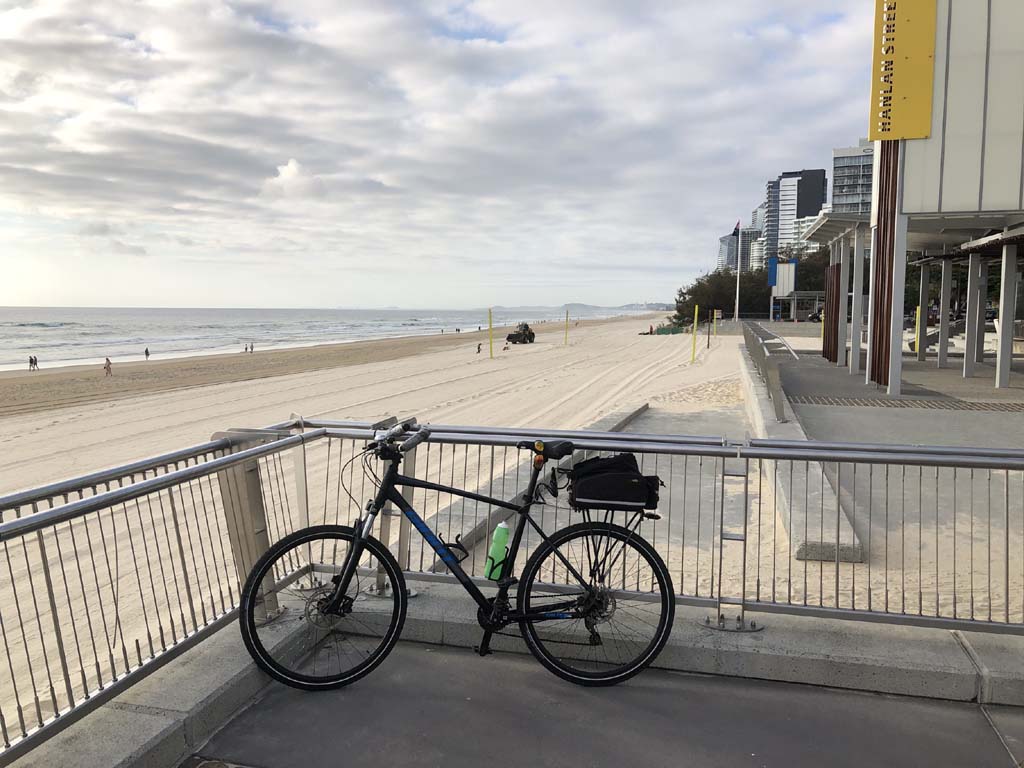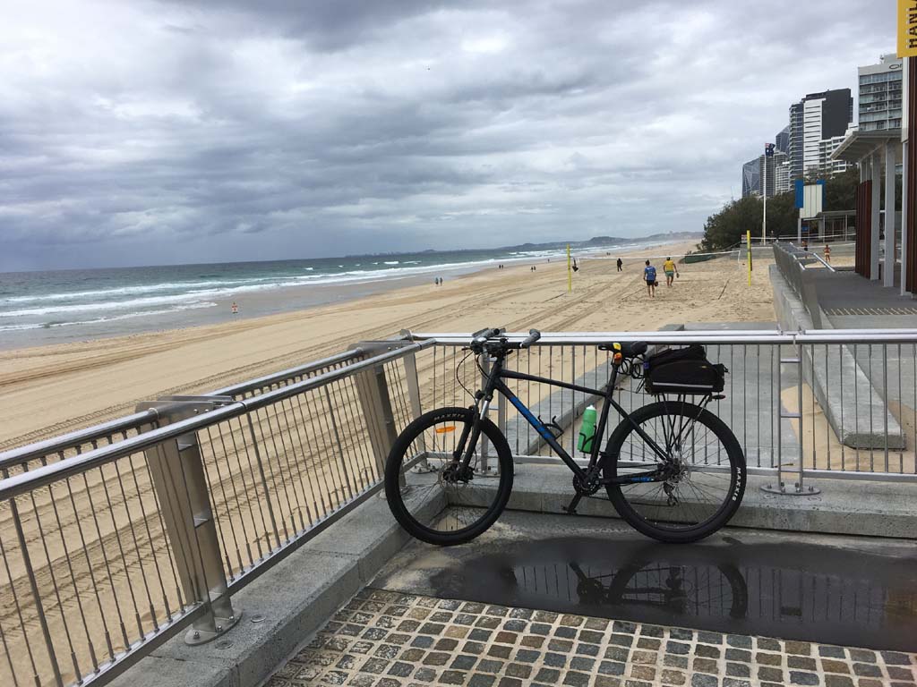 Home to Turnaround Pt down to Surfers via GC600 Park to Surfers to The Spit (both ends - twice) then back through GC600 Park back to Cafe Rockpool and finally back Home about 50+kms.