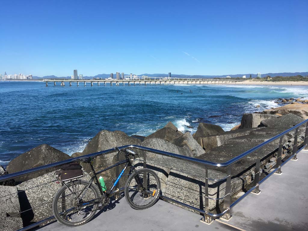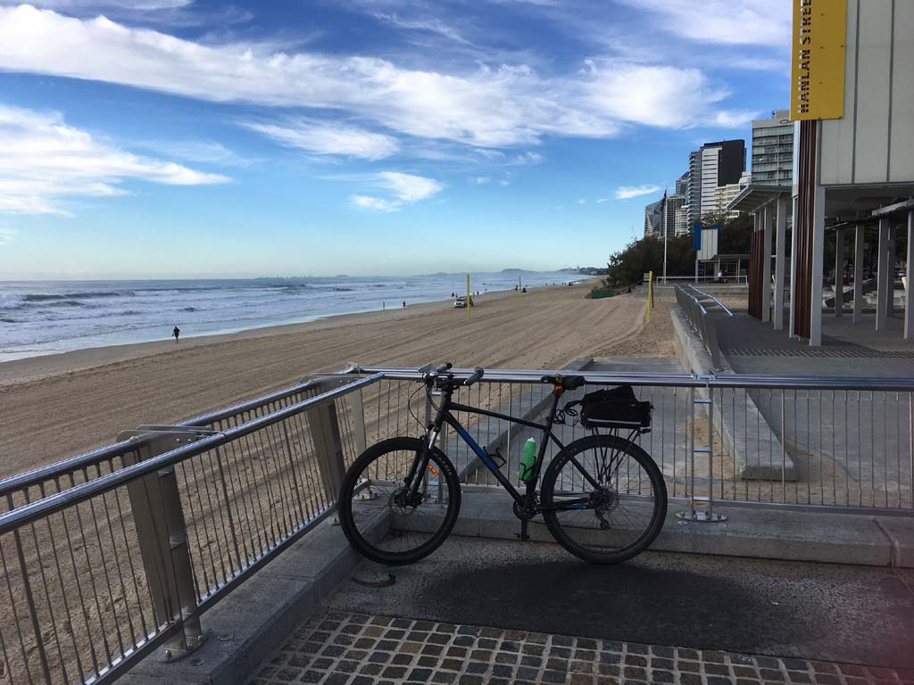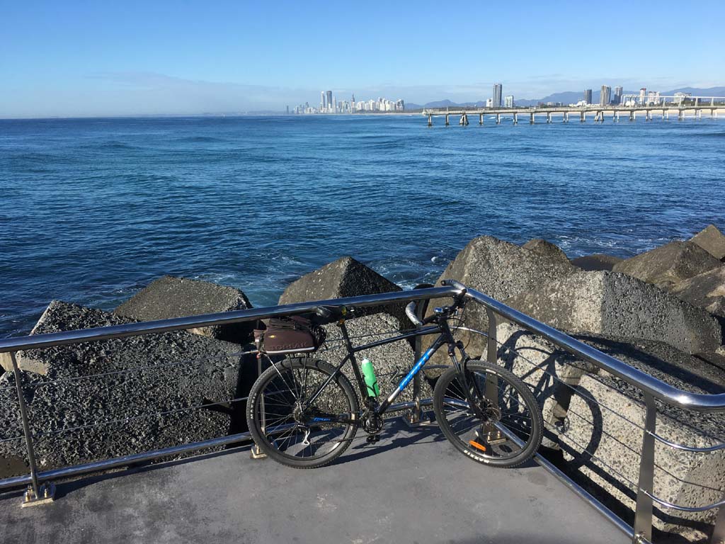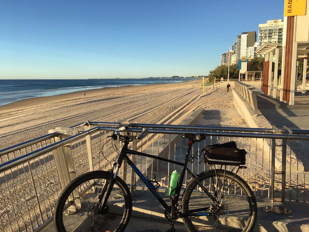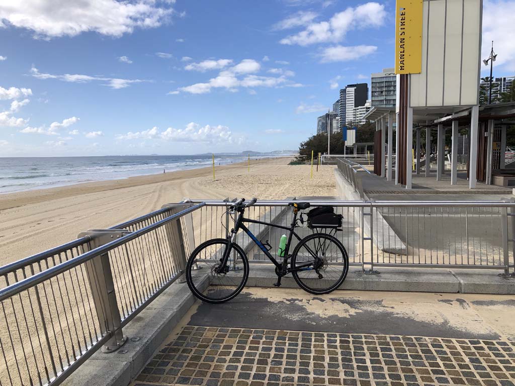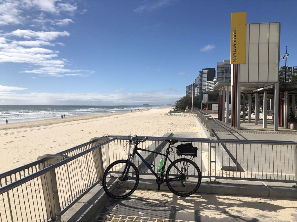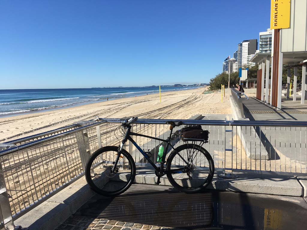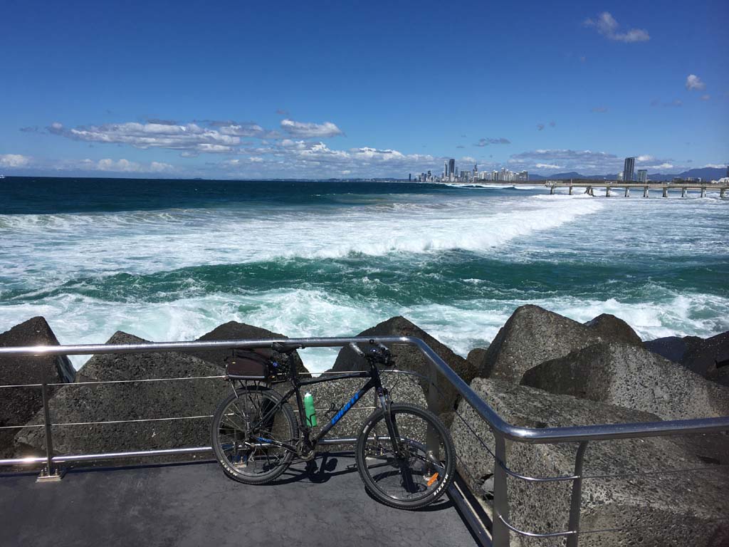Home to Turnaround Pt down to Surfers via GC600 Park to Surfers to The Spit (both ends - twice) then back through GC600 Park back to Cafe Rockpool and finally back Home about 50+kms.