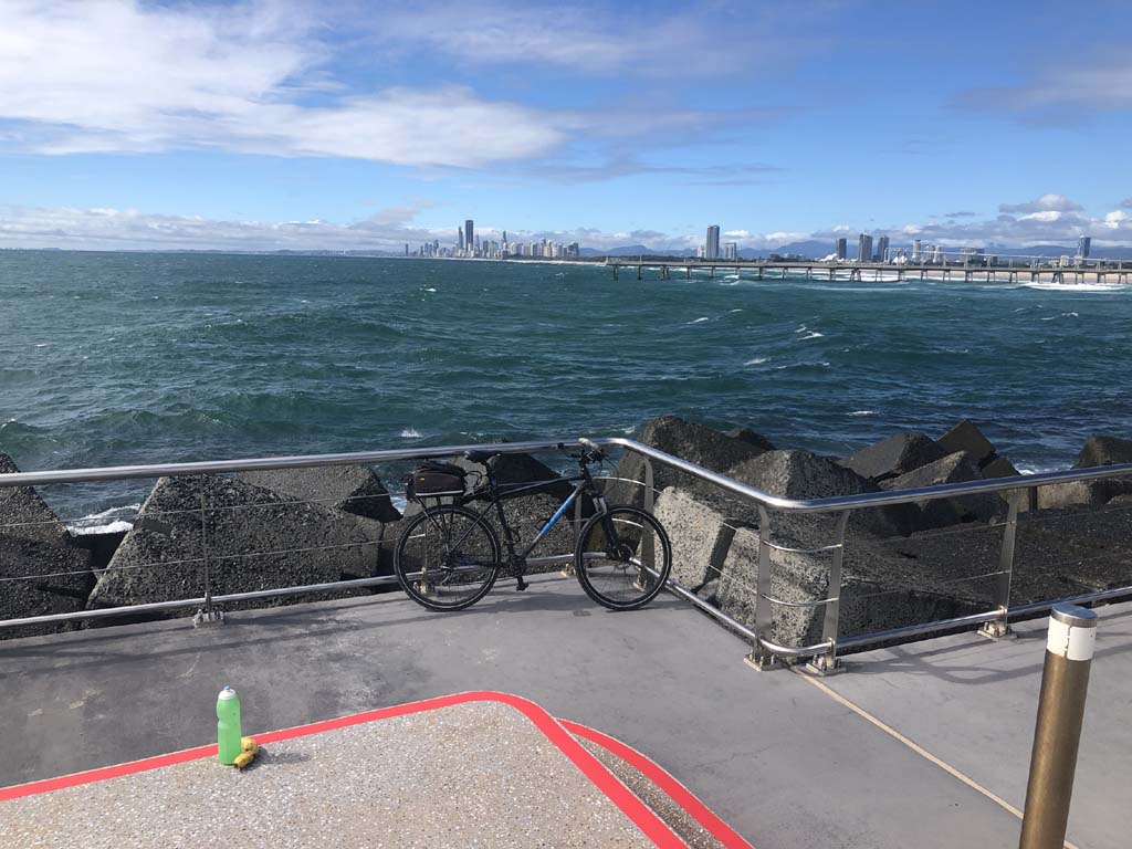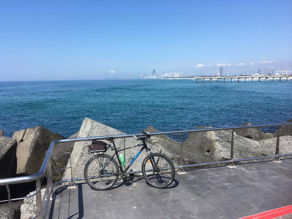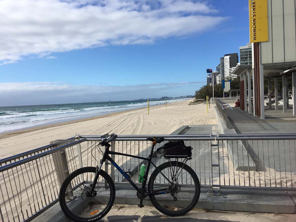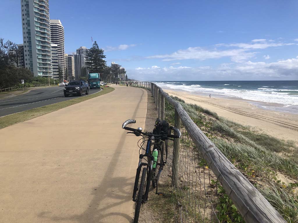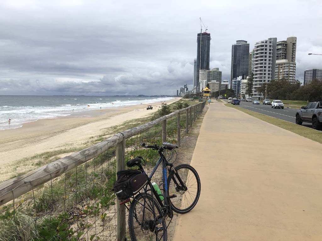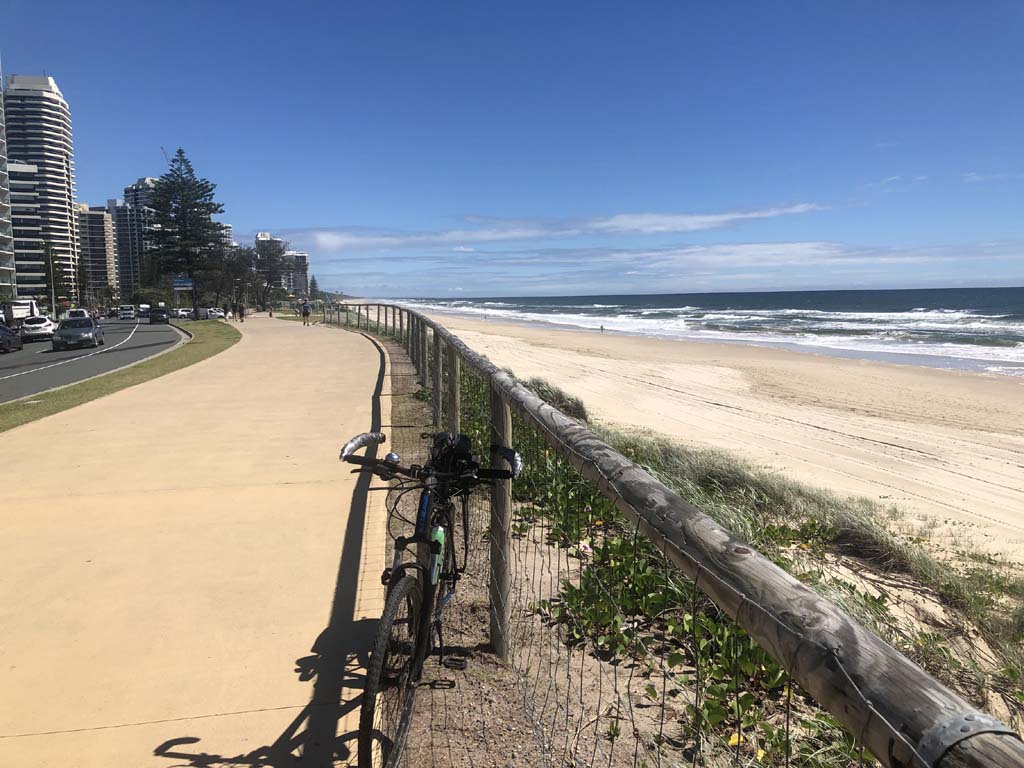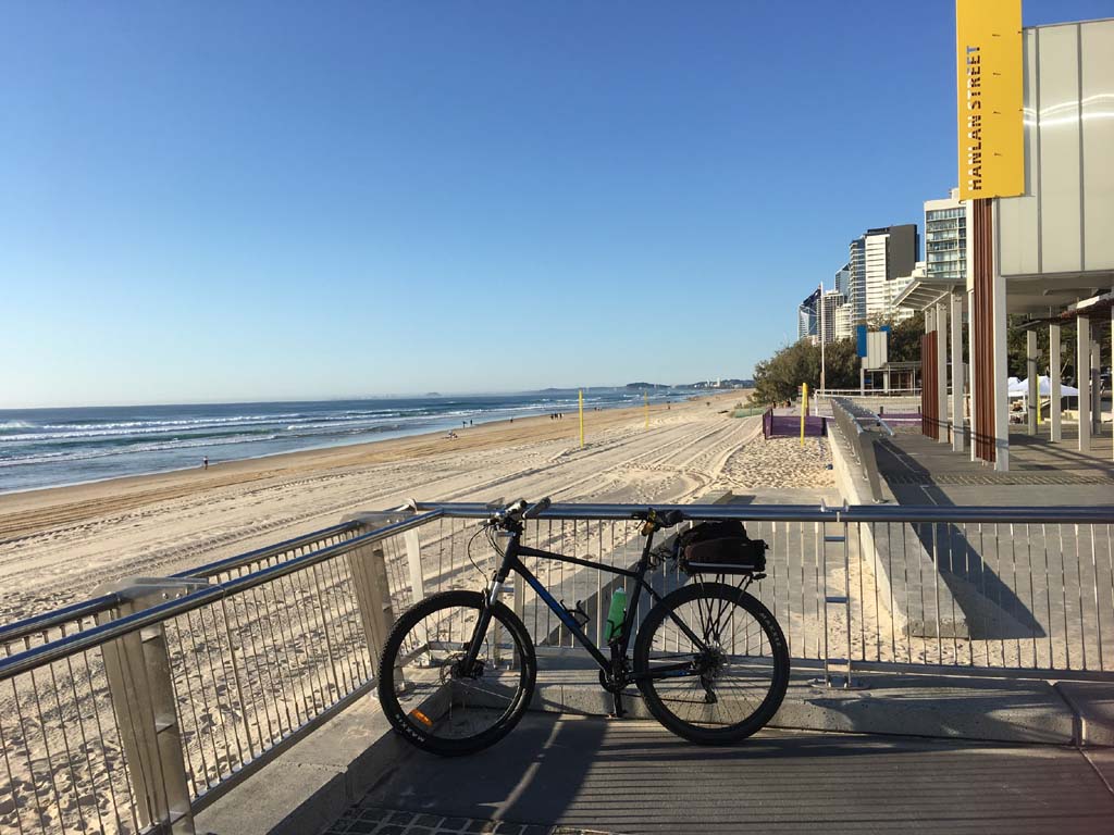 Home to Turnaround Pt down to Surfers via GC600 Park to Surfers to The Spit (both ends - twice) then back through GC600 Park back to Cafe Rockpool and finally back Home about 50+kms.