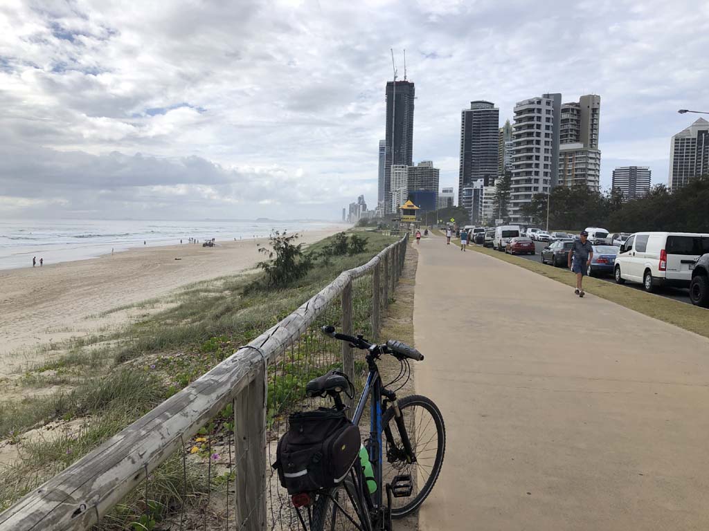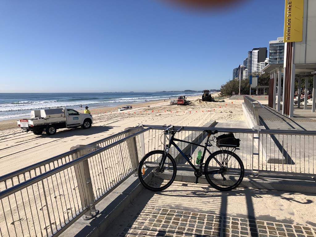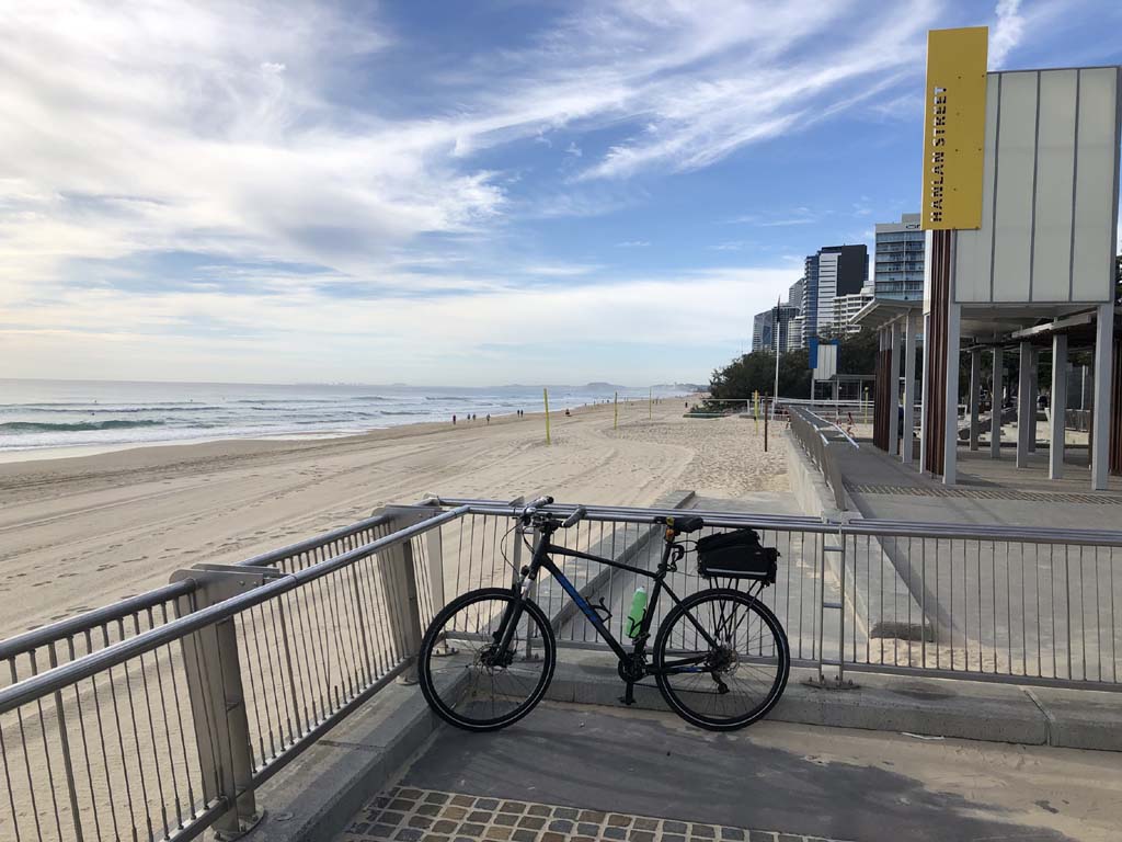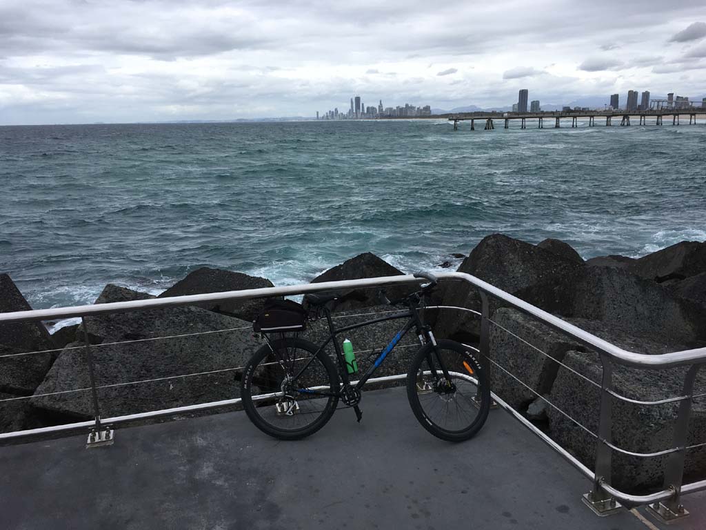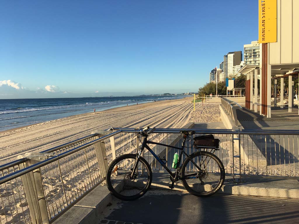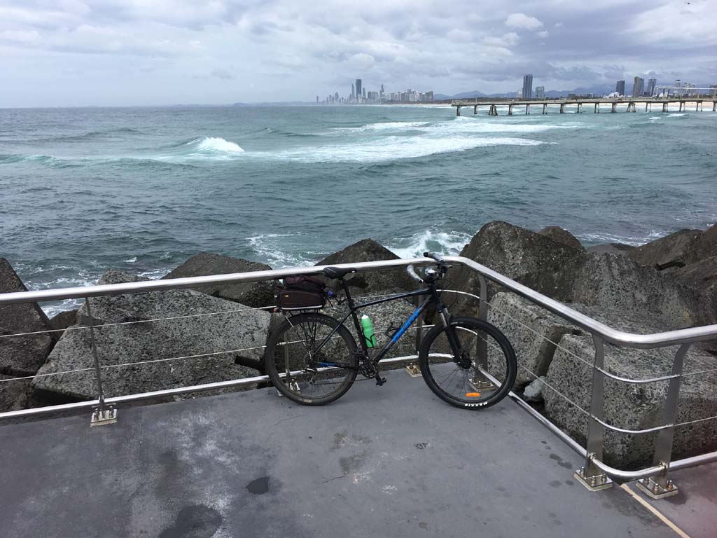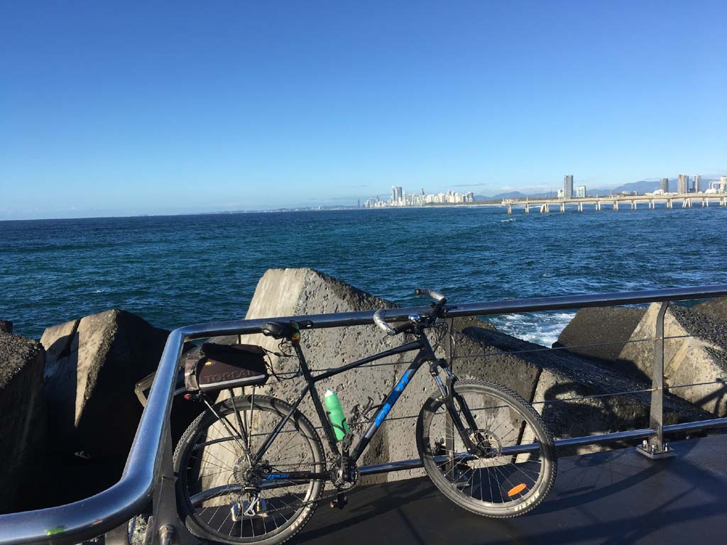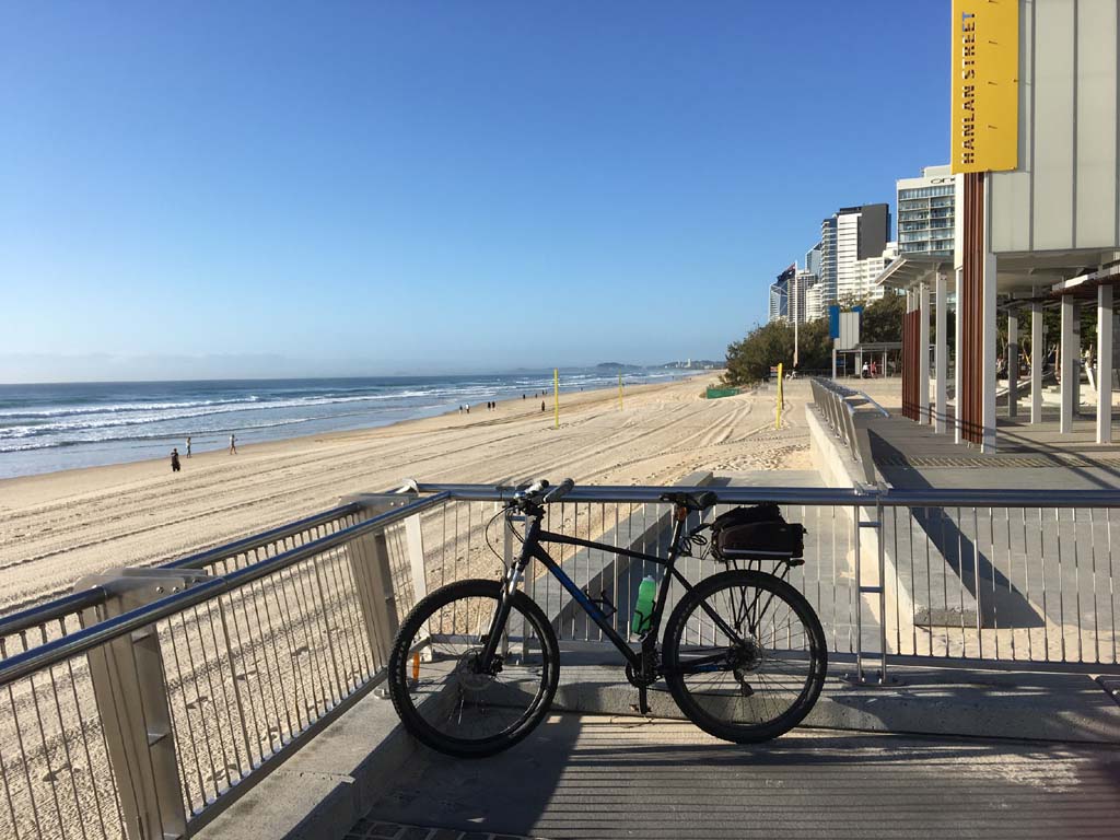 Home to Turnaround Pt down to Surfers via GC600 Park to Surfers to The Spit (both ends - twice) then back through GC600 Park back to Cafe Rockpool and finally back Home about 50+kms.