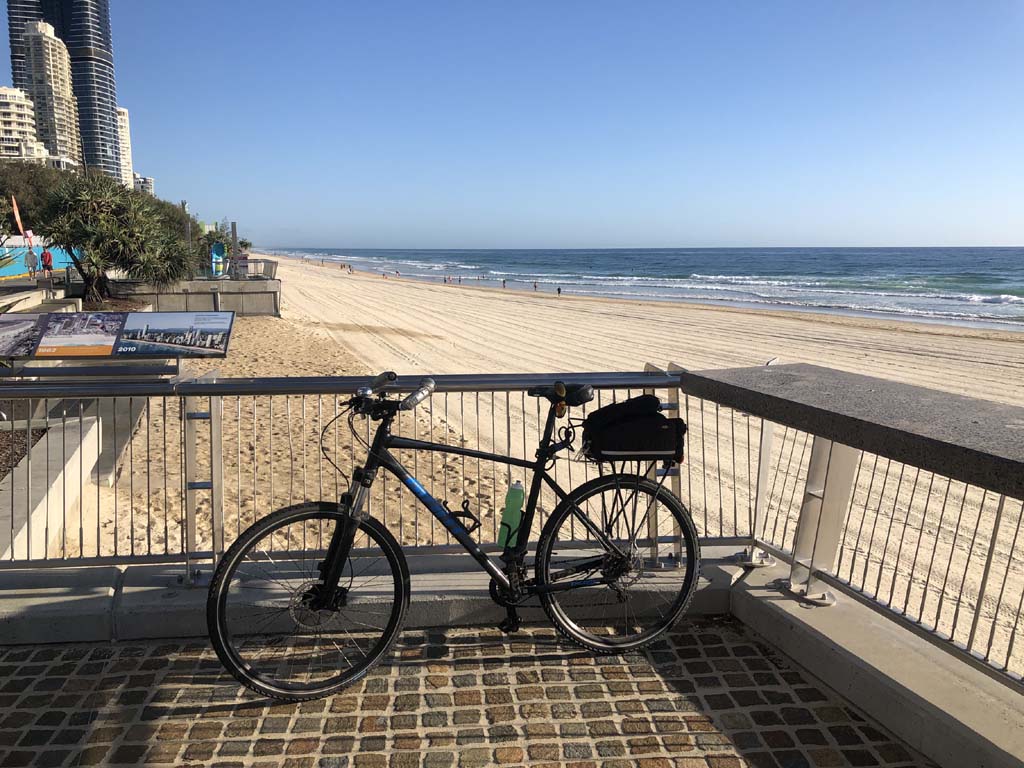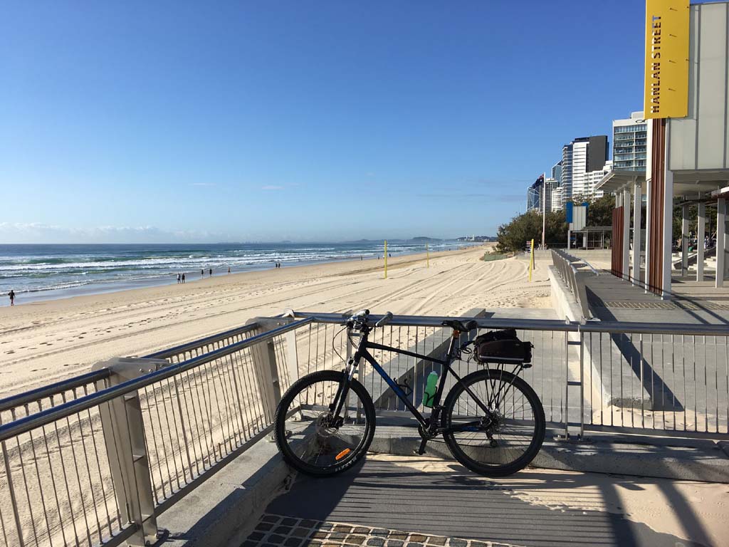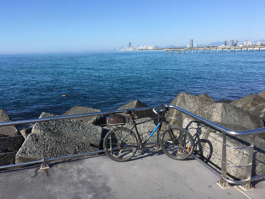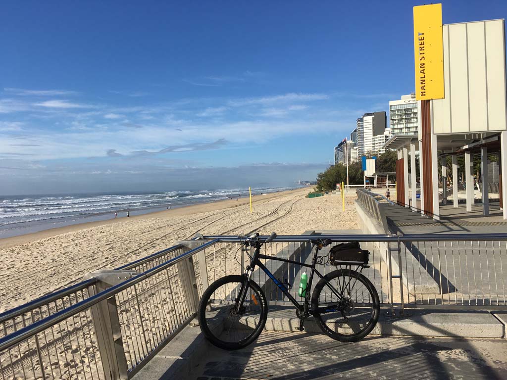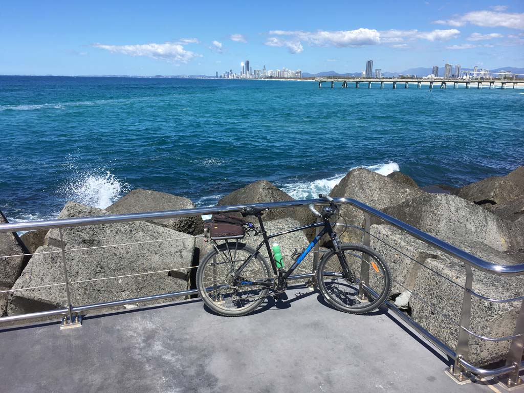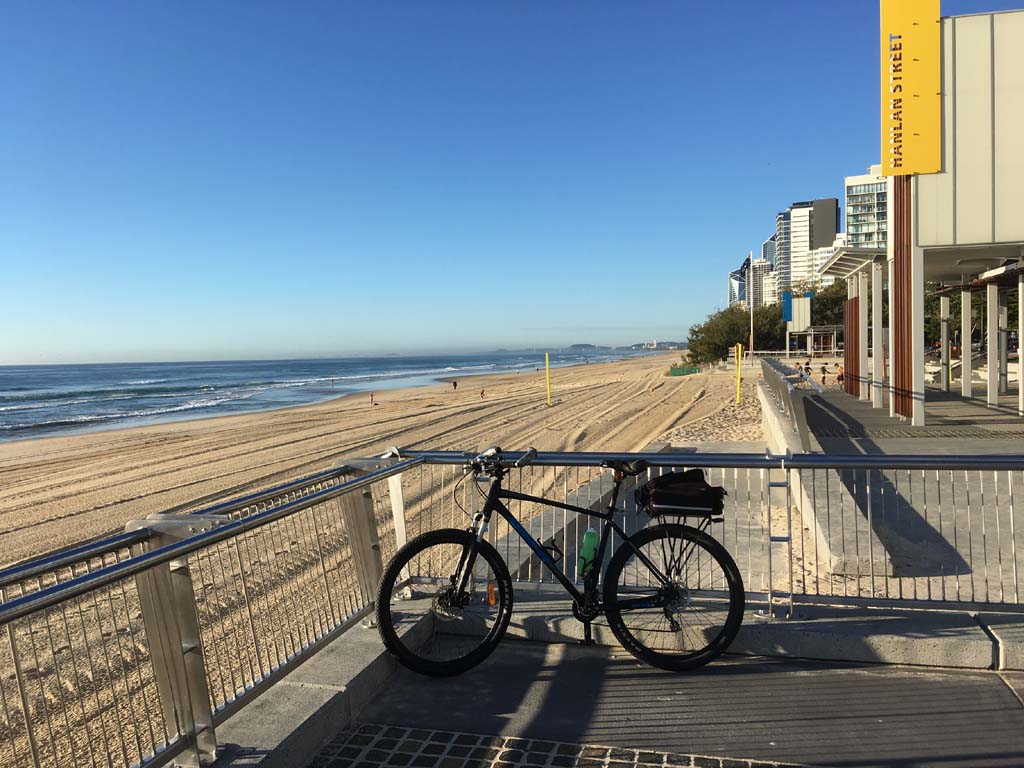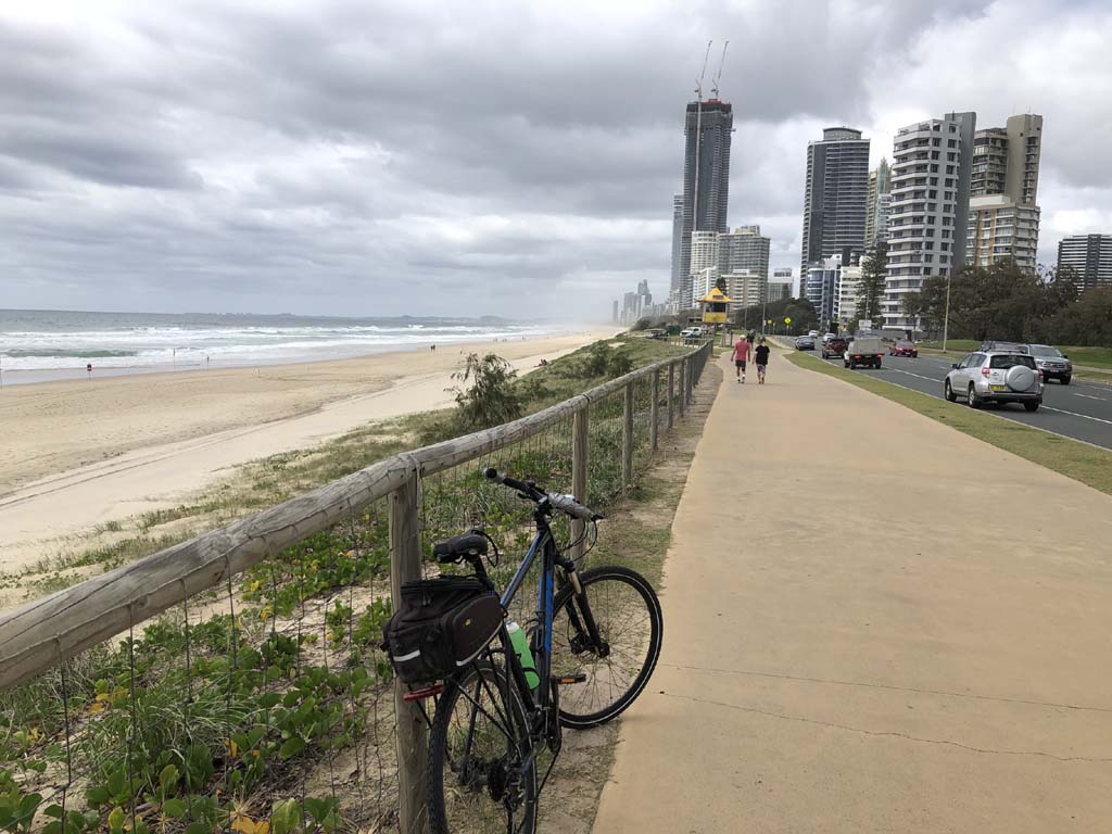 Home to Turnaround Pt down to Surfers via GC600 Park to Surfers to The Spit (both ends - twice) then back through GC600 Park back to Cafe Rockpool and finally back Home about 50+kms.