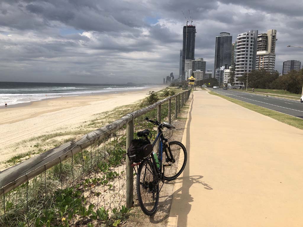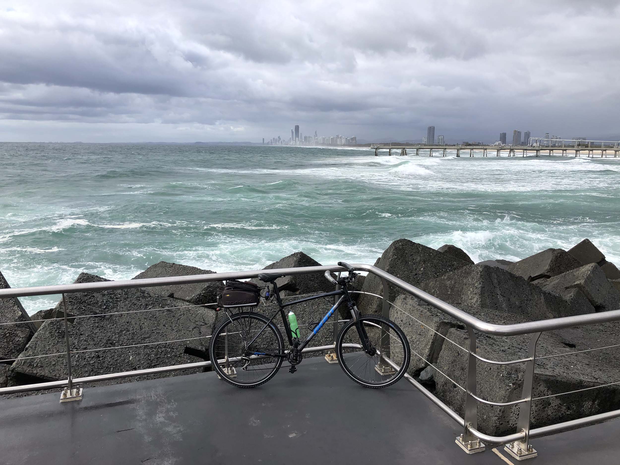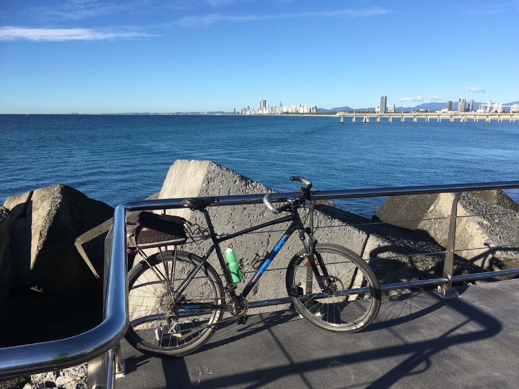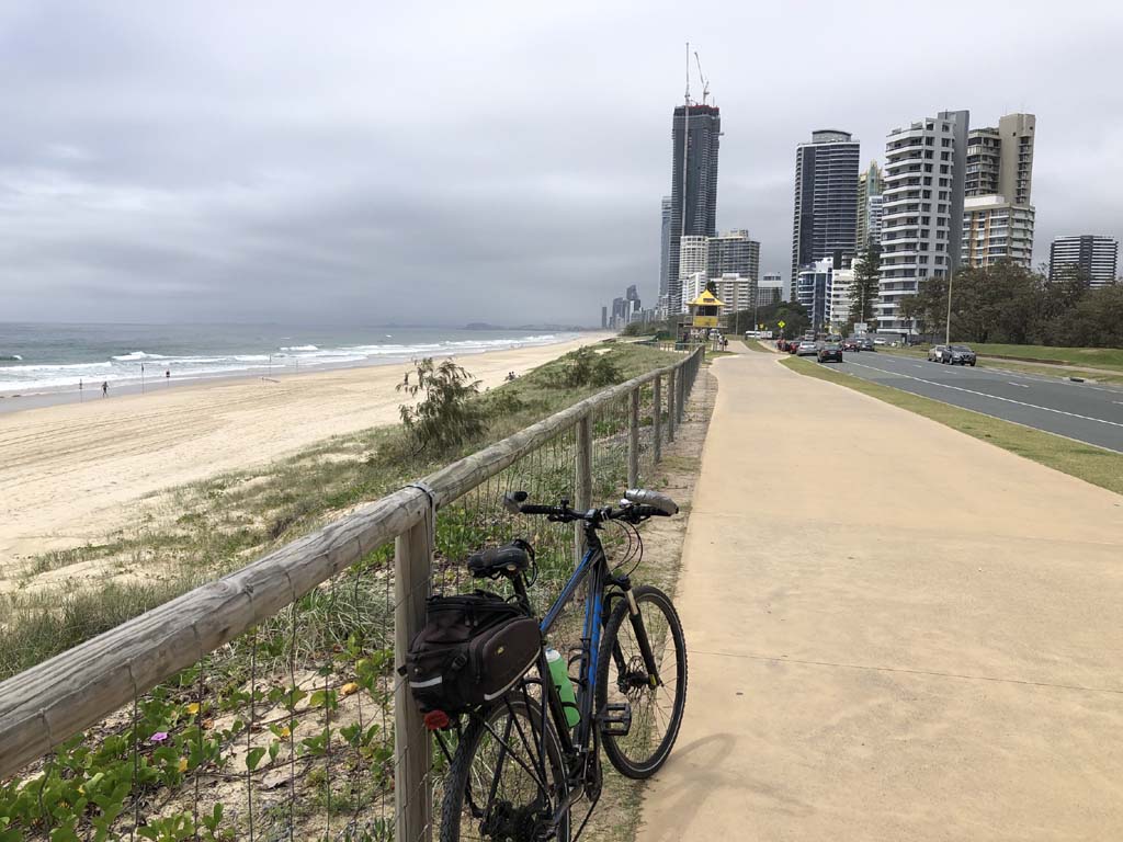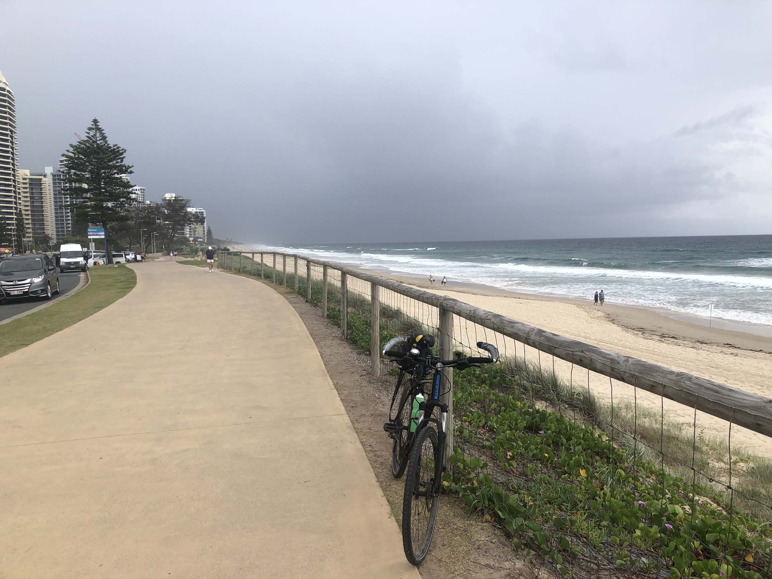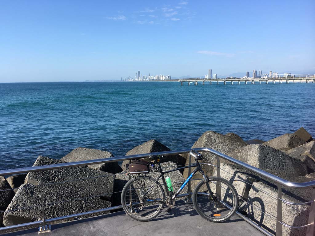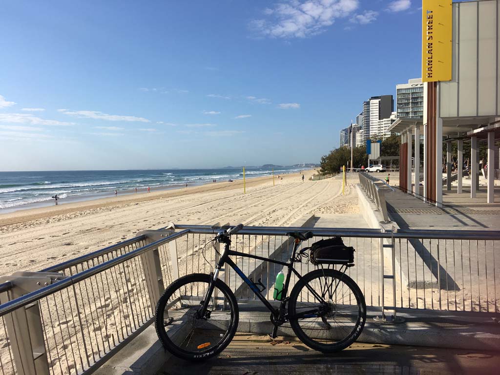 Home to Turnaround Pt down to Surfers via GC600 Park to Surfers to The Spit (both ends - twice) then back through GC600 Park back to Cafe Rockpool and finally back Home about 50+kms.