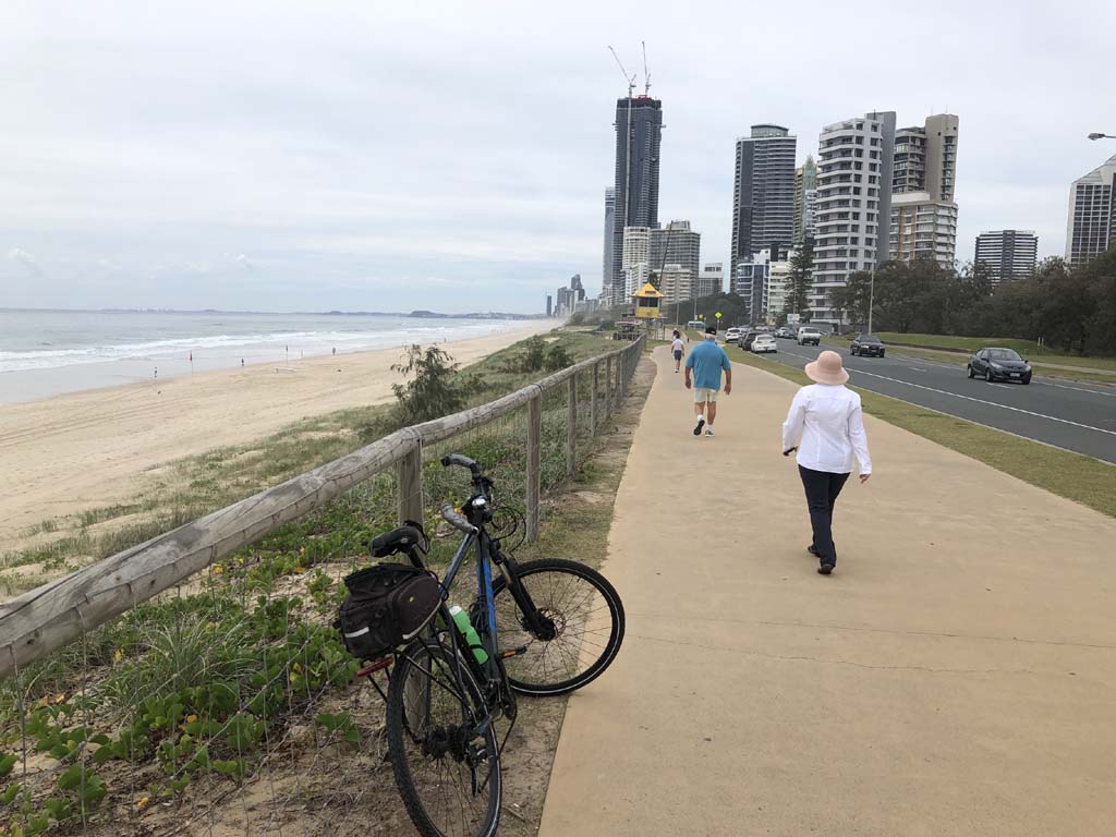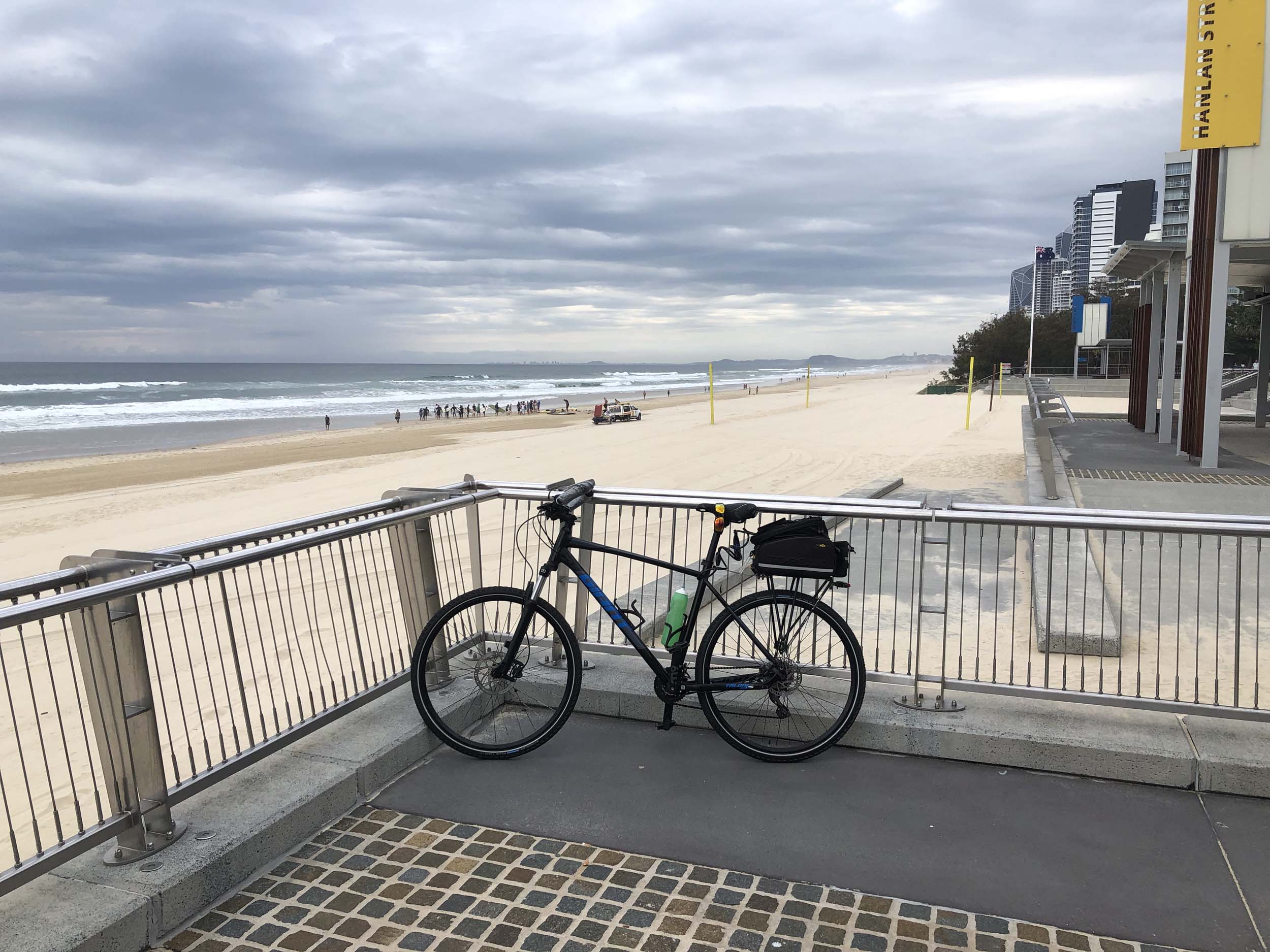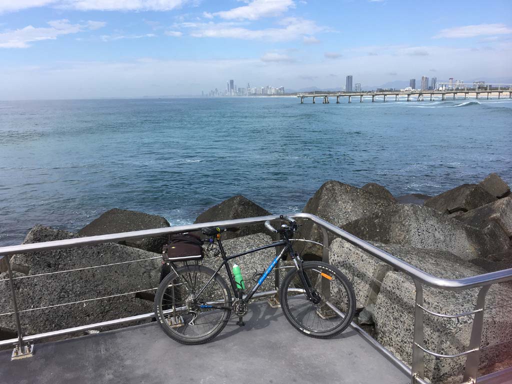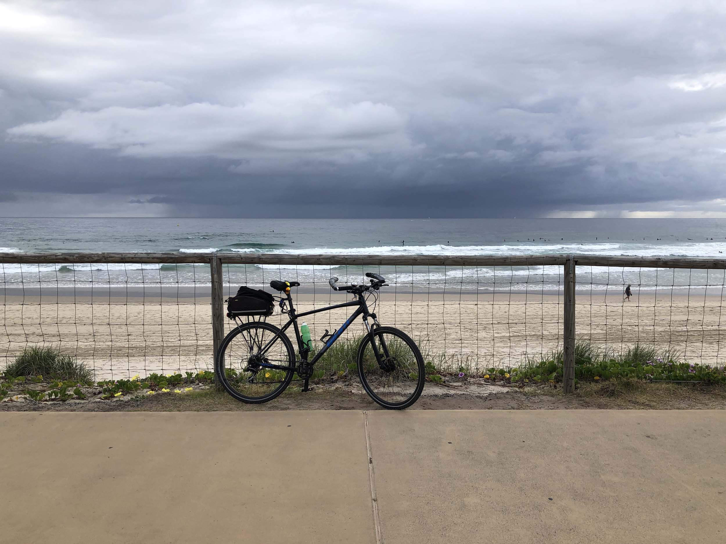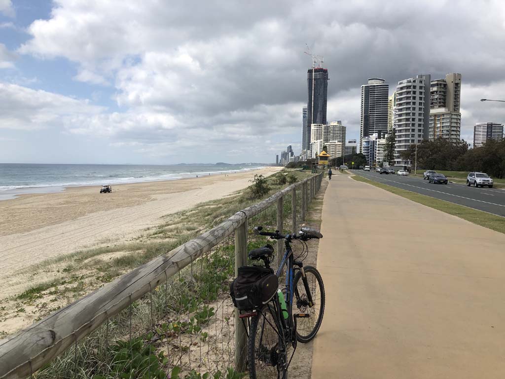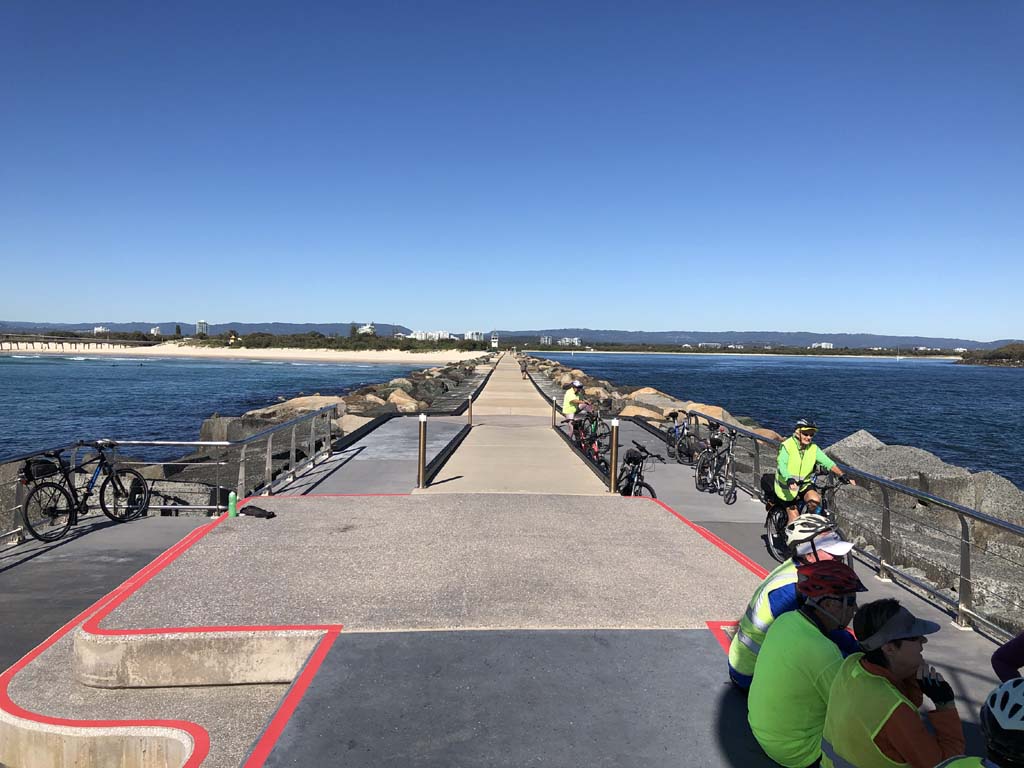 Home to Turnaround Pt down to Surfers via GC600 Park to Surfers to The Spit (both ends - twice) then back through GC600 Park back to Cafe Rockpool and finally back Home about 50+kms.