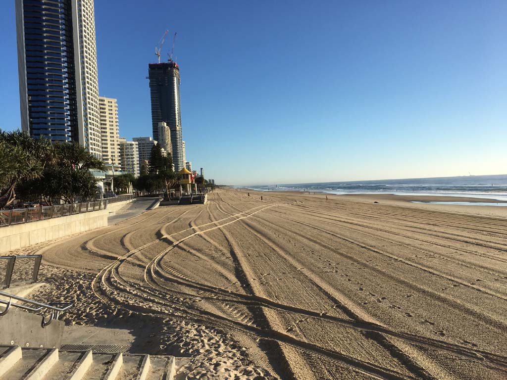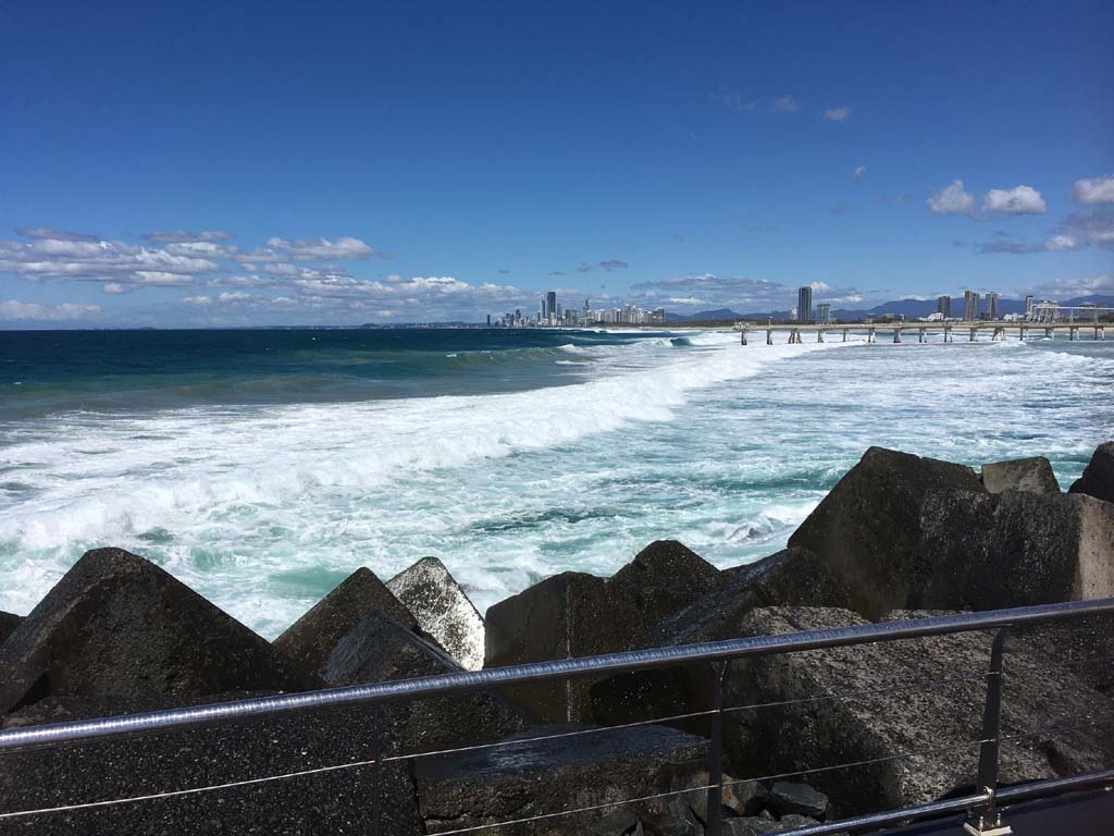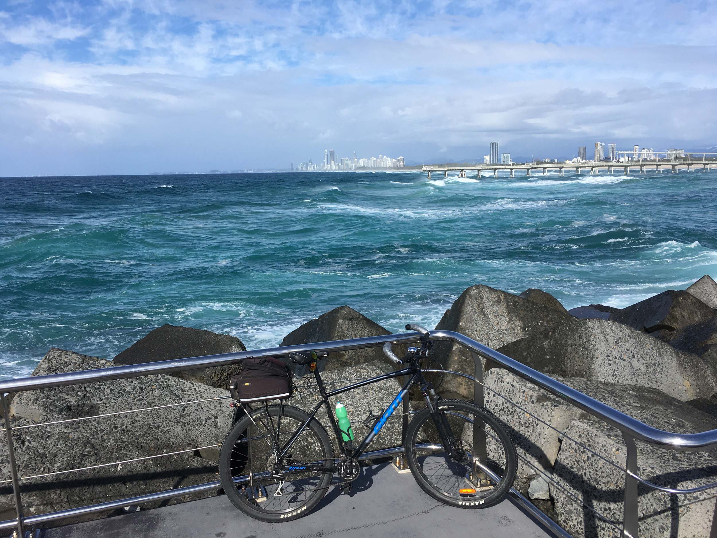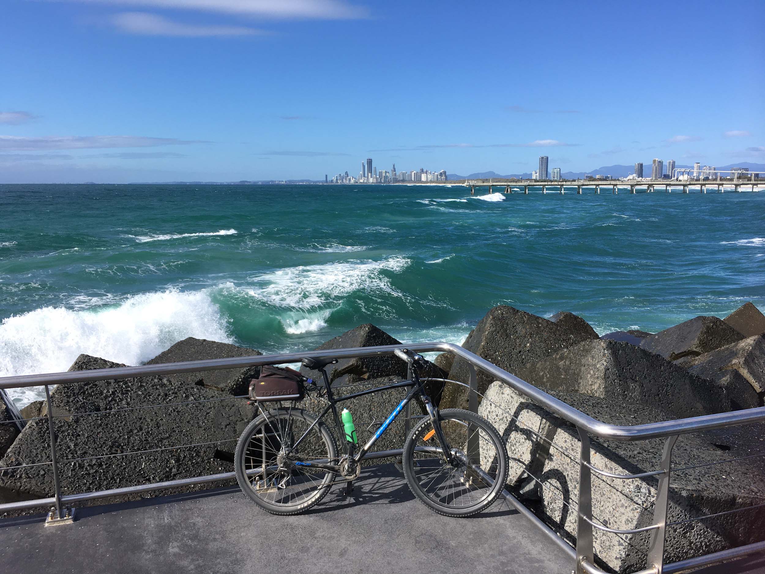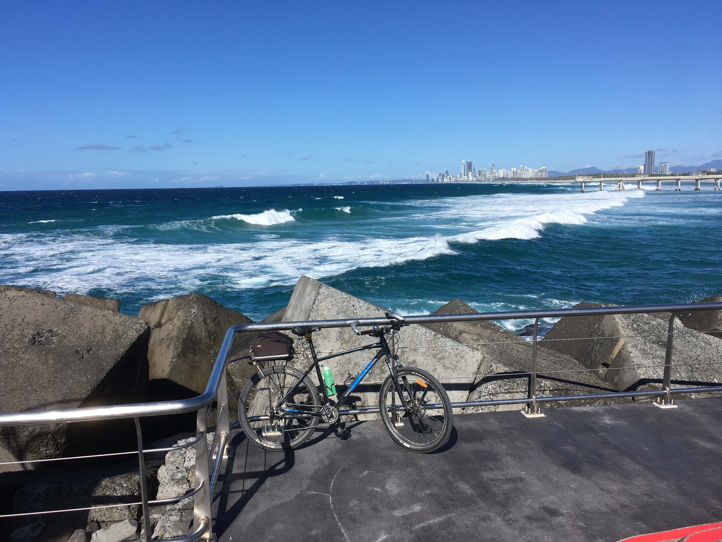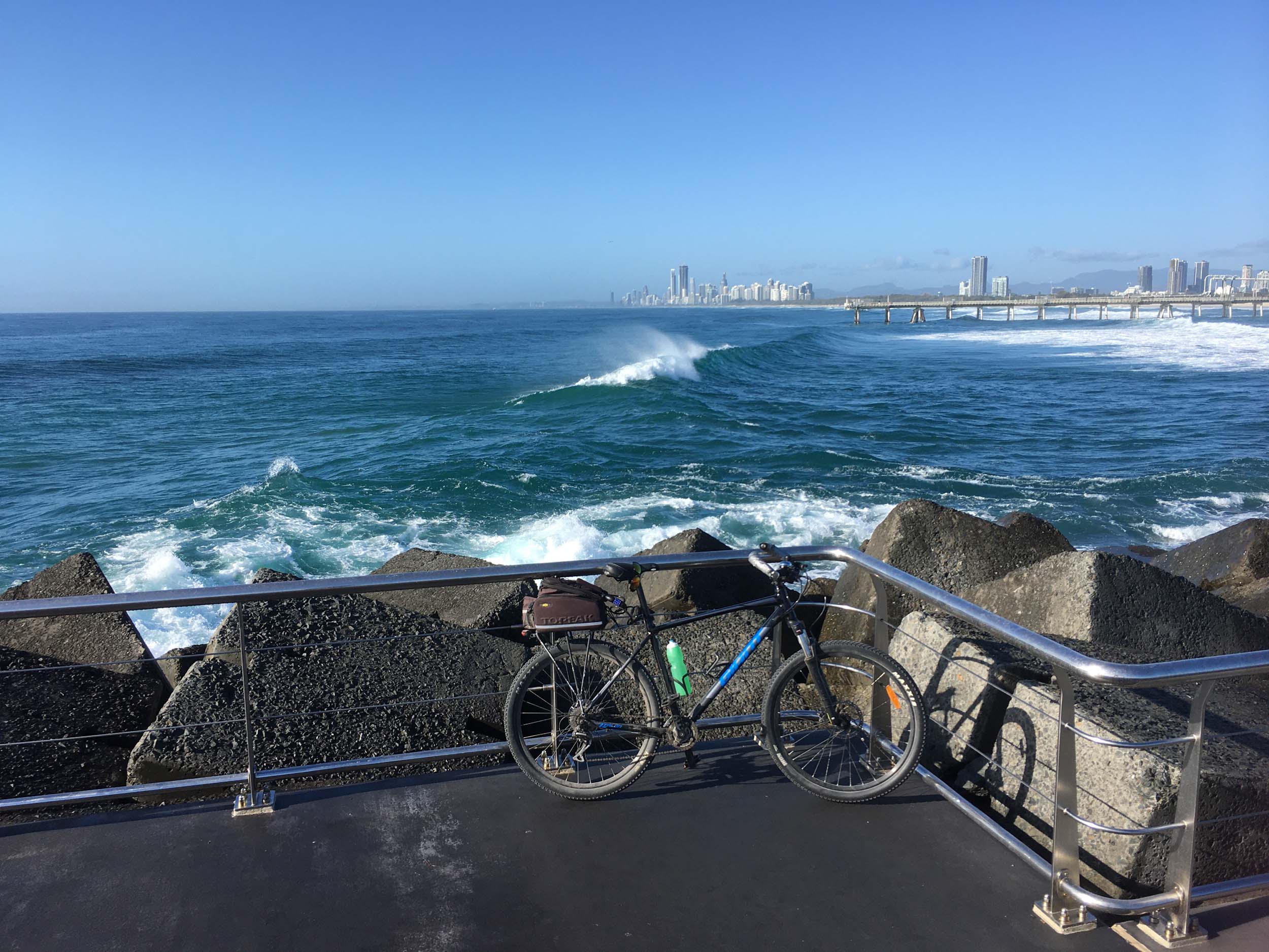 Home to Turnaround Pt down to Surfers via GC600 Park to Surfers to The Spit (both ends - twice) then back through GC600 Park back to Cafe Rockpool and finally back Home about 50+kms.
