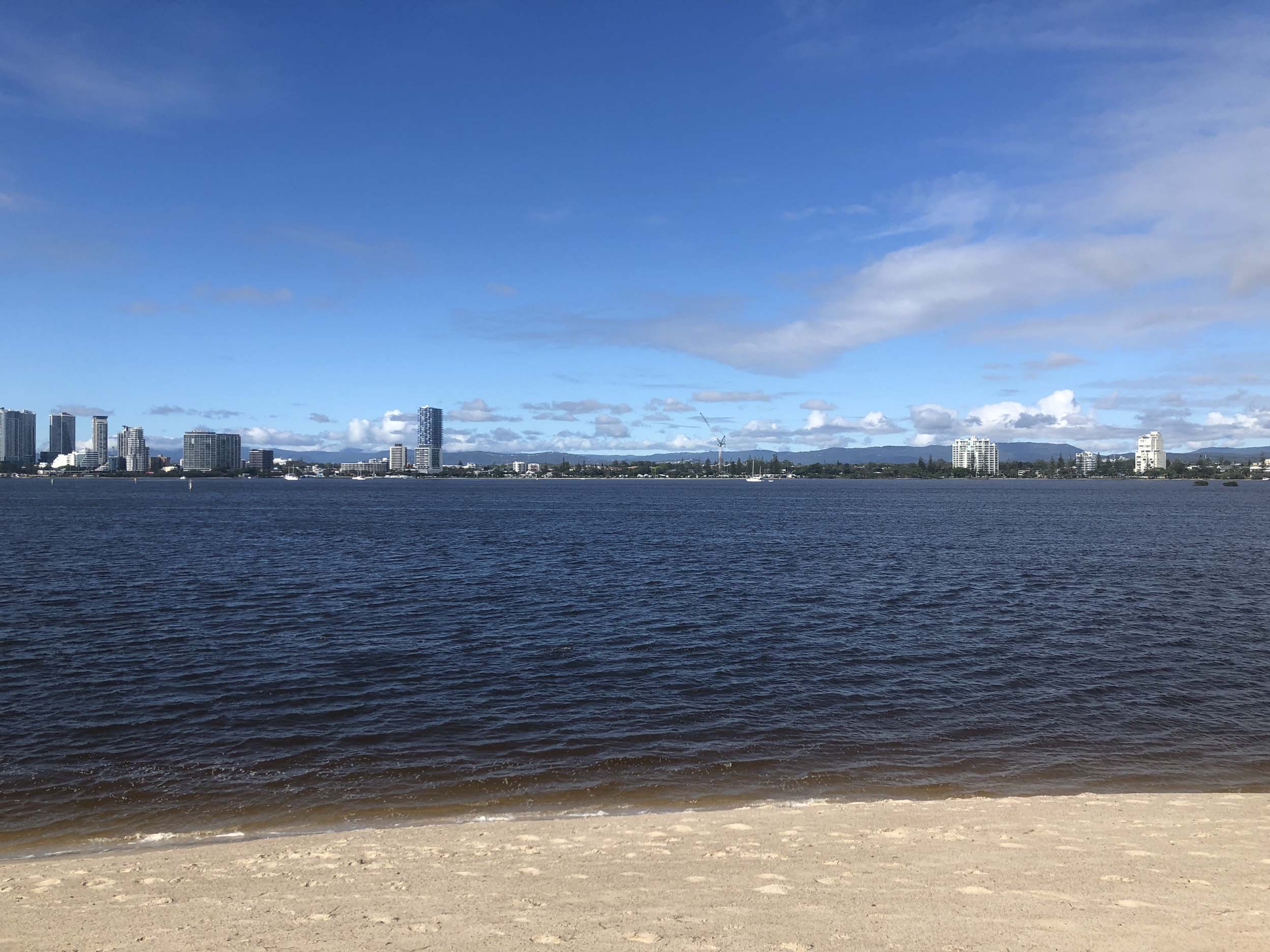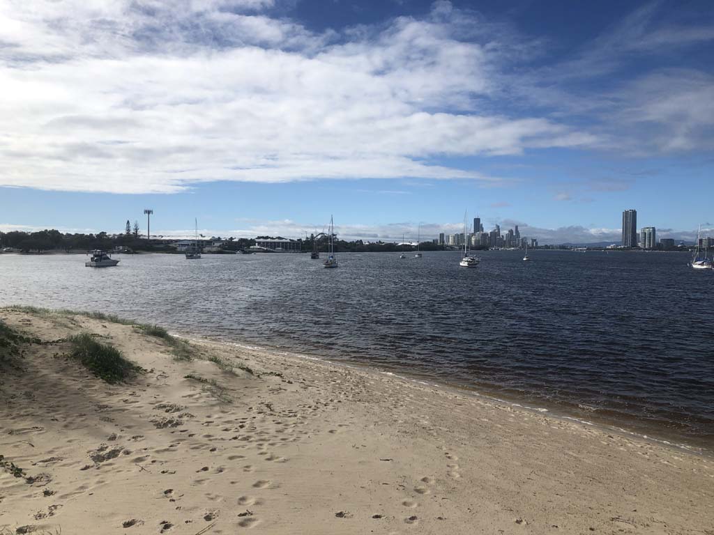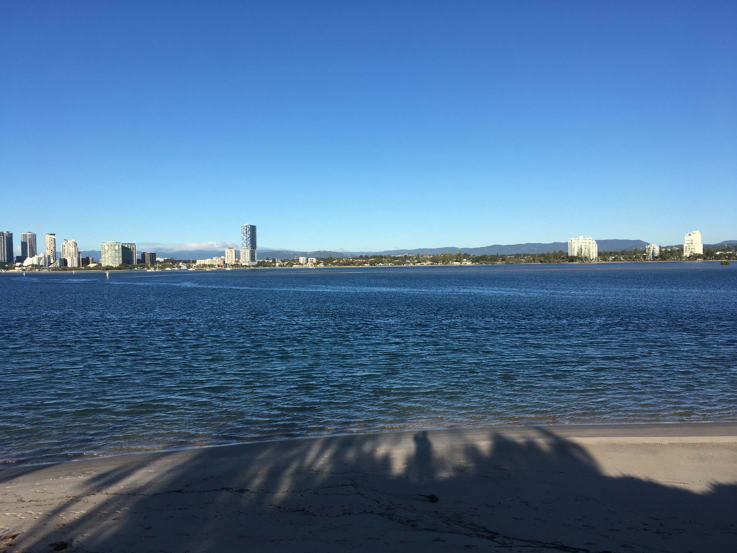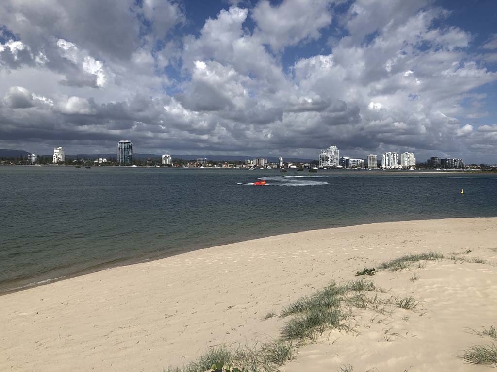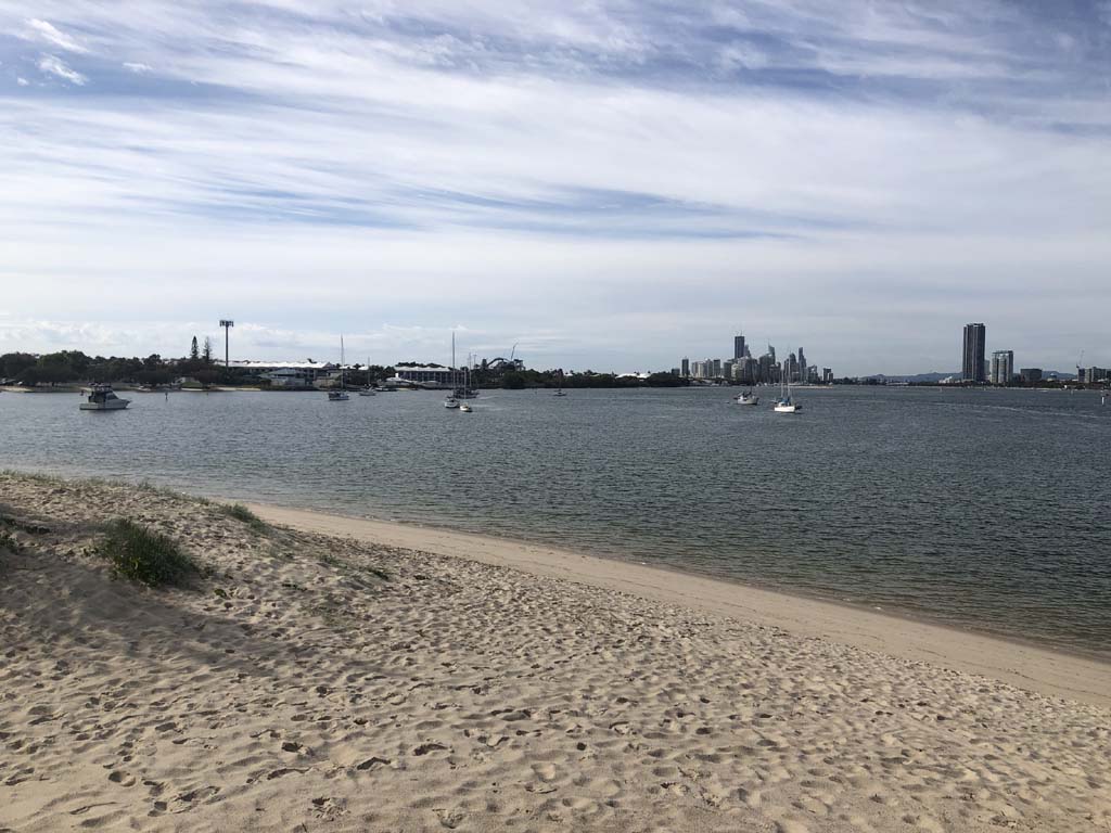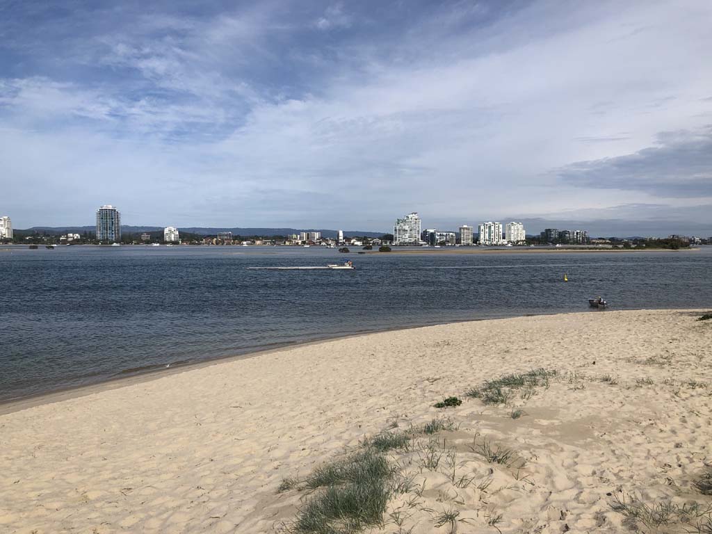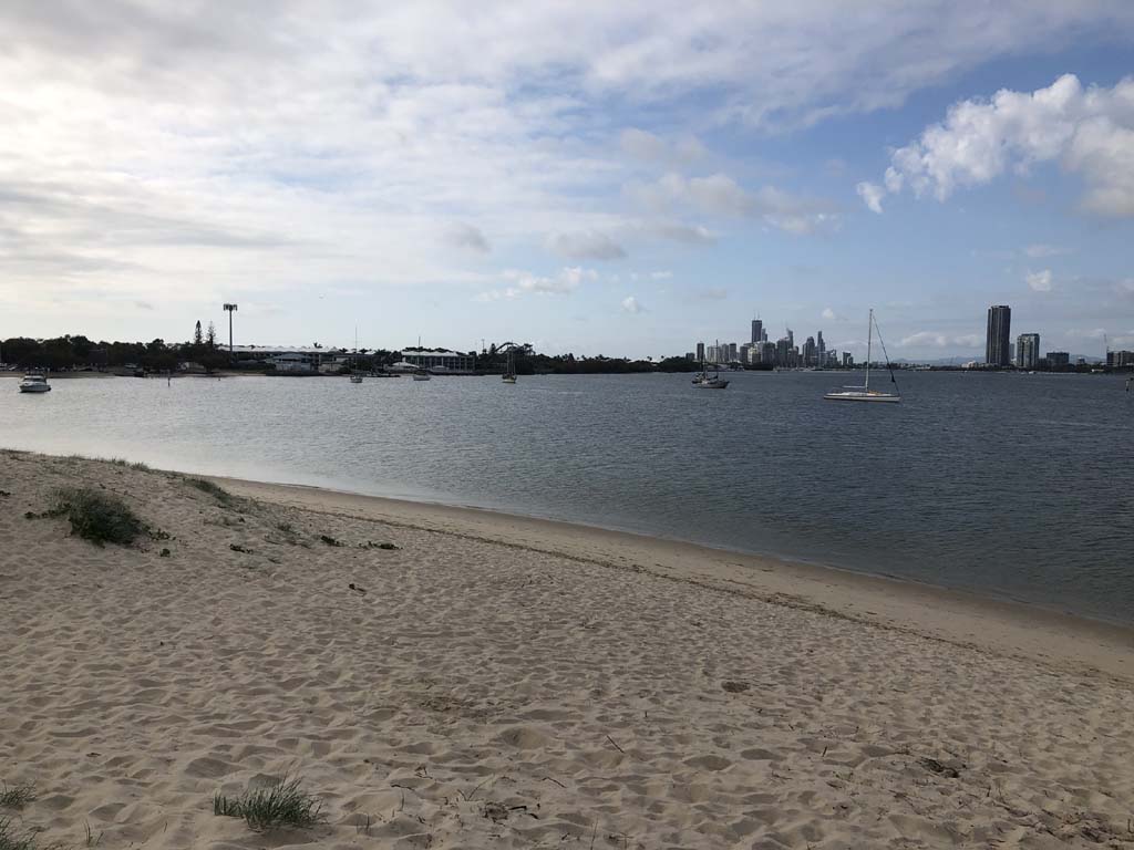 I left home at 7:18am, the breeze was from the South East and building slightly, the Broadwater was slightly choppy.