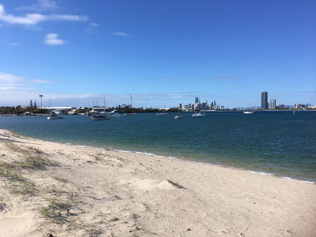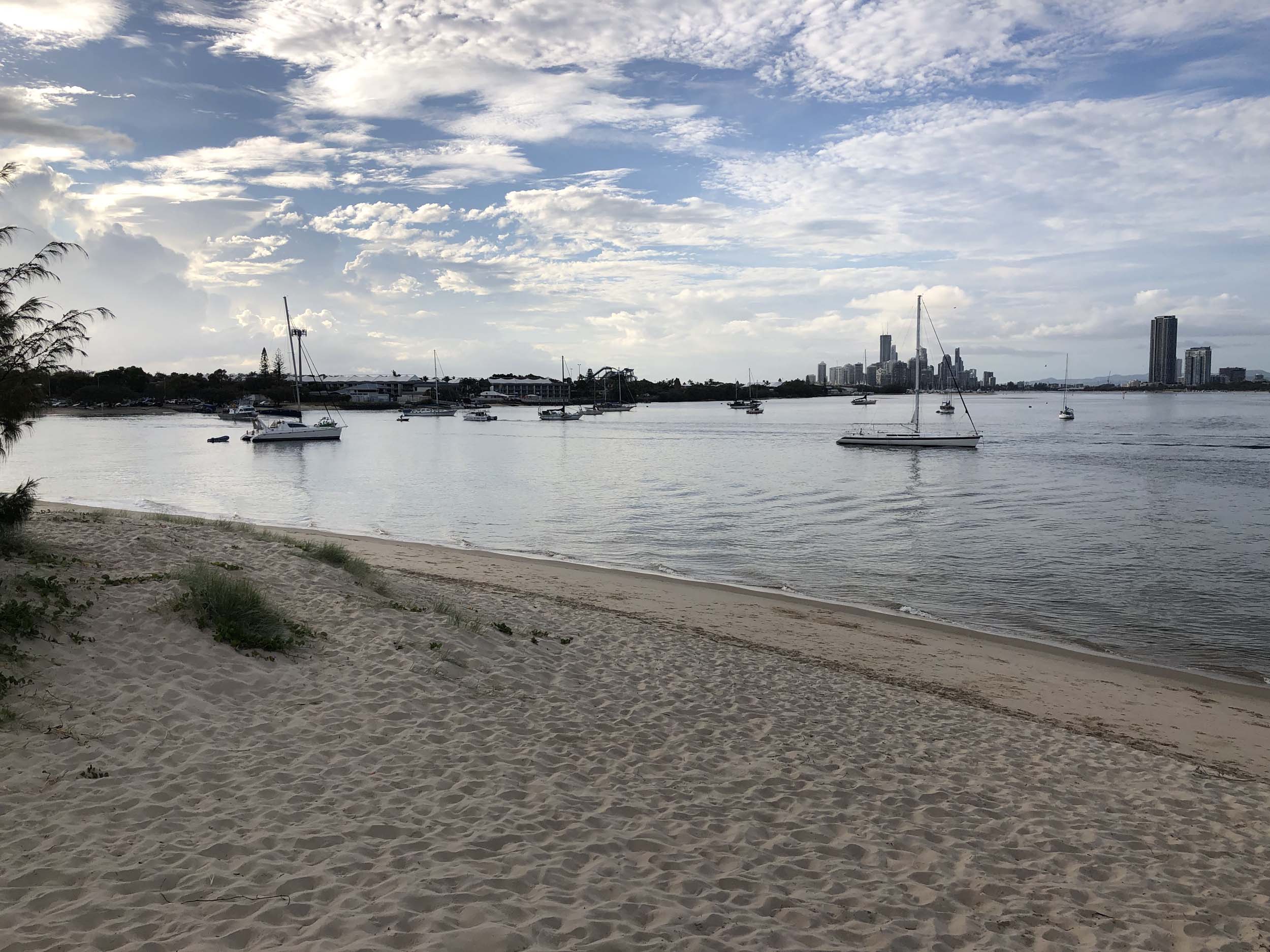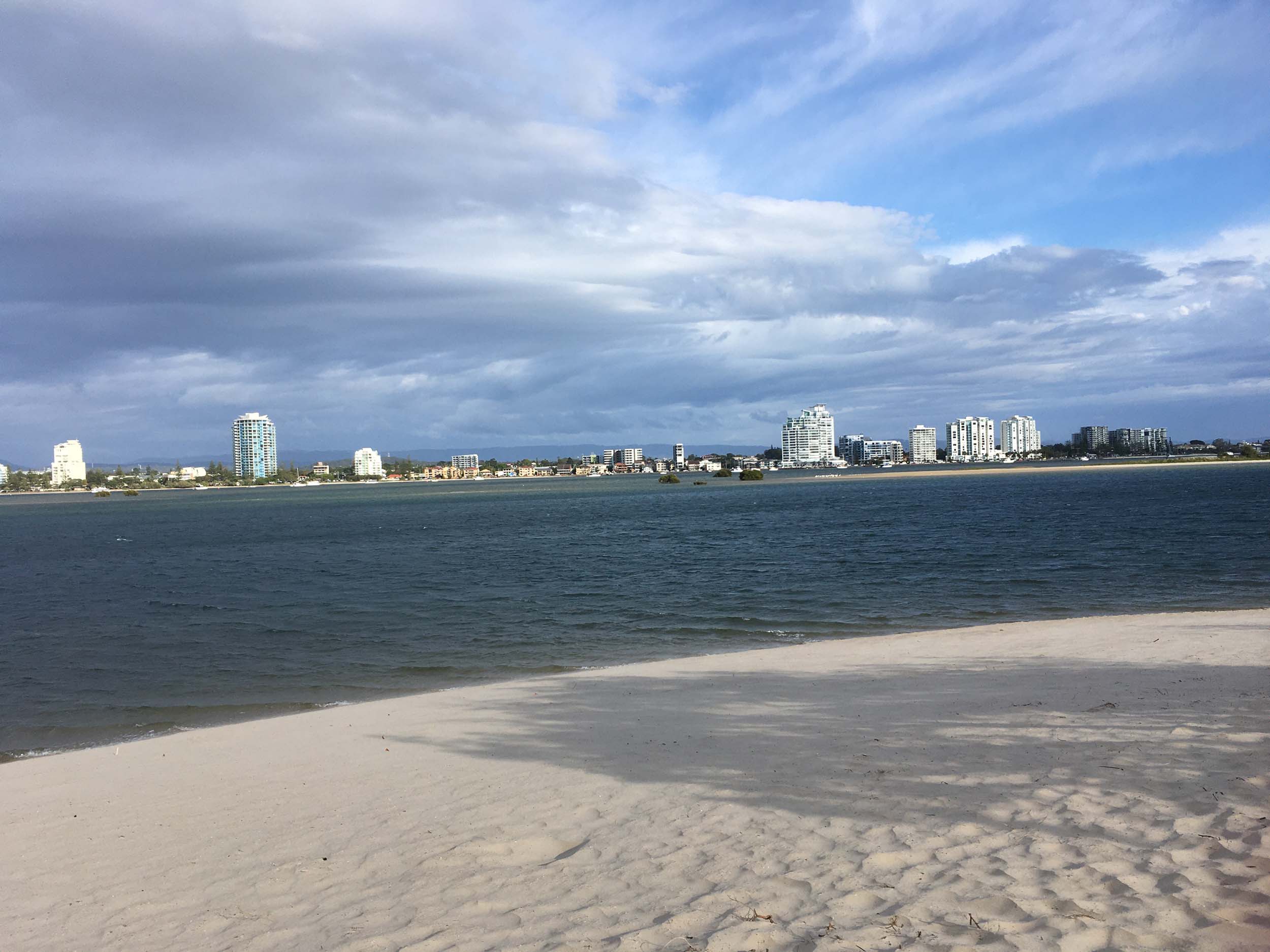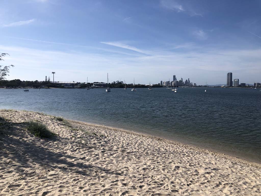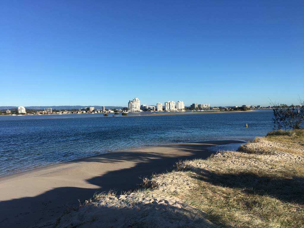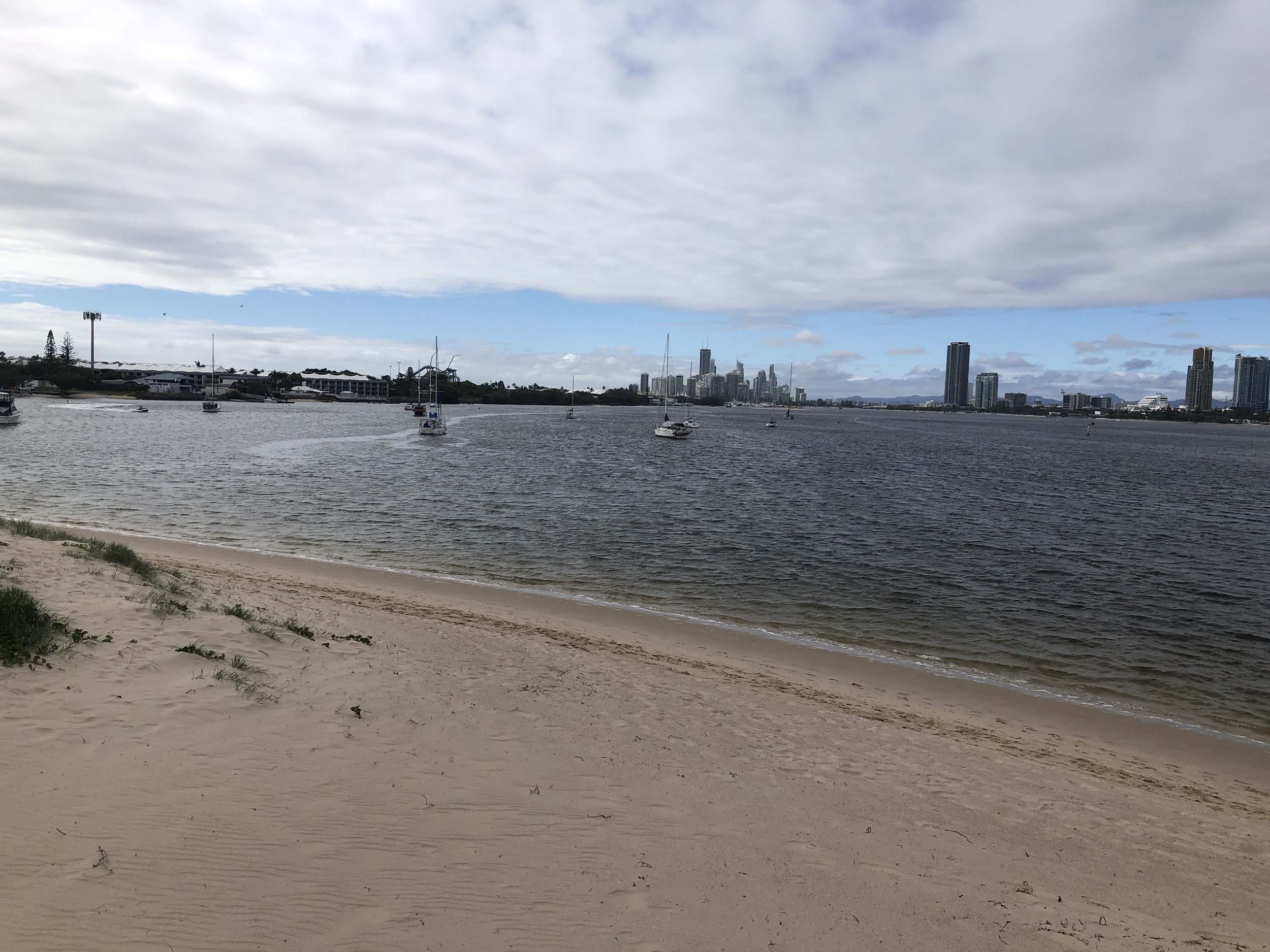 I left home at 7:18am, the breeze was from the South East and building slightly, the Broadwater was slightly choppy.