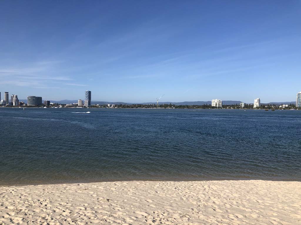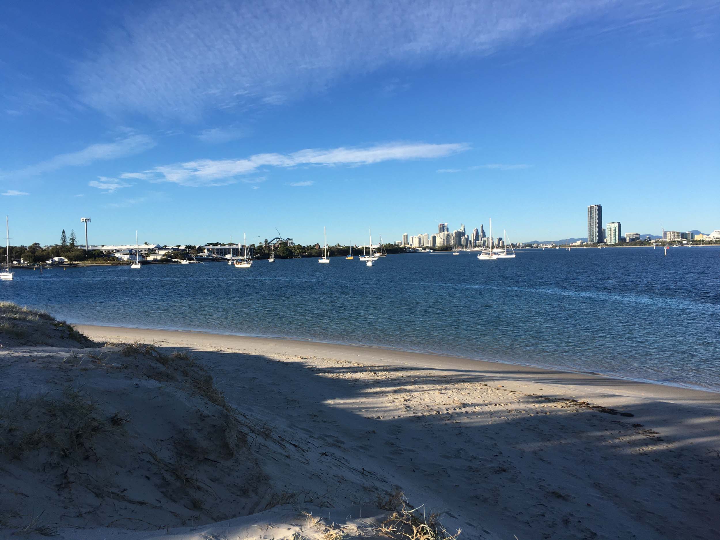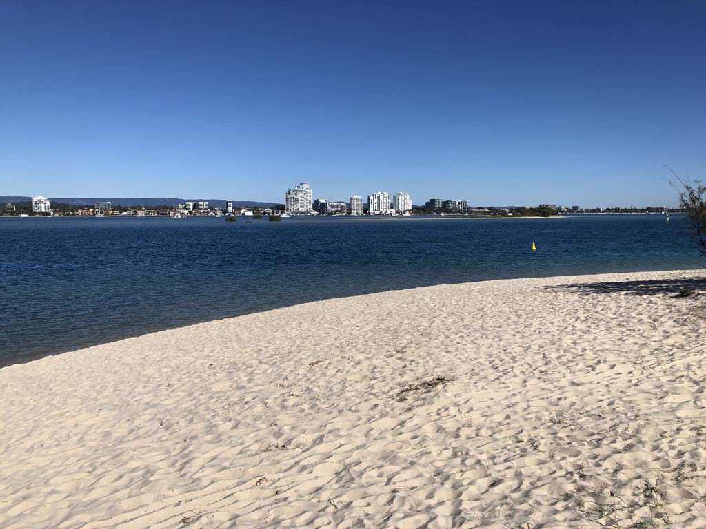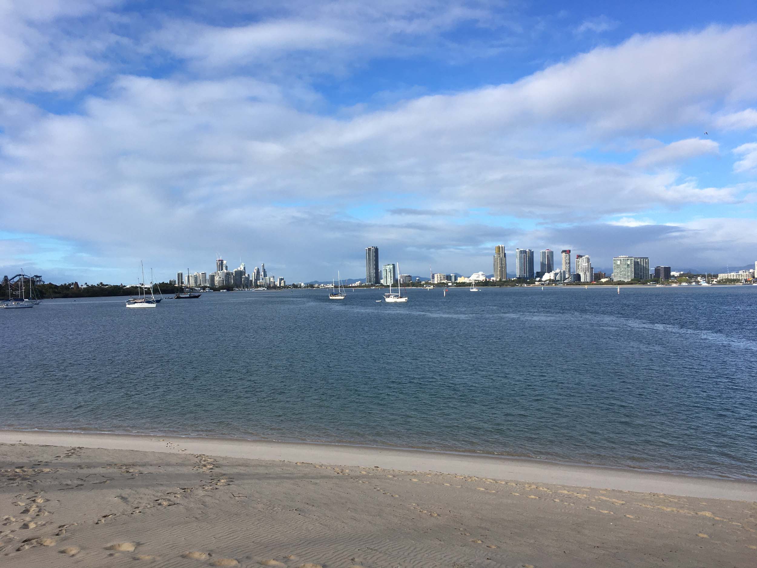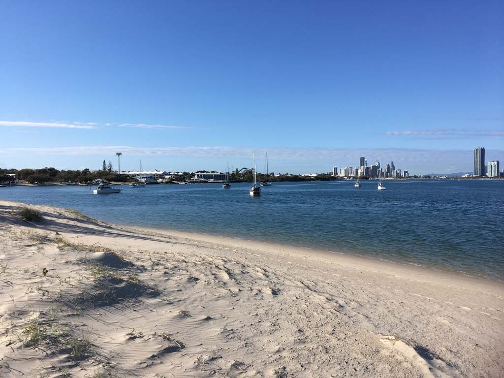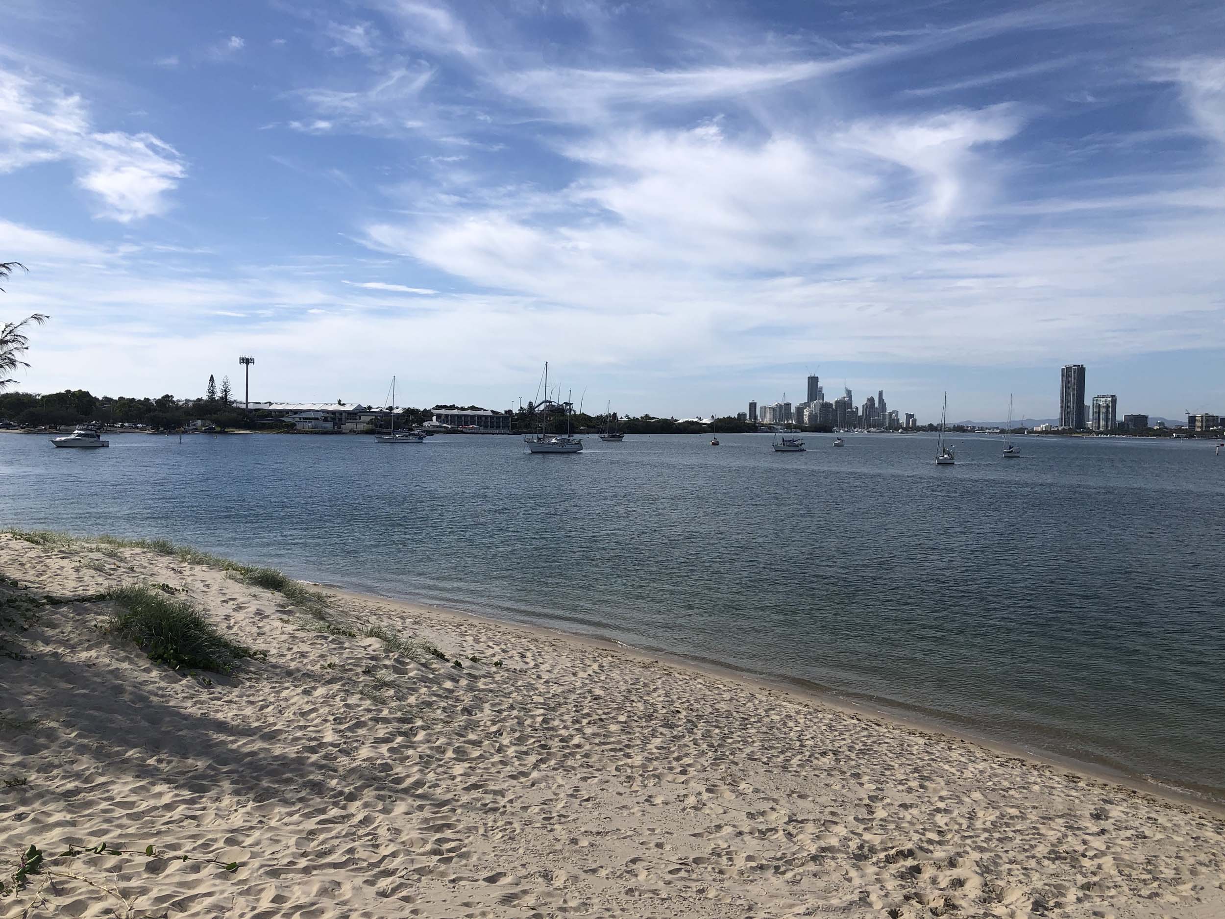 I left home at 7:18am, the breeze was from the South East and building slightly, the Broadwater was slightly choppy.