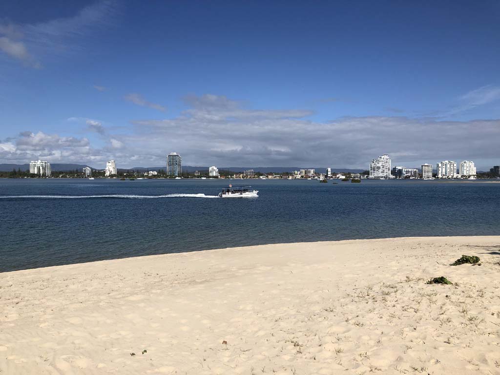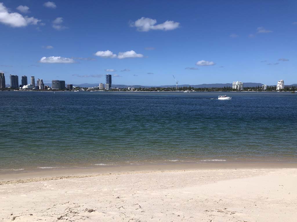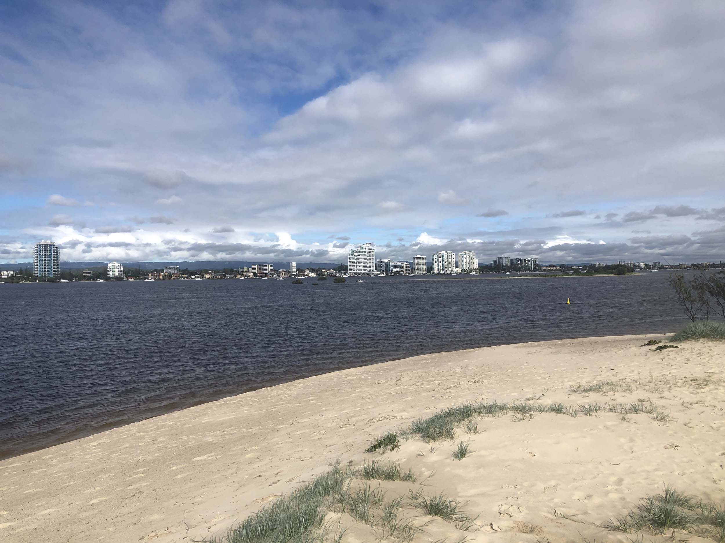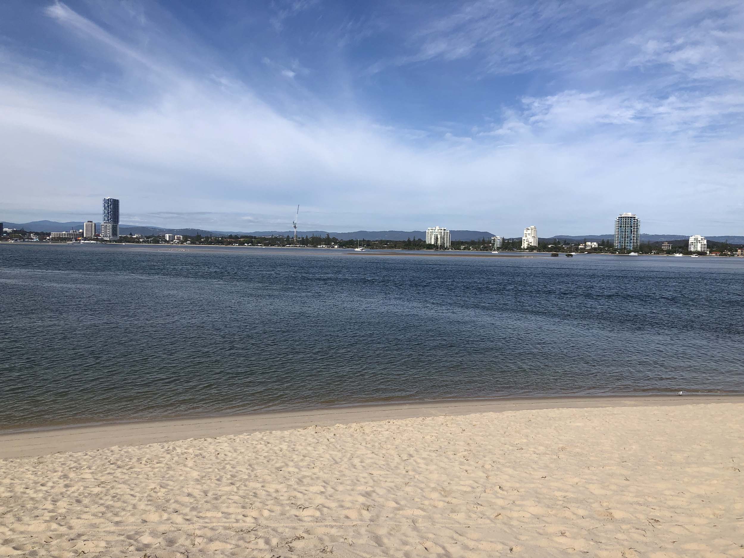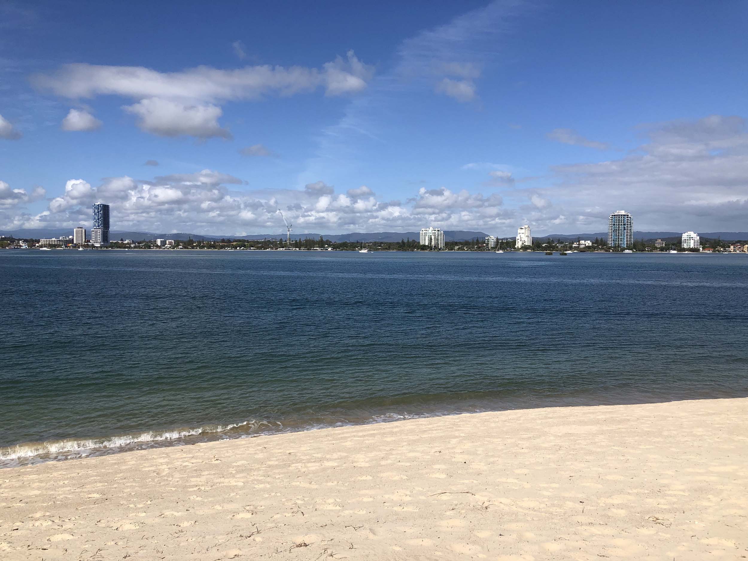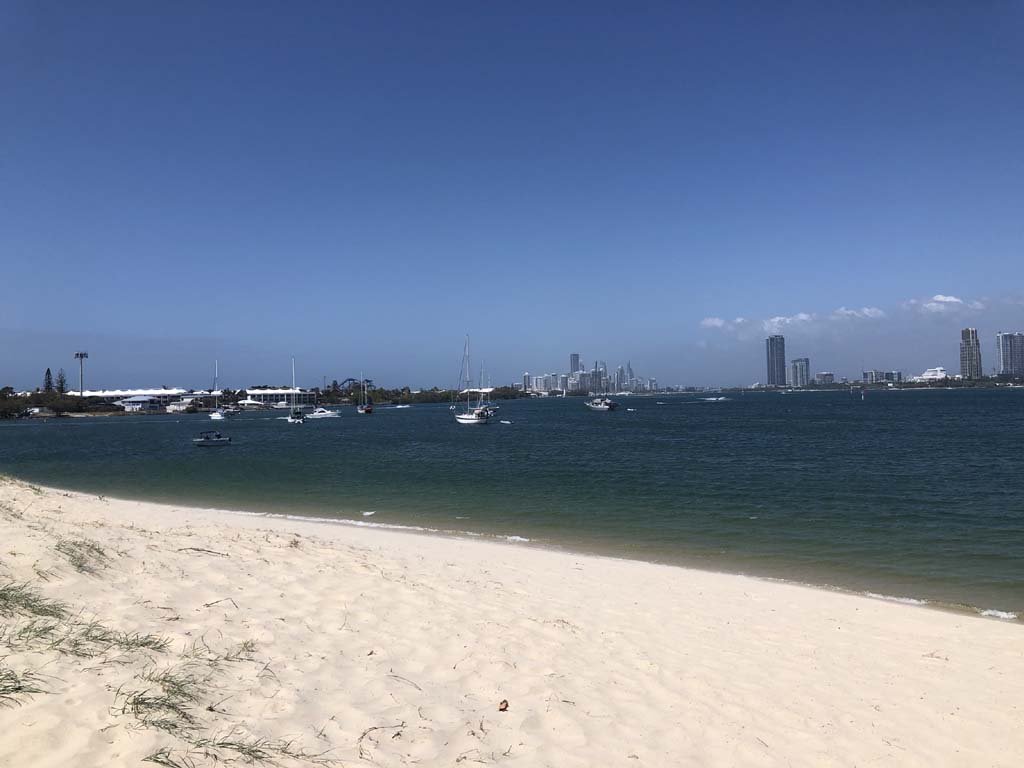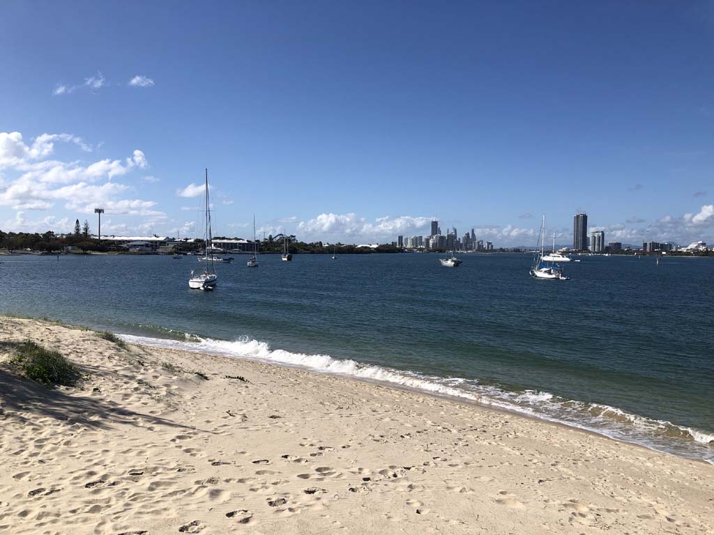I left home at 7:18am, the breeze was from the South East and building slightly, the Broadwater was slightly choppy.