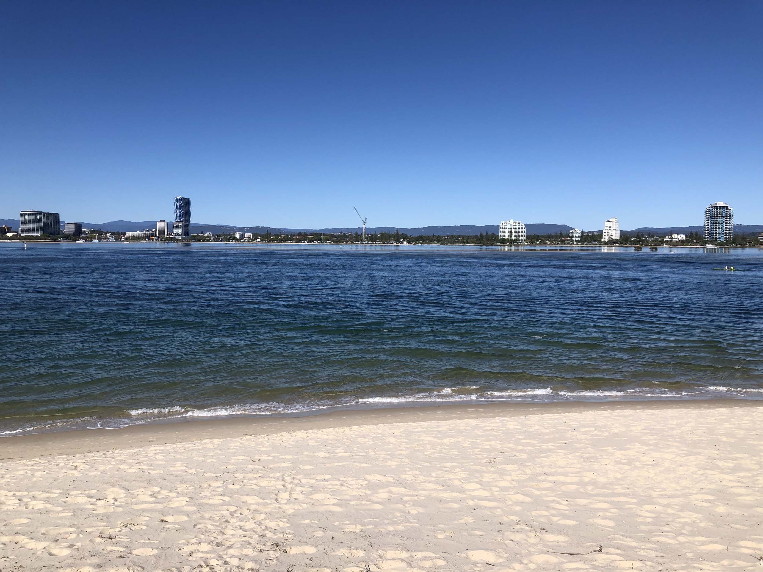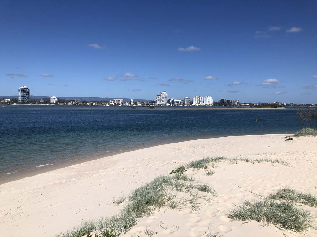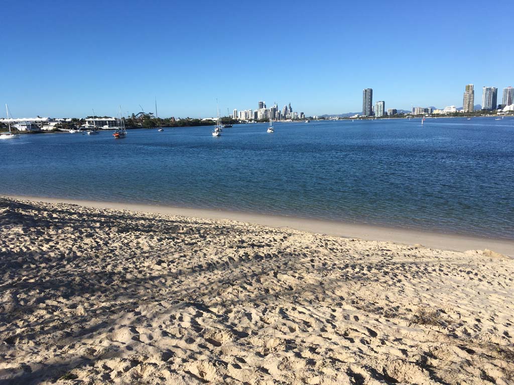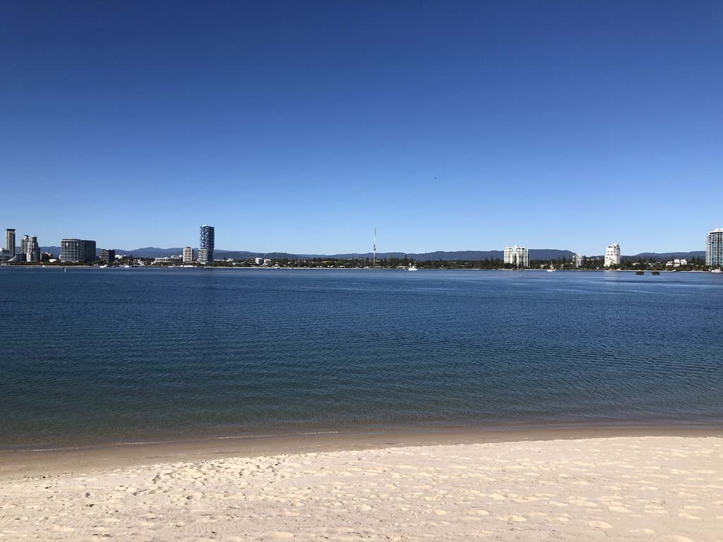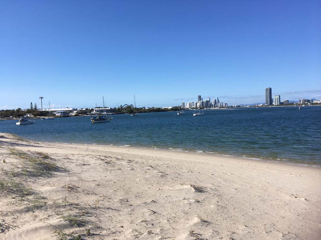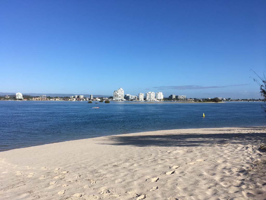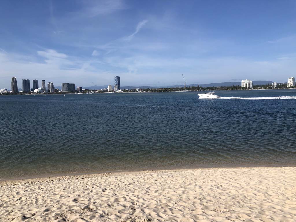 I left home at 7:18am, the breeze was from the South East and building slightly, the Broadwater was slightly choppy.