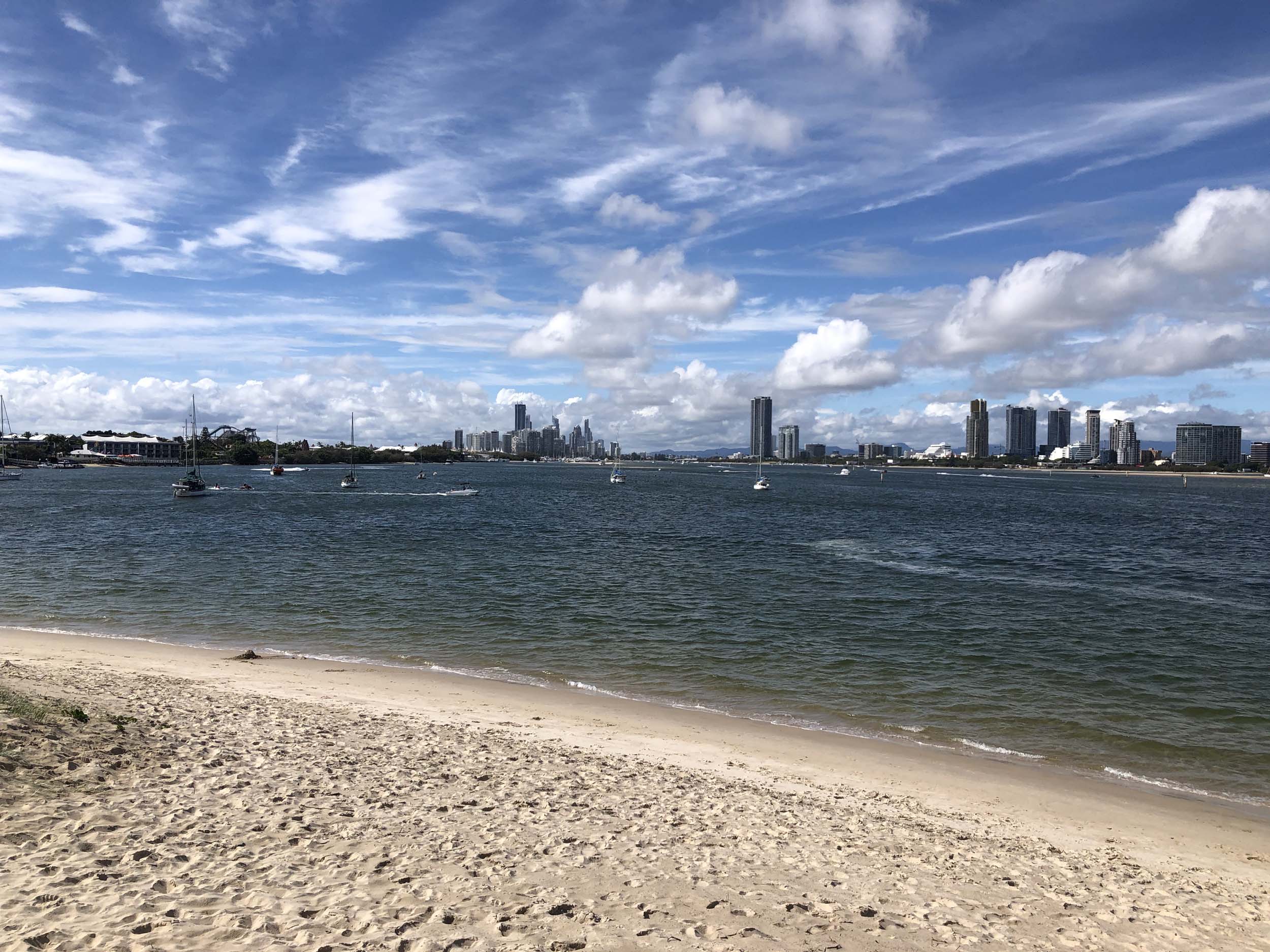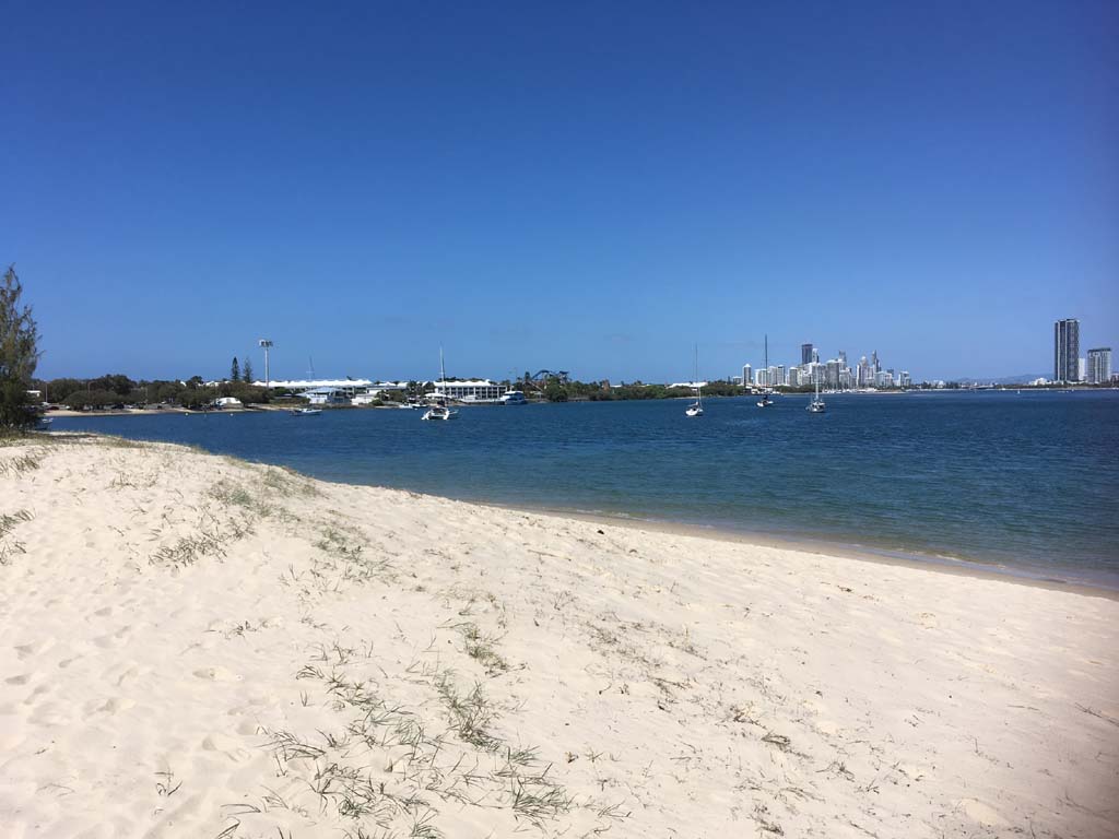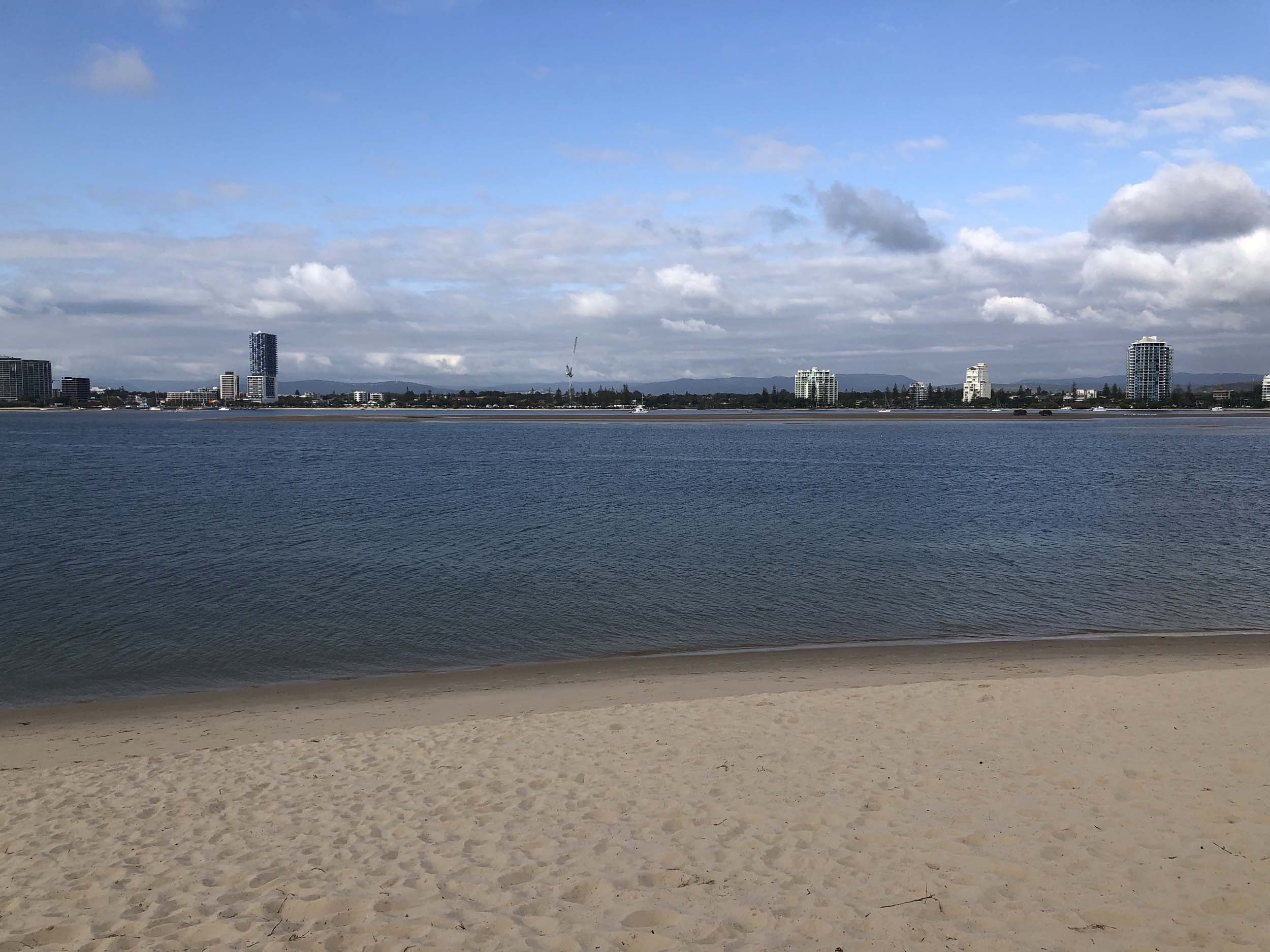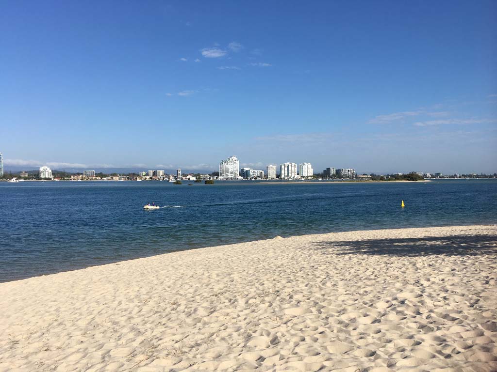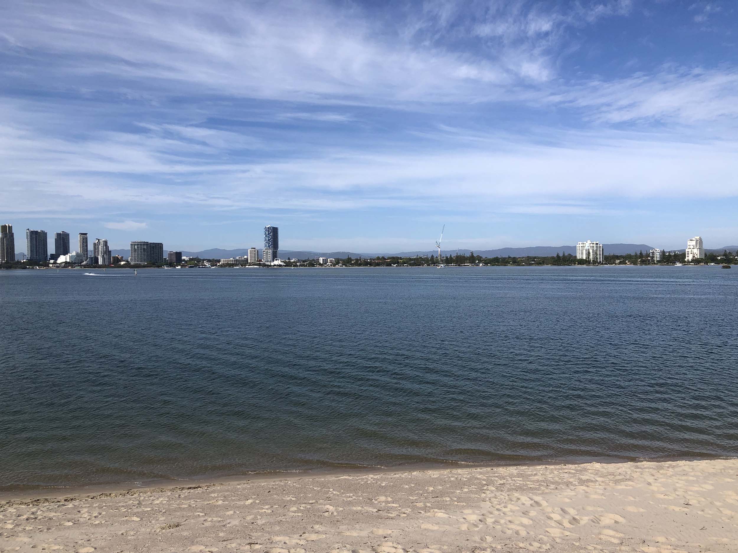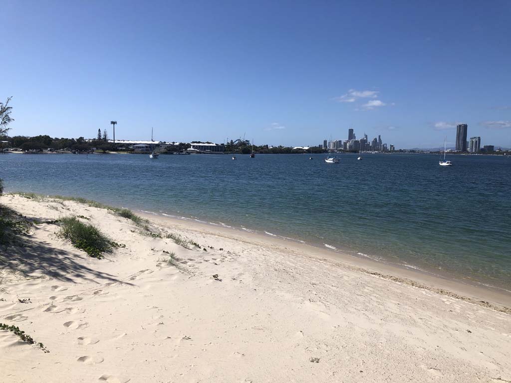 I left home at 7:18am, the breeze was from the South East and building slightly, the Broadwater was slightly choppy.