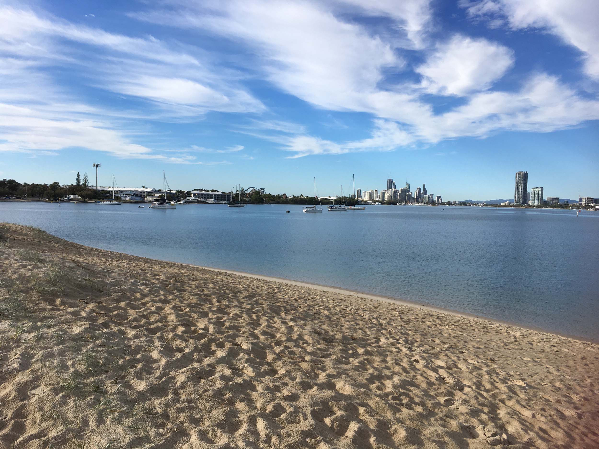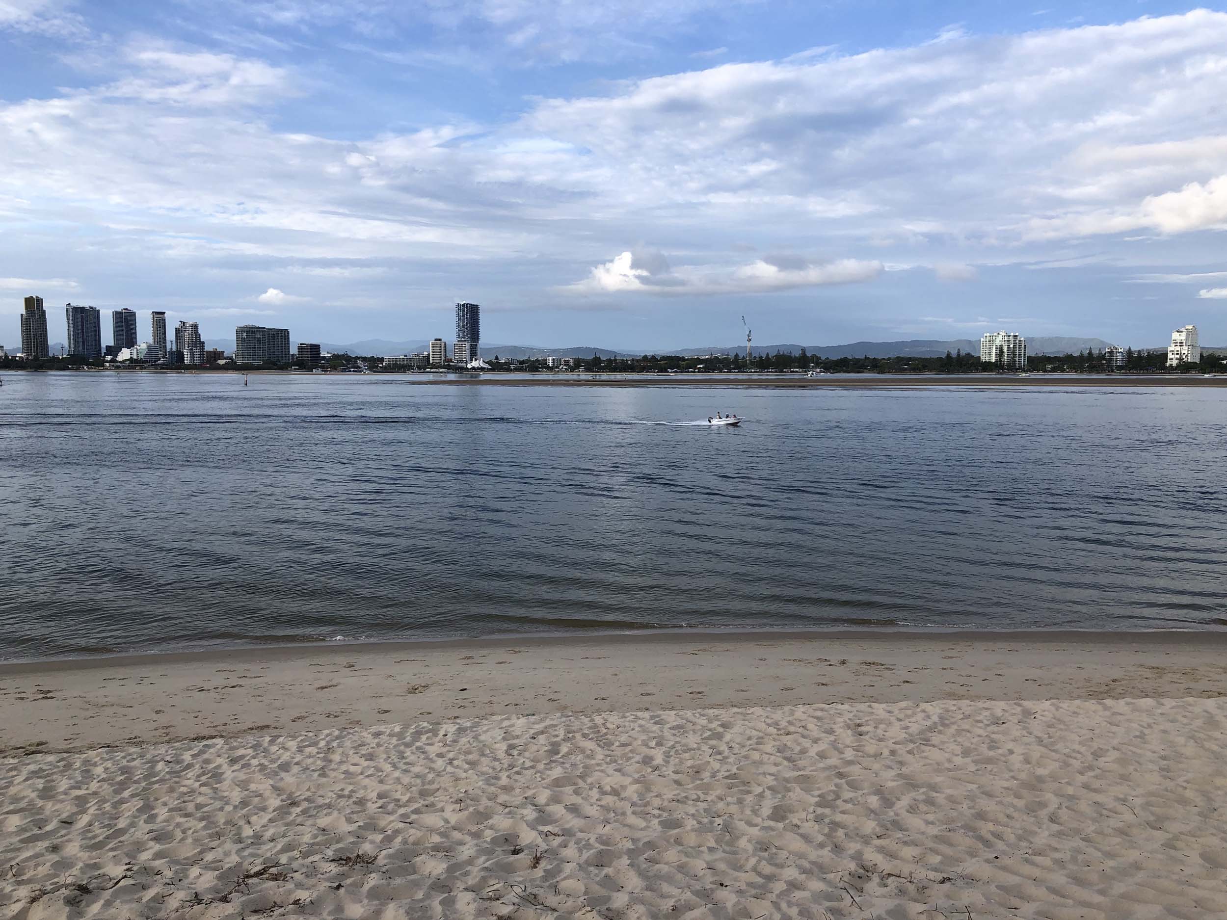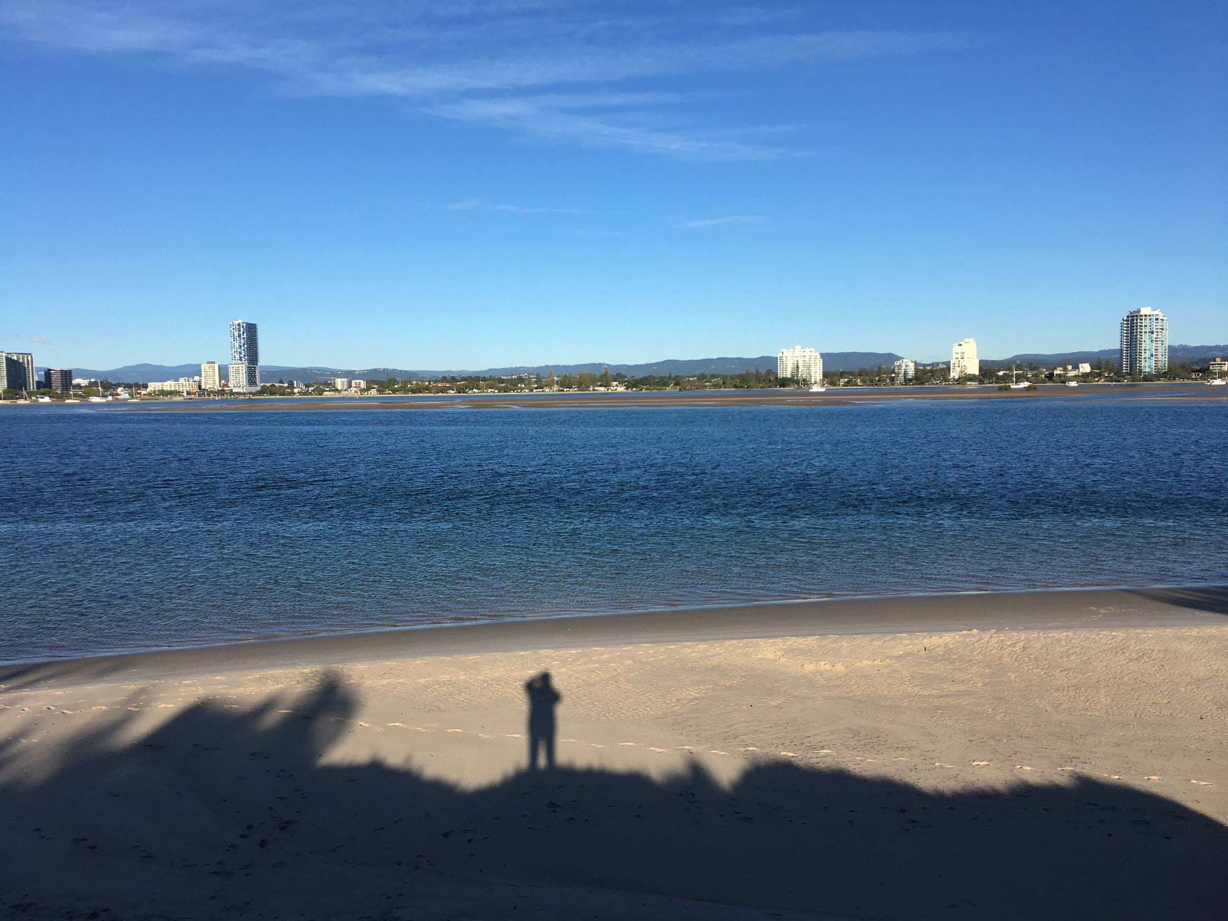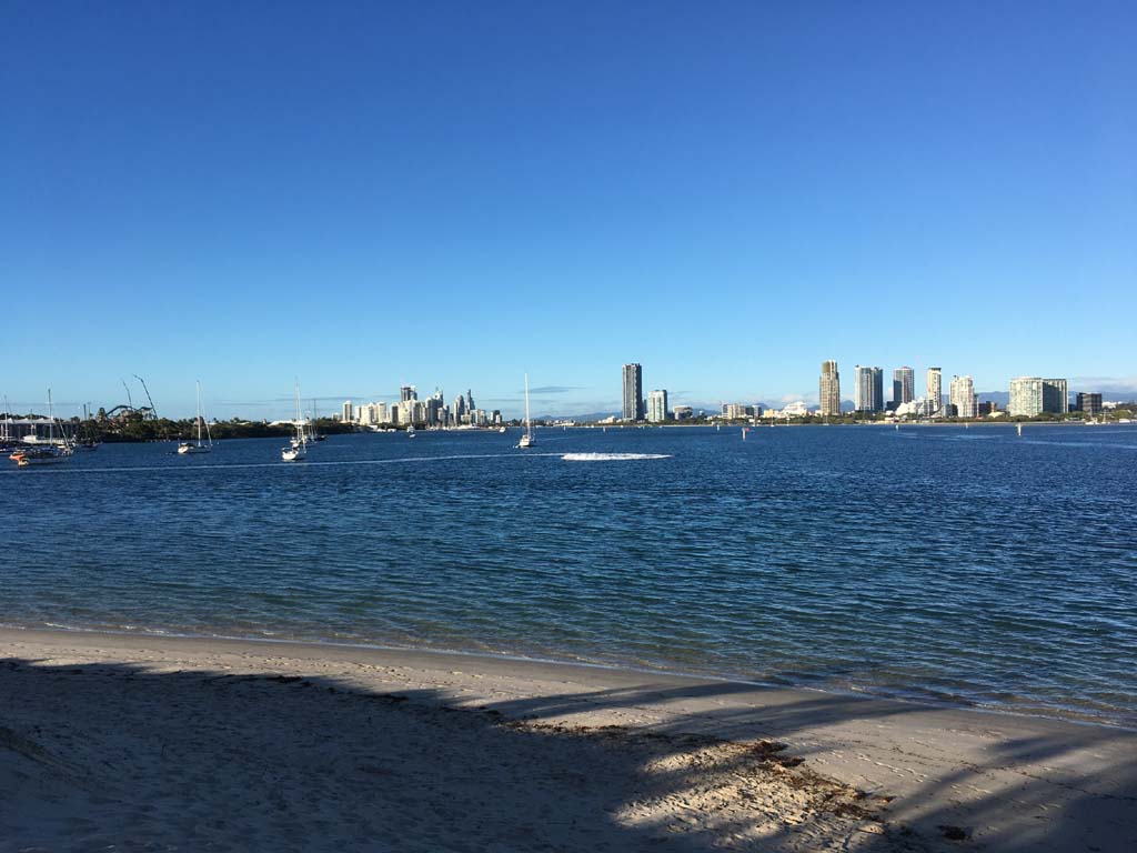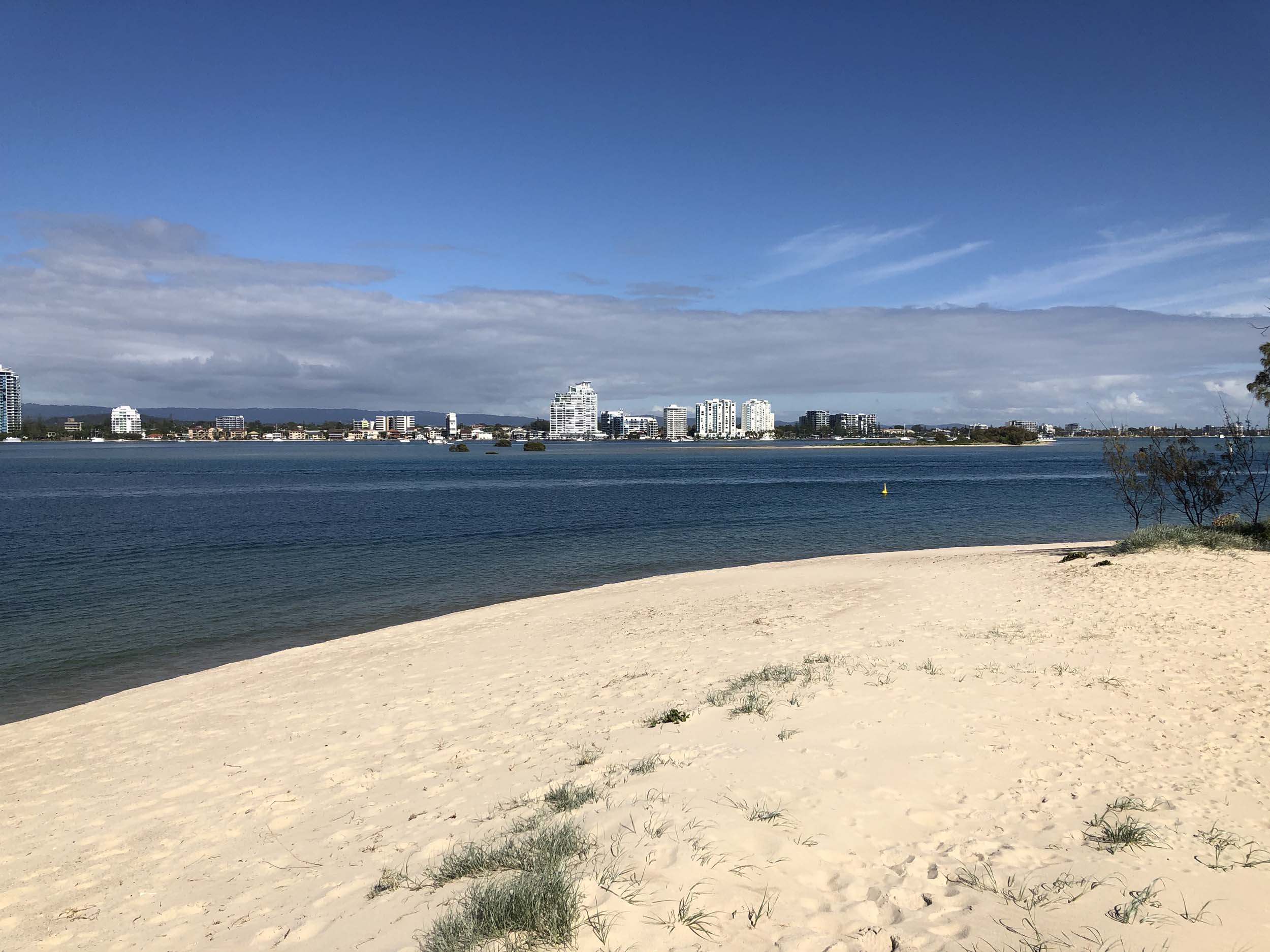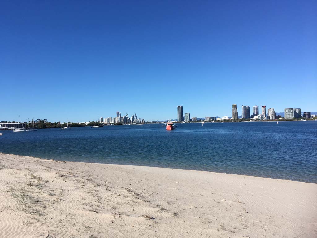 I left home at 7:18am, the breeze was from the South East and building slightly, the Broadwater was slightly choppy.