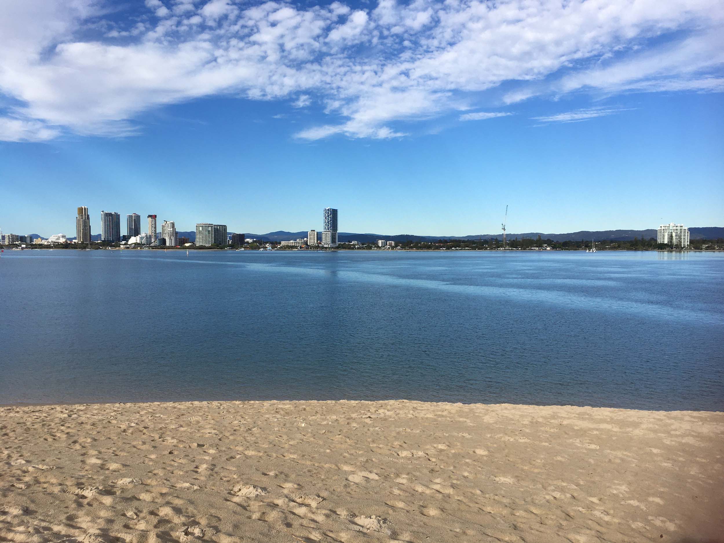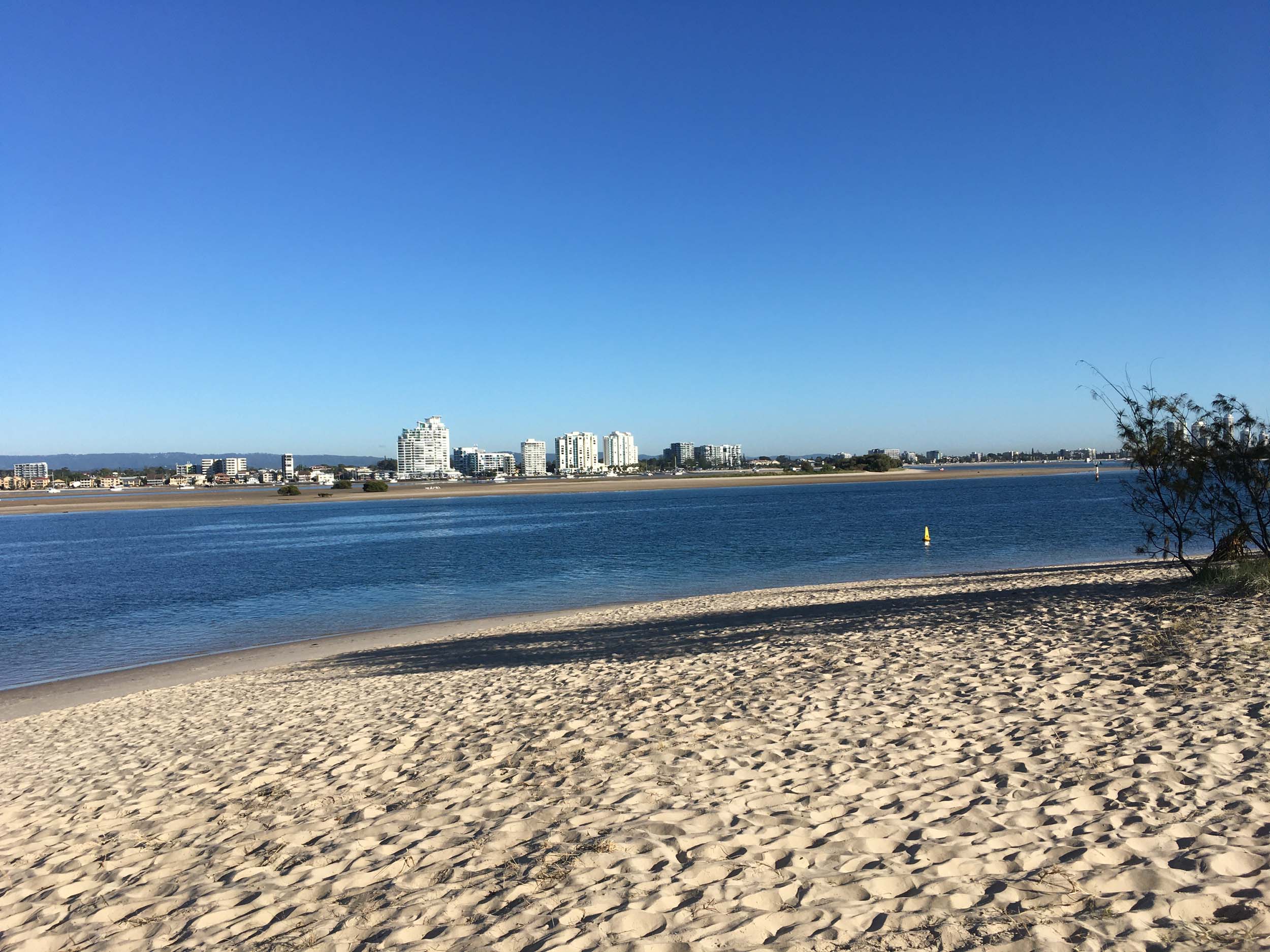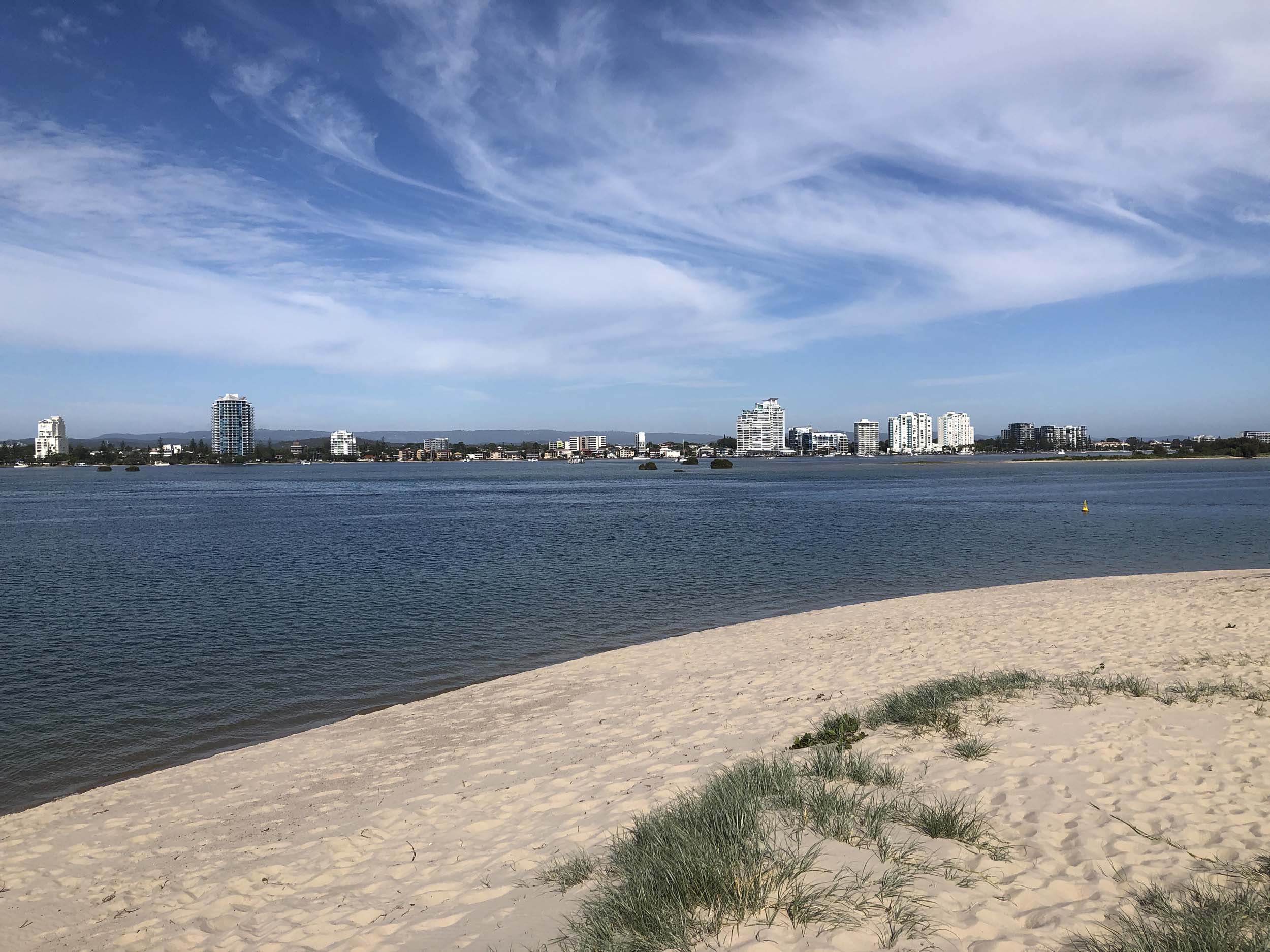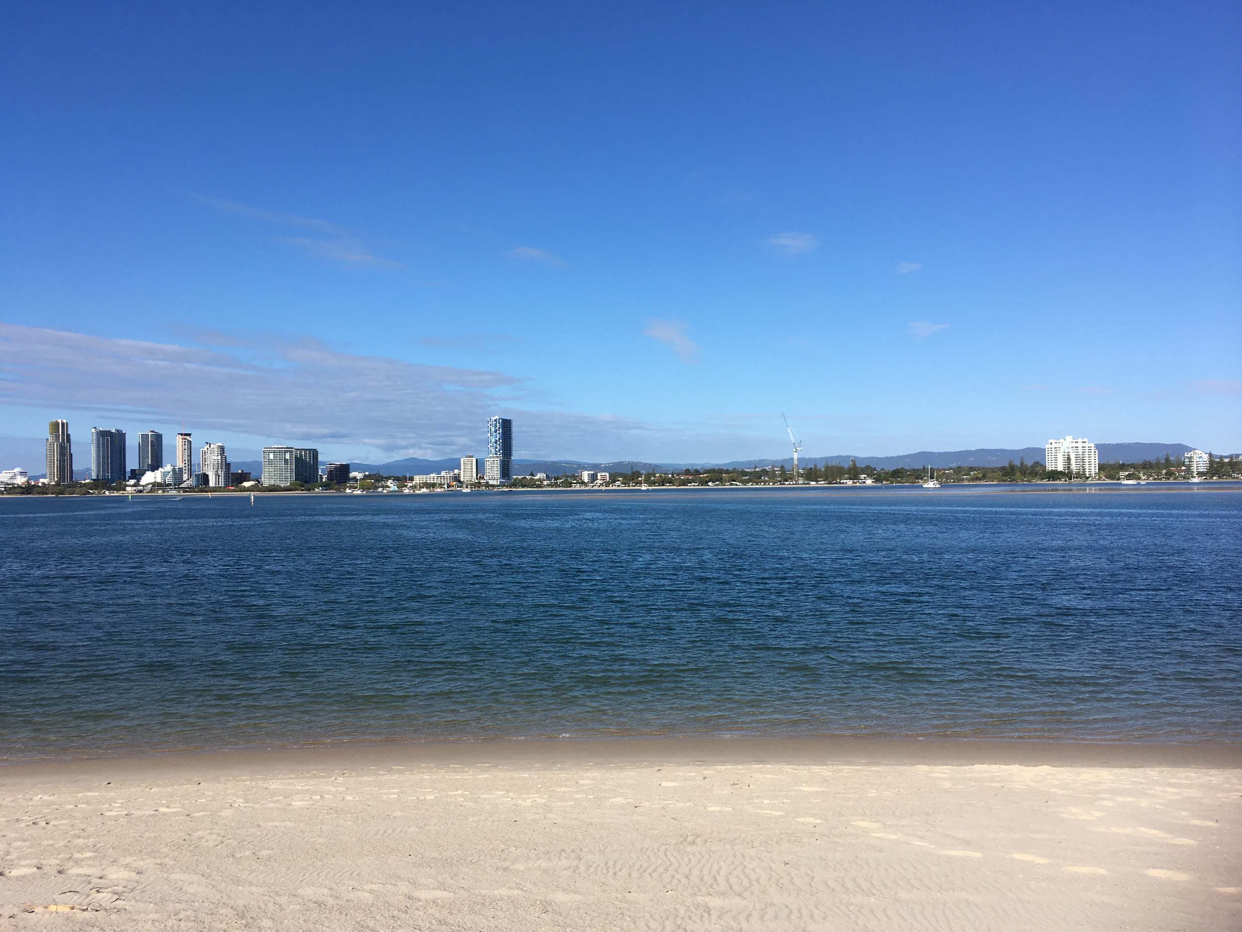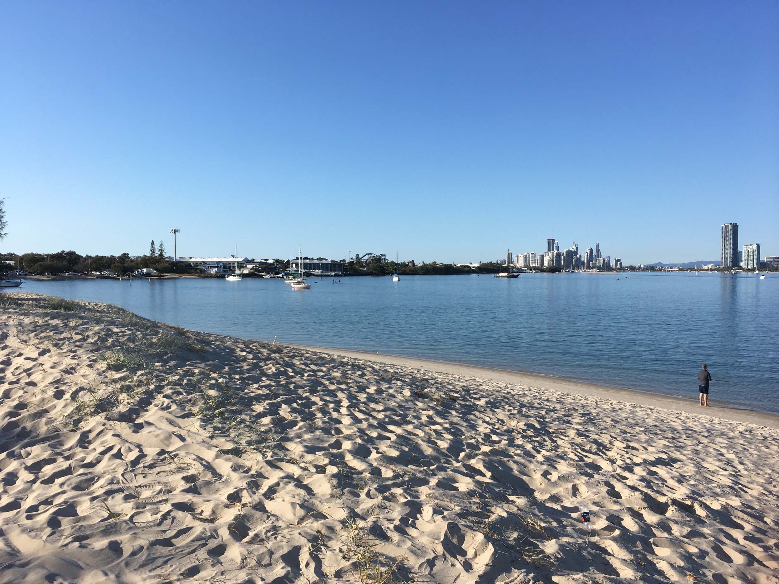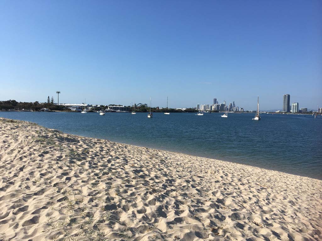 I left home at 7:18am, the breeze was from the South East and building slightly, the Broadwater was slightly choppy.