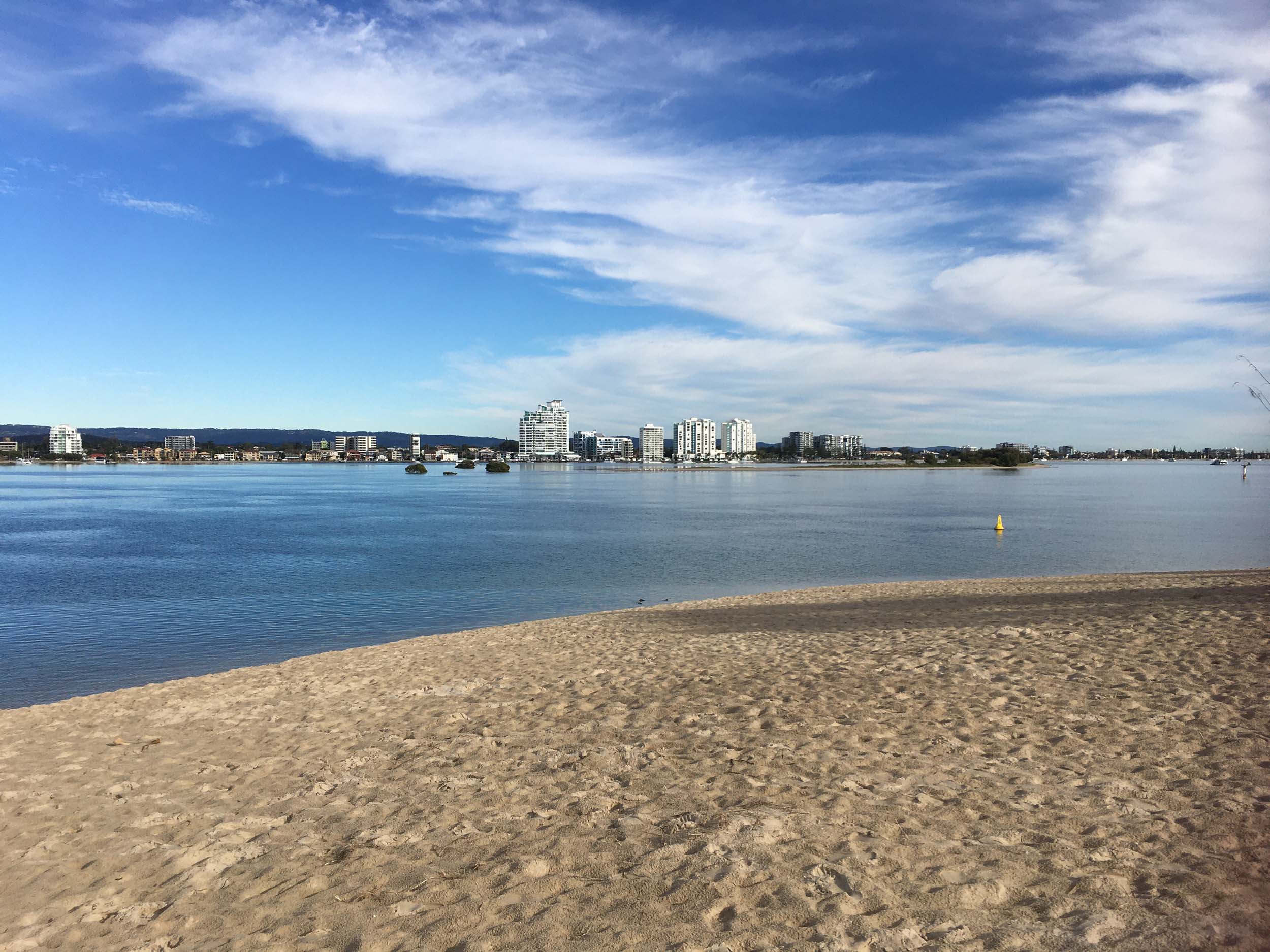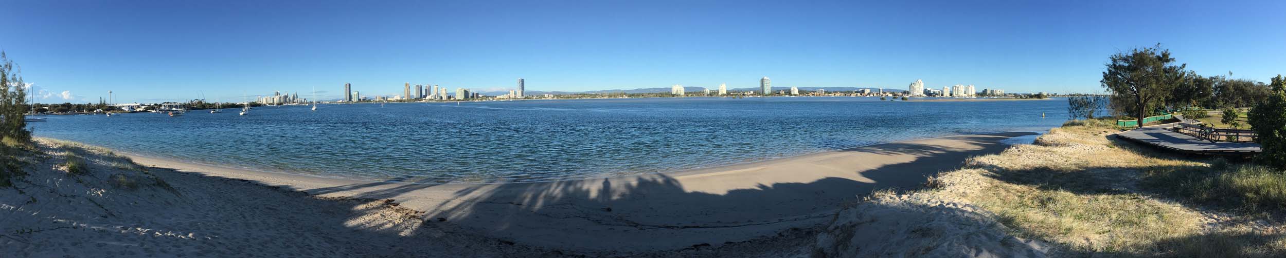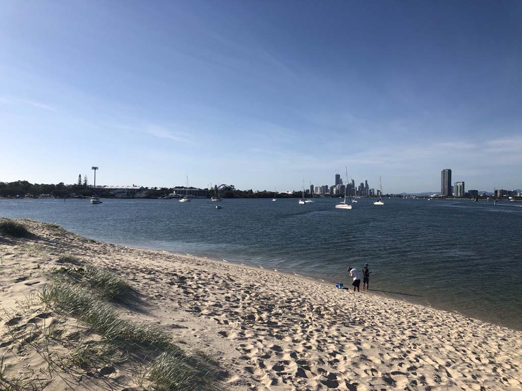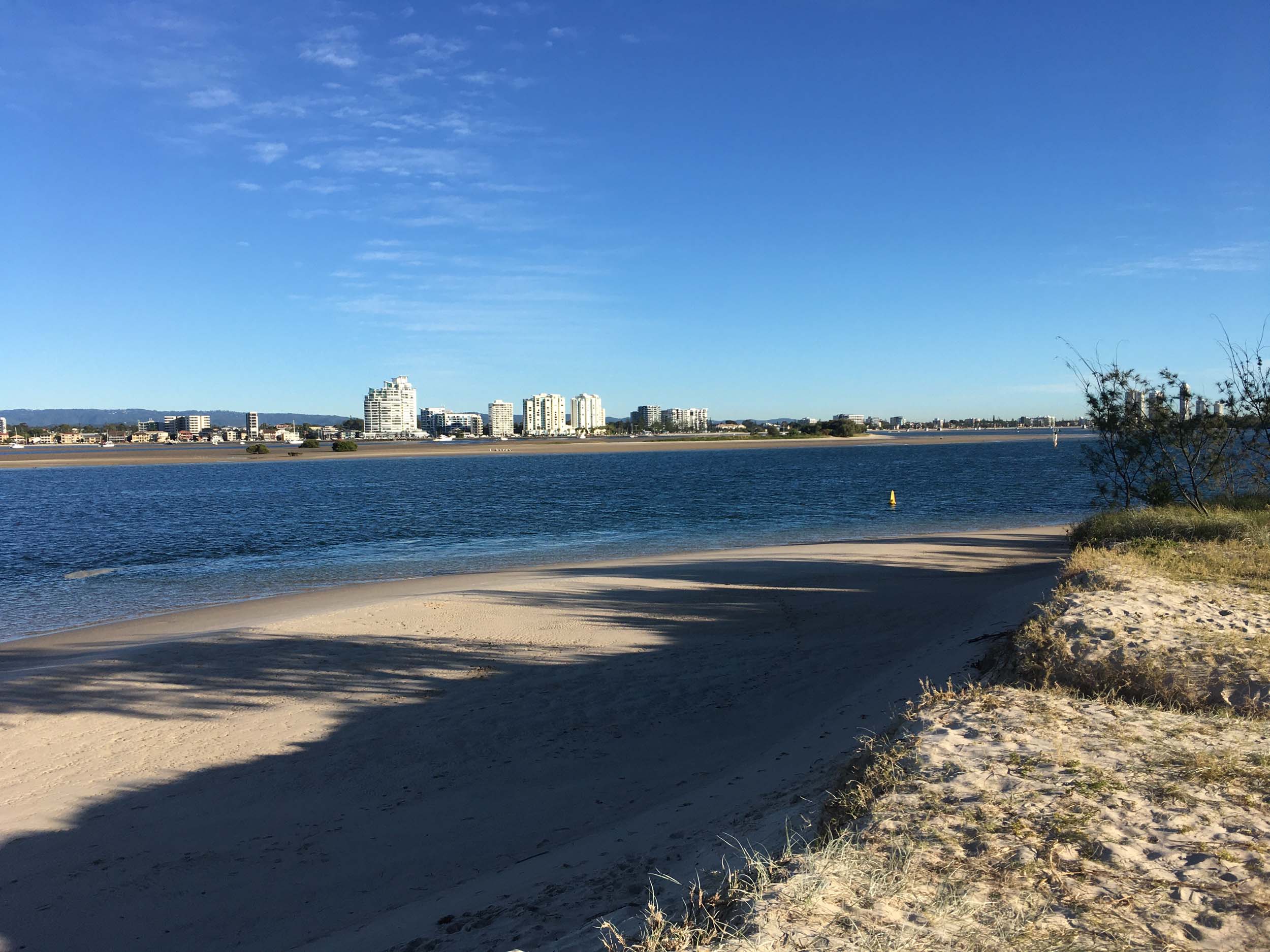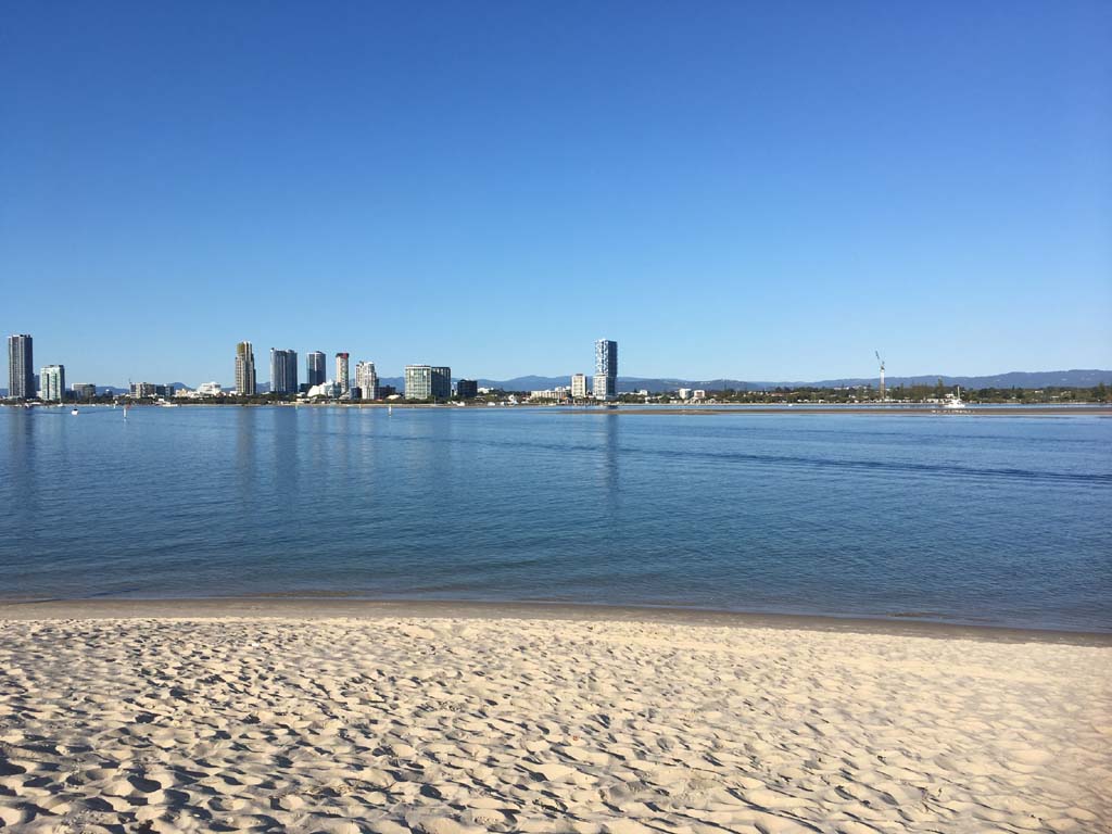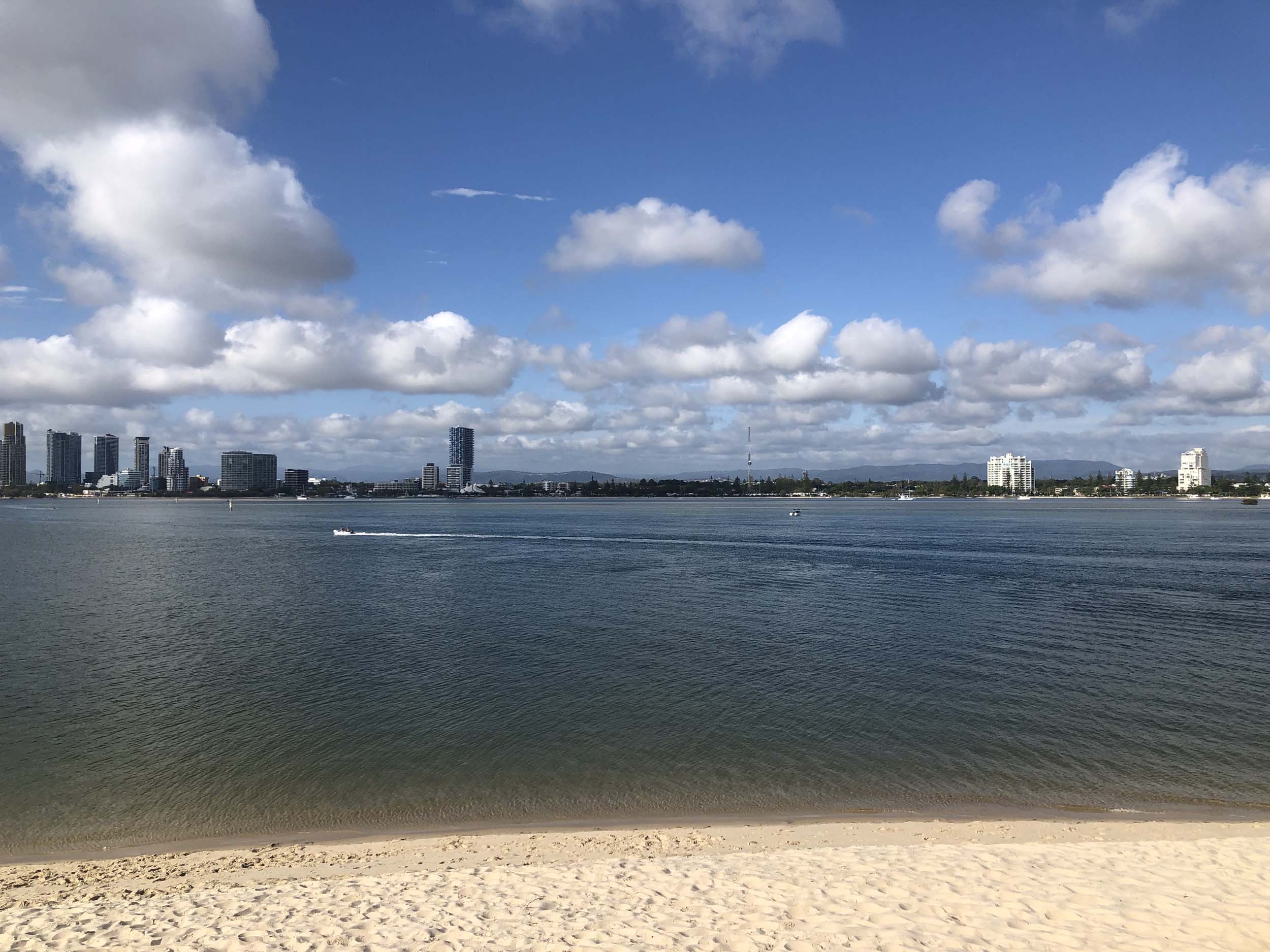 I left home at 7:18am, the breeze was from the South East and building slightly, the Broadwater was slightly choppy.