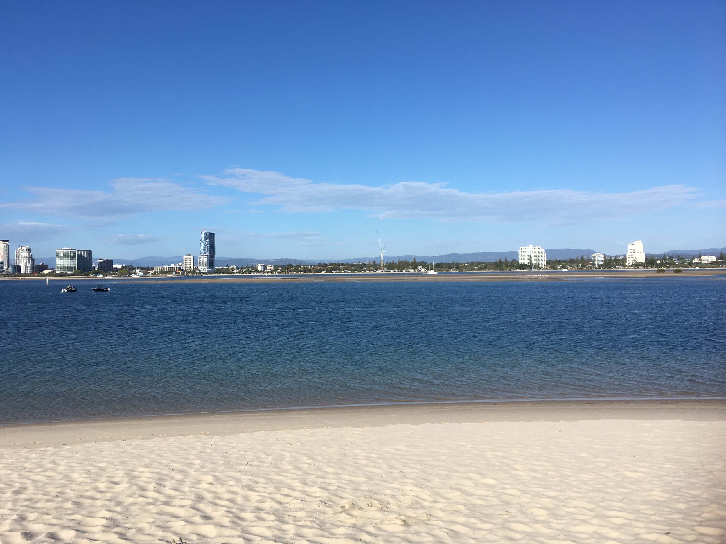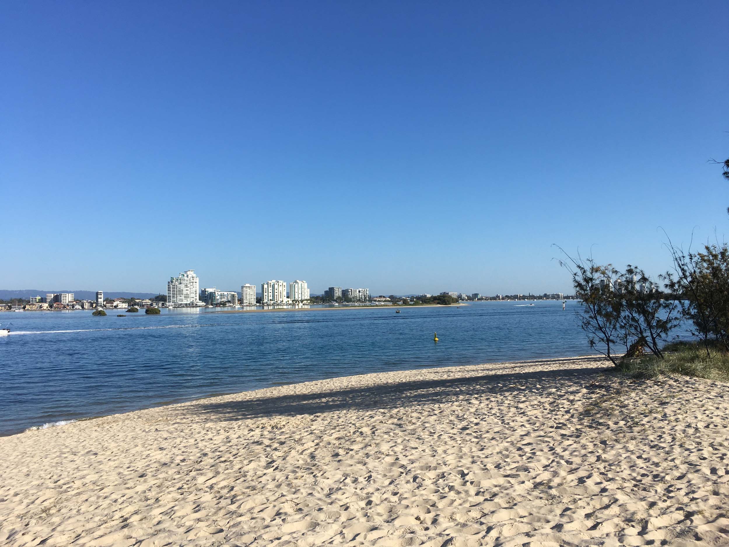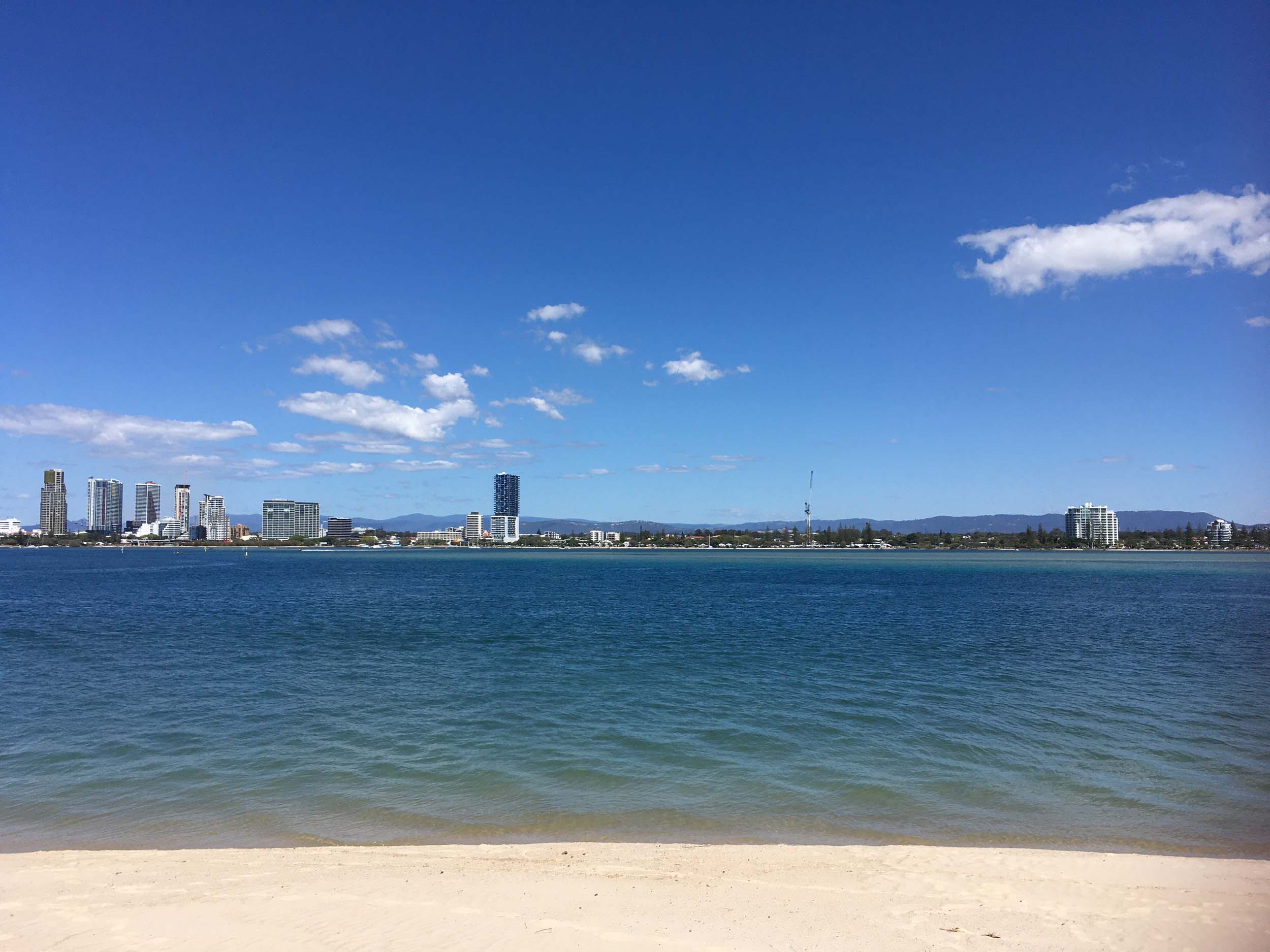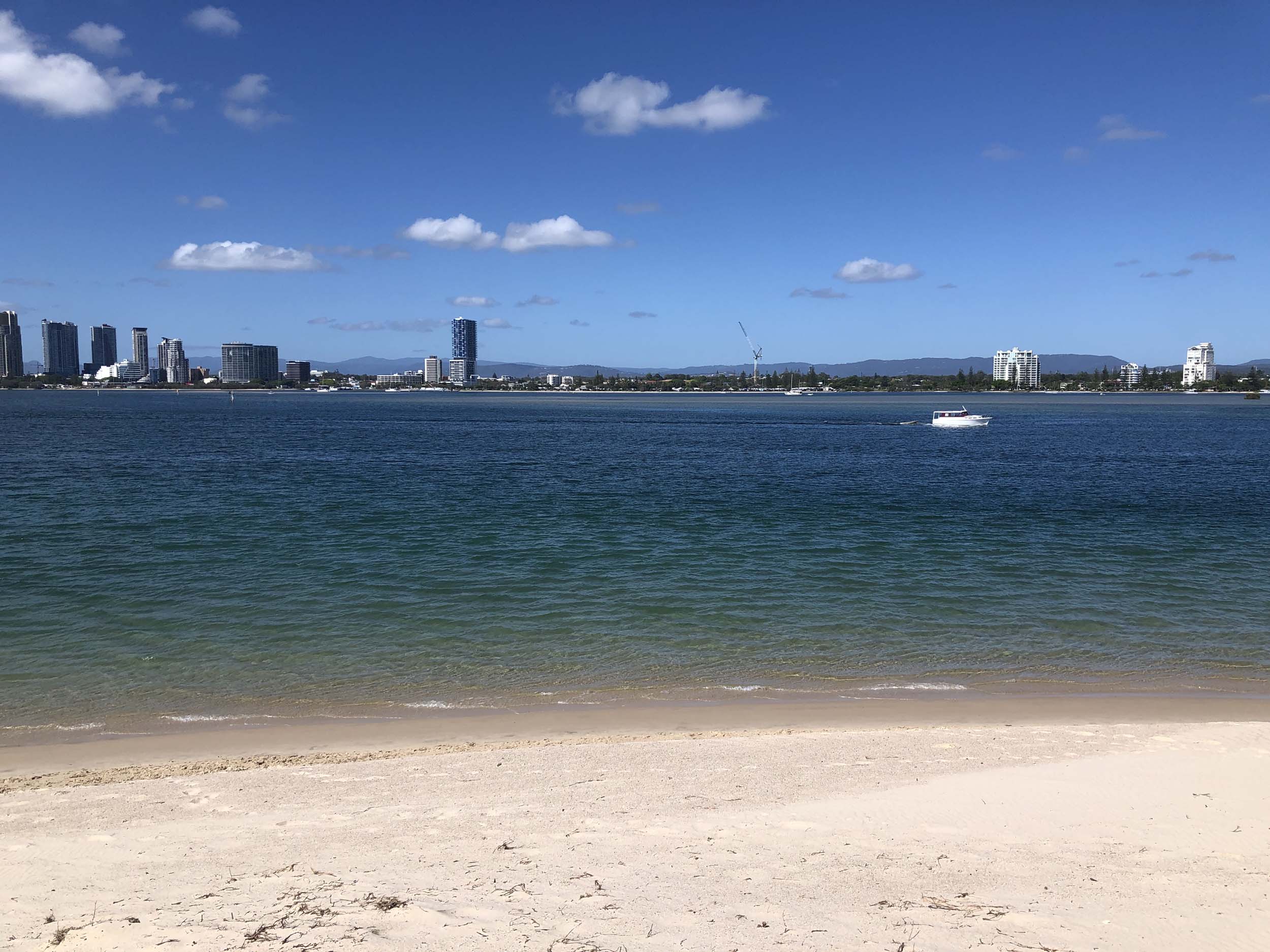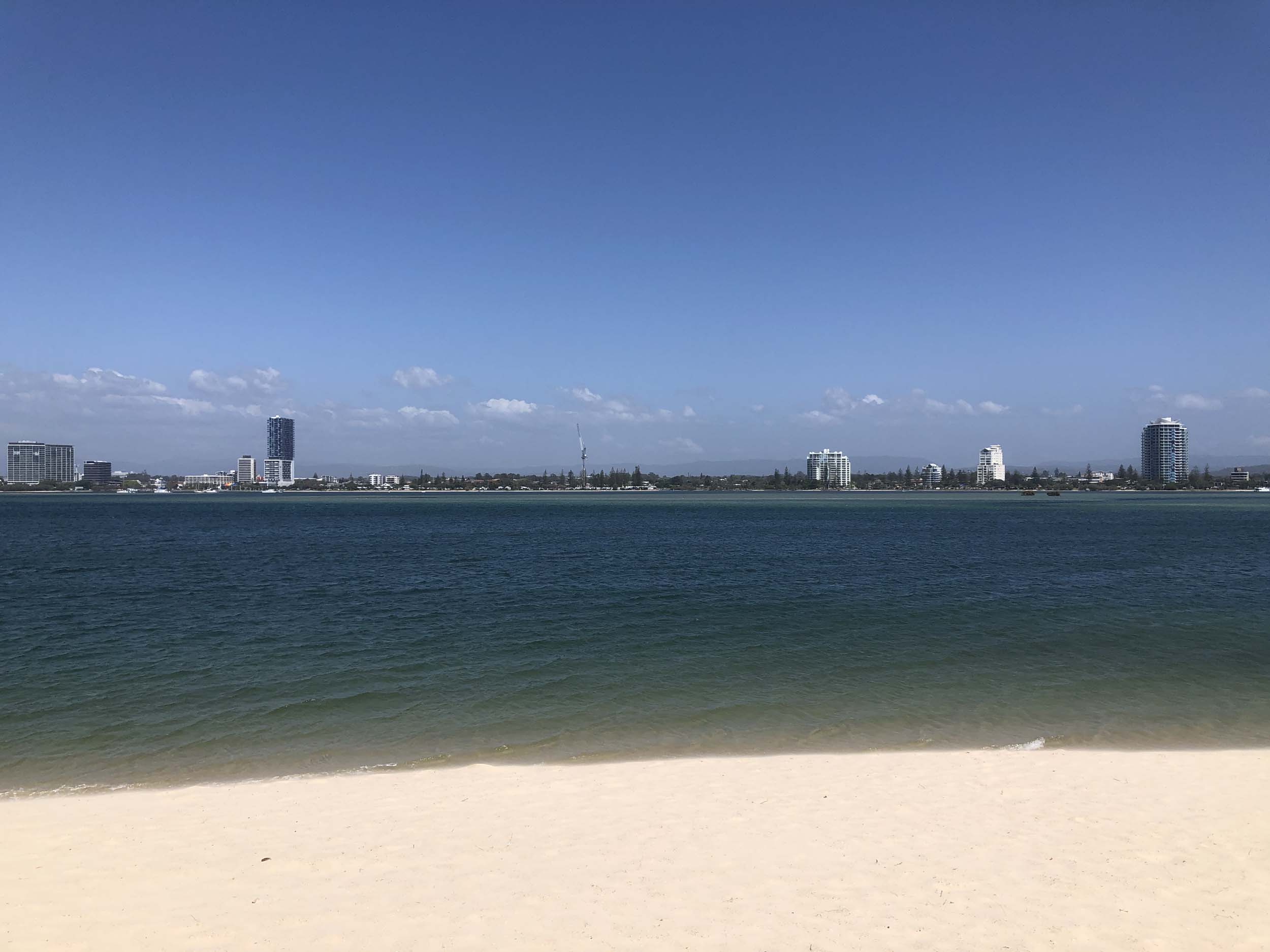 I left home at 7:18am, the breeze was from the South East and building slightly, the Broadwater was slightly choppy.