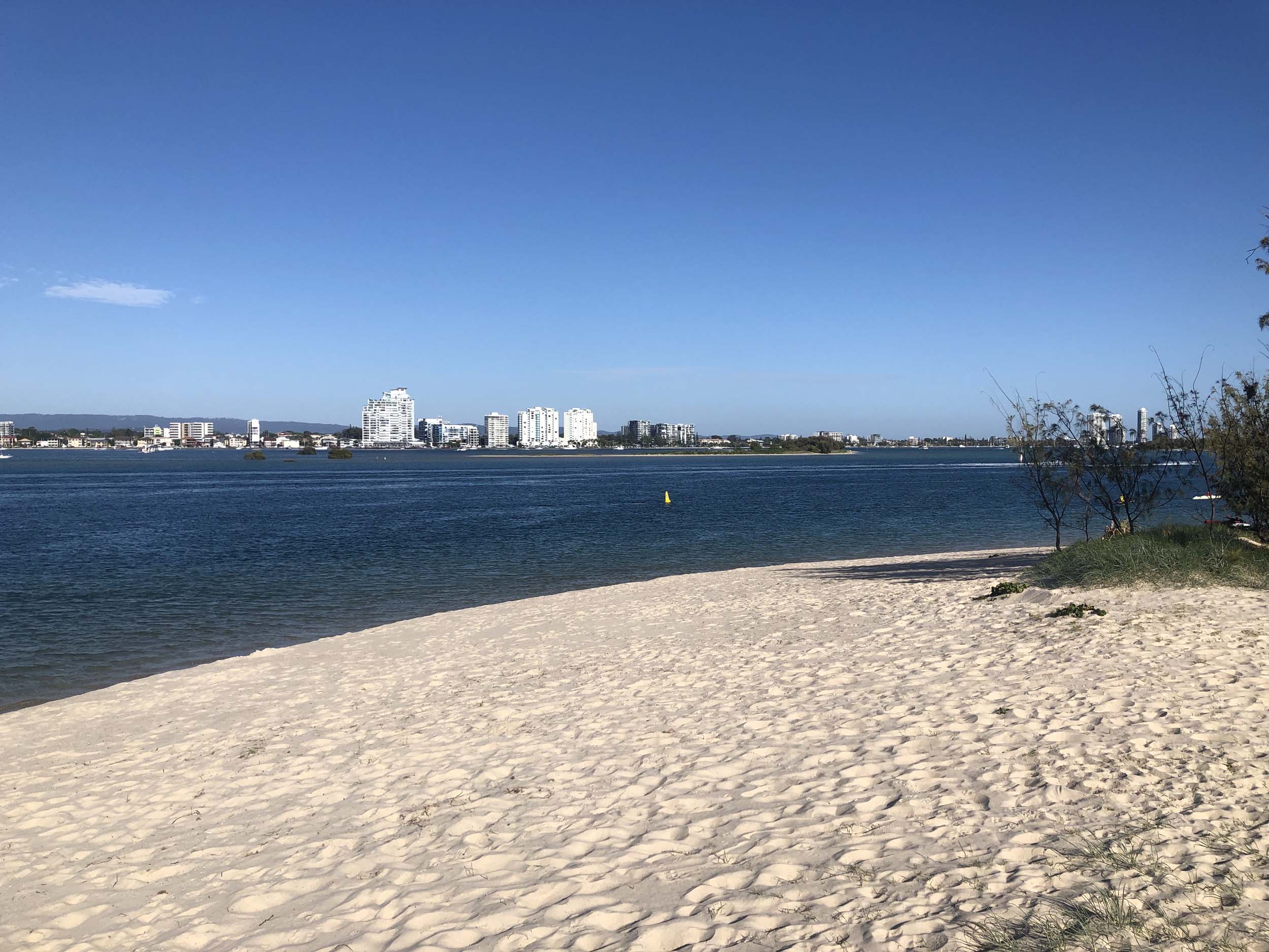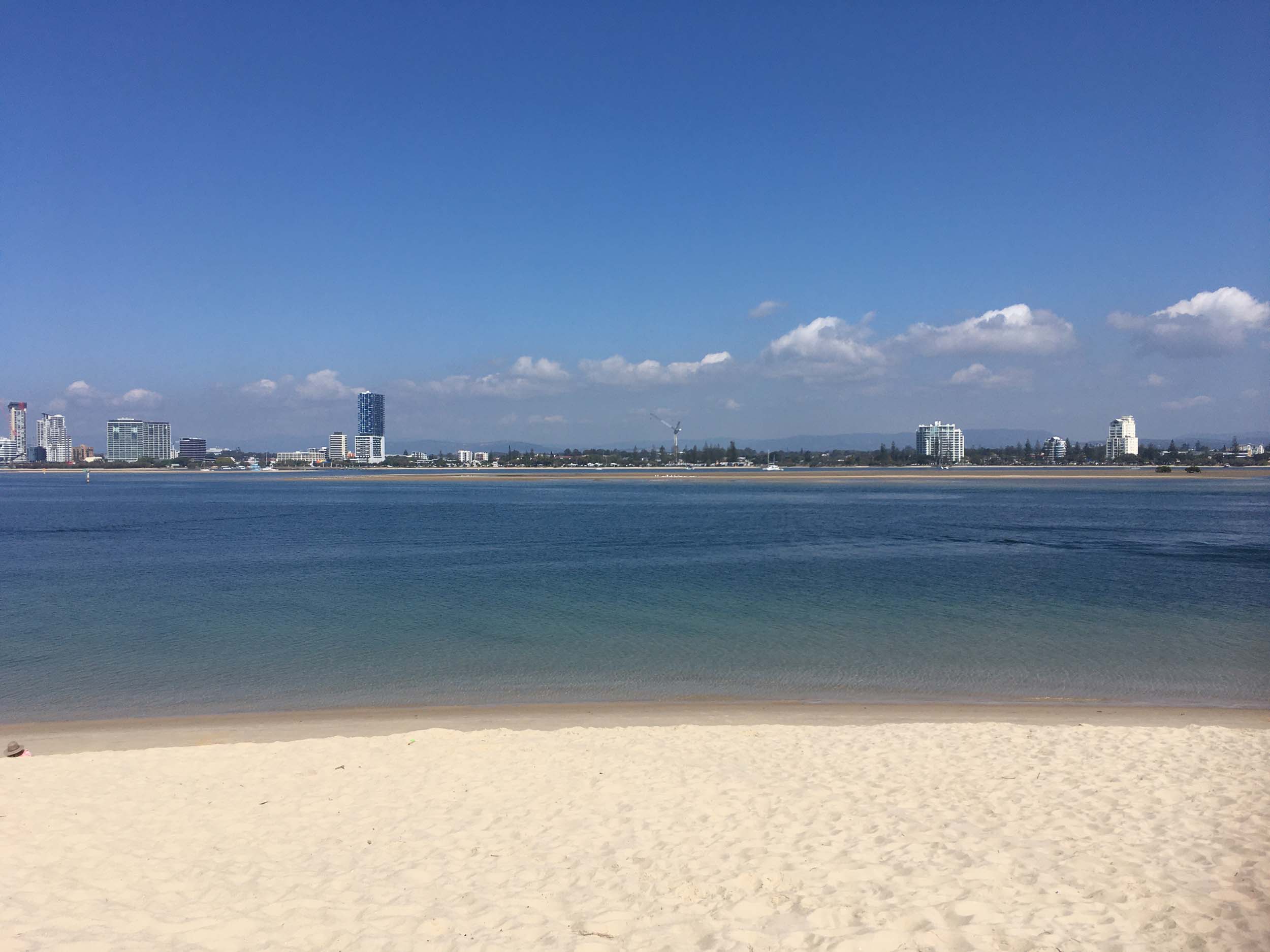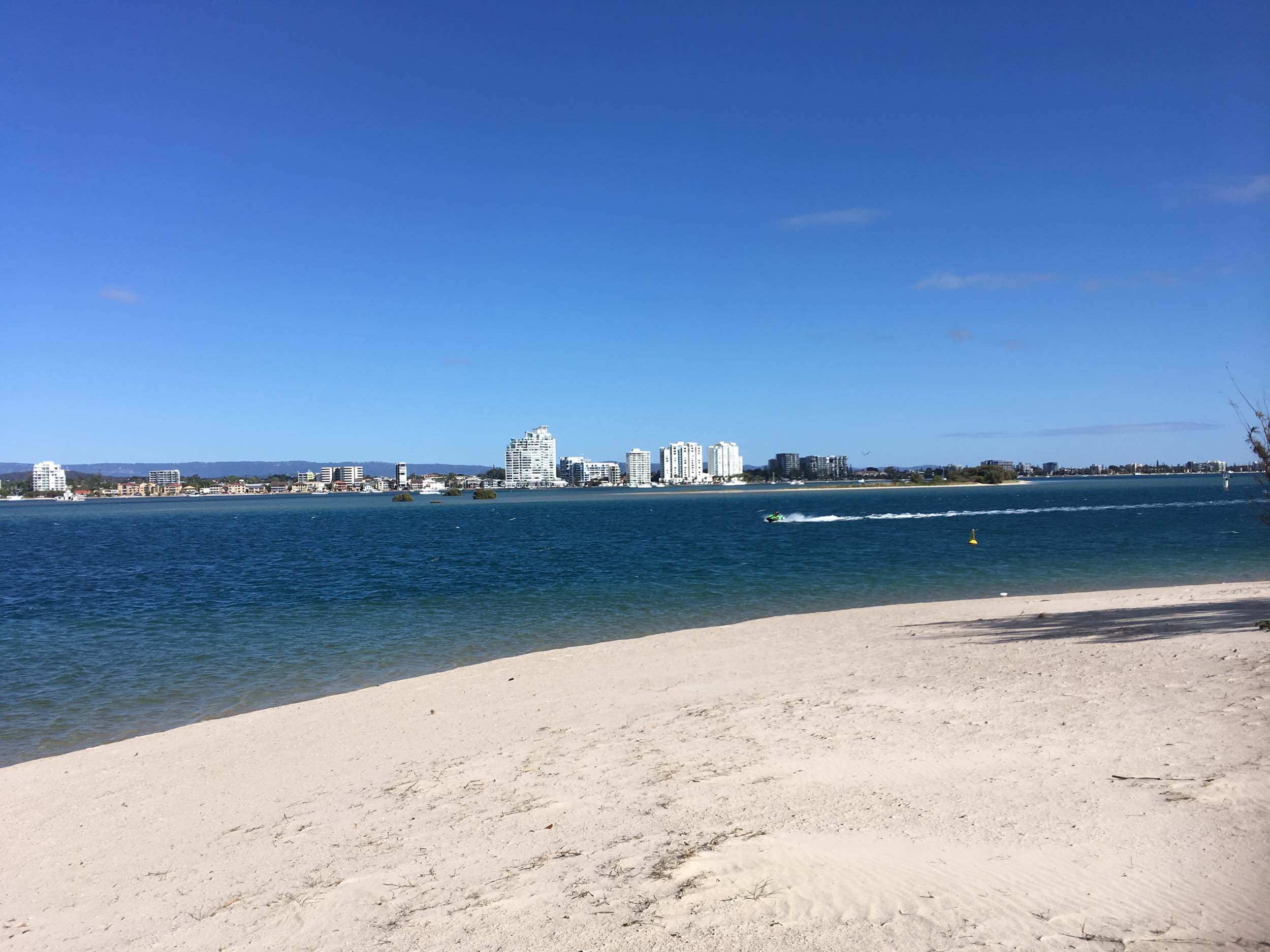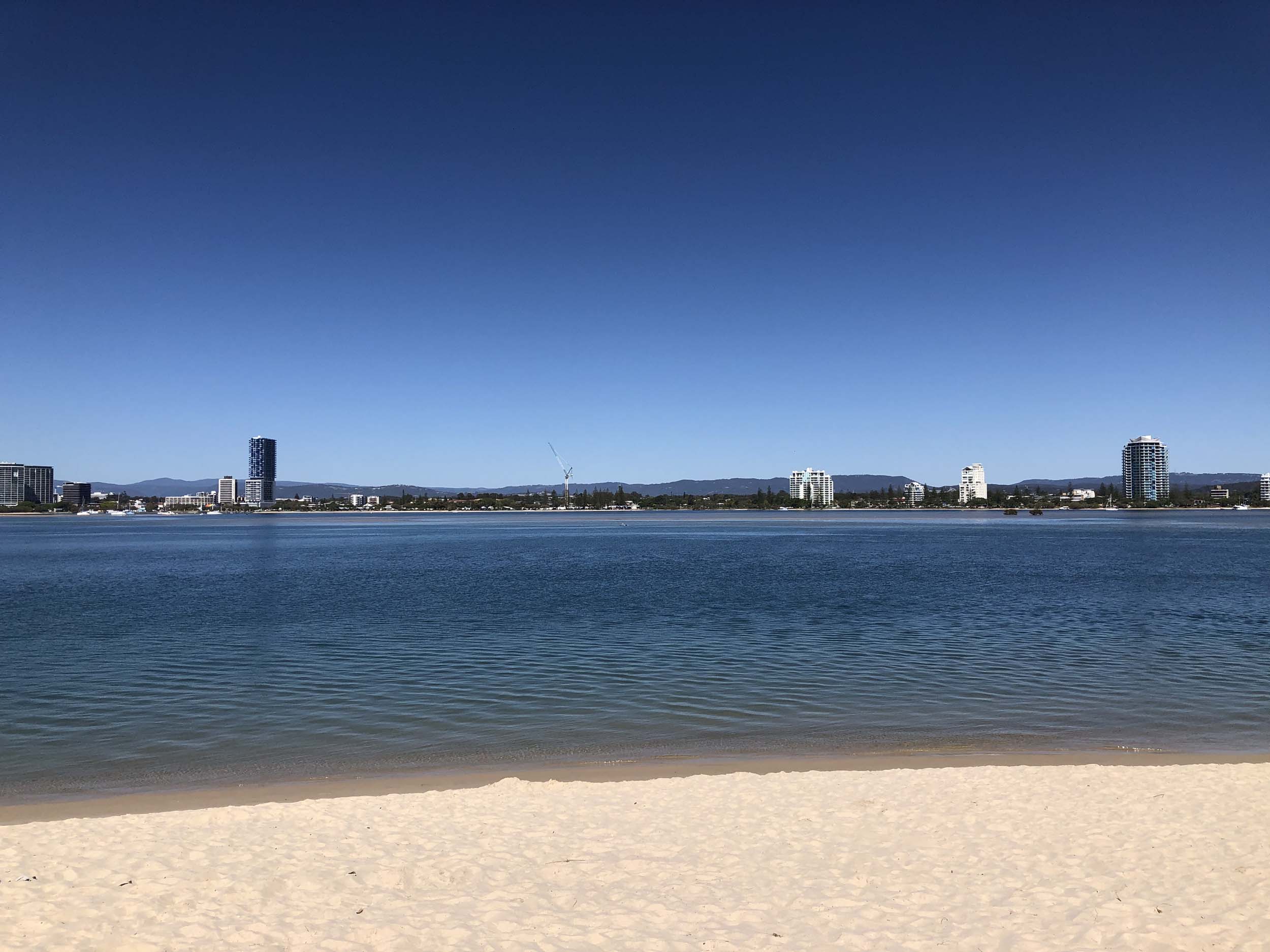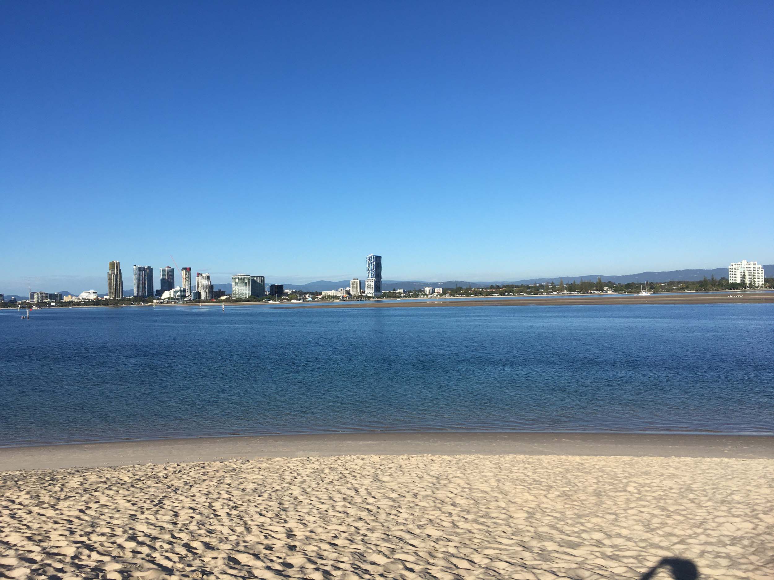 I left home at 7:18am, the breeze was from the South East and building slightly, the Broadwater was slightly choppy.