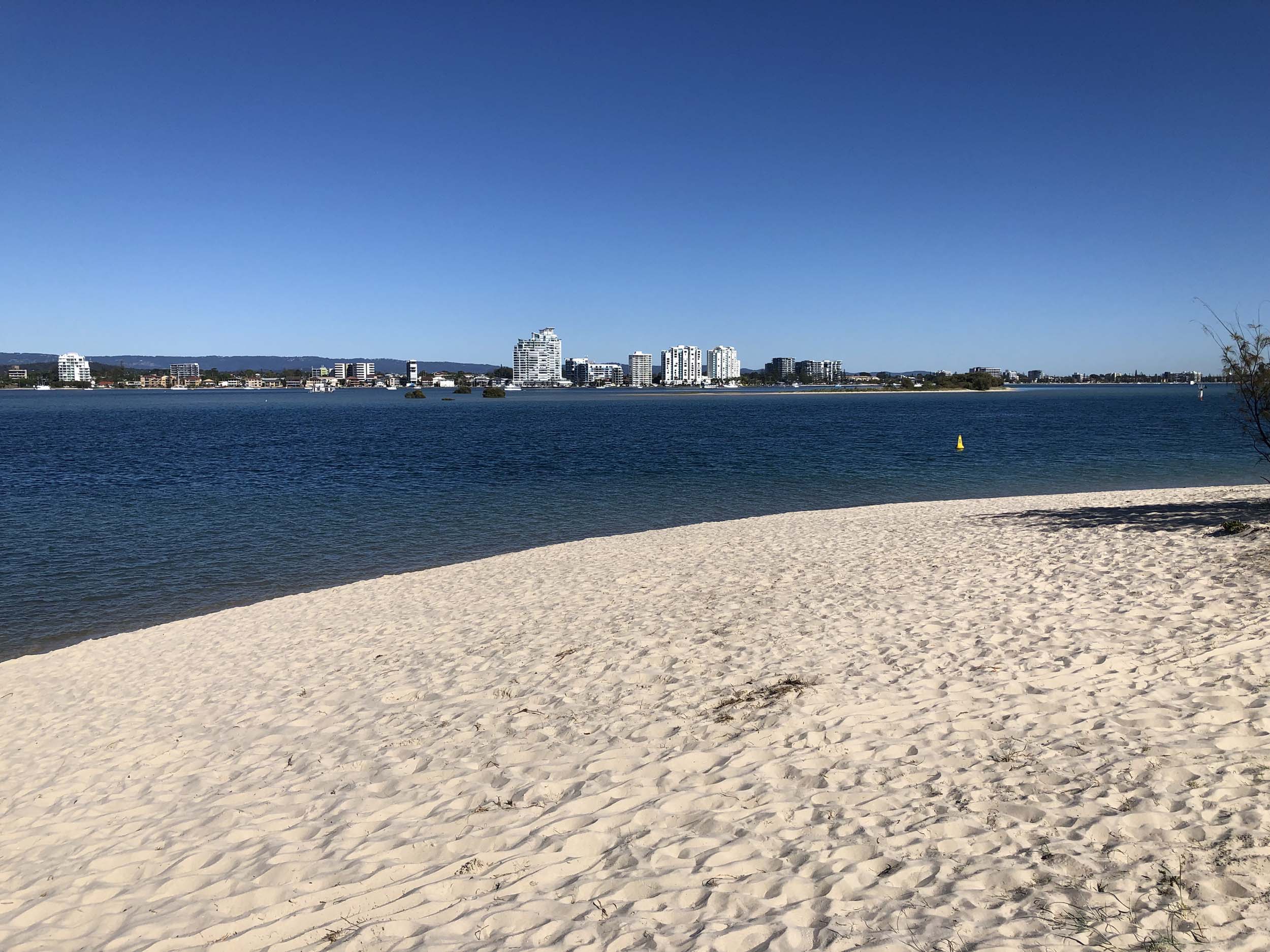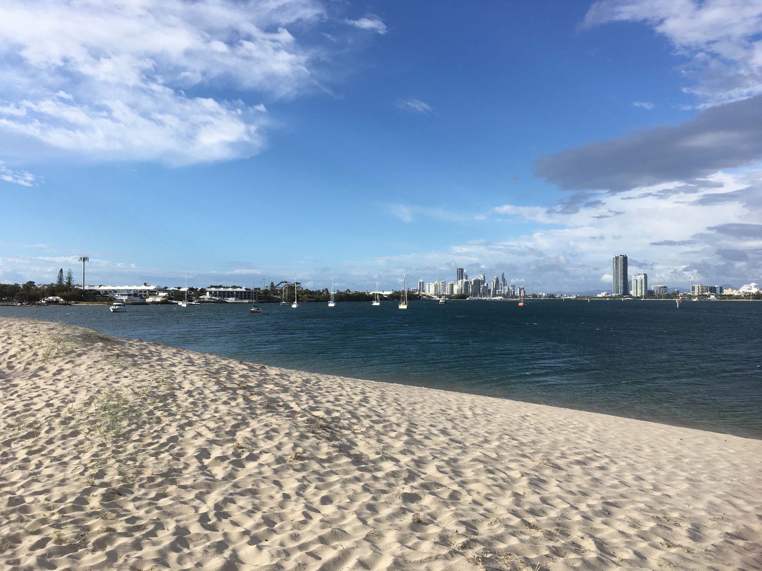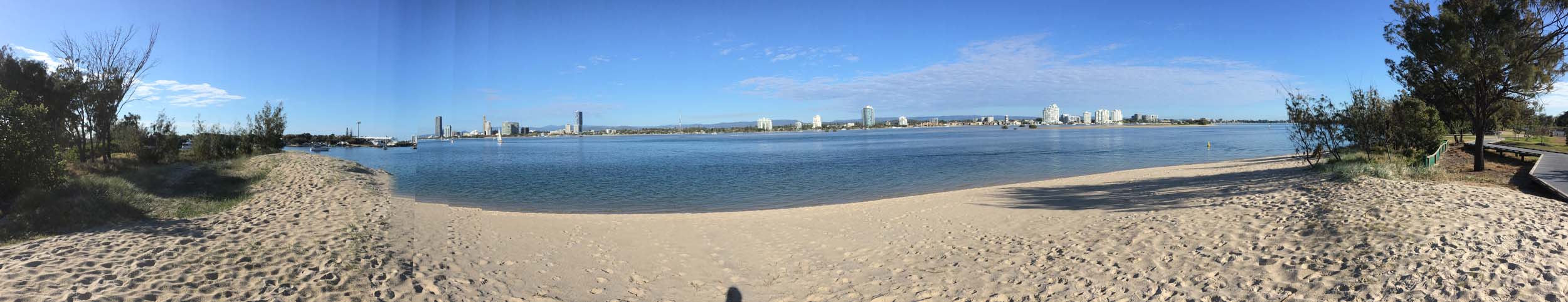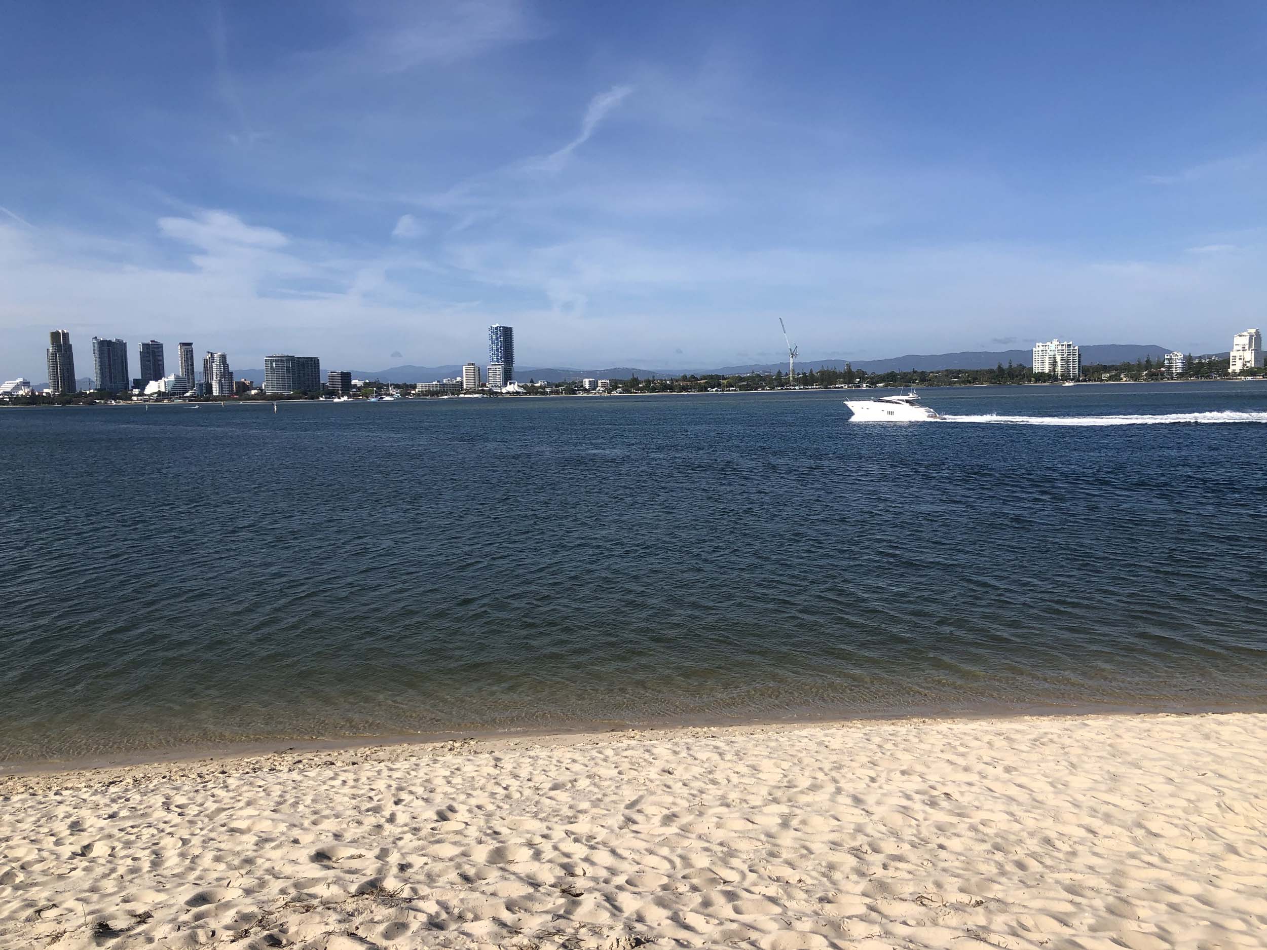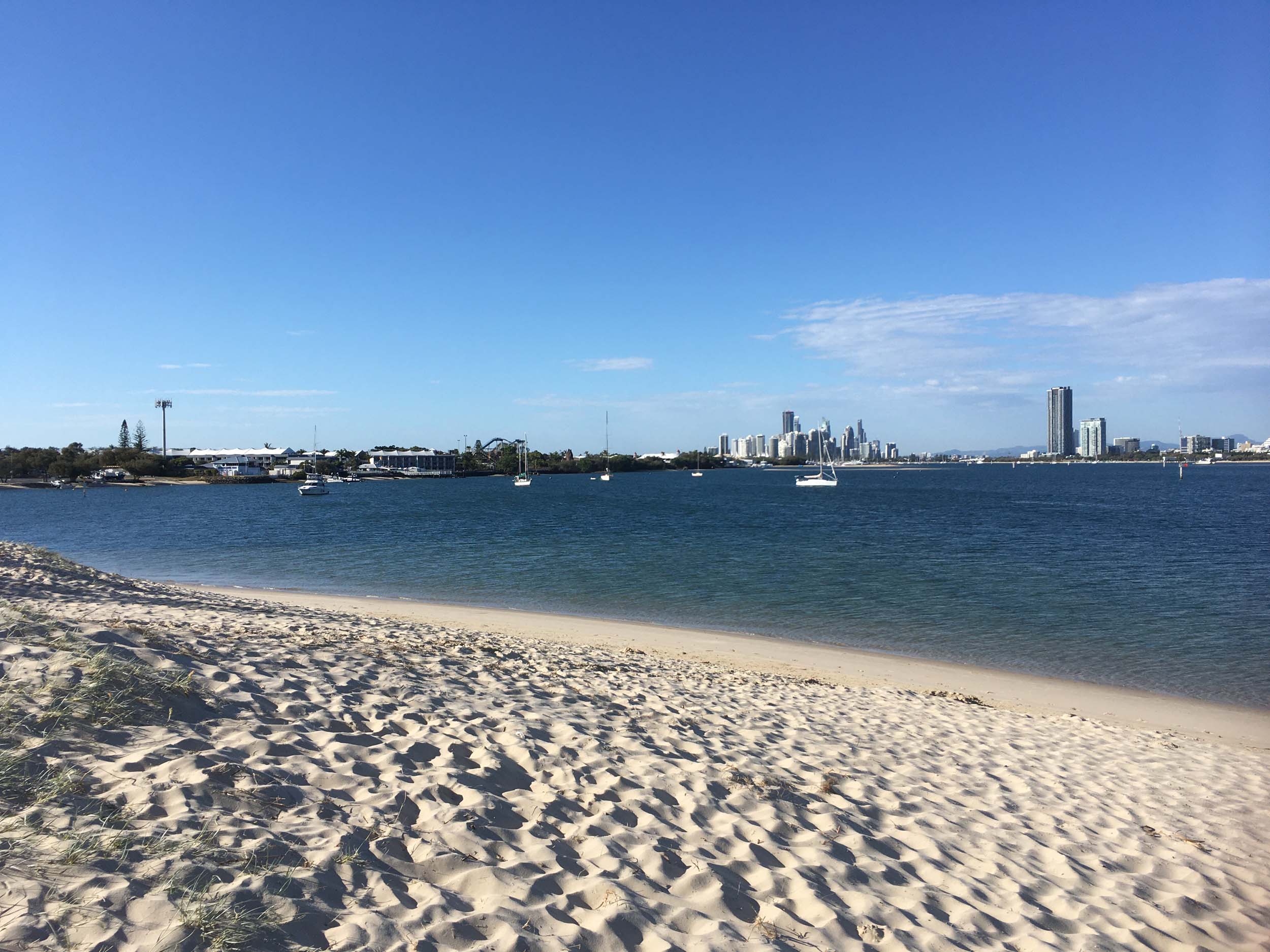 I left home at 7:18am, the breeze was from the South East and building slightly, the Broadwater was slightly choppy.