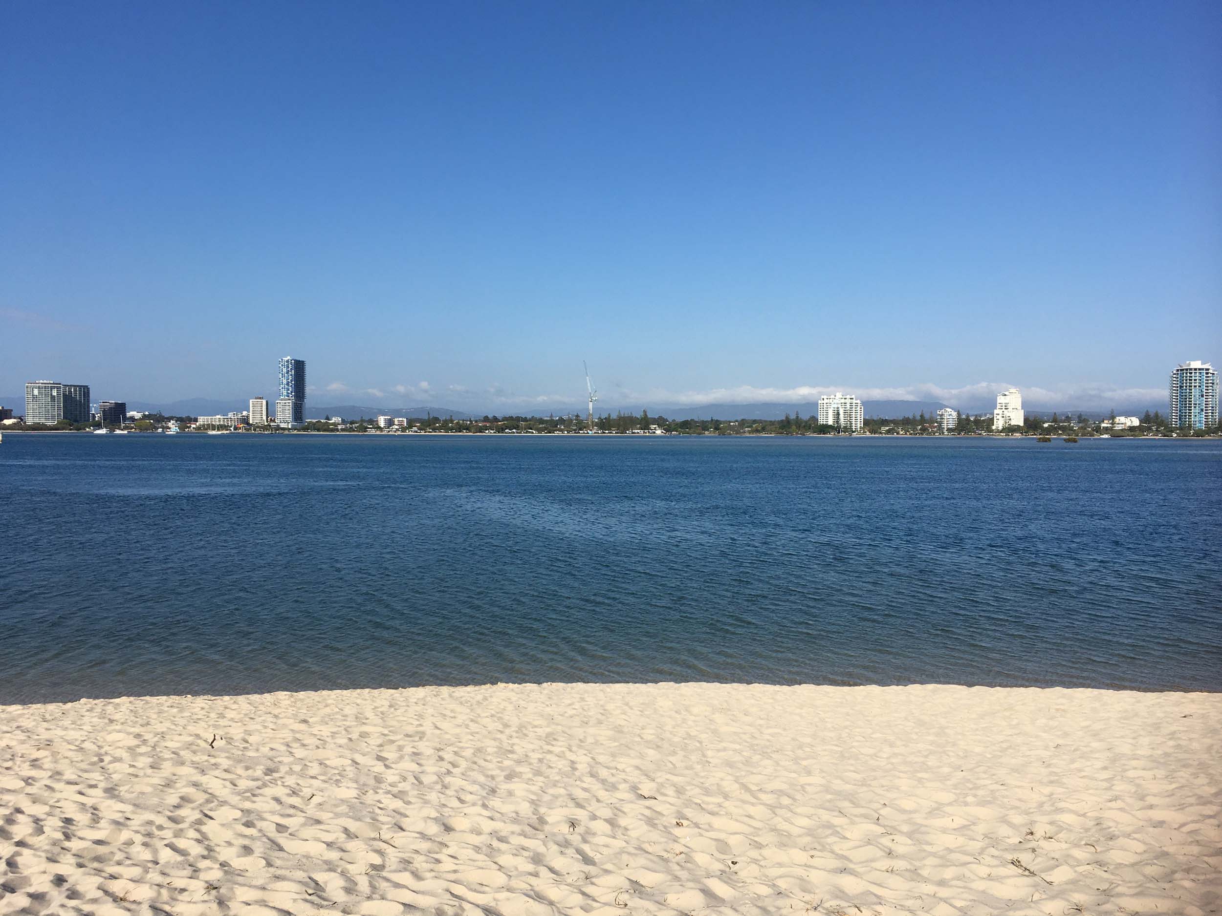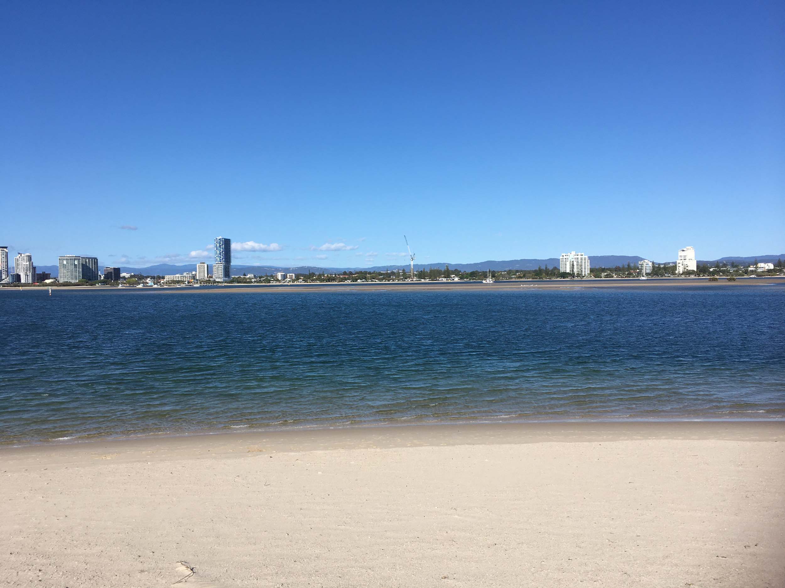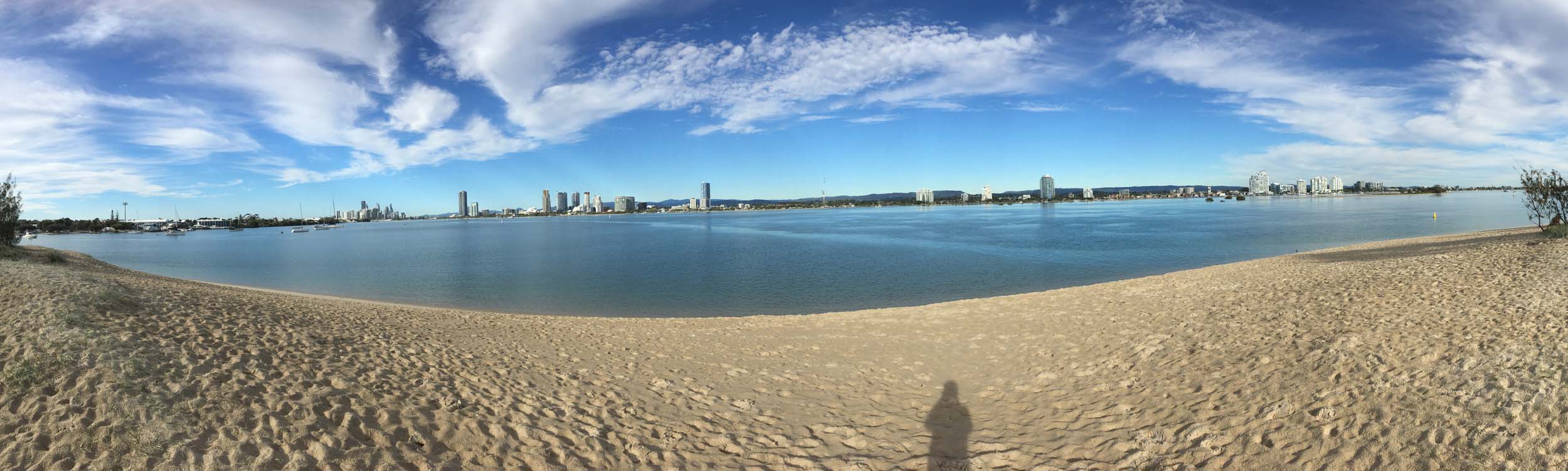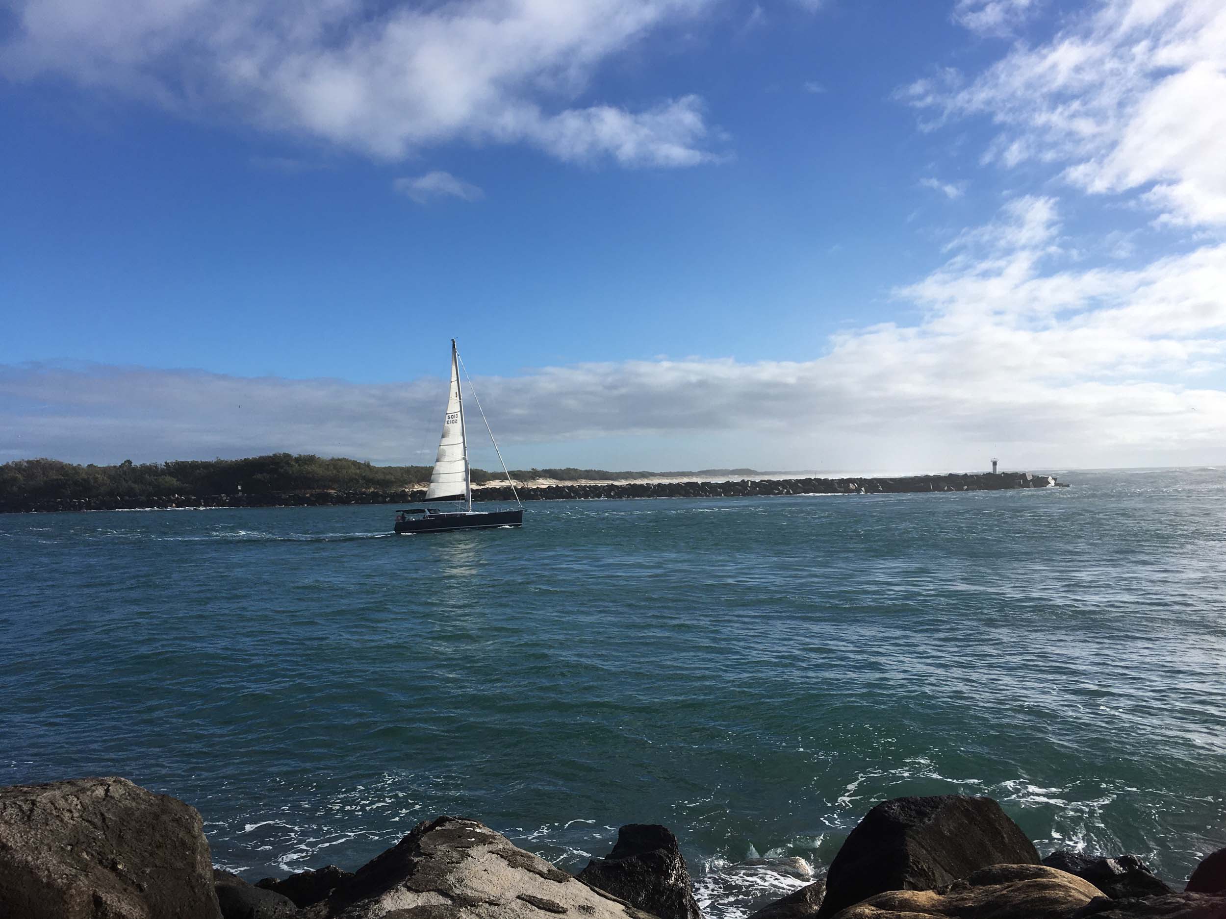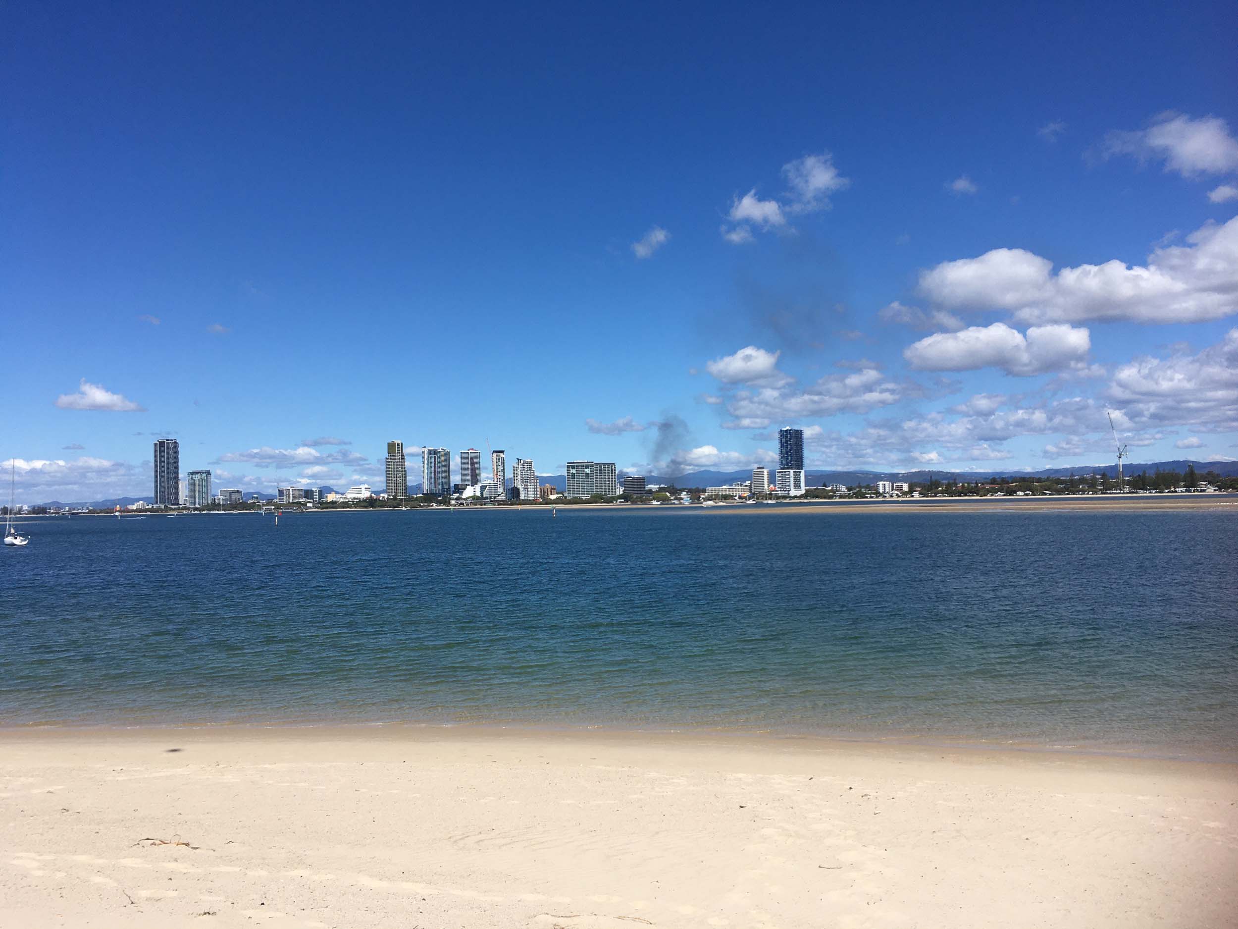 I left home at 7:18am, the breeze was from the South East and building slightly, the Broadwater was slightly choppy.